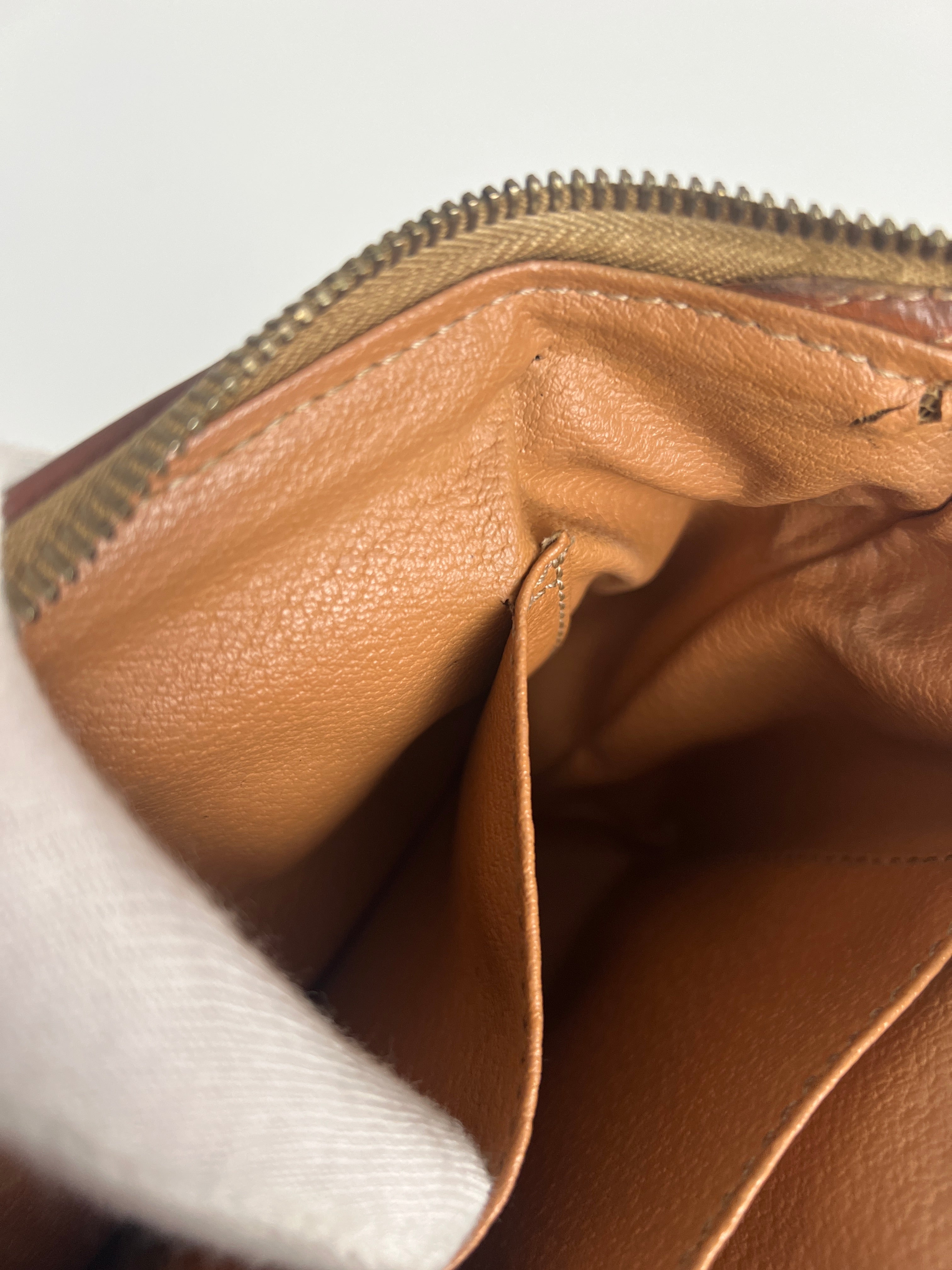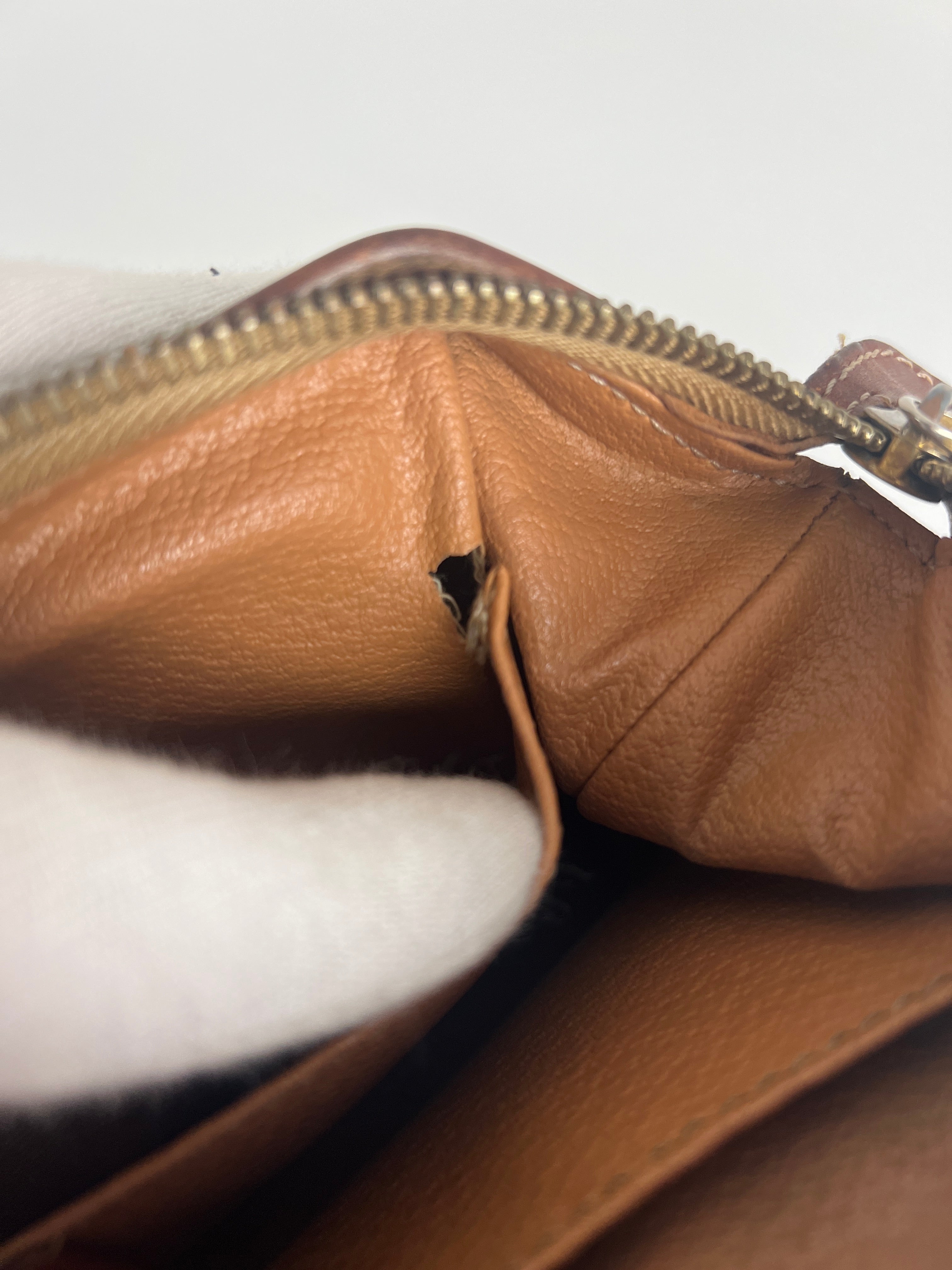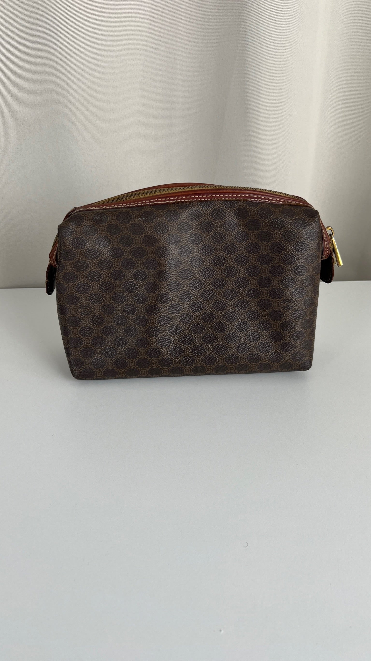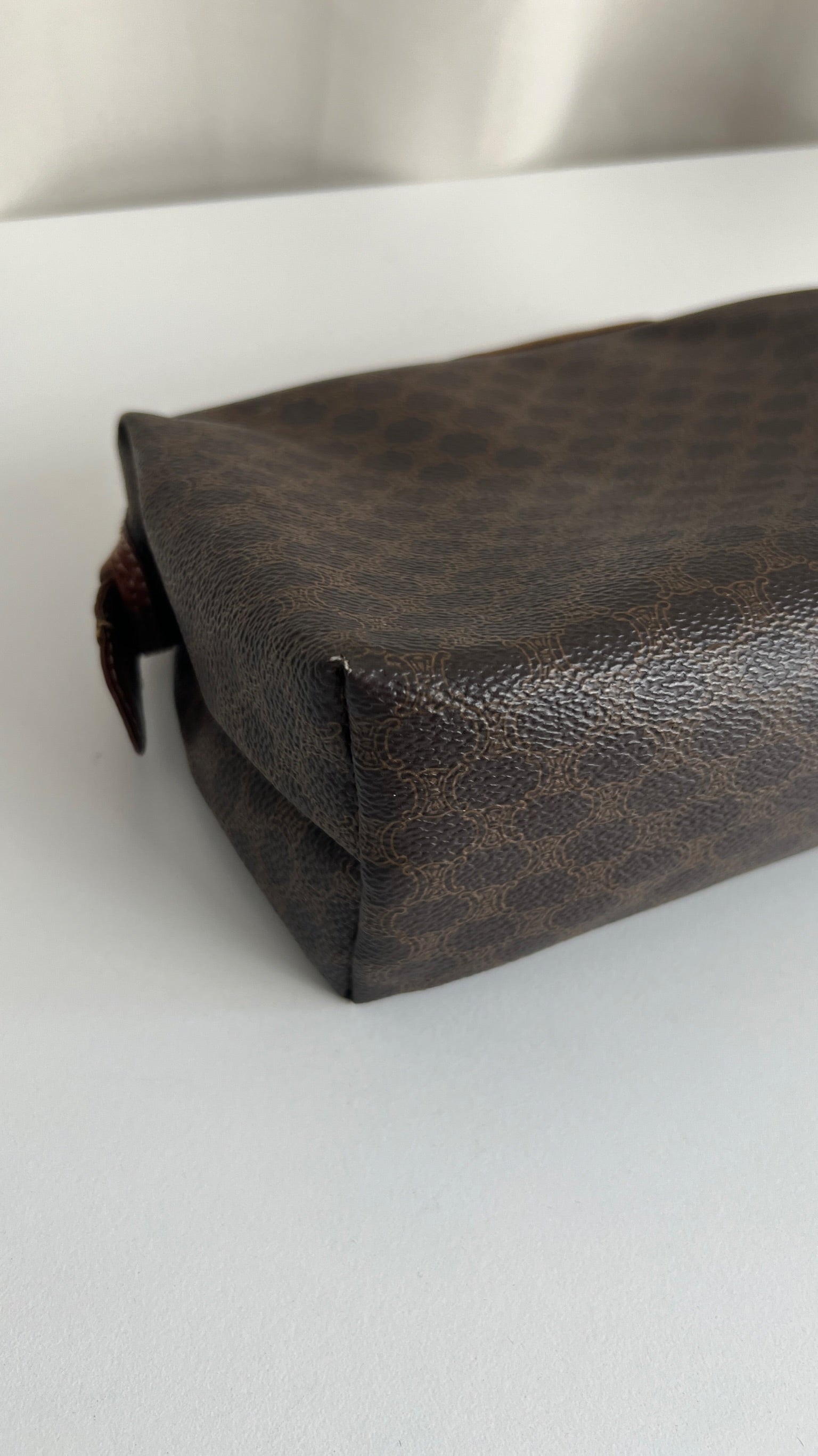 Cette pochette Céline est en état d'usage/bon état. La toile est en très bon état. Les coins sont frottés/usé. L'intérieur est en bon état : une marque de stylo + vous avez les coutures des 2 poches qui commencent à s'abîmer/déchirer (voir sur photos). Les parties métalliques sont un peu usé (mais normal).