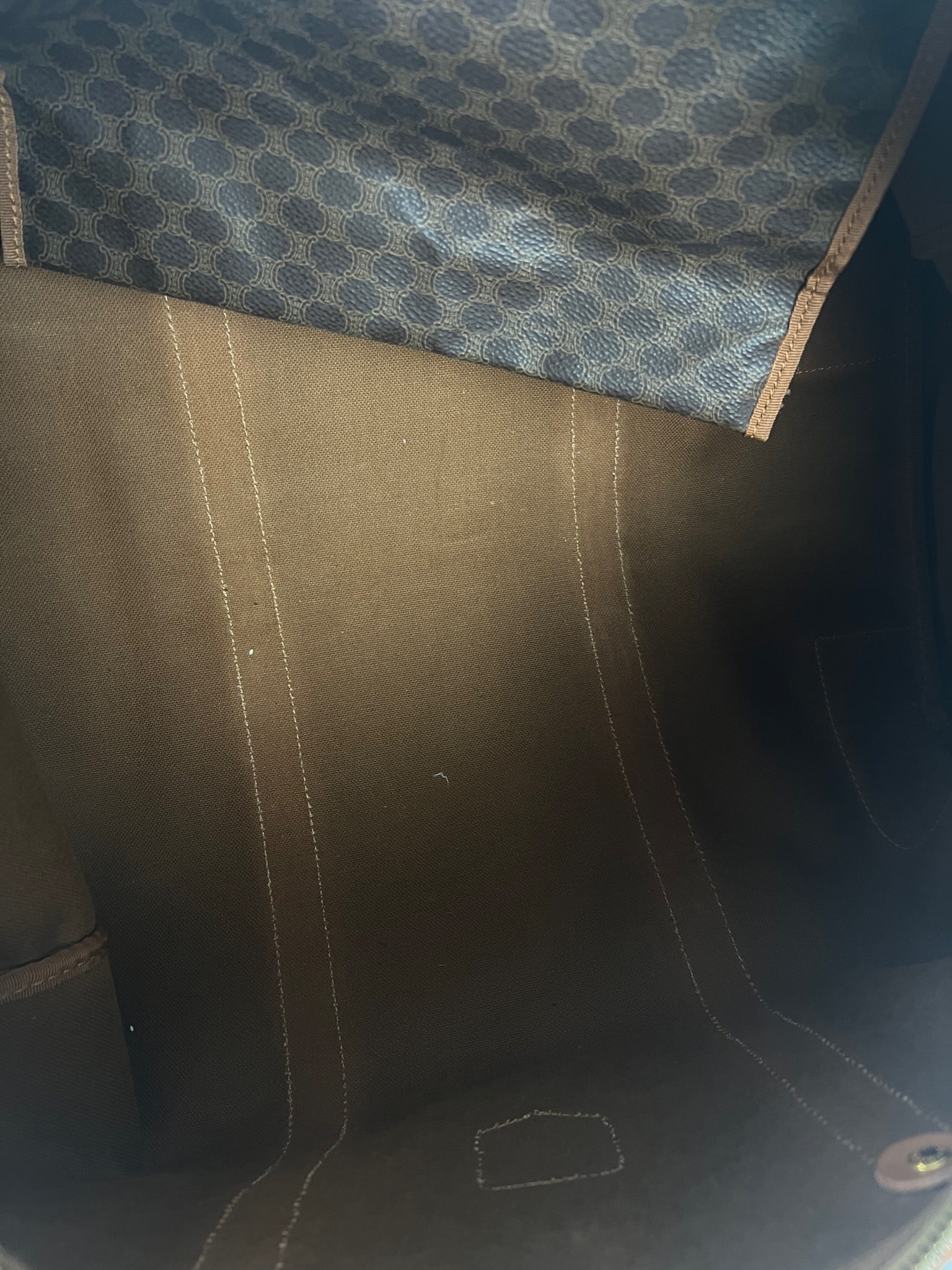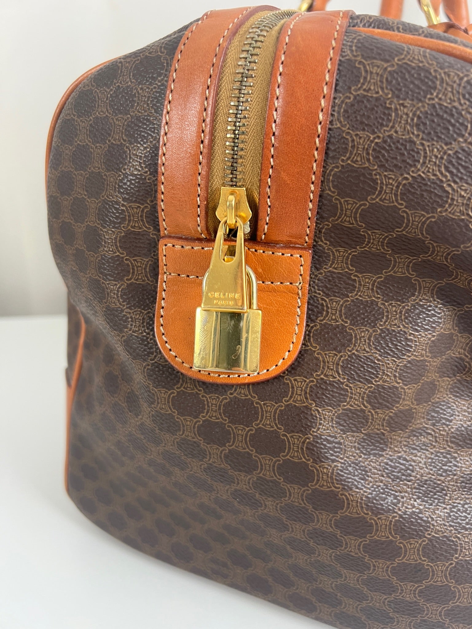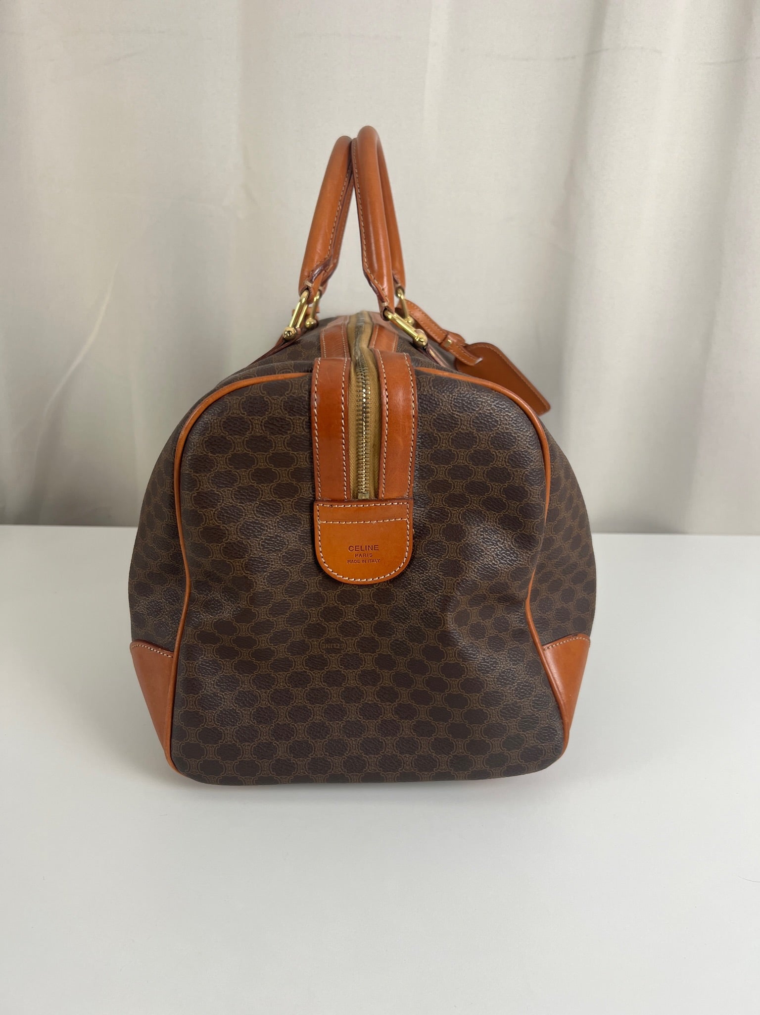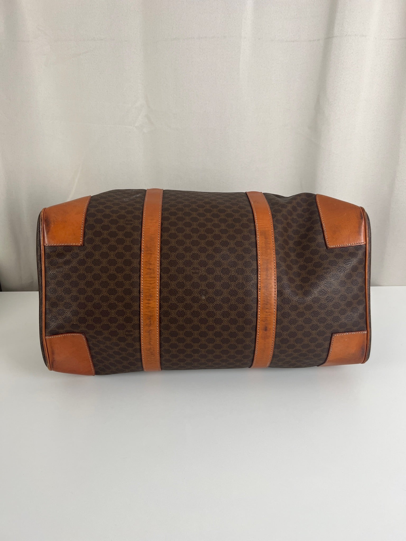 Ce sac de voyage Céline Macadam est en bon état. La toile est en très bon état, seulement quelques petites taches sur le dessous. La base du sac présente des tâches et trace d'usure. Les poignées sont en très bon état. Les coins sont frottés. L'intérieur est en bon état. Livré avec cadenas et clé.