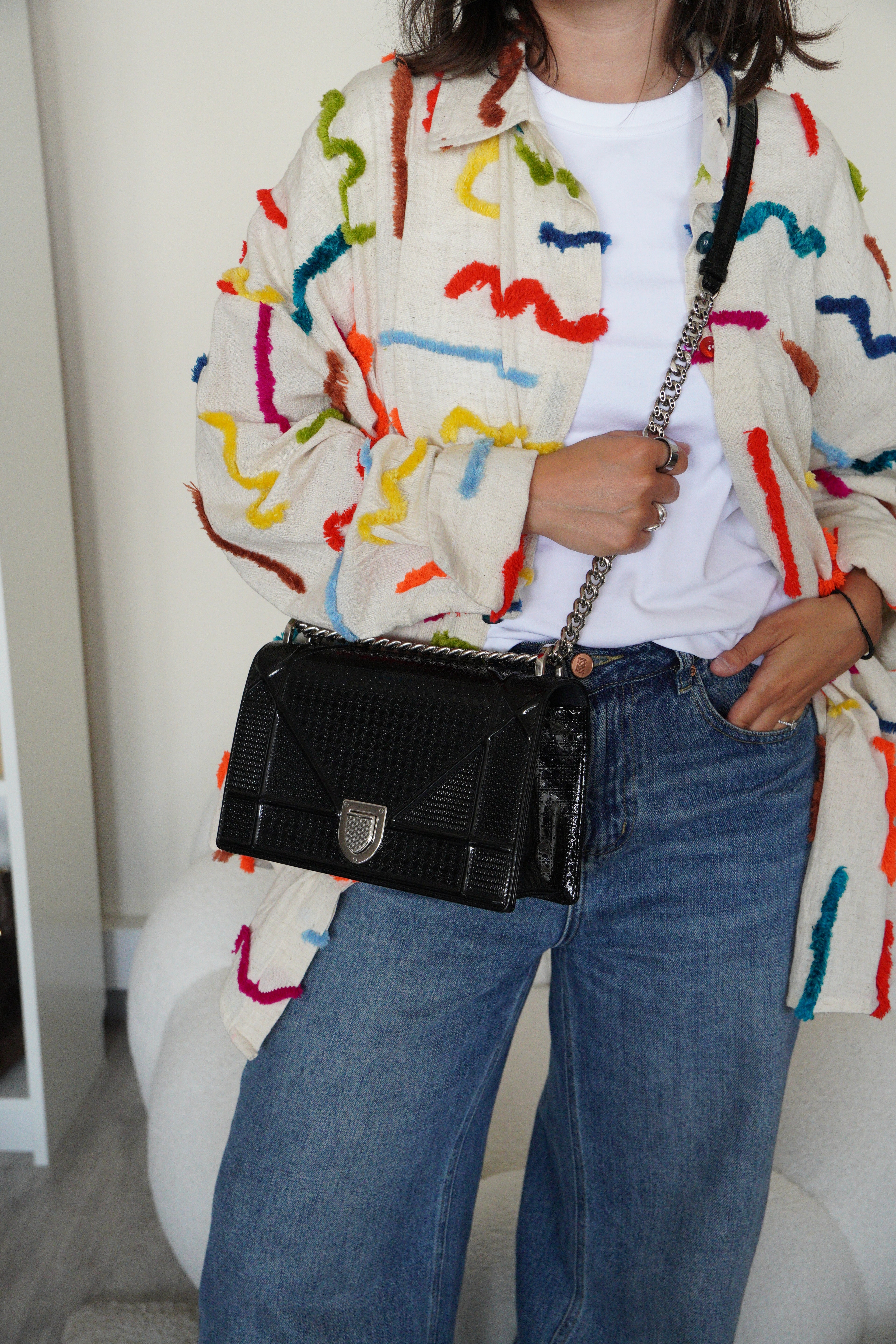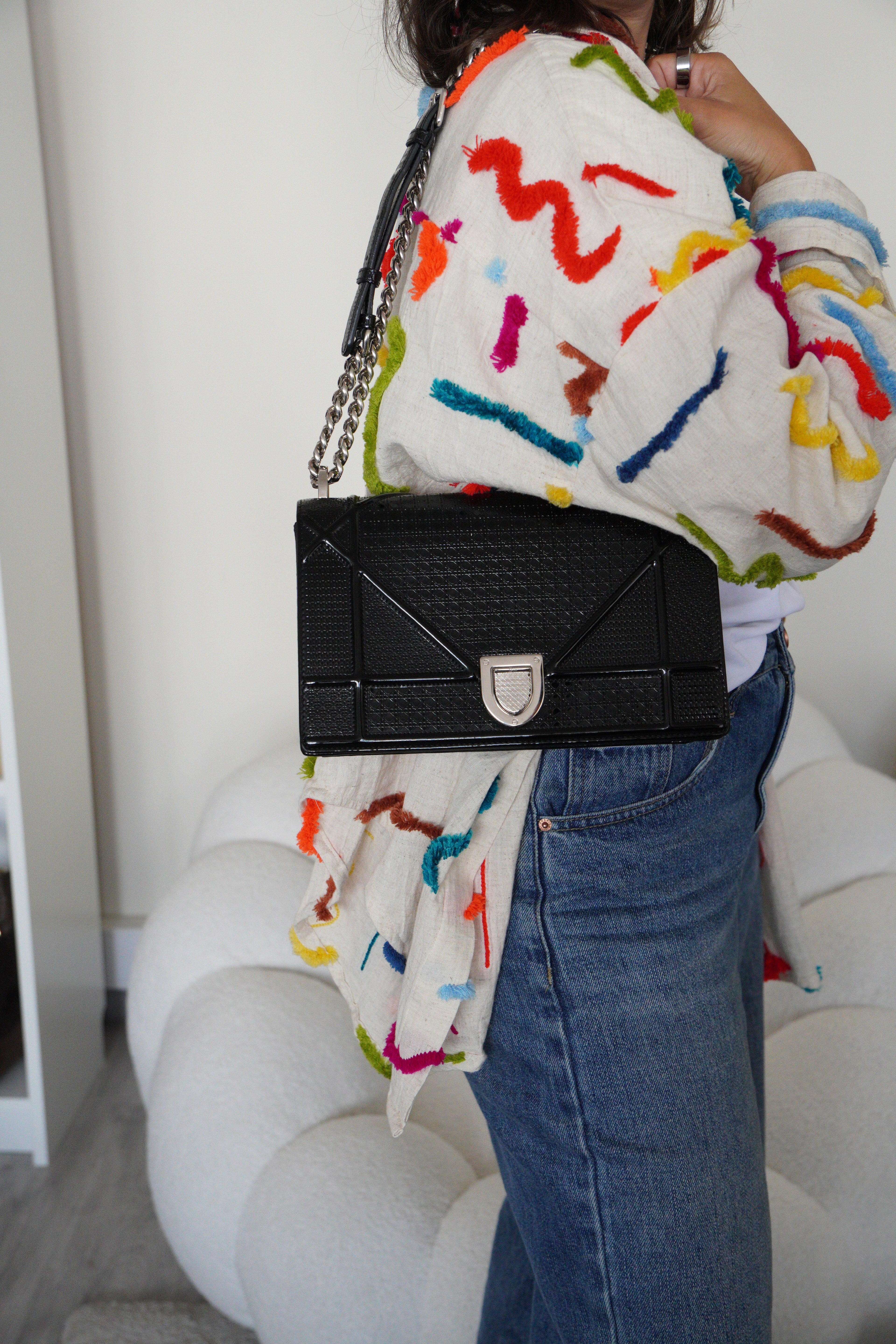 Le sac Dior Diorama en cuir noir est une pièce sophistiquée et audacieuse de la Maison Dior. Sa silhouette structurée, son cuir texturé et ses finitions argentées en font un sac à la fois élégant et moderne, parfait de jour comme de nuit.