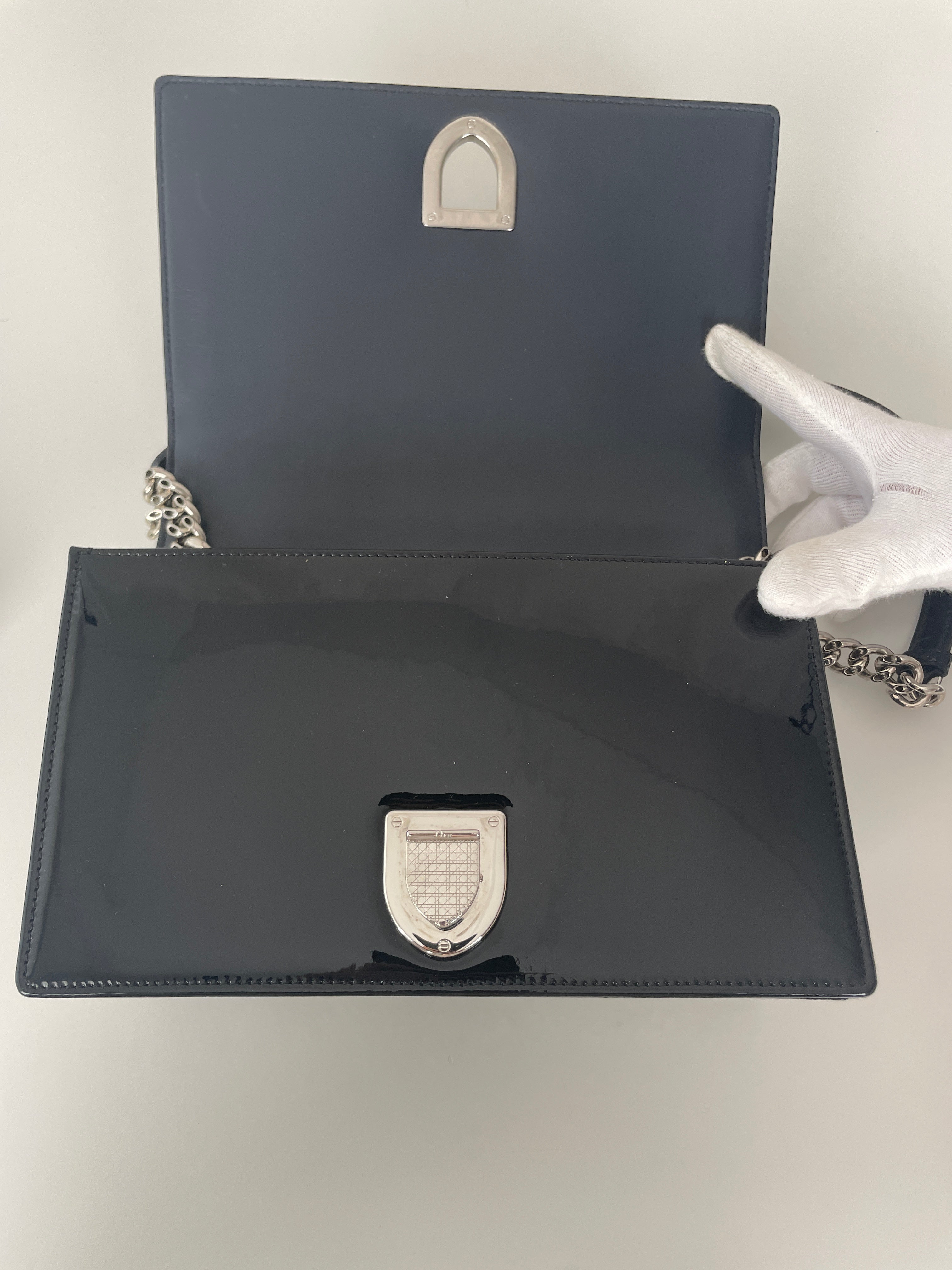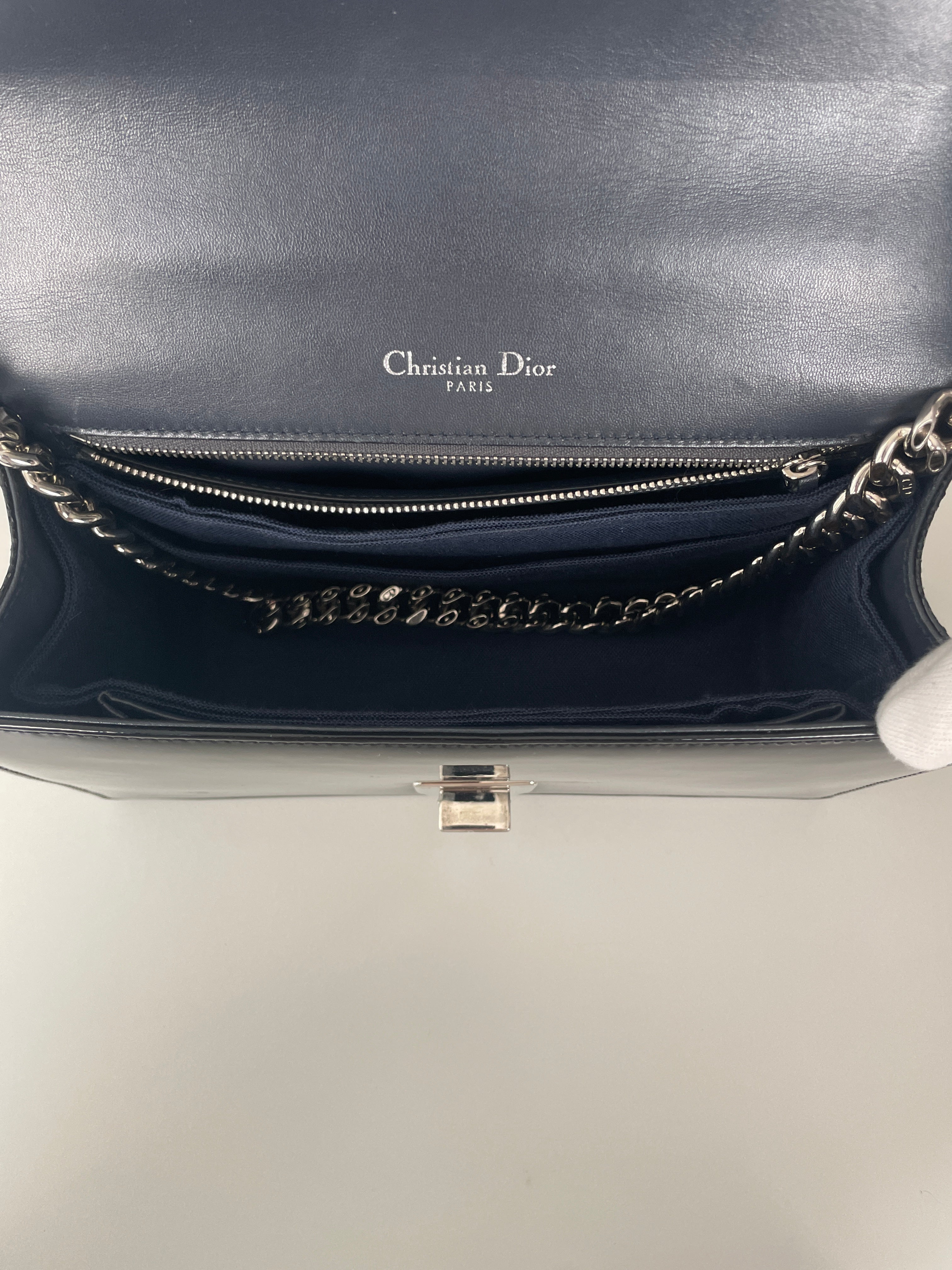 Ce modèle est en très bon état général, avec seulement une petite marque à l'intérieur. Une occasion rare de posséder un classique Dior.
