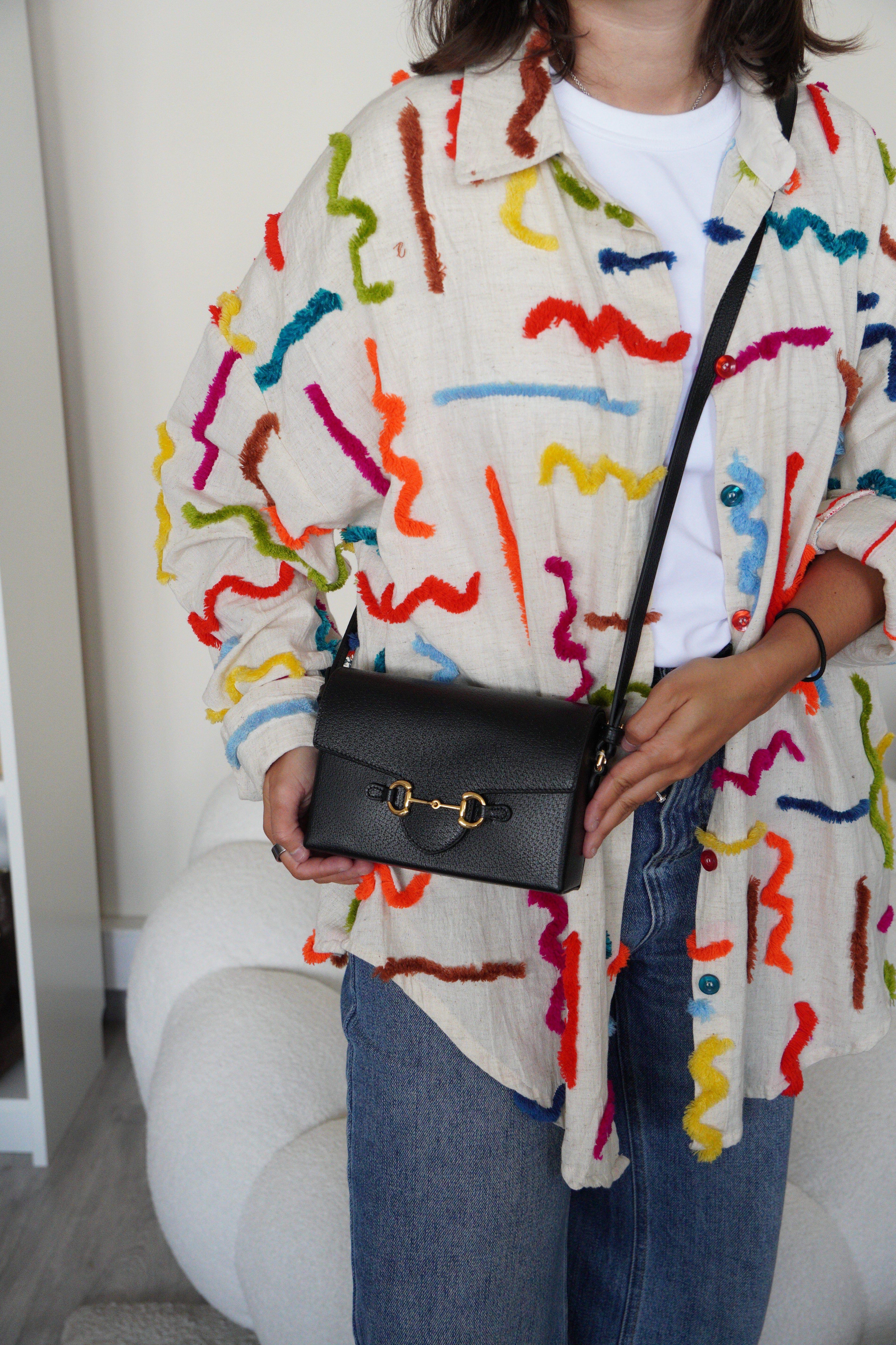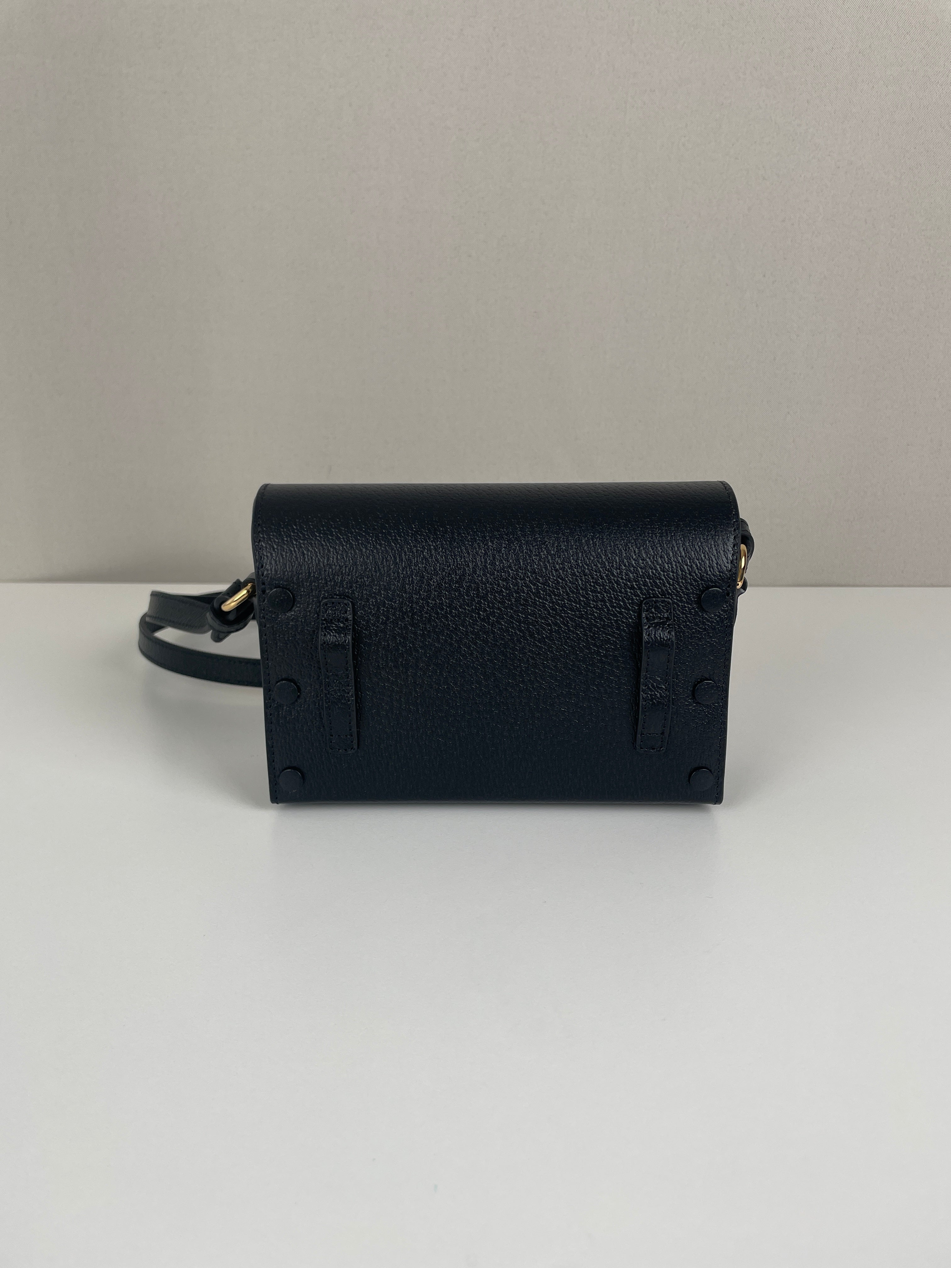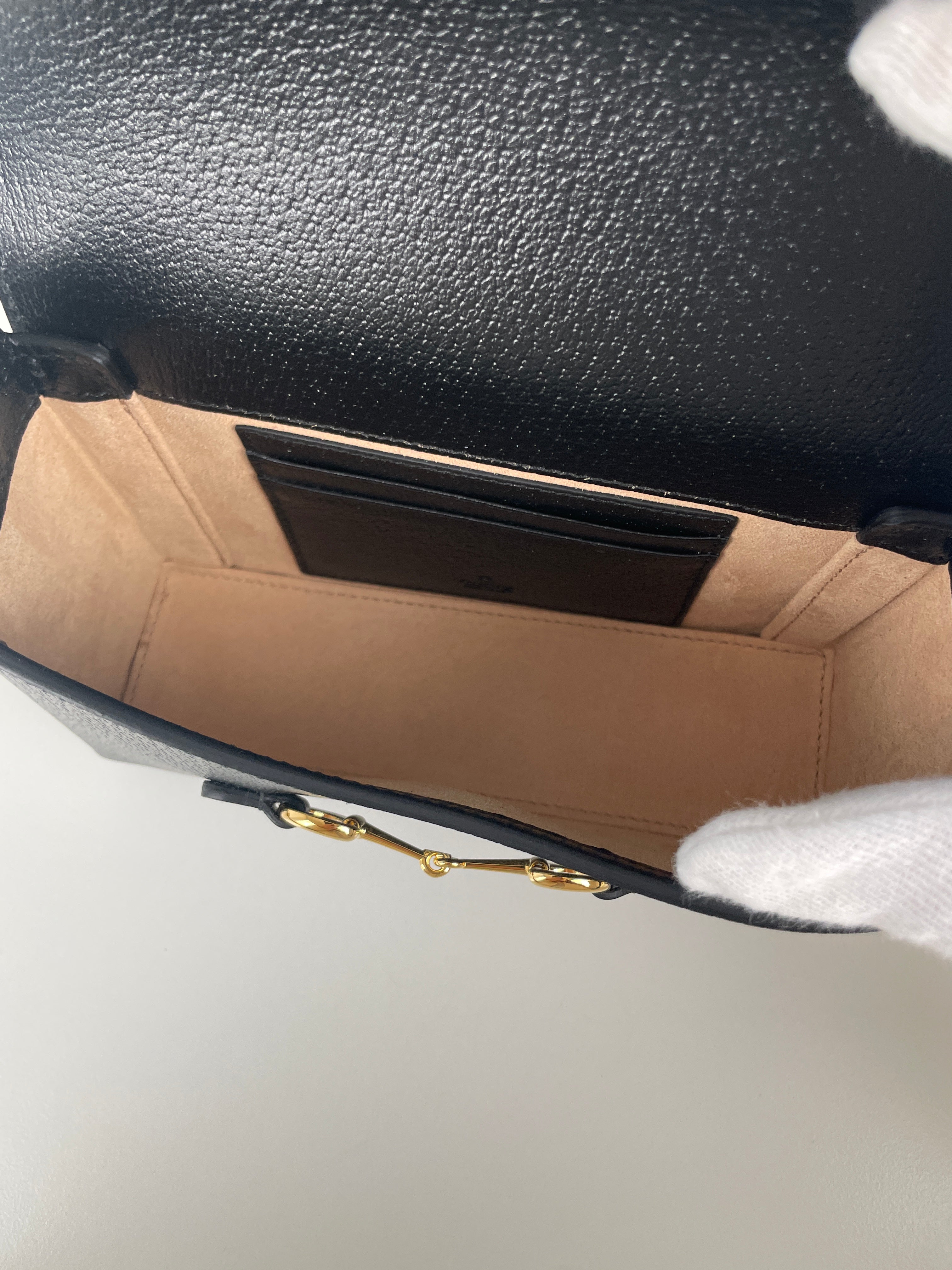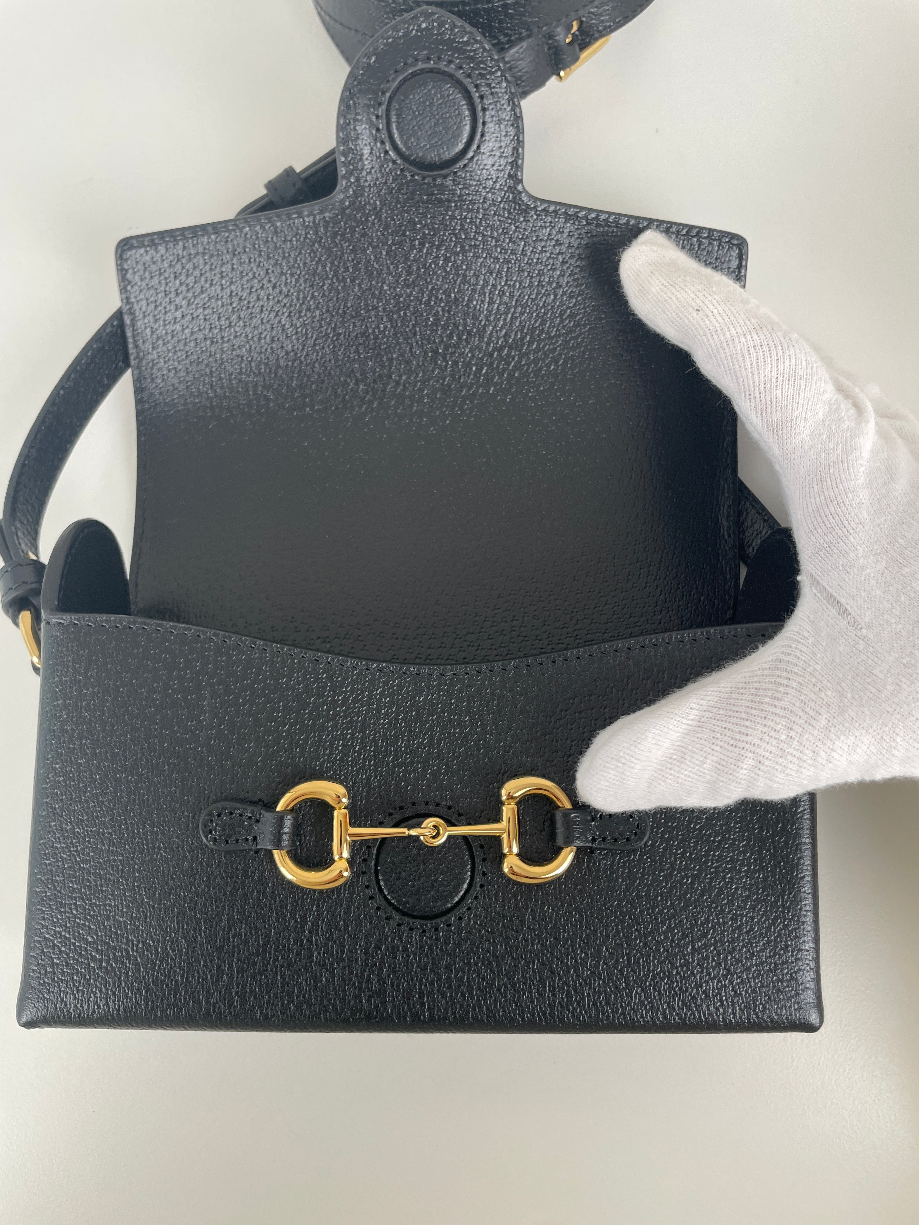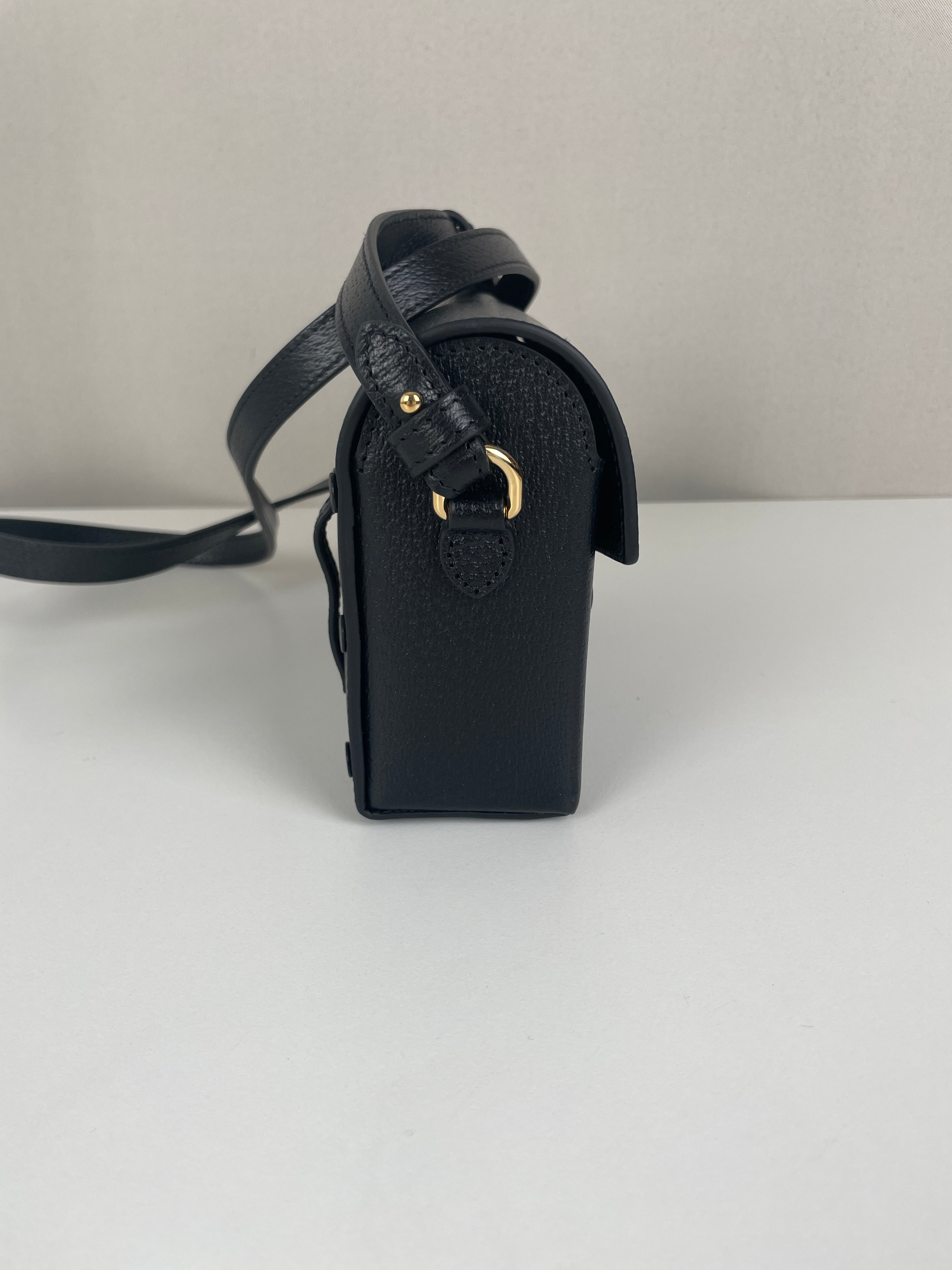 Ce sac Gucci Mini Horsebit en cuir noir est une pièce à la fois élégante et intemporelle. Sa silhouette structurée et son bijou emblématique doré en font un modèle chic, parfait du matin au soir. Son format mini et sa finition luxueuse séduisent les amateurs de sacs iconiques.