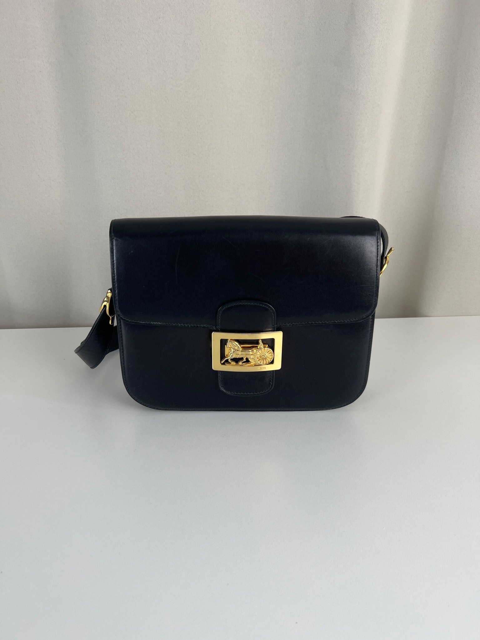 Sac Céline Vintage Triumph en cuir noir et accessoires dorés