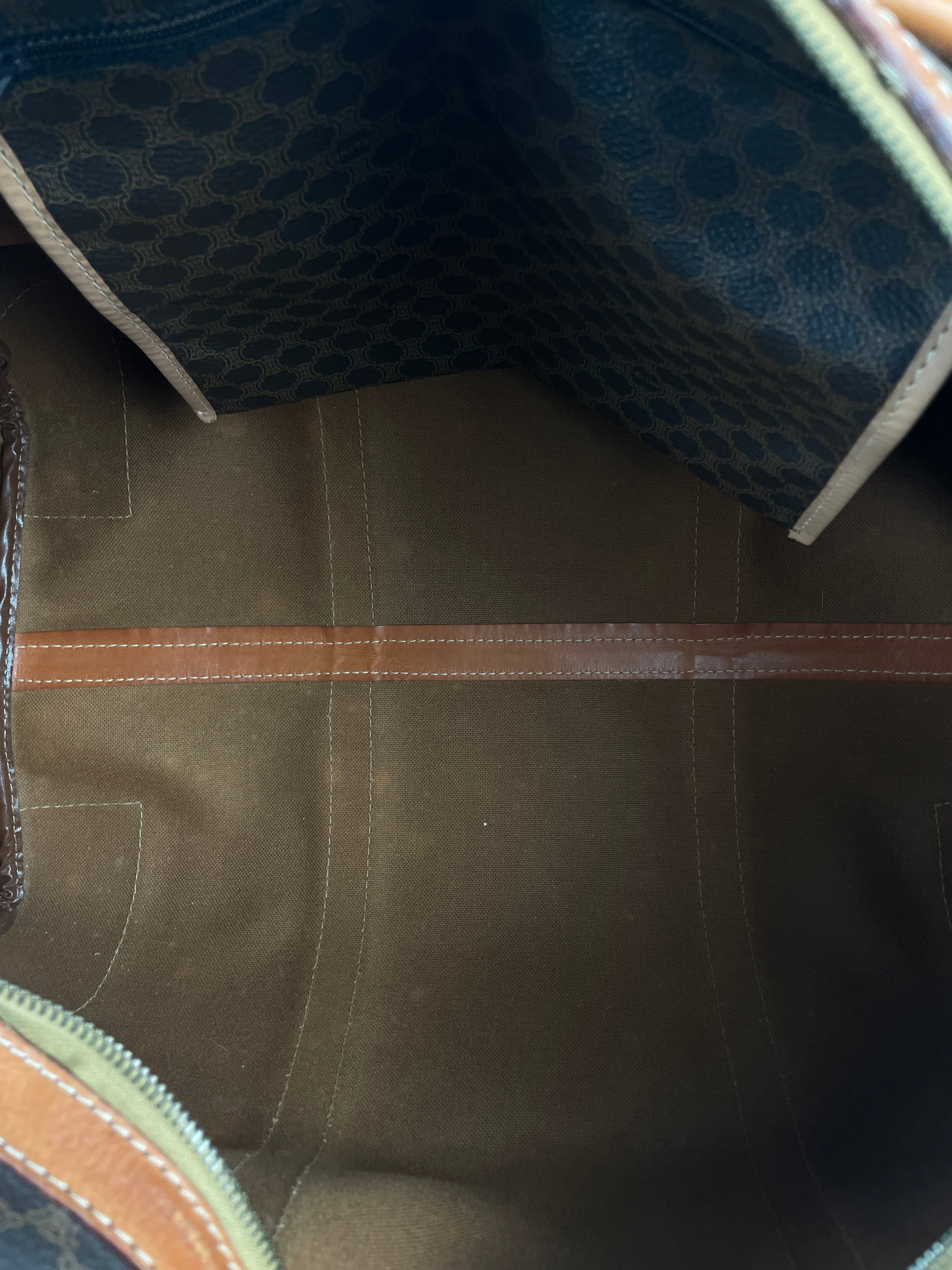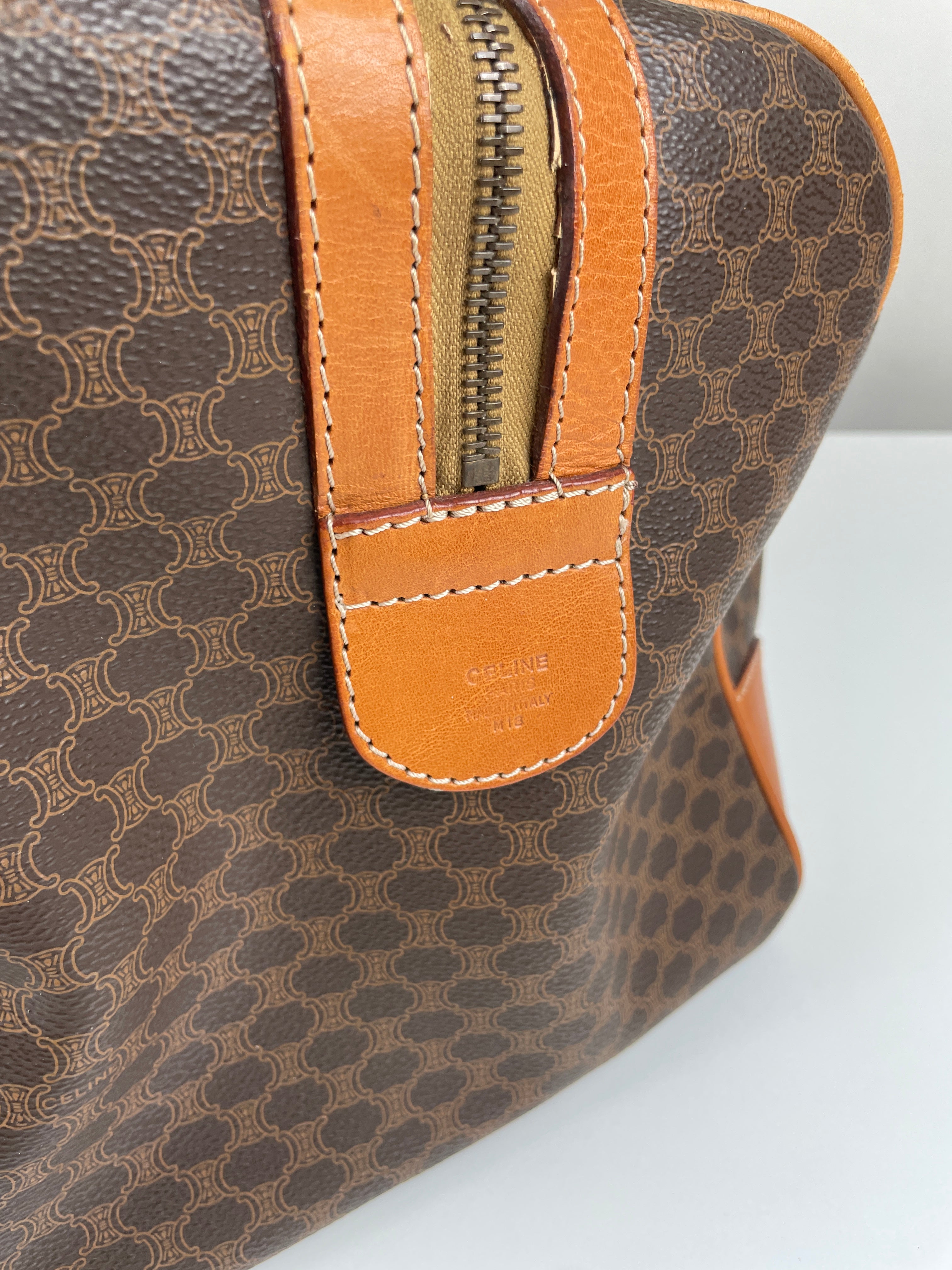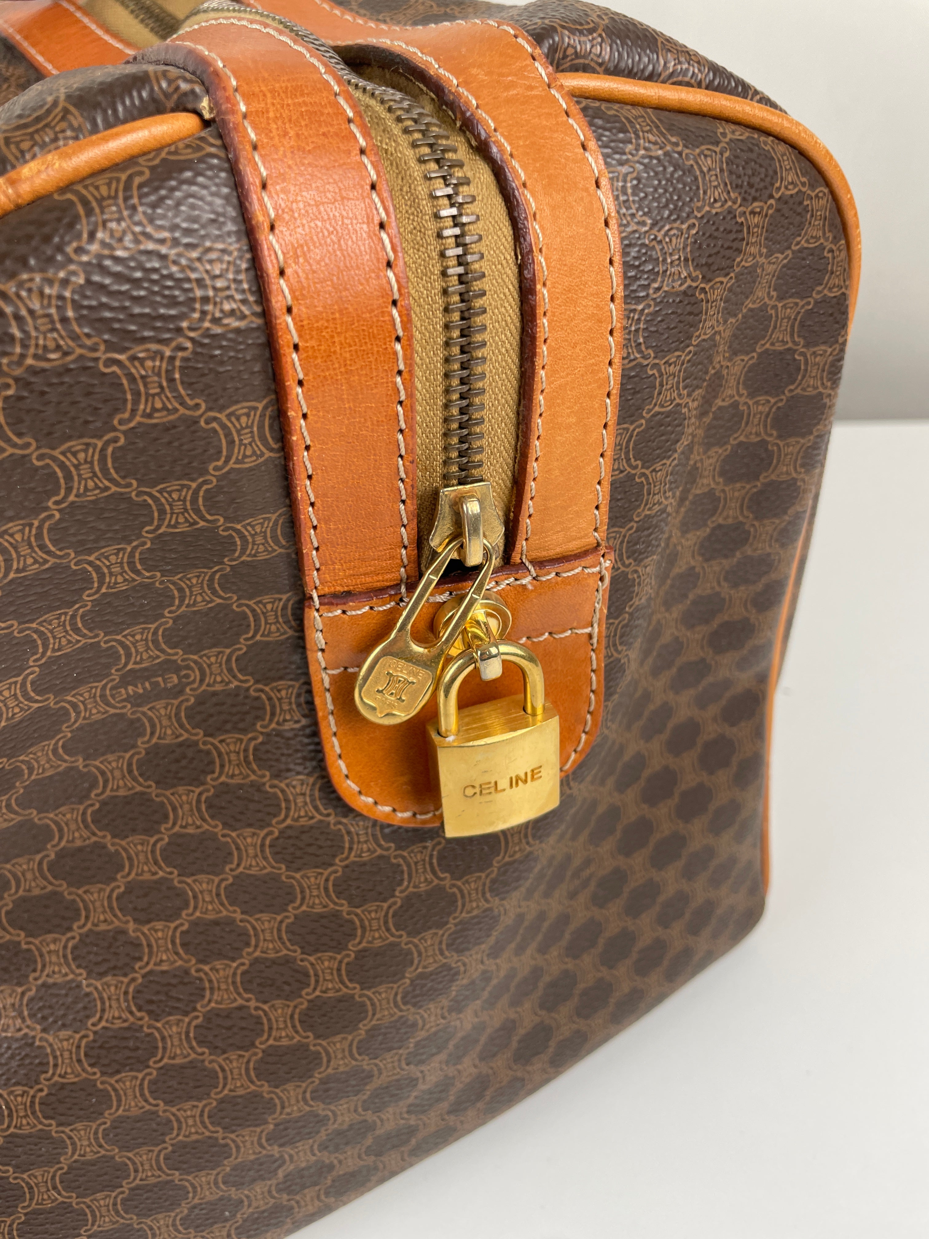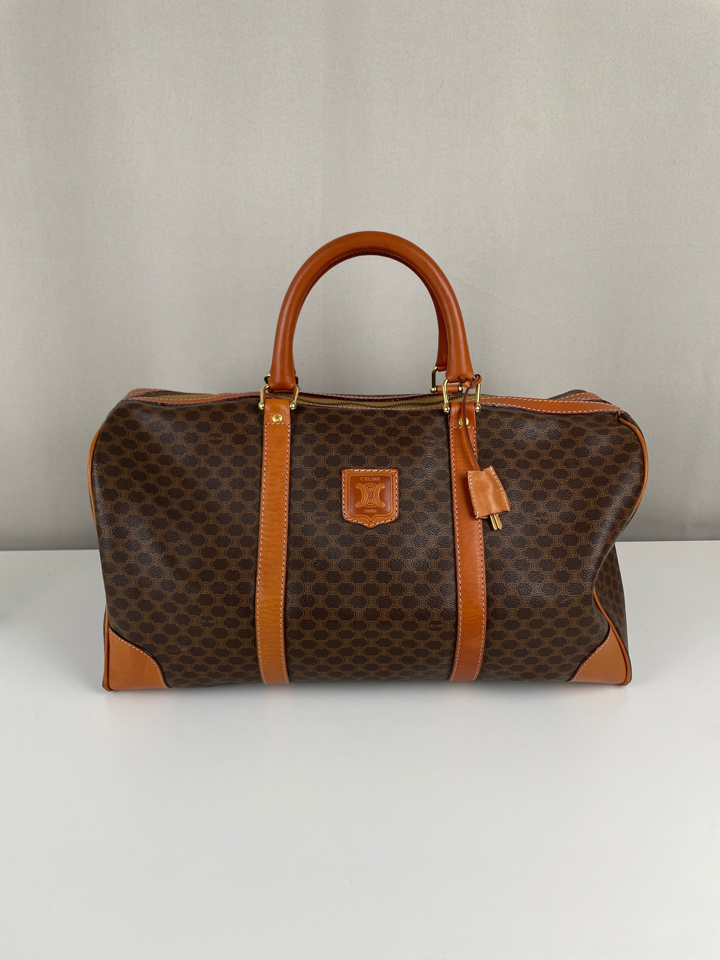 Ce sac de voyage Boston de la marque Céline est en très bon état. La toile macadam est en très bon état. Les coins sont un peu frottés. Le dessous du sac présente quelques traces d'usure. Les anses sont en très bon état. L'intérieur est en bon état, quelques petites traces mineures.