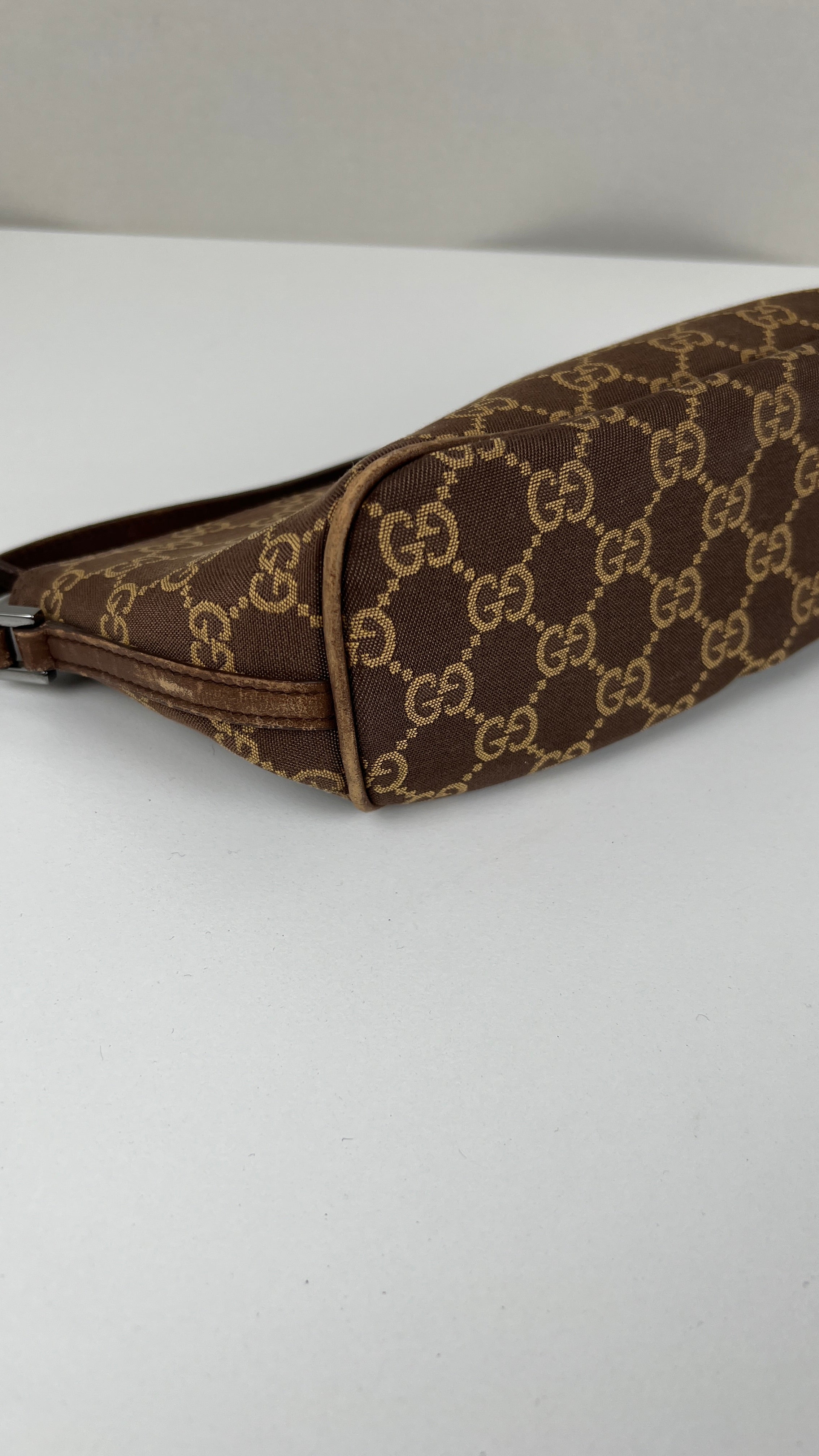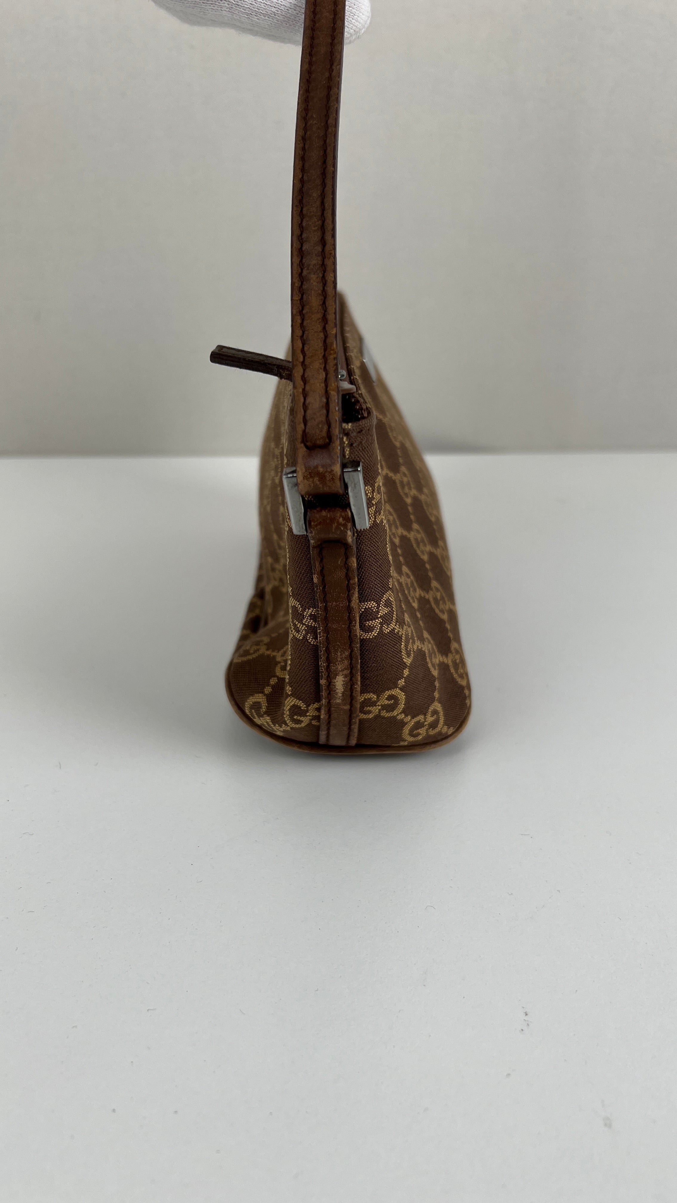 Ce sac Gucci est en bon état. La toile / tissu est en bon état. Les coins sont légèrement abîmés. La bijouterie est en très bon état. L'intérieur est également en très bon état.