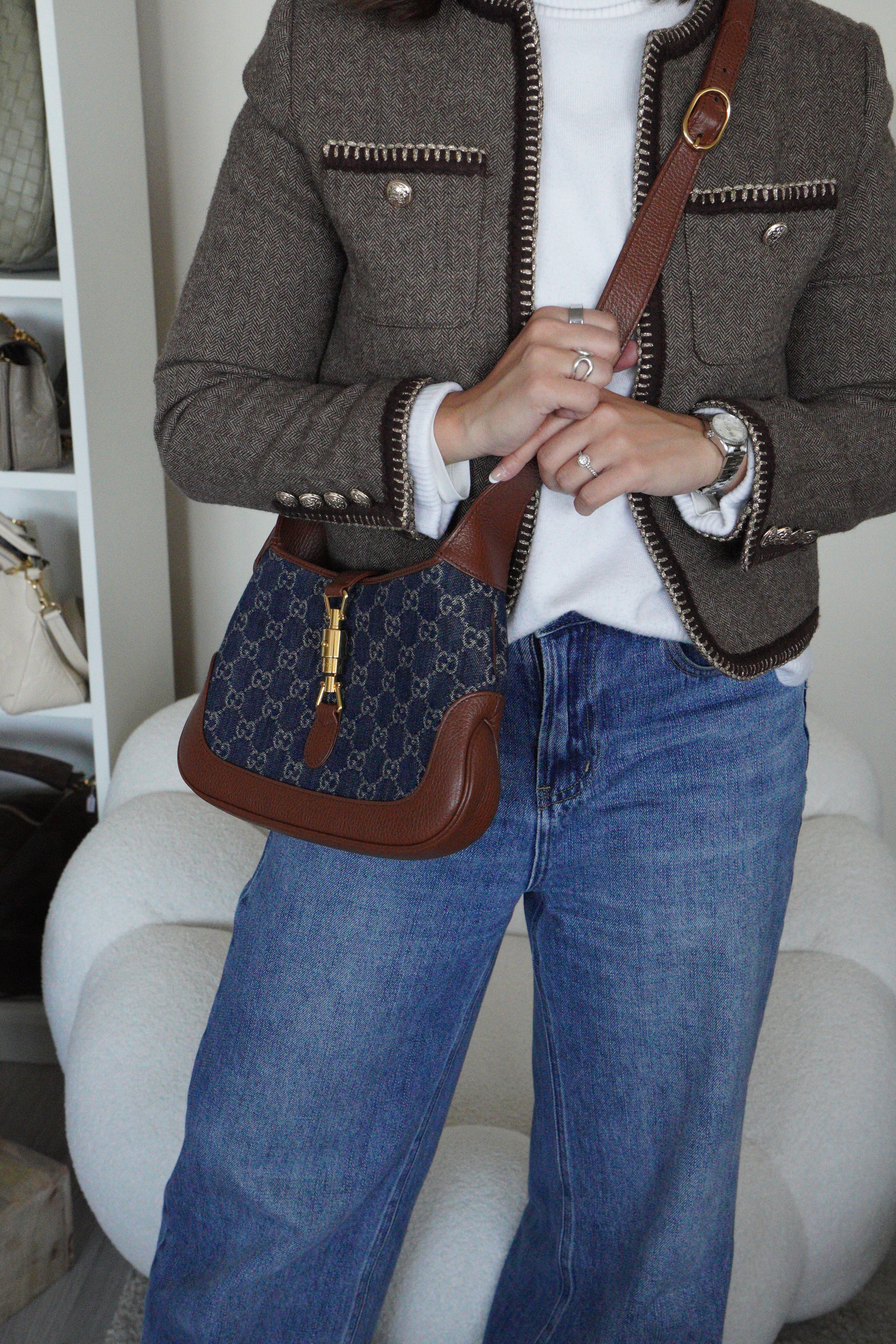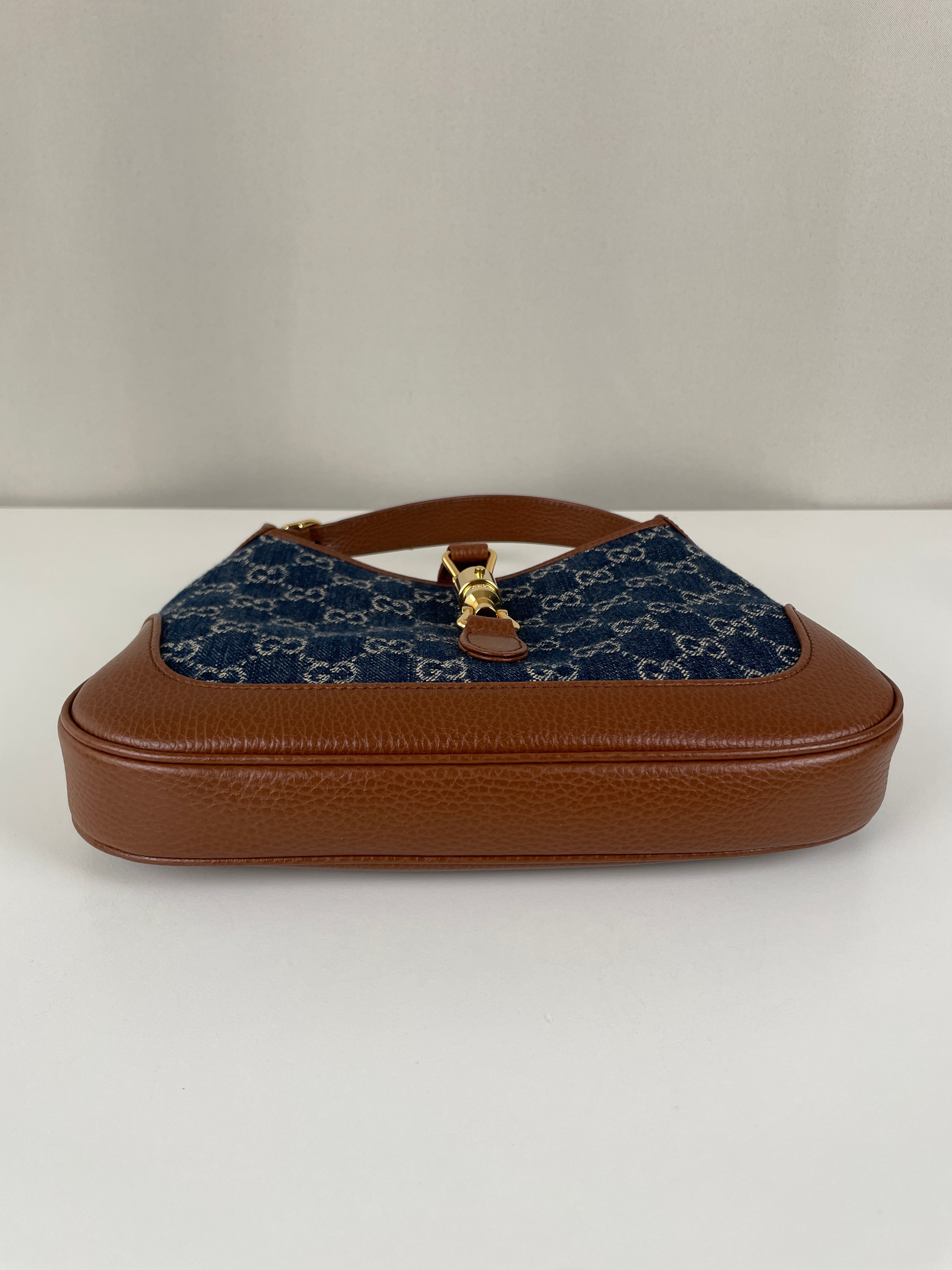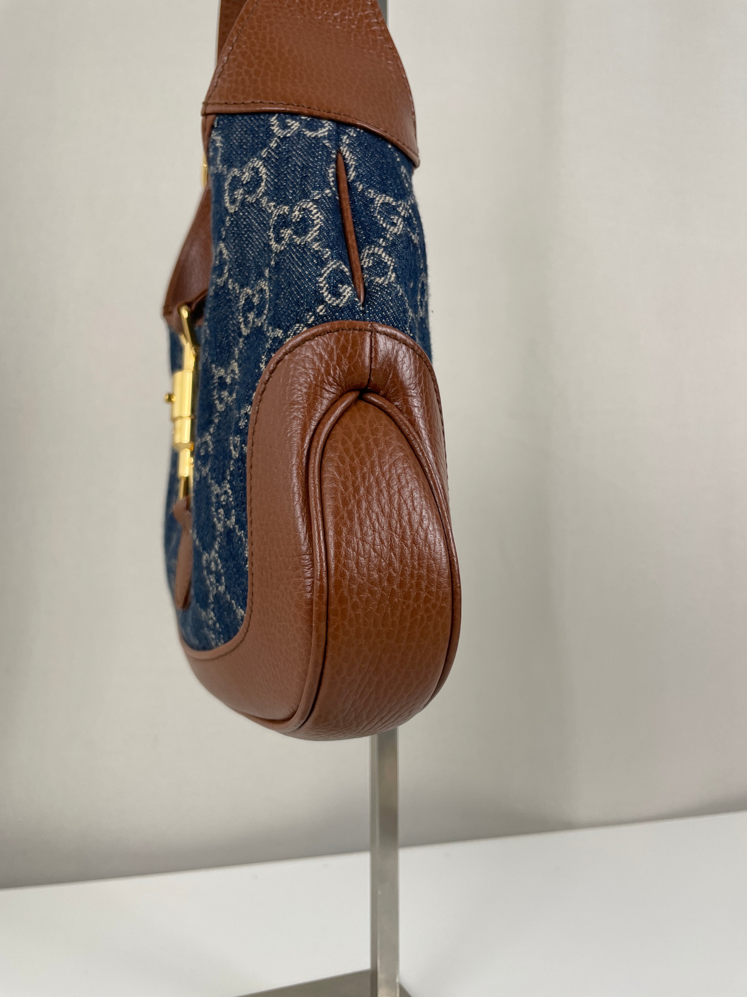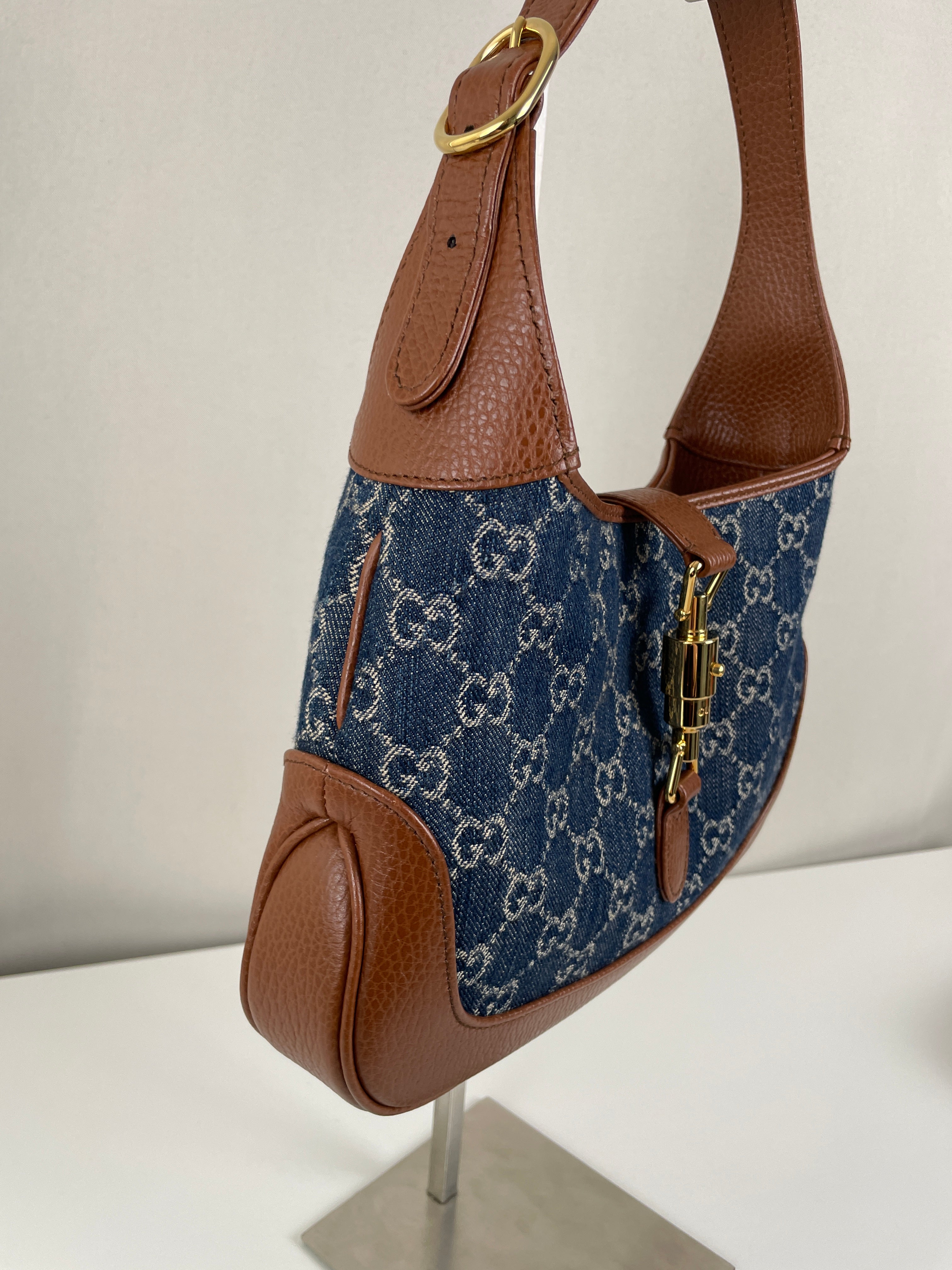 Ce sac en jean Gucci GG est comme neuf. Il est en très bon état, tout comme les parties en cuir. L'intérieur est également en très bon état. Il est doté d'une bandoulière réglable pour le porter en bandoulière.