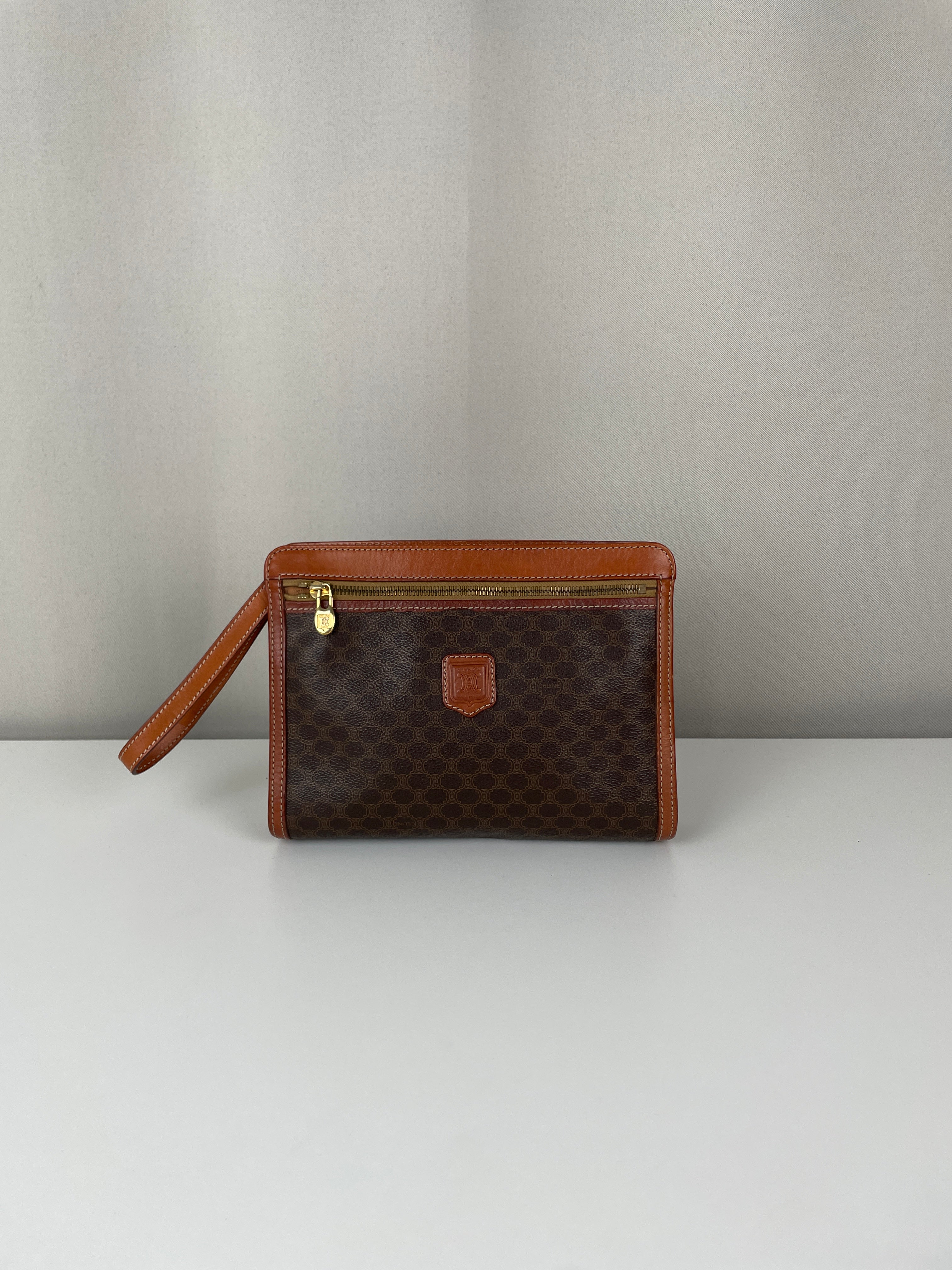 Pochette Céline en macadam en toile marron