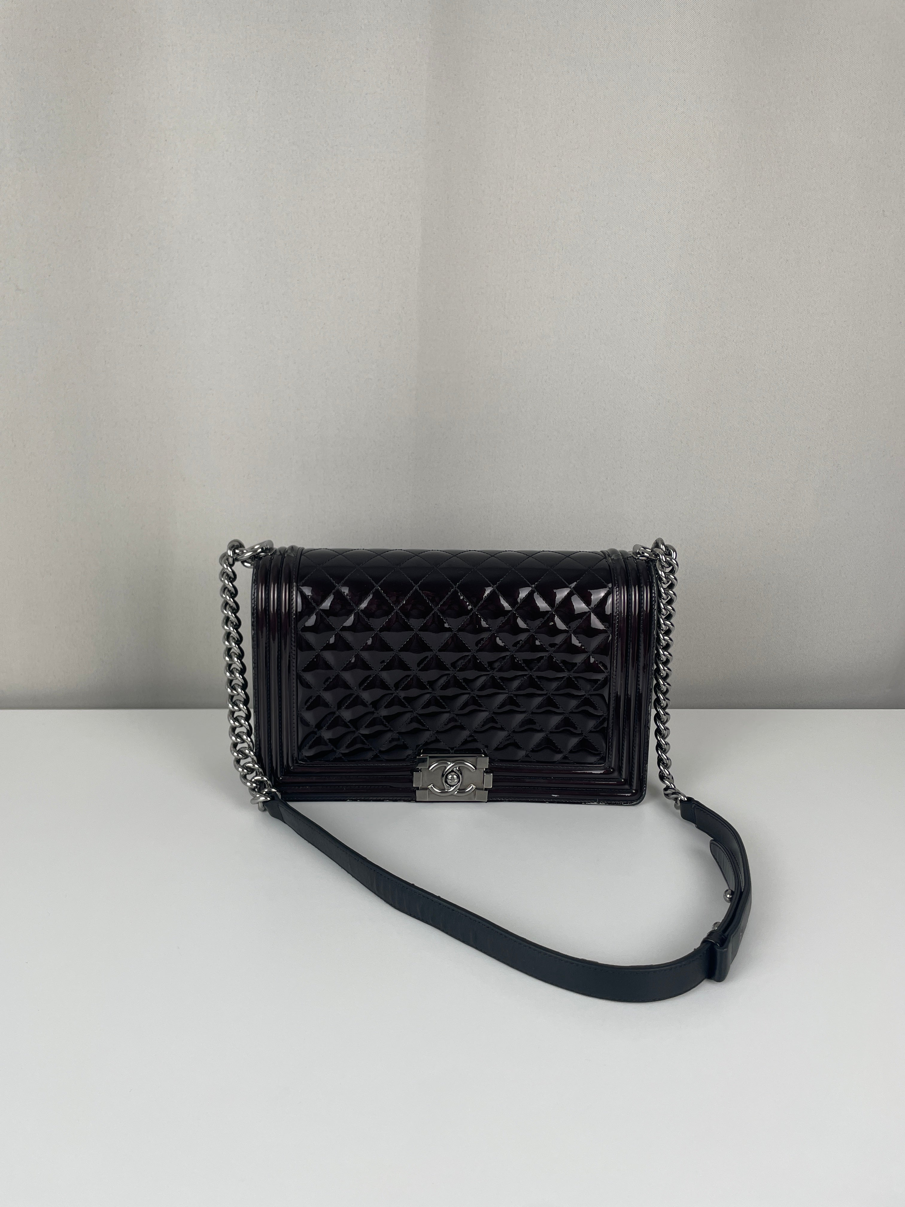 Sac Chanel Boy medium cherry black cuir verni