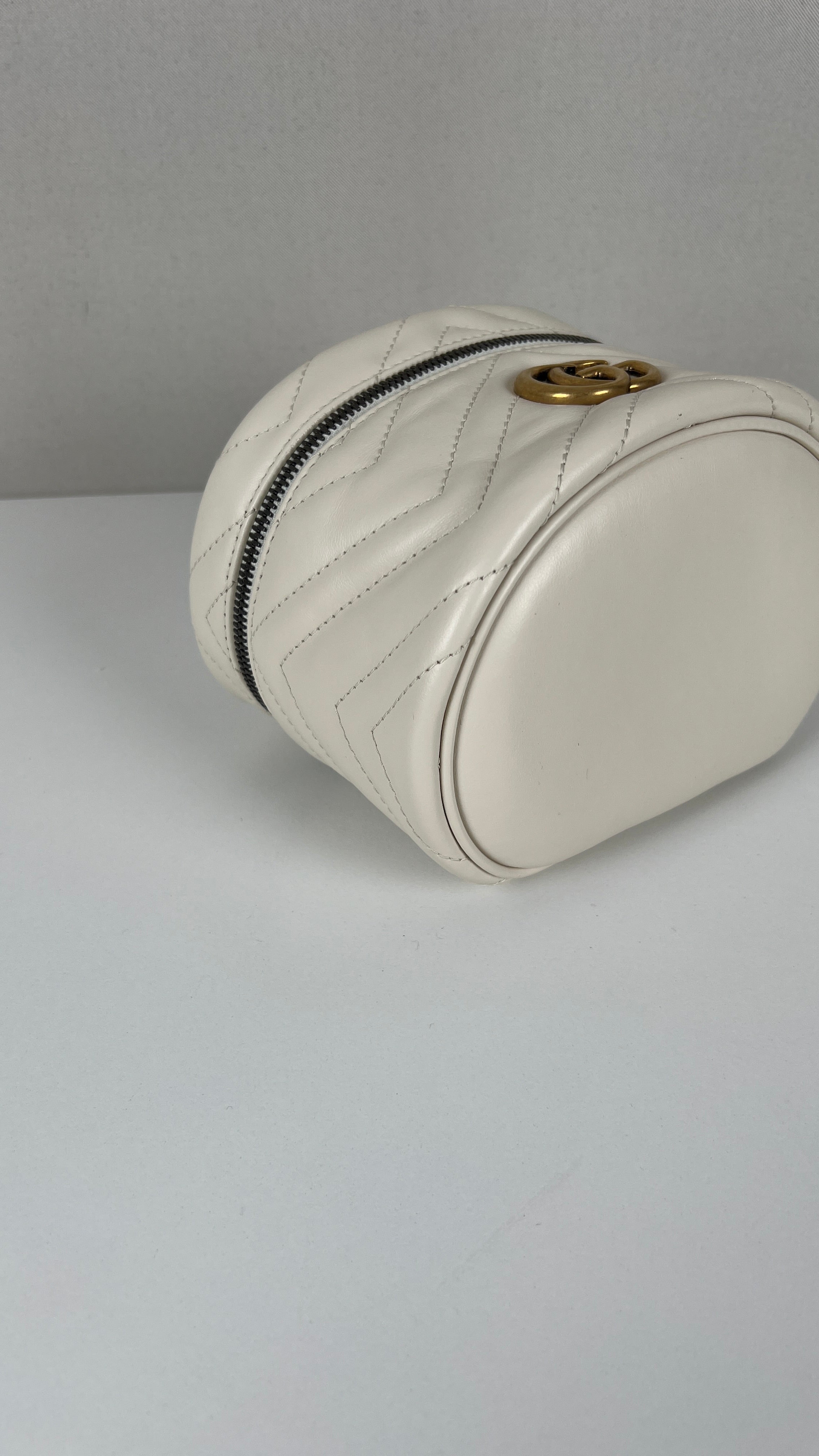 Ce Vanity Gucci est en très bon état, comme neuf. Le cuir et les coins sont en très bon état. L'intérieur est en très bon état, le miroir est un peu sale et on peut voir que l'intérieur a été un peu utilisé mais presque rien.