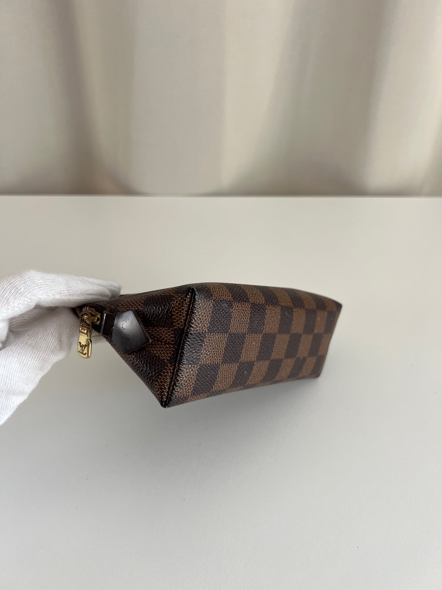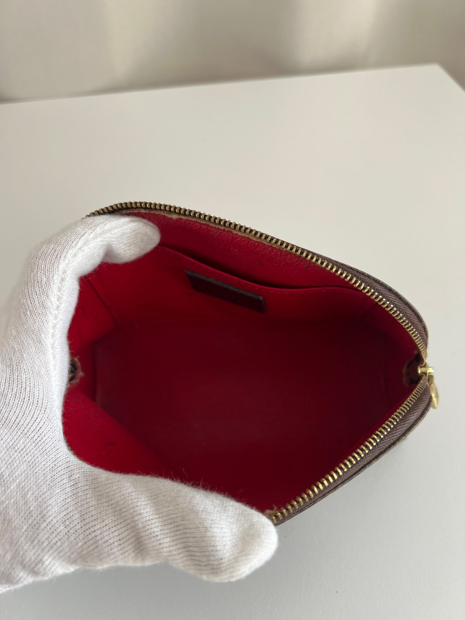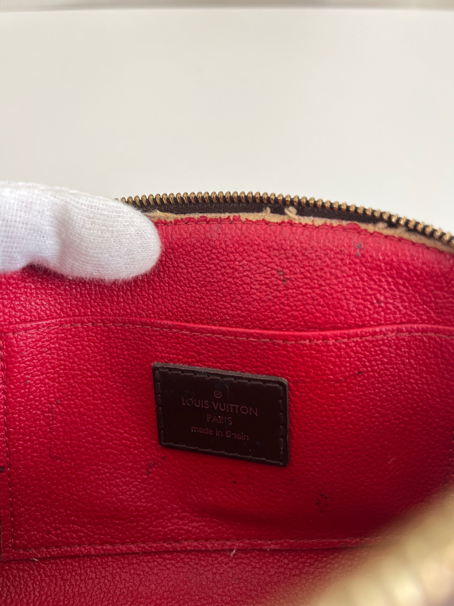Cette pochette cosmétique Louis Vuitton est en bon état. La toile et les coins sont en très bon état, les coins sont légèrement frottés. La bijouterie est en très bon état légèrement usé. L'intérieur est en bon état mais il y a quelques paillettes. La partie proche de la fermeture zip est un un peu abîmés (souvent le cas sur ce genre de pochette).