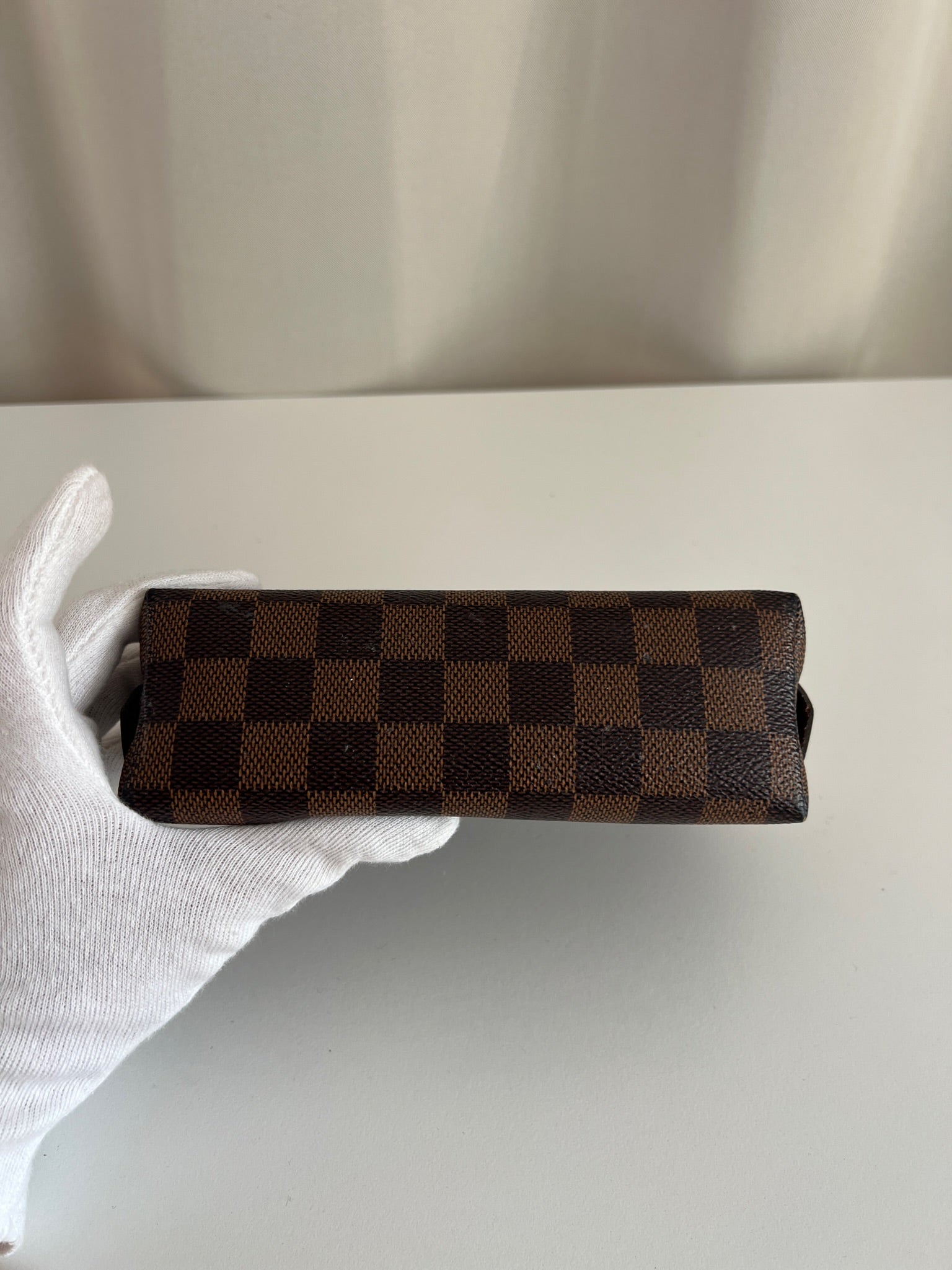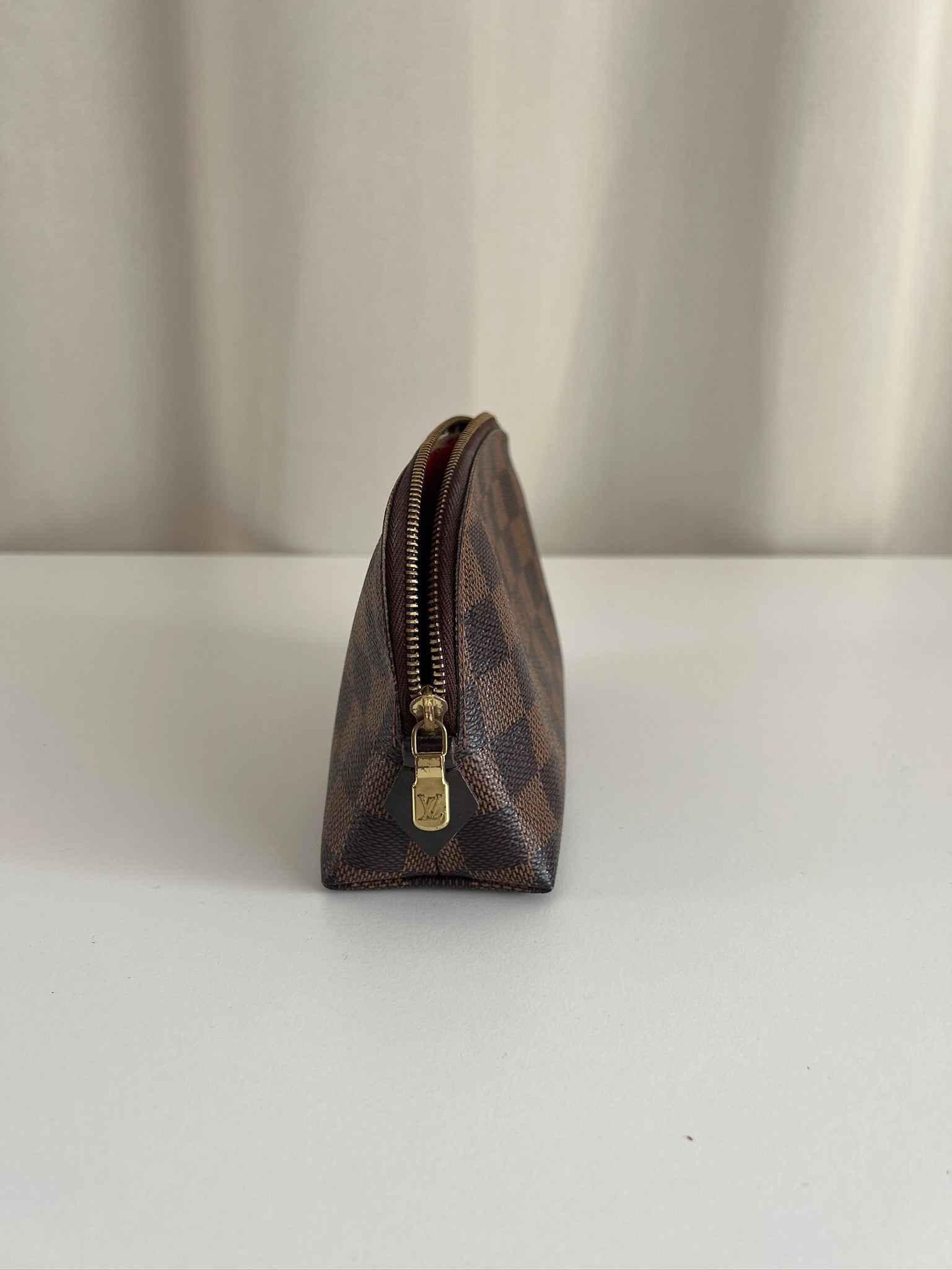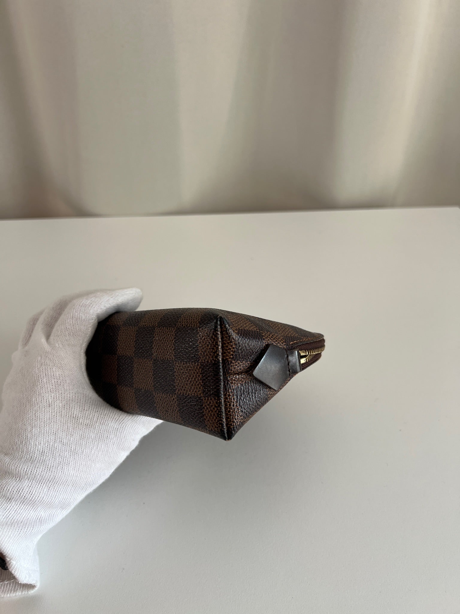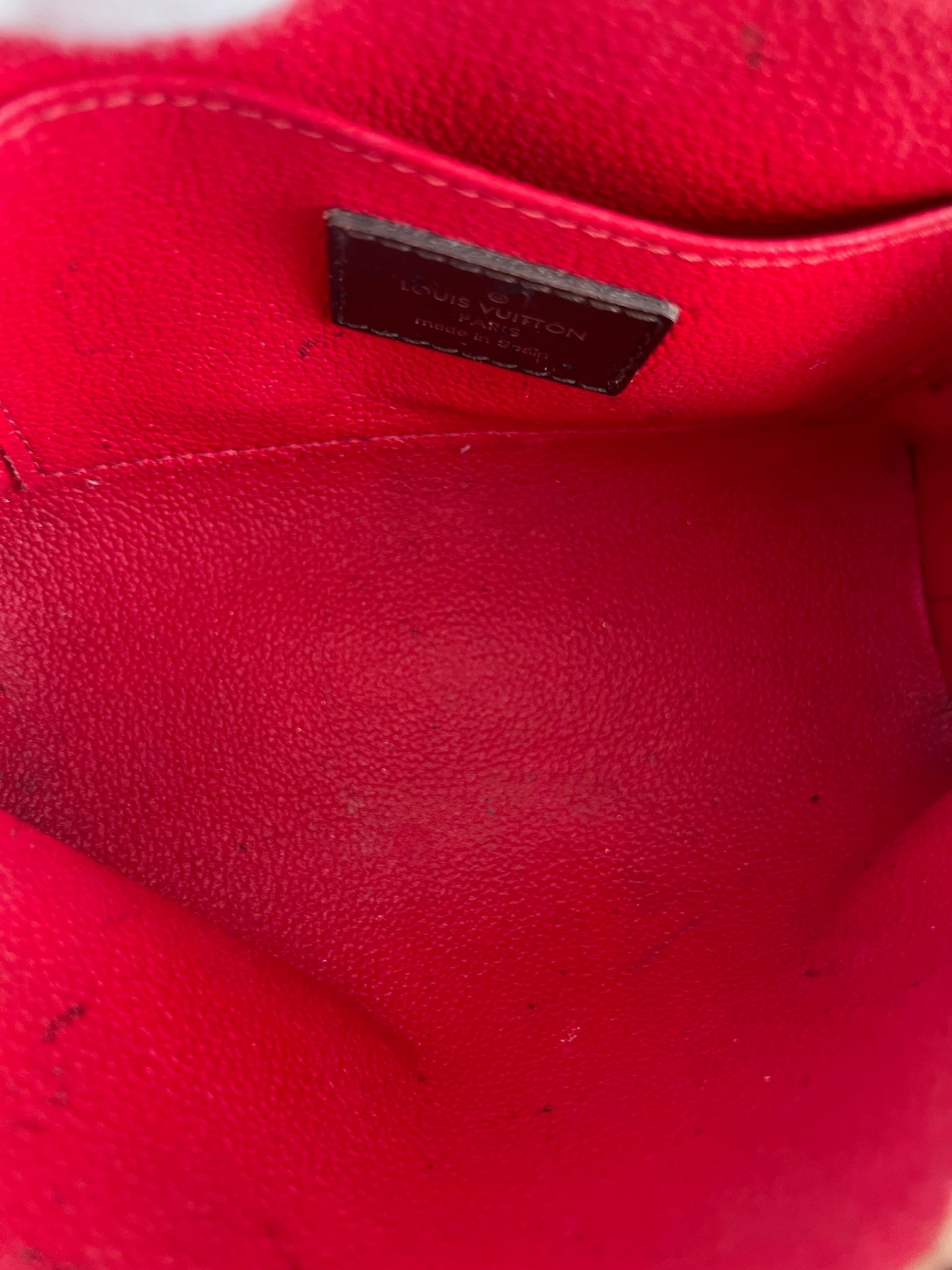 Cette pochette cosmétique Louis Vuitton est en bon état. La toile et les coins sont en très bon état, les coins sont légèrement frottés. La bijouterie est en très bon état légèrement usé. L'intérieur est en bon état mais il y a quelques paillettes. La partie proche de la fermeture zip est un un peu abîmés (souvent le cas sur ce genre de pochette).