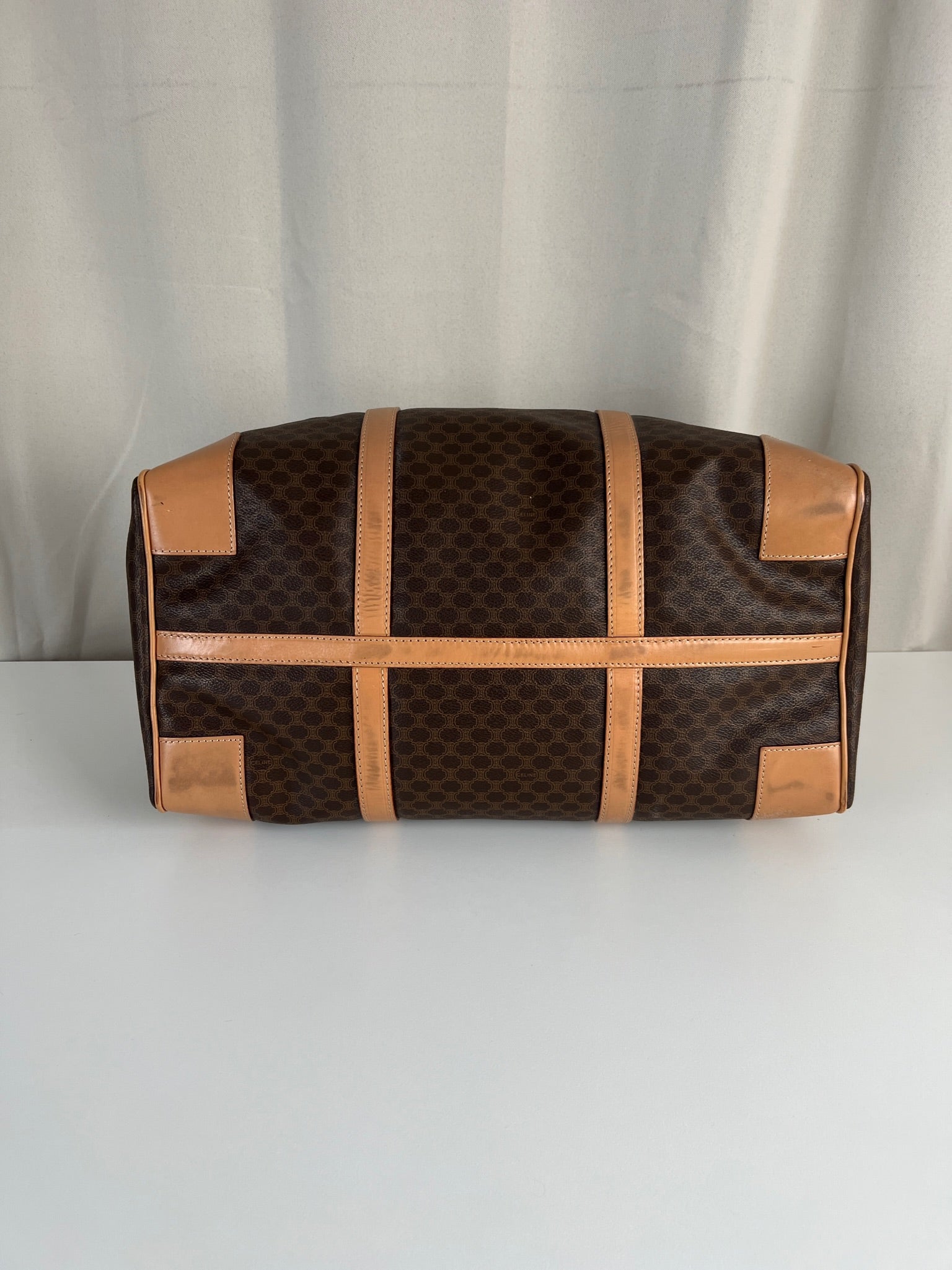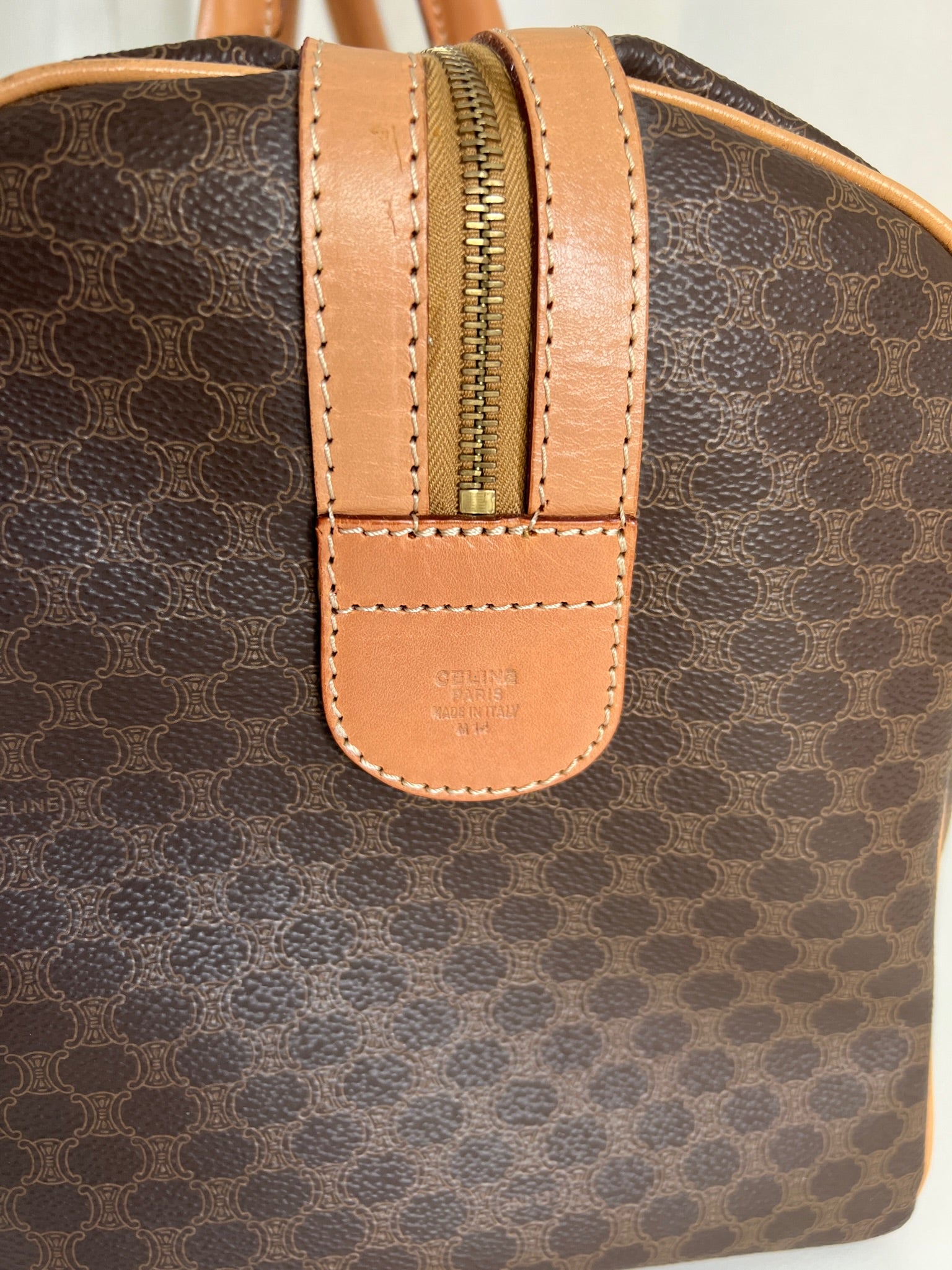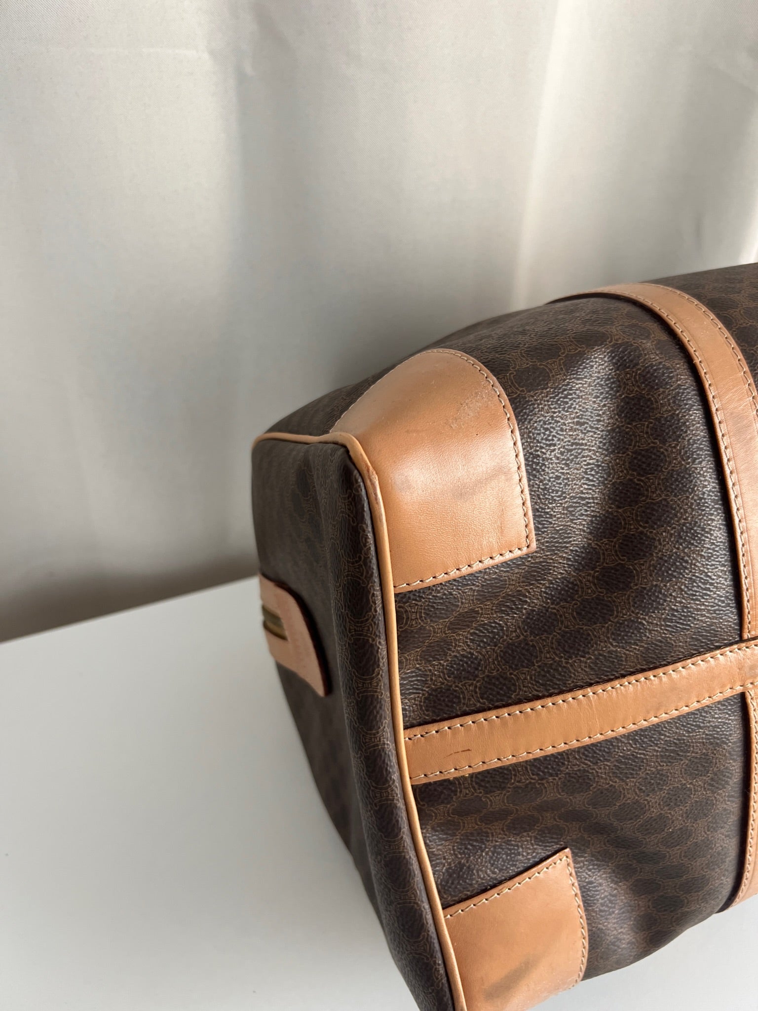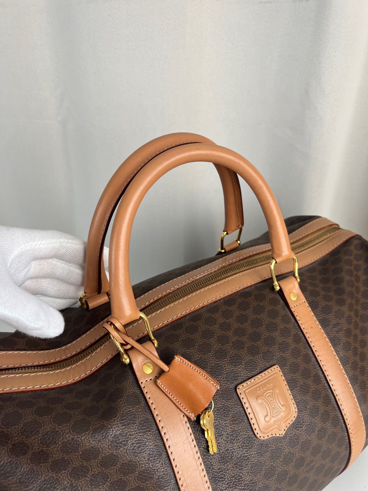 Le sac de voyage Céline Triomphe est en très bon état. Le cuir est en très bon état, sur le dessous vous avez des traces d'usure comme vous pouvez le voir sur les photos. Les poignées sont superbes et les coins présentent également des signes d'usure et sont un peu frottés. L'intérieur est en très bon état. Vous avez une poche zippée à l'intérieur. La bijouterie est légèrement utilisé. Il est livré avec un cadenas et des clés.