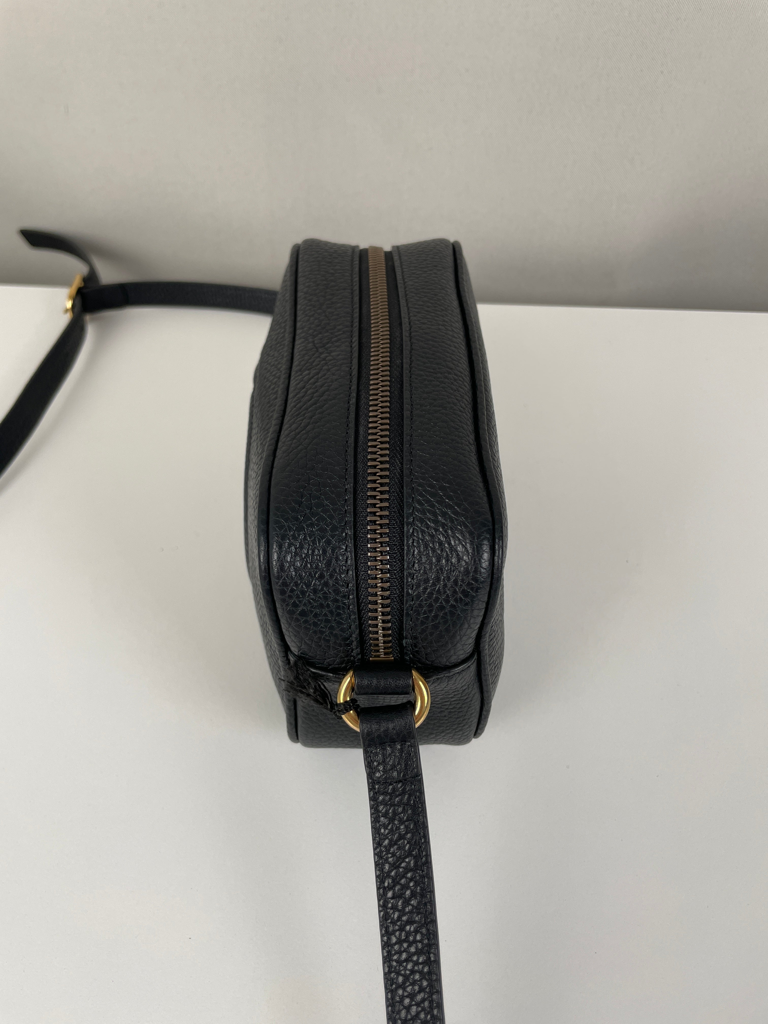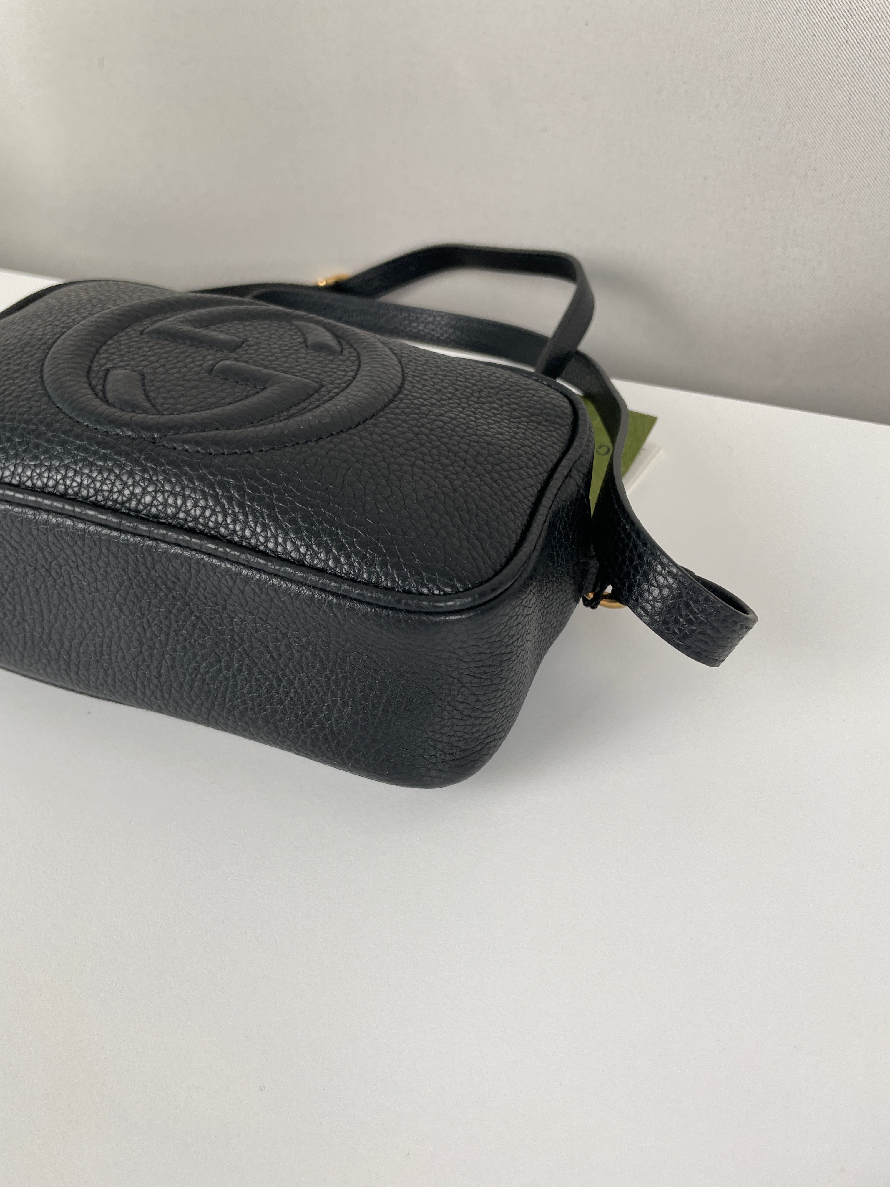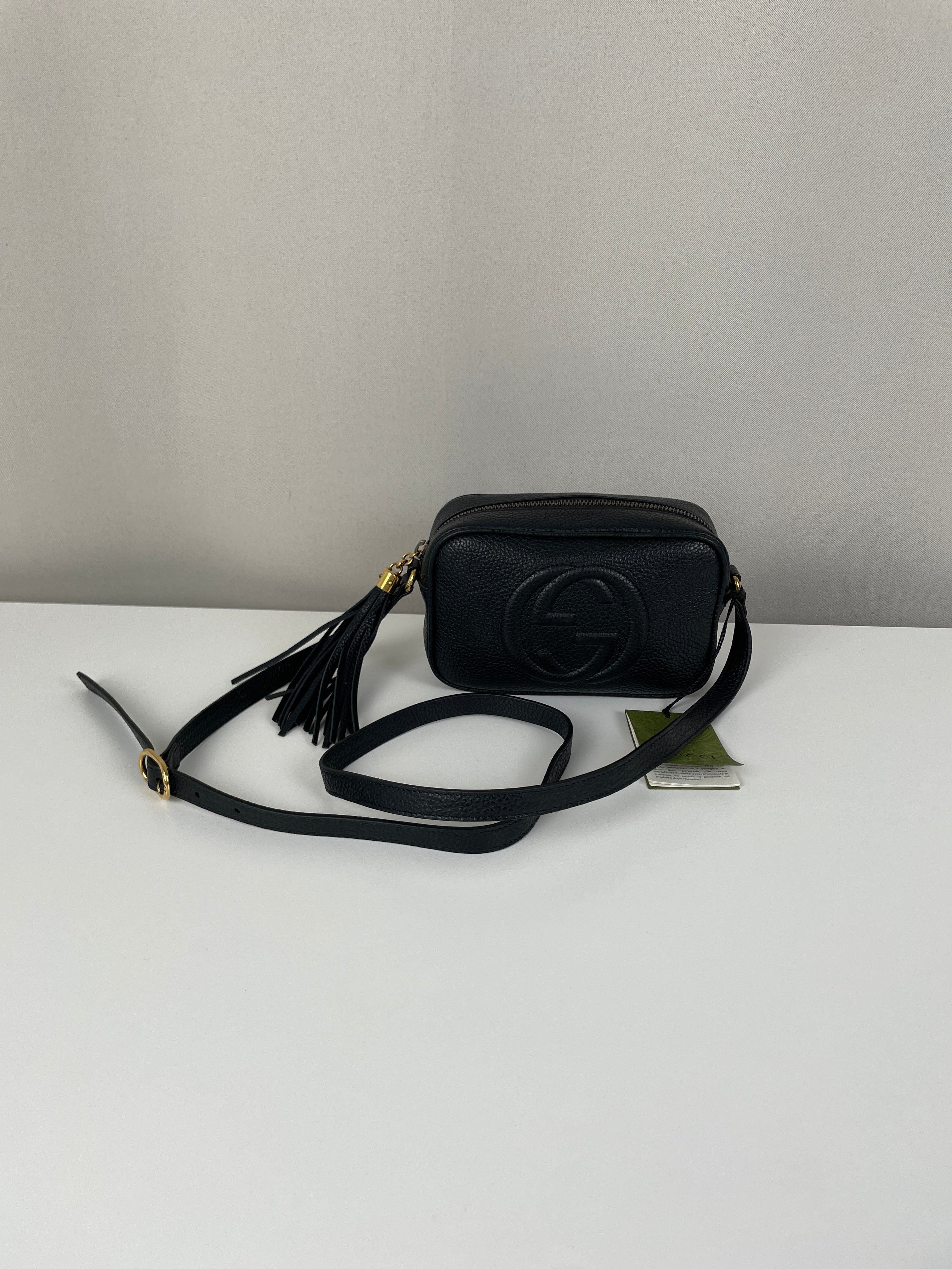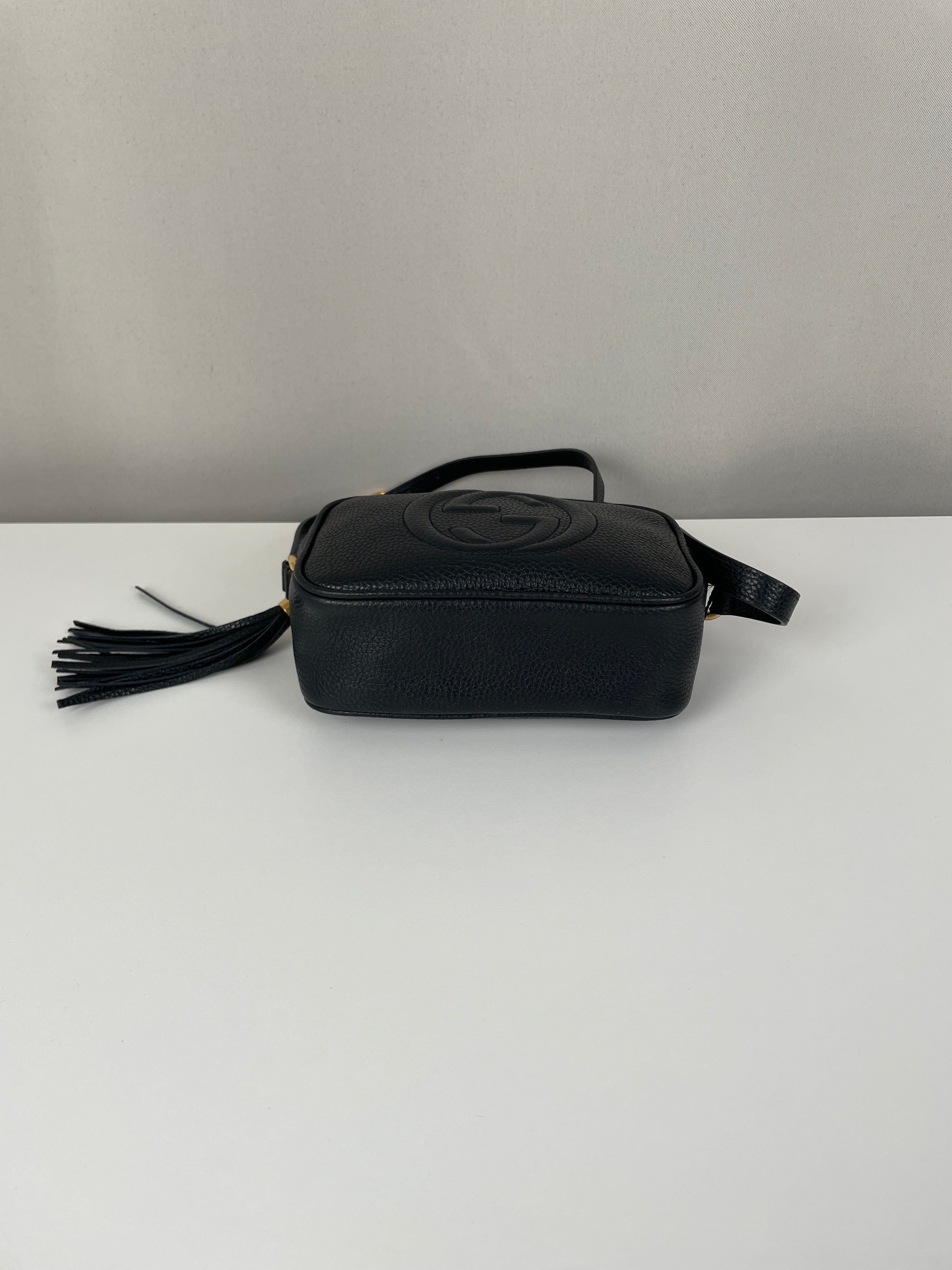 Ce sac Gucci GG Soho noir est neuf. Les coins sont en excellent état ainsi que le cuir et l'intérieur. C'est un sac bandoulière.