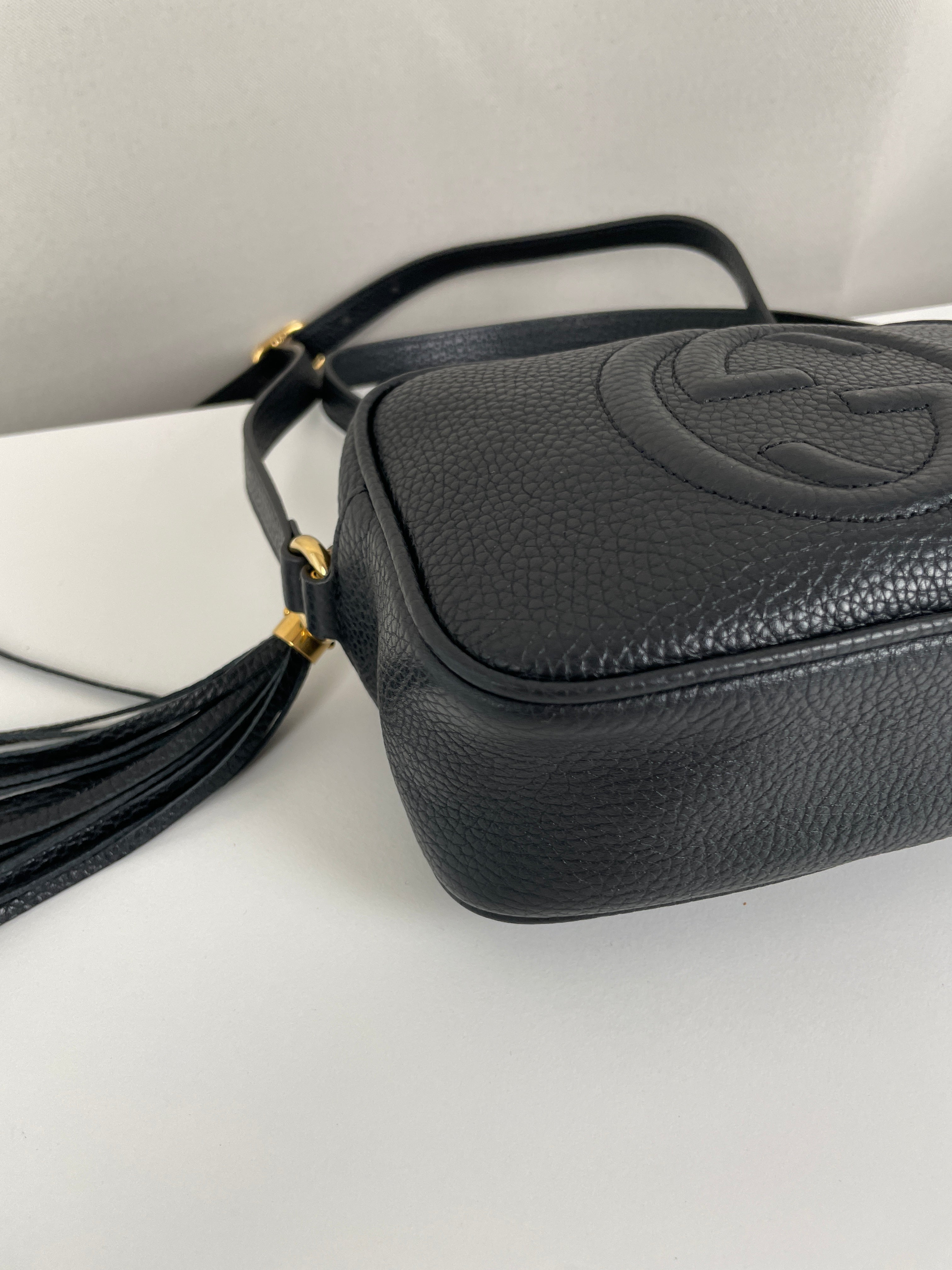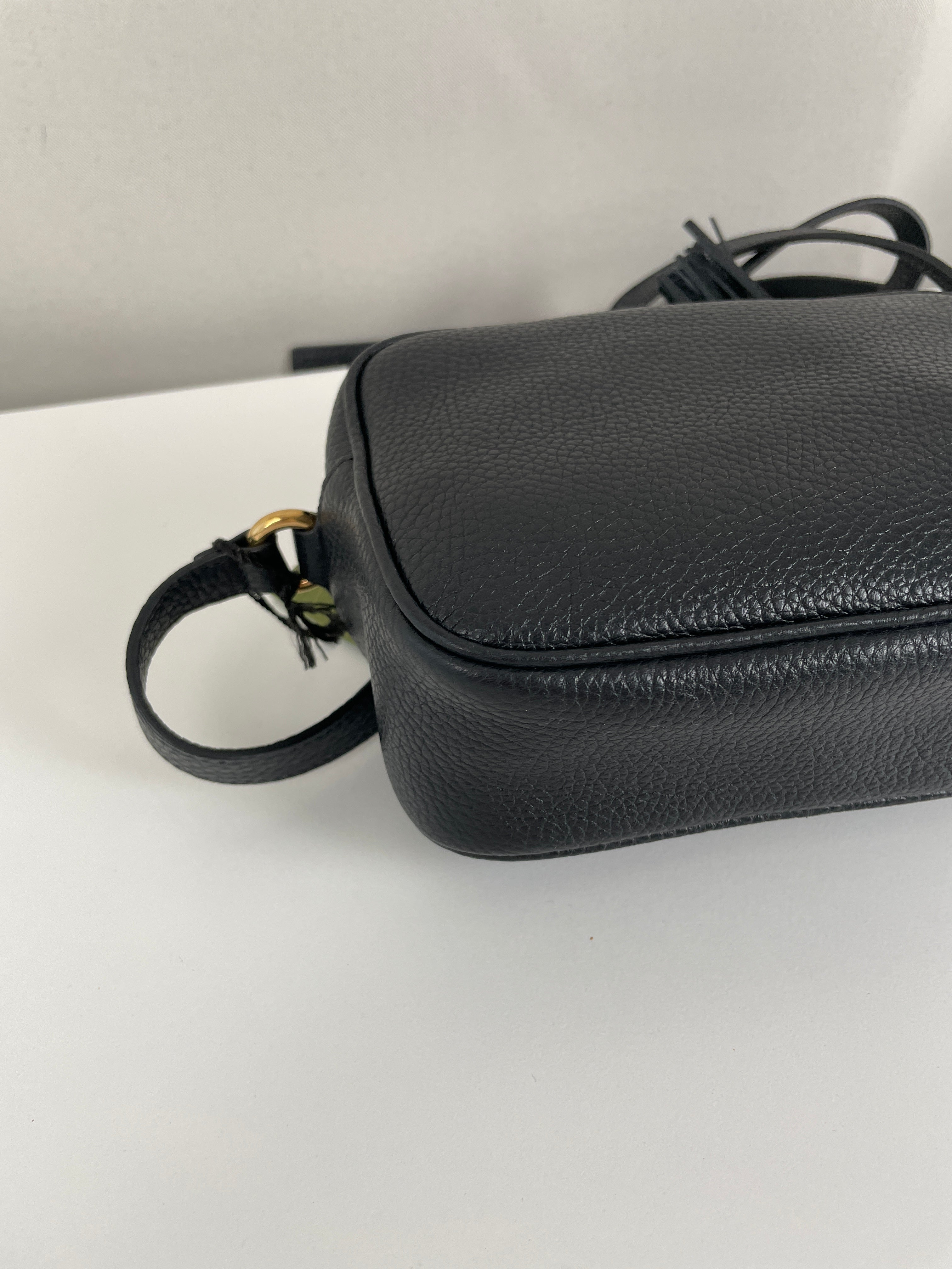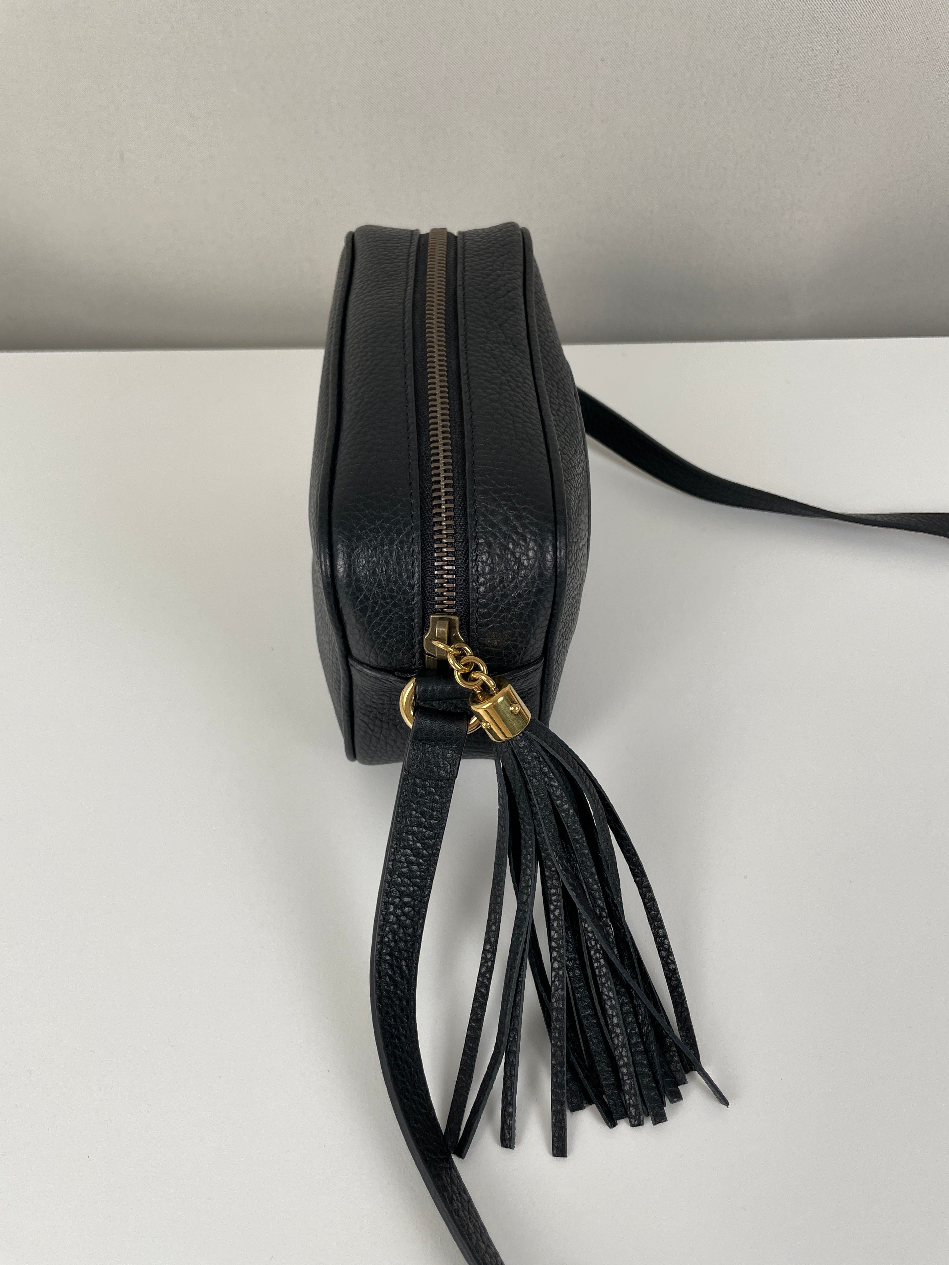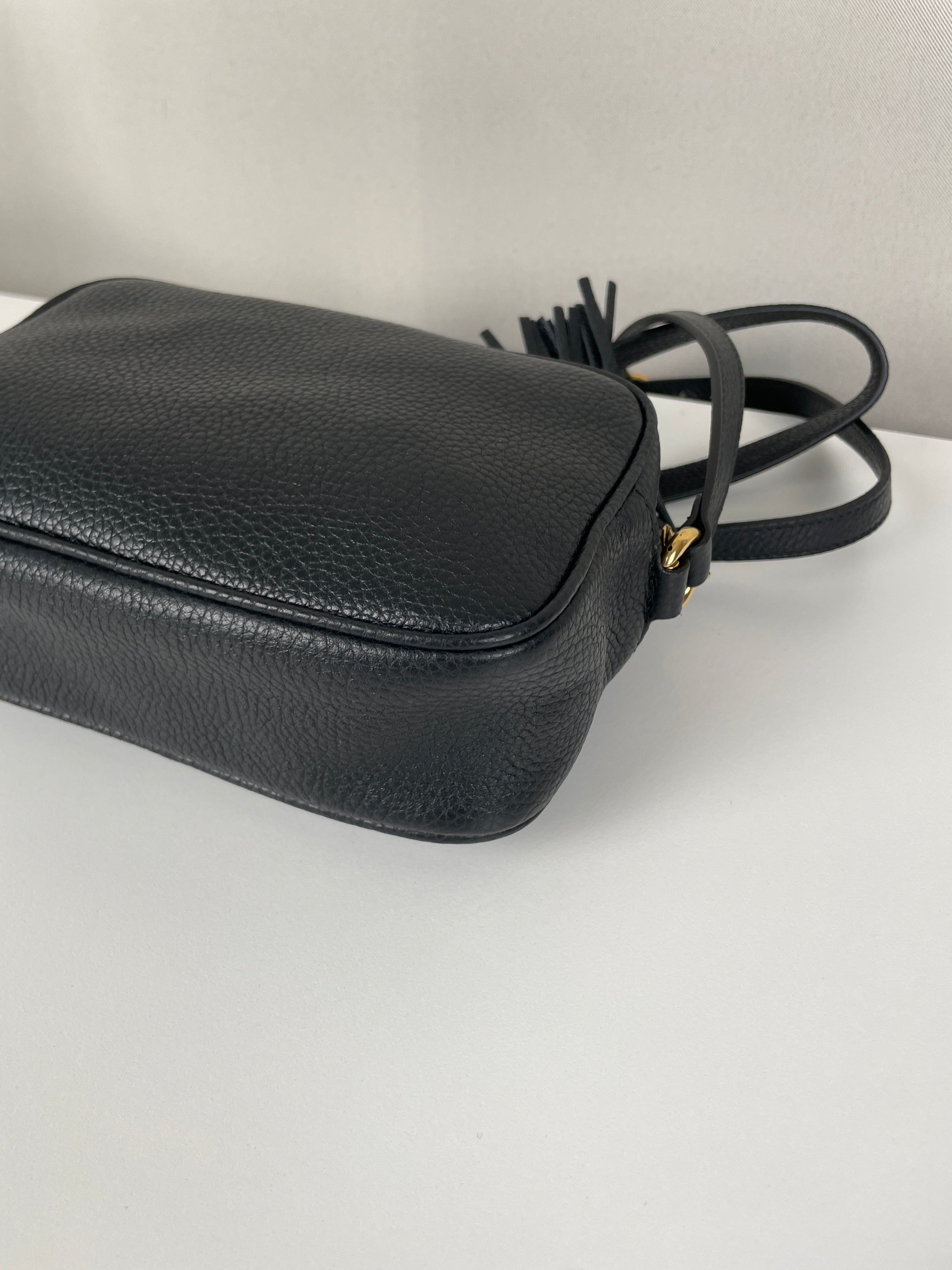 Ce sac Gucci GG Soho noir est neuf. Les coins sont en excellent état ainsi que le cuir et l'intérieur. C'est un sac bandoulière.