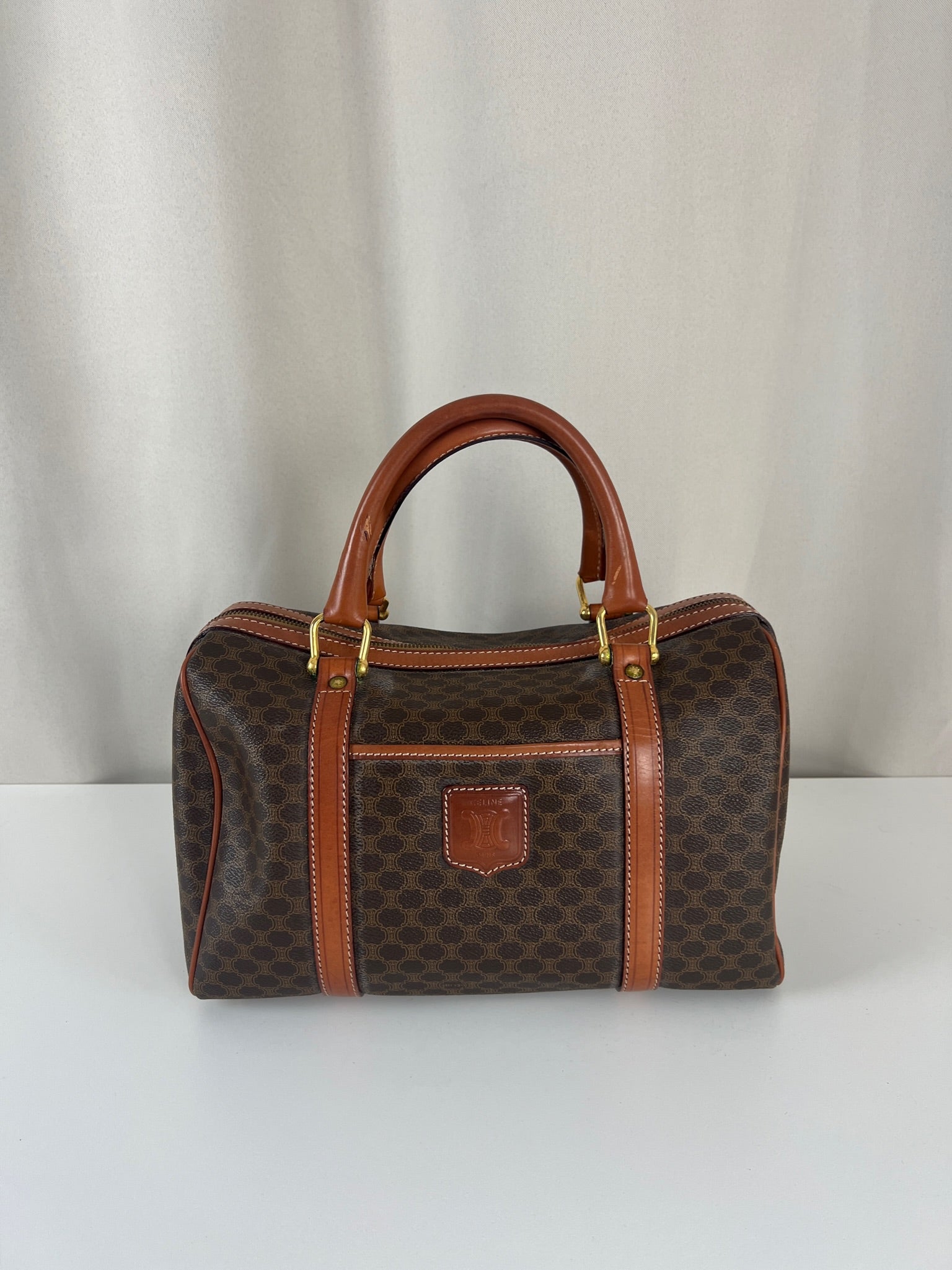 Sac Céline Boston en Toile et Cuir marron