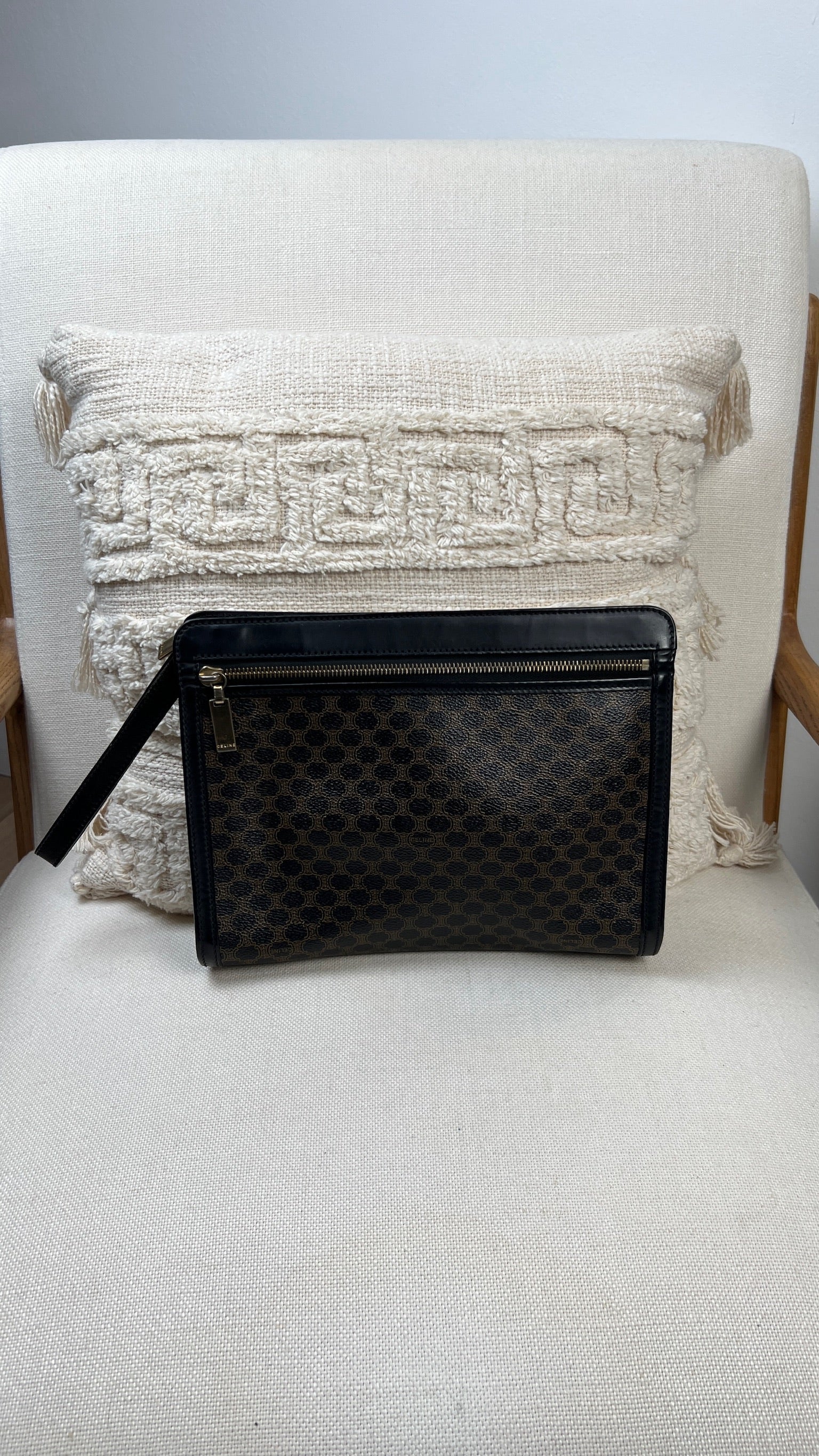 Pochette Céline Macadam noir et bijouterie dorée marron