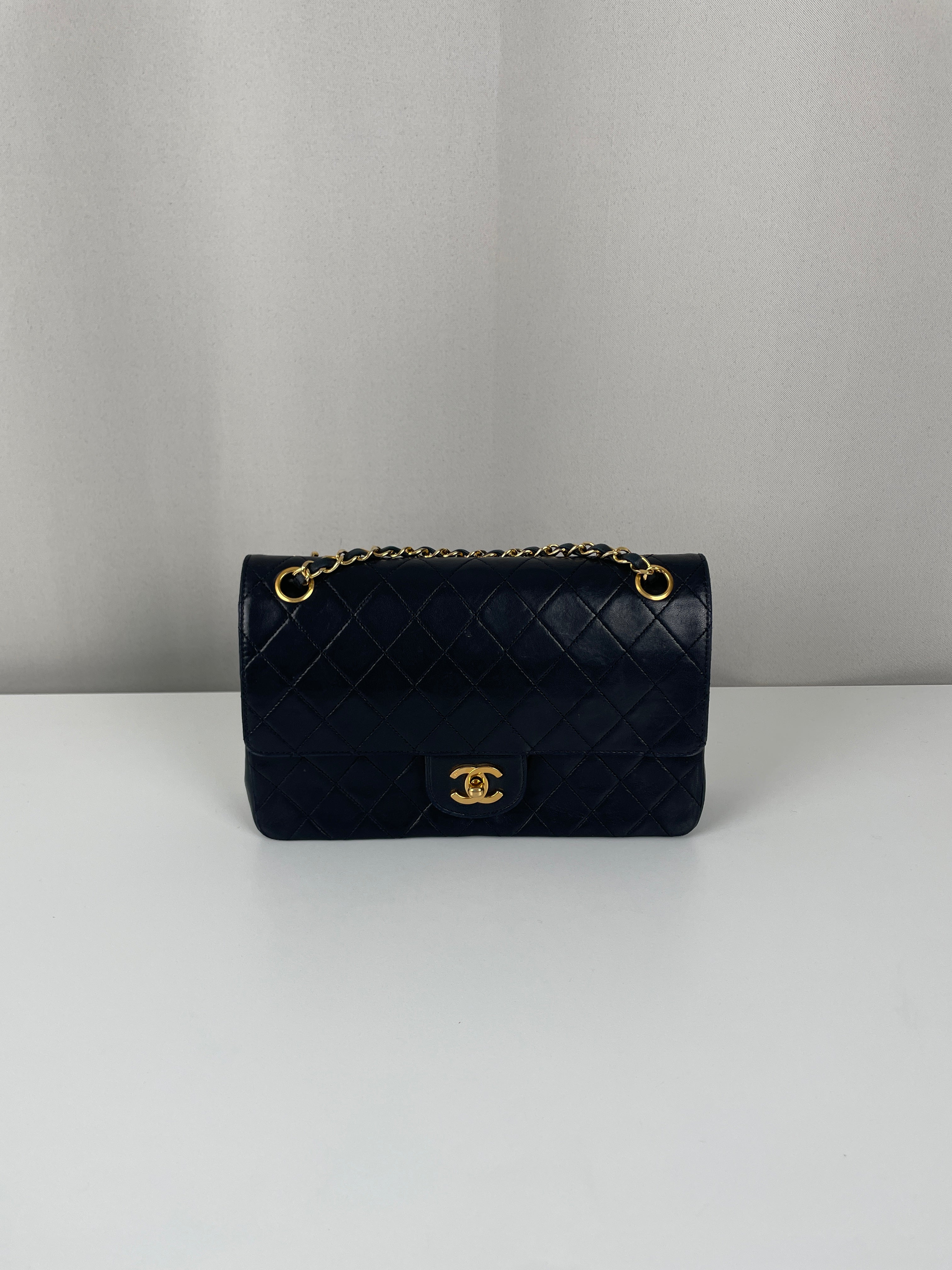 Sac bandoulière Chanel classique vintage 25 en cuir noir