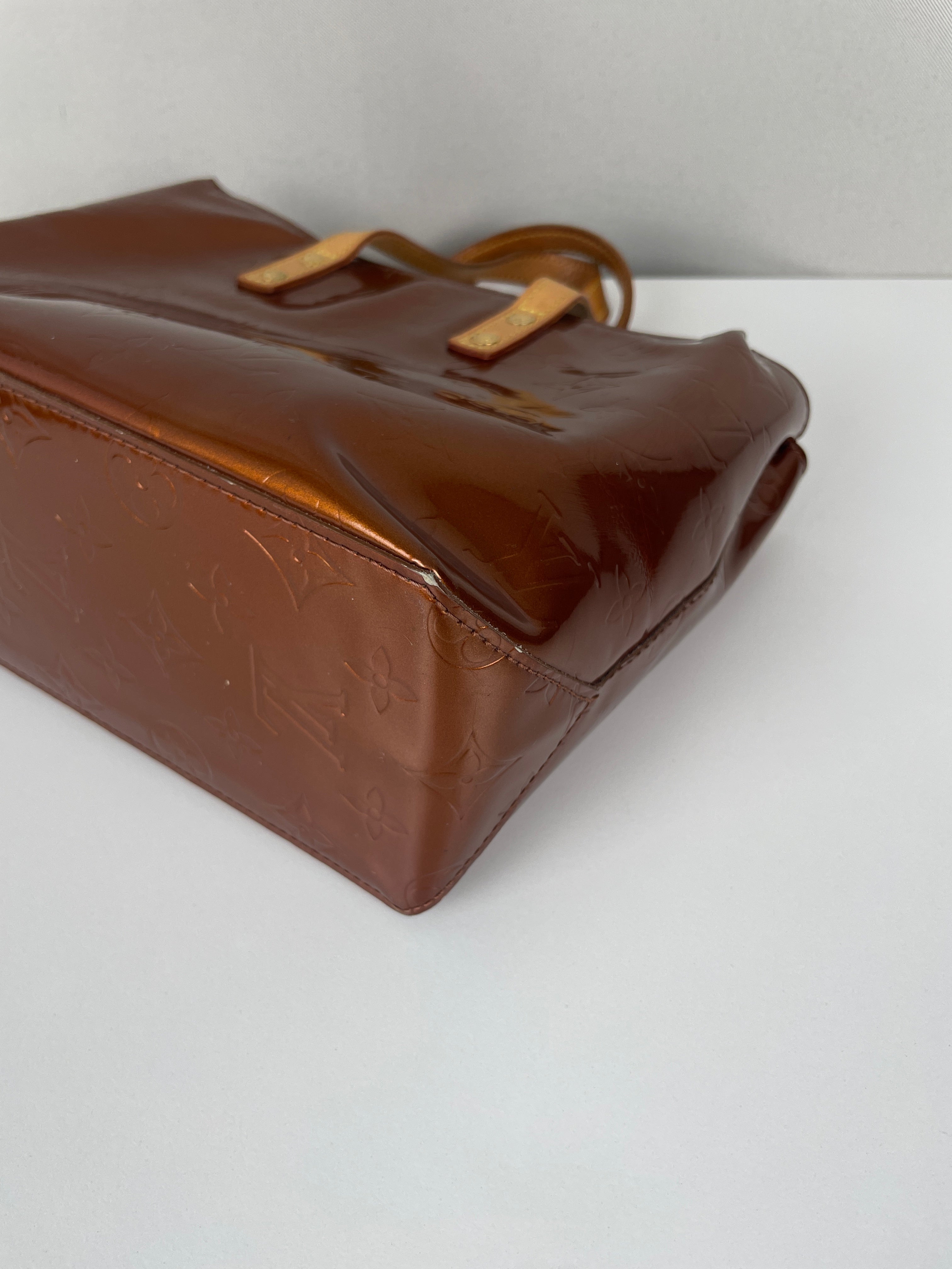 - Cuir verni : Bon état général mais montre quelques marques et rayures mineures dans certaines zones