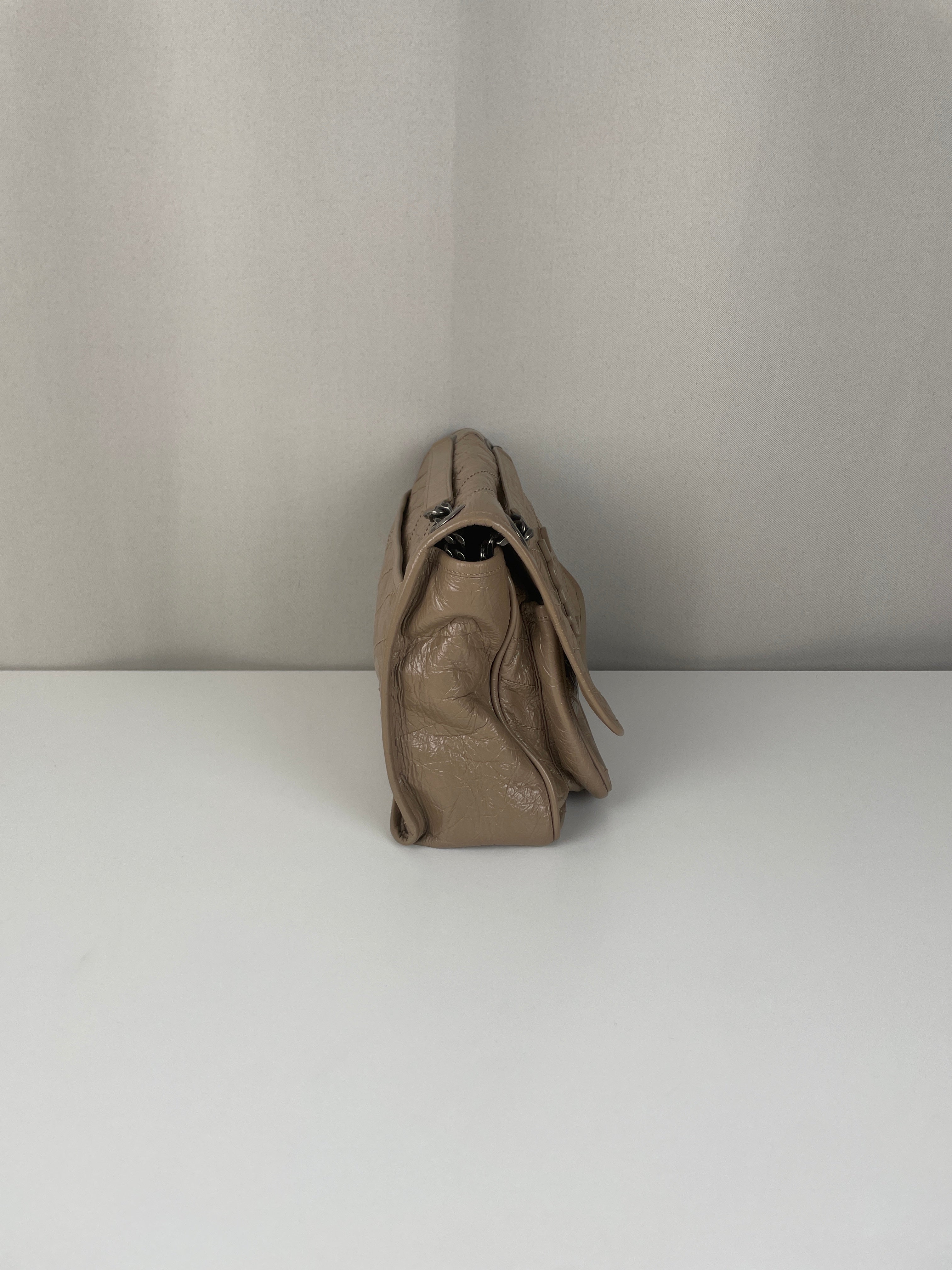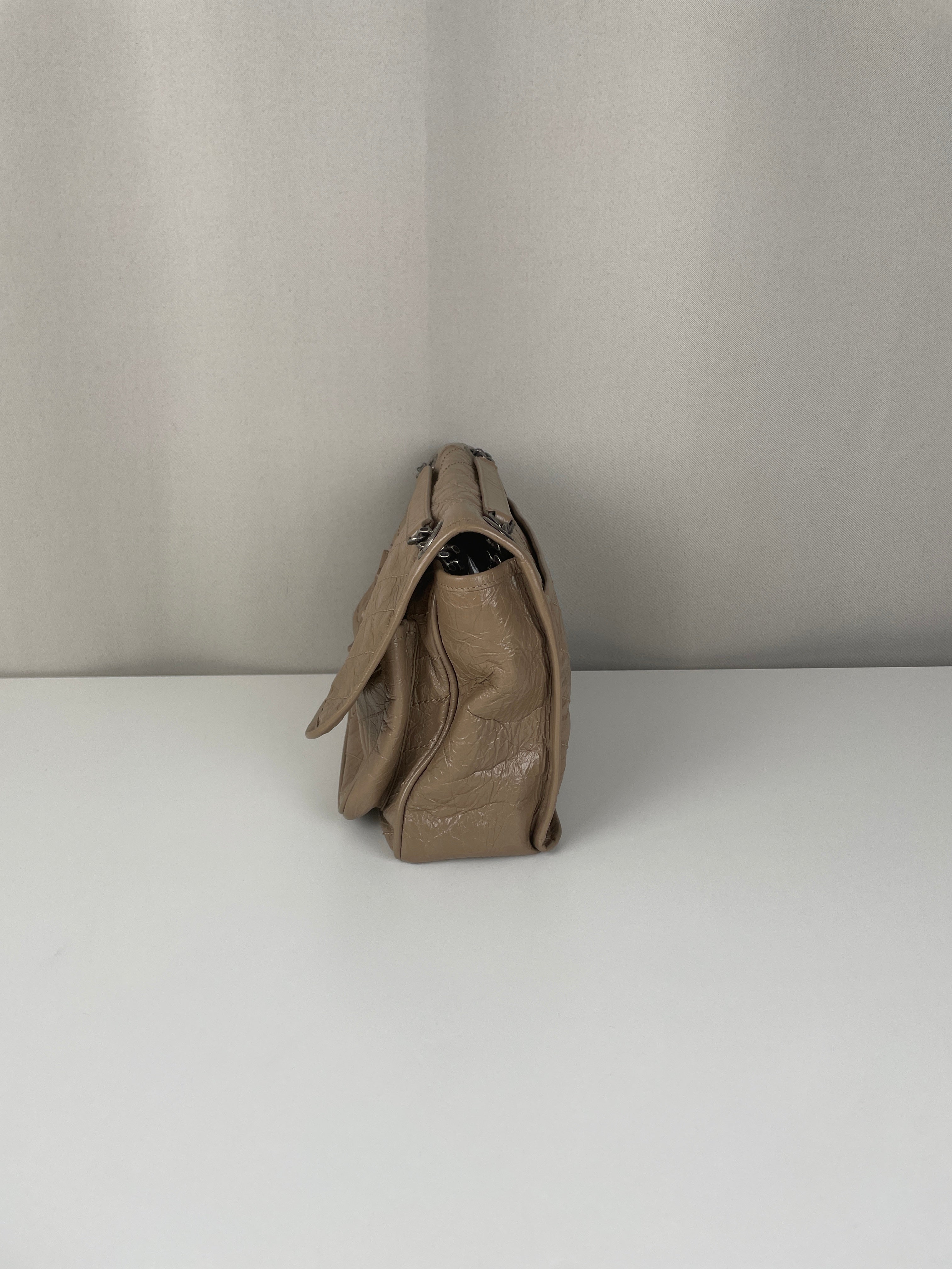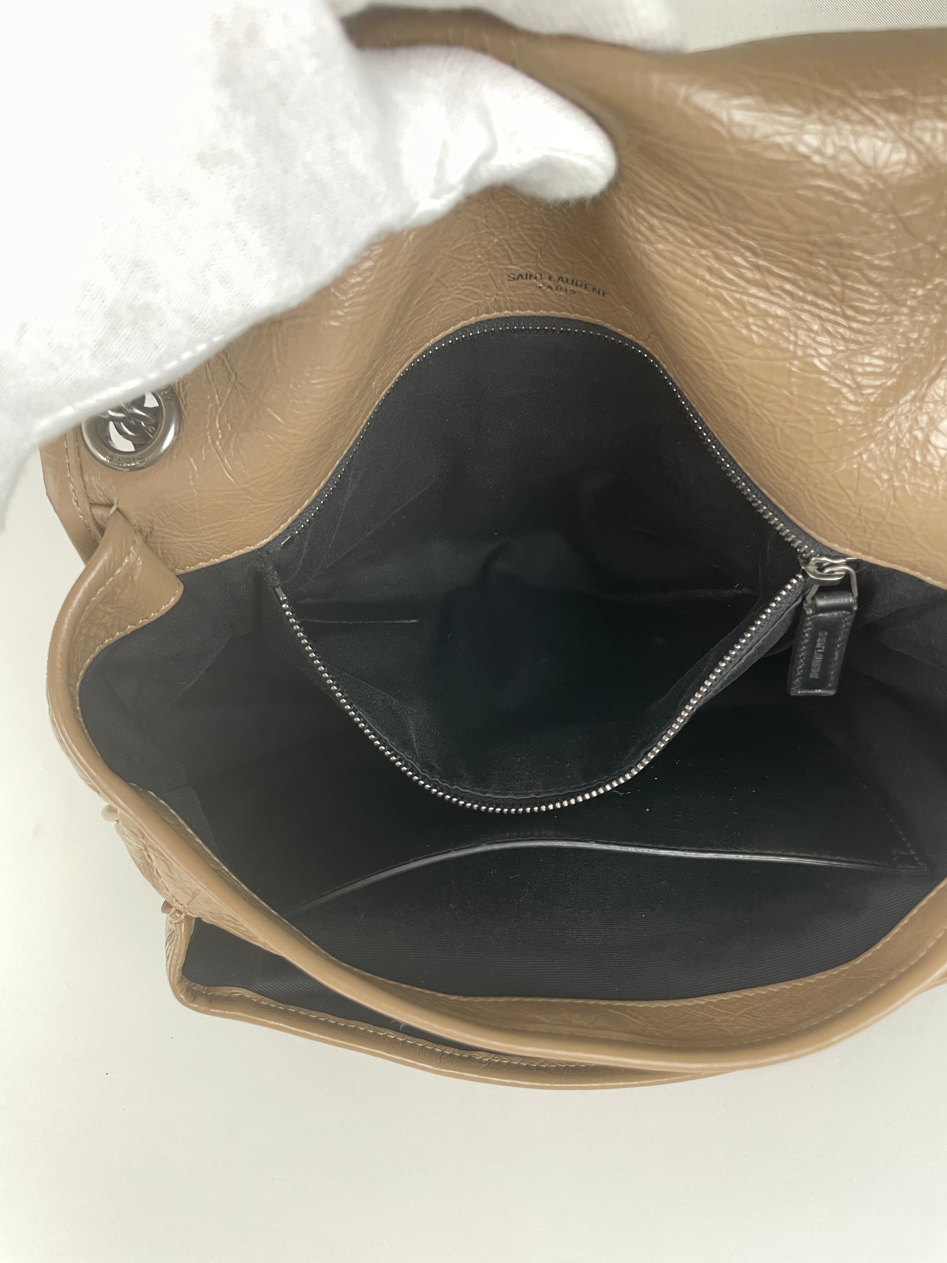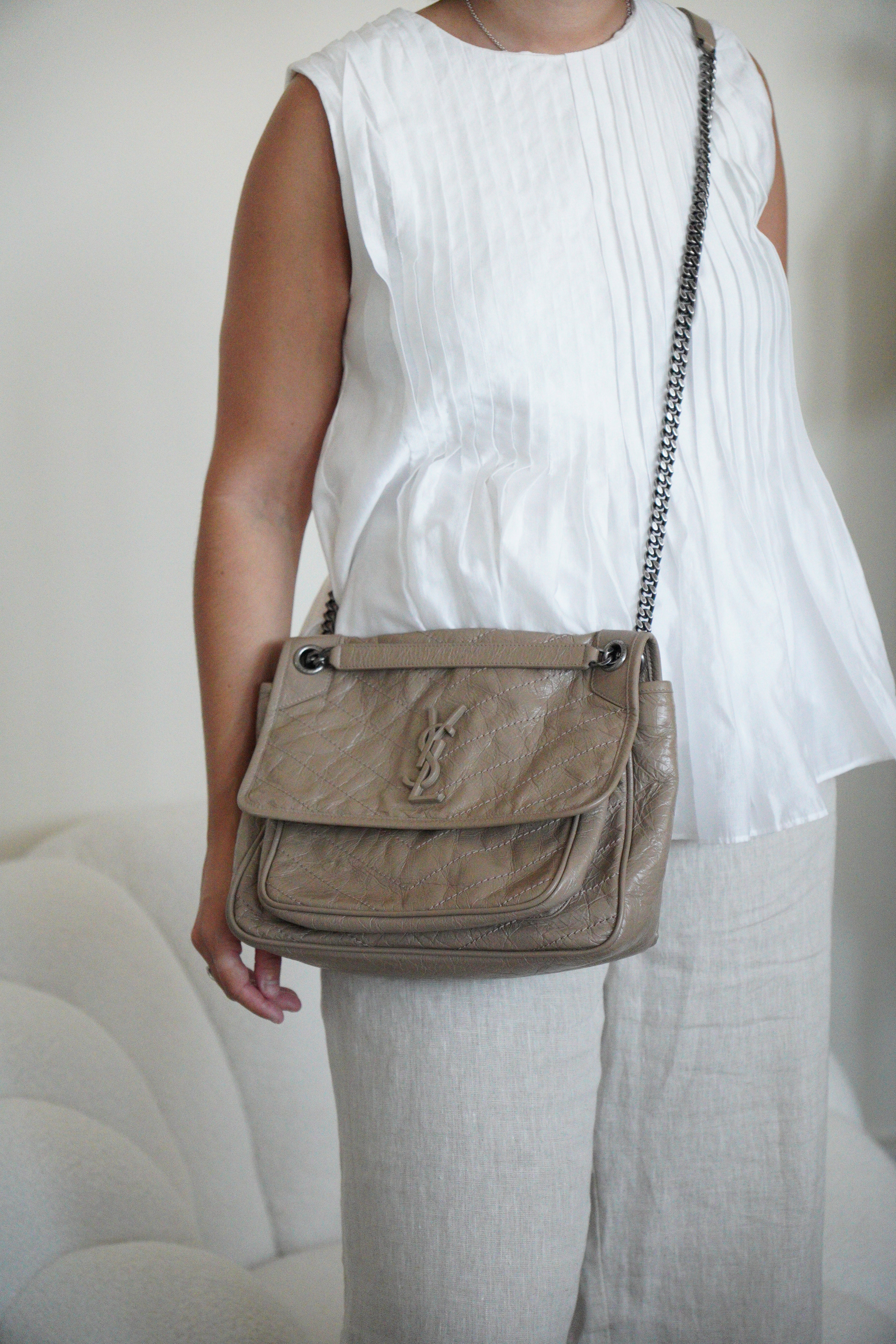 Le Niki Medium est l'un des modèles les plus contemporains et distinctifs de Saint Laurent. Cette édition en cuir beige illustre l'approche moderne du luxe de la maison avec une sophistication décontractée et un caractère authentique acquis par un usage délicat. Une pièce polyvalente qui incarne l'élégance sans effort de Saint Laurent et représente le mélange parfait entre chic décontracté et savoir-faire raffiné.