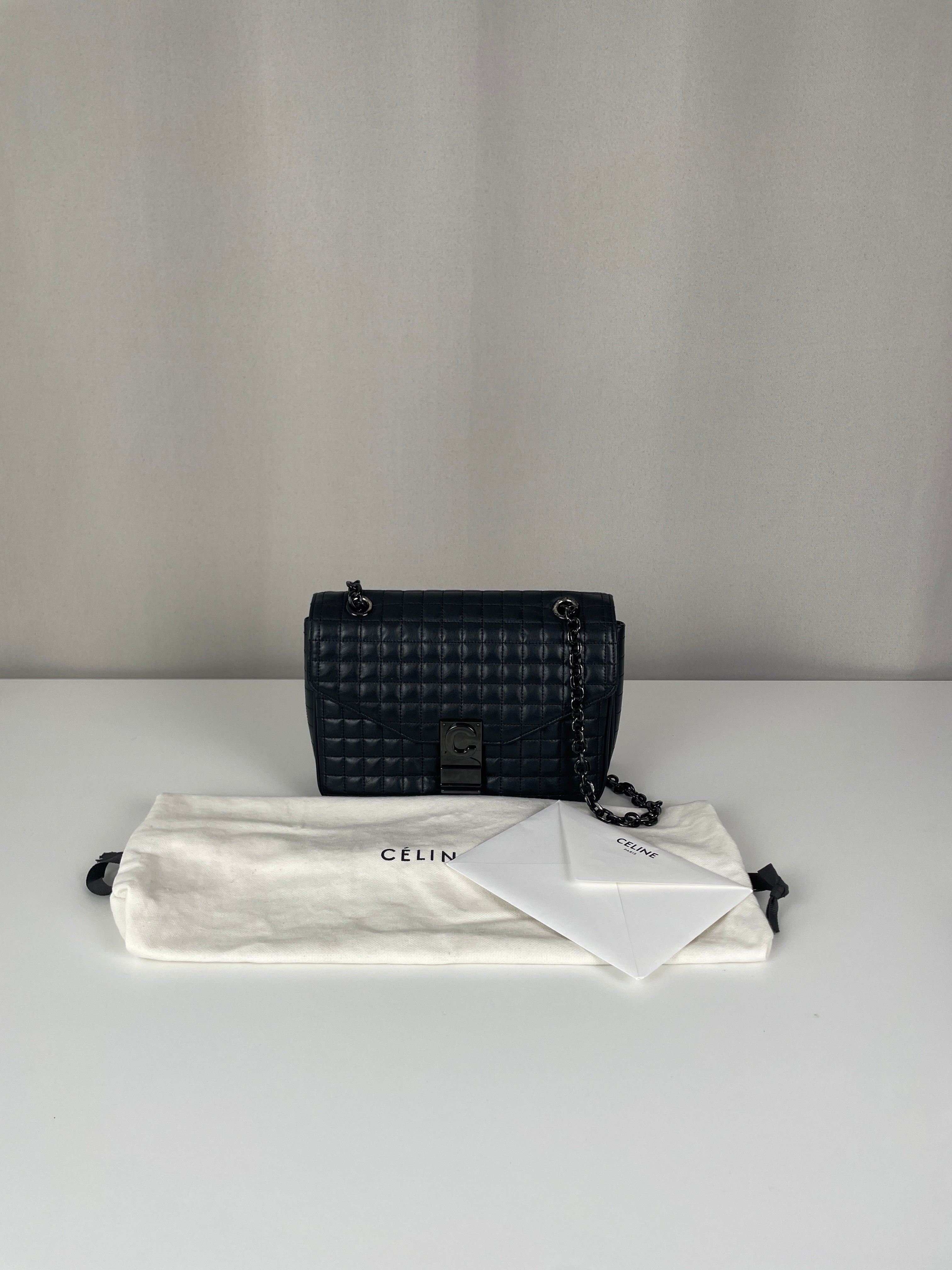 Sac épaule Céline Carriage triomphe vintage en cuir noir