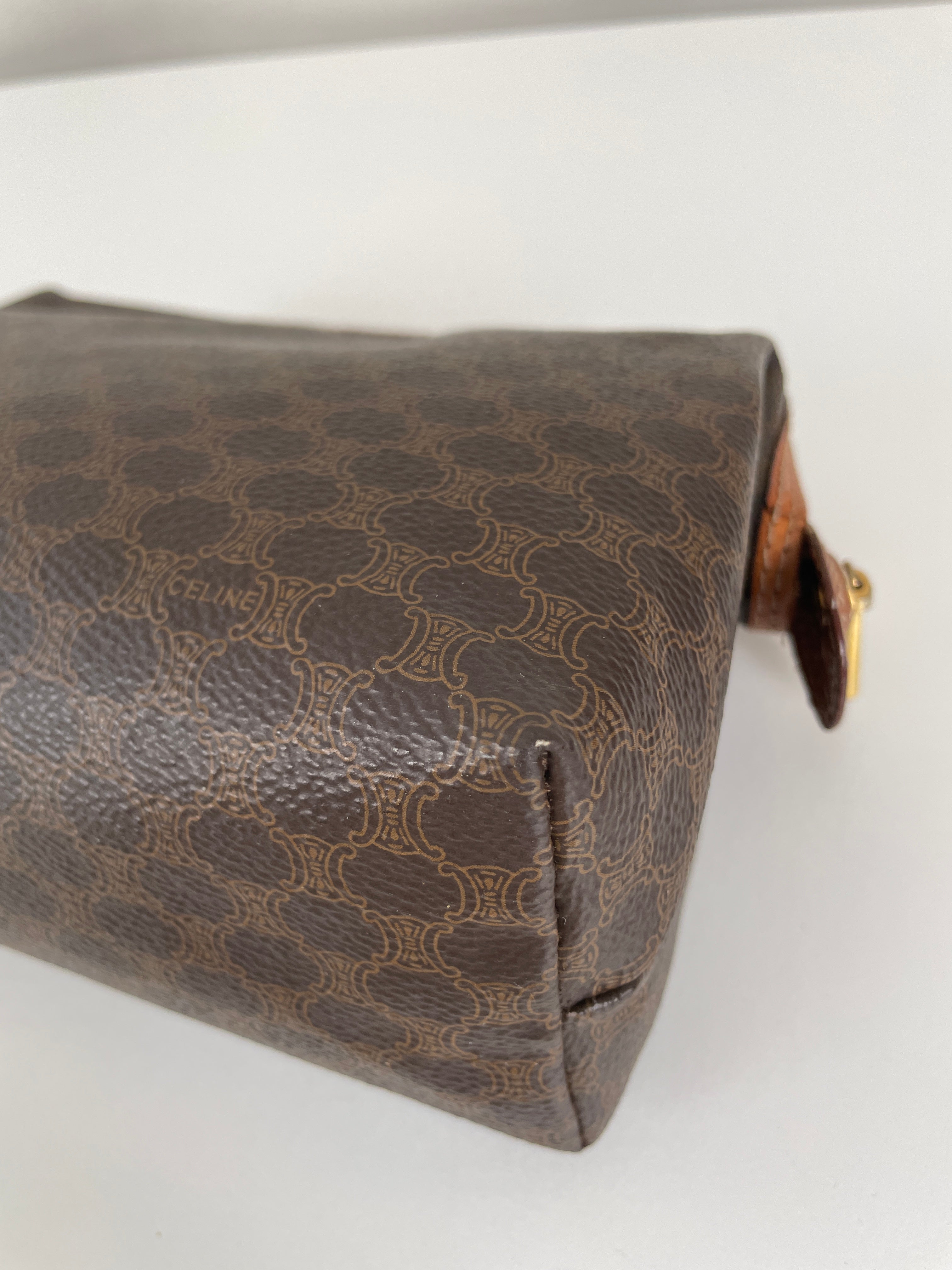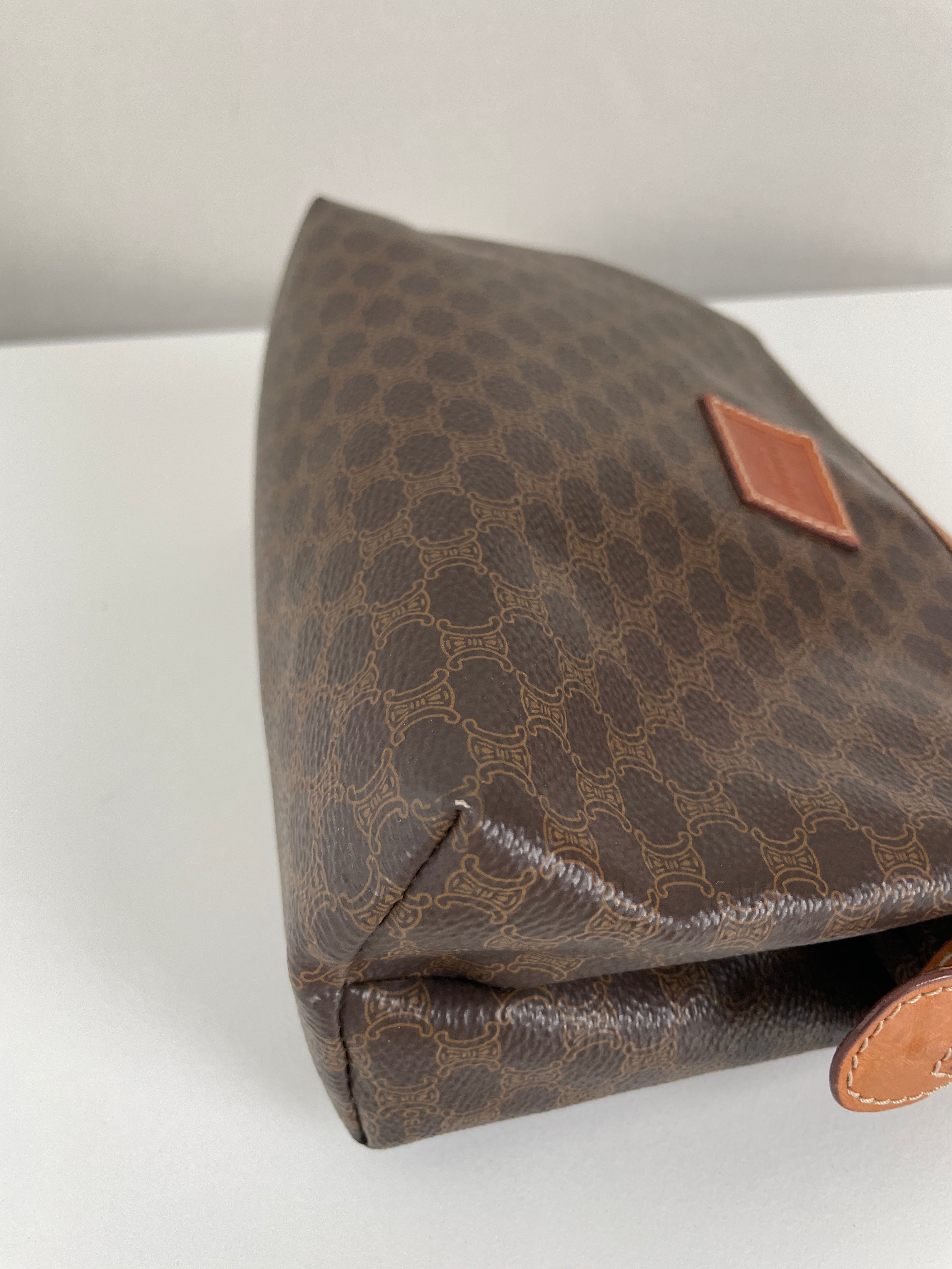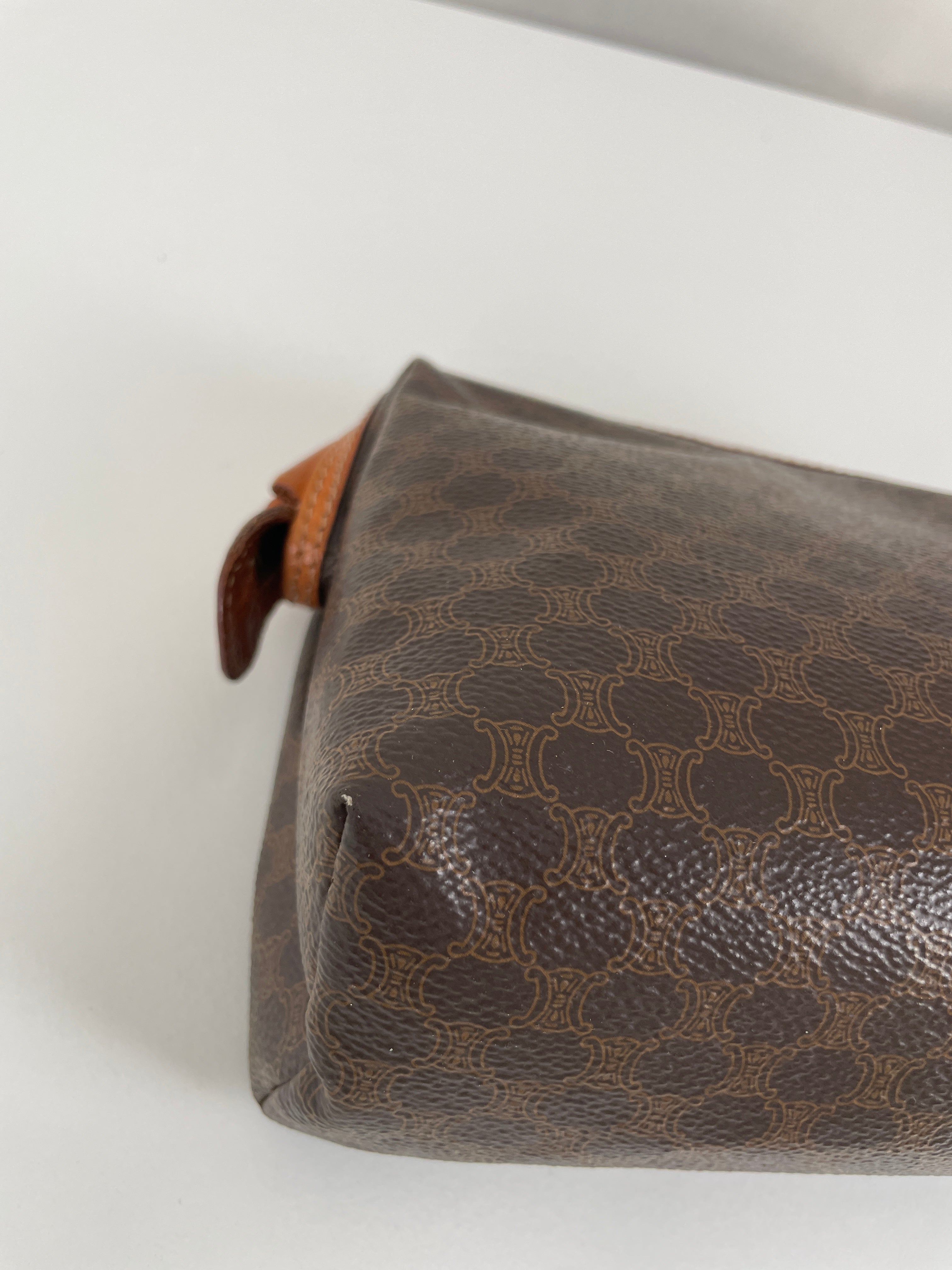 Cette pochette Céline Macadam est en très bon état. La toile est en parfait état. Les coins sont en très bon état. L'intérieur est également en très bon état, la petite poche intérieure commence à être légèrement abîmée sur les côtés. Très léger défaut.