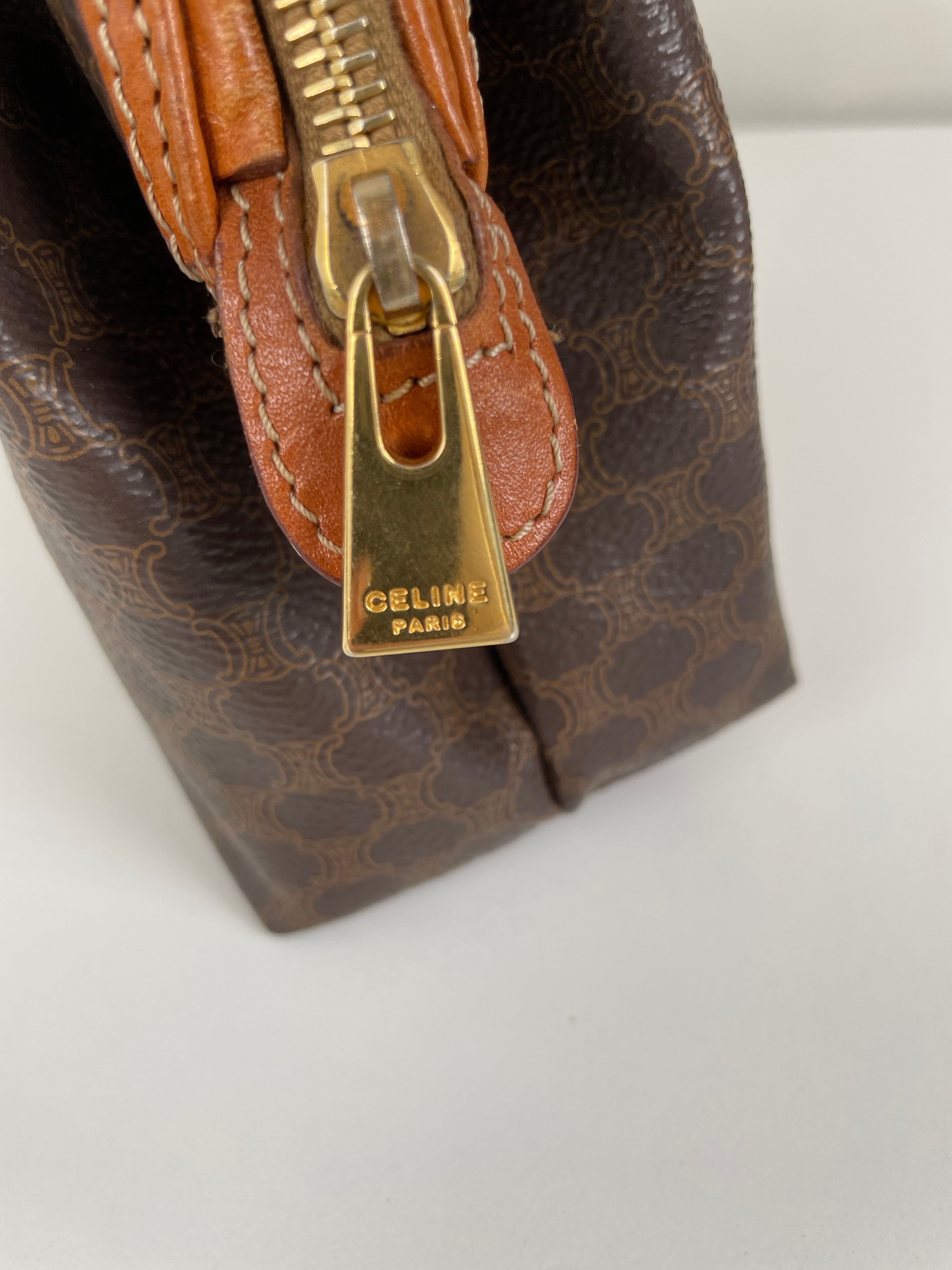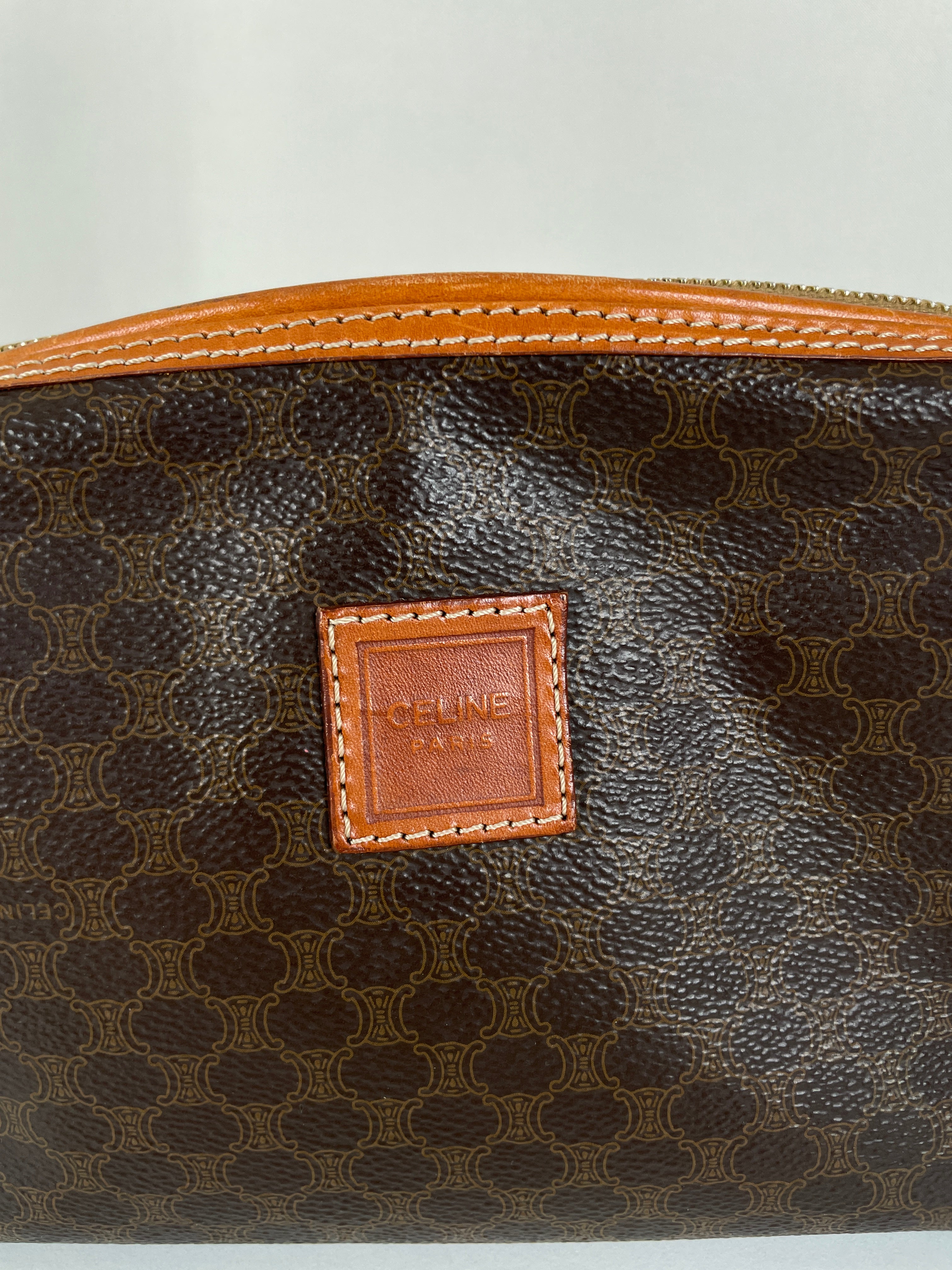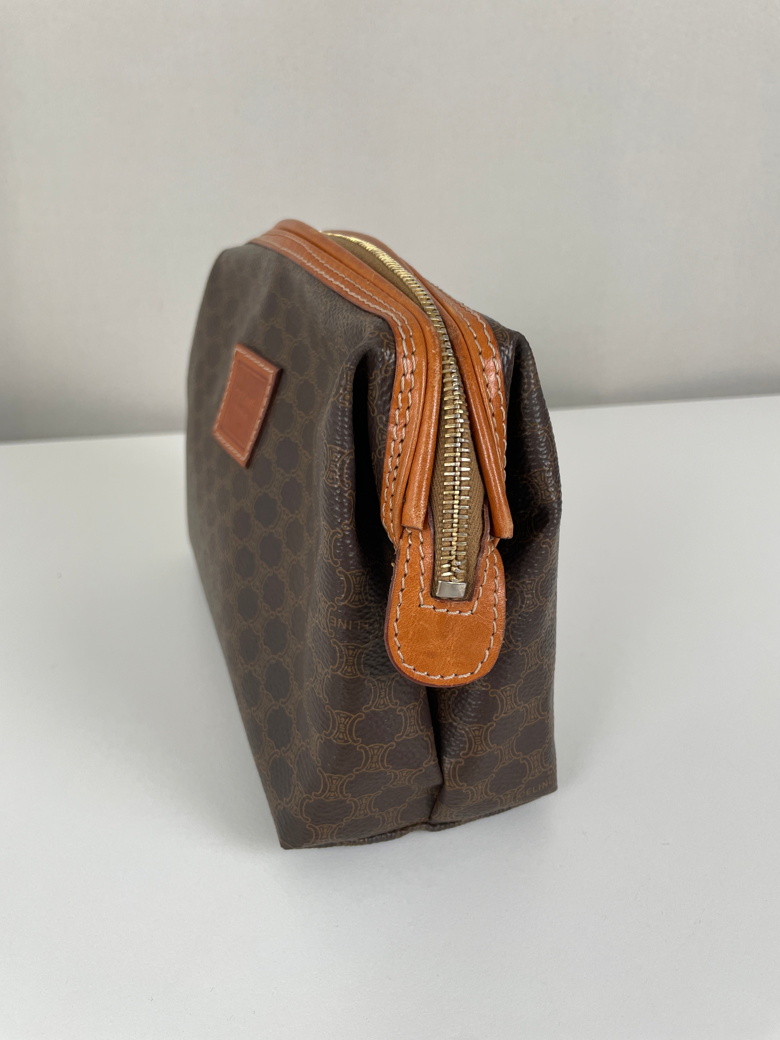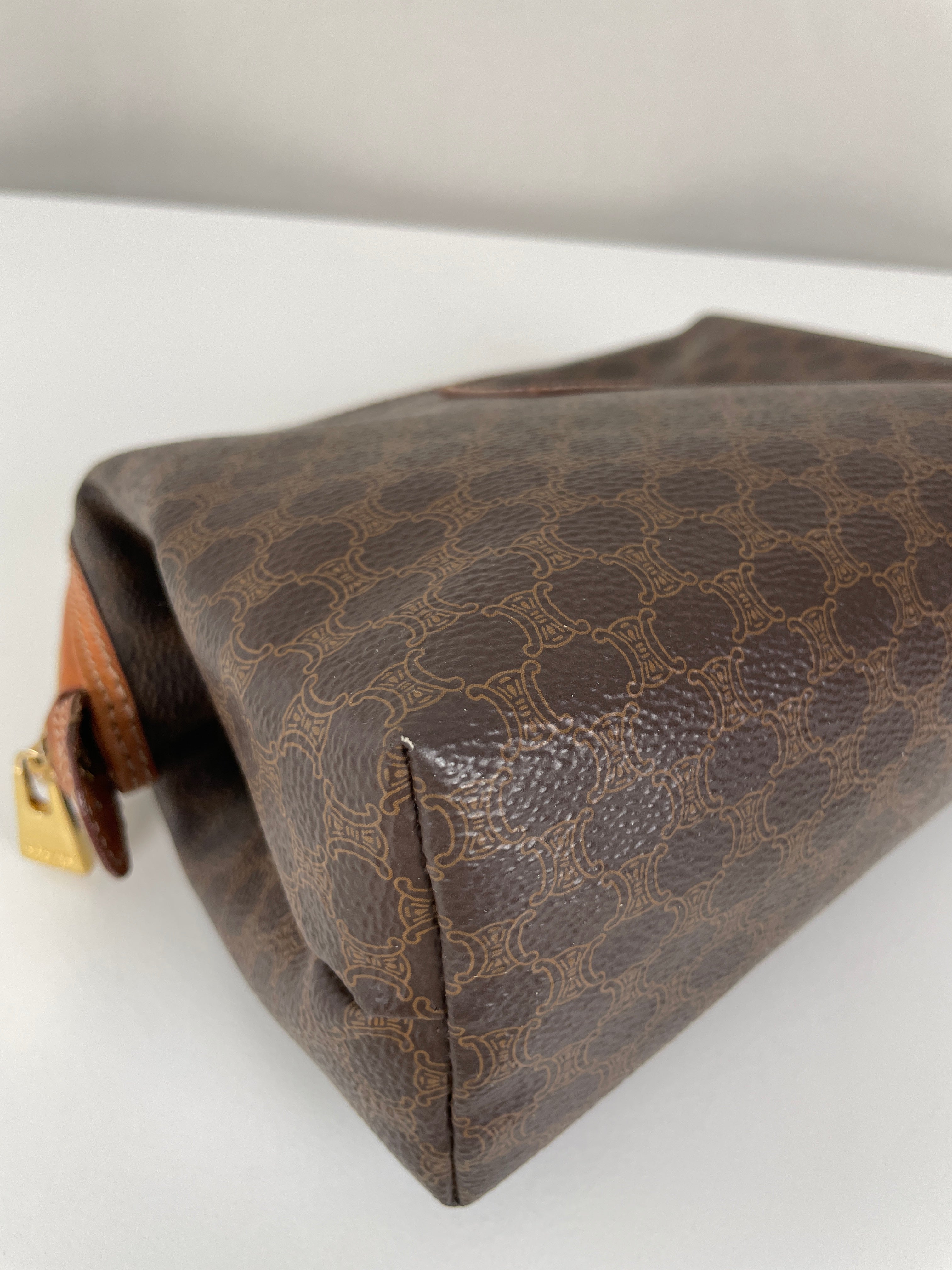 Cette pochette Céline Macadam est en très bon état. La toile est en parfait état. Les coins sont en très bon état. L'intérieur est également en très bon état, la petite poche intérieure commence à être légèrement abîmée sur les côtés. Très léger défaut.