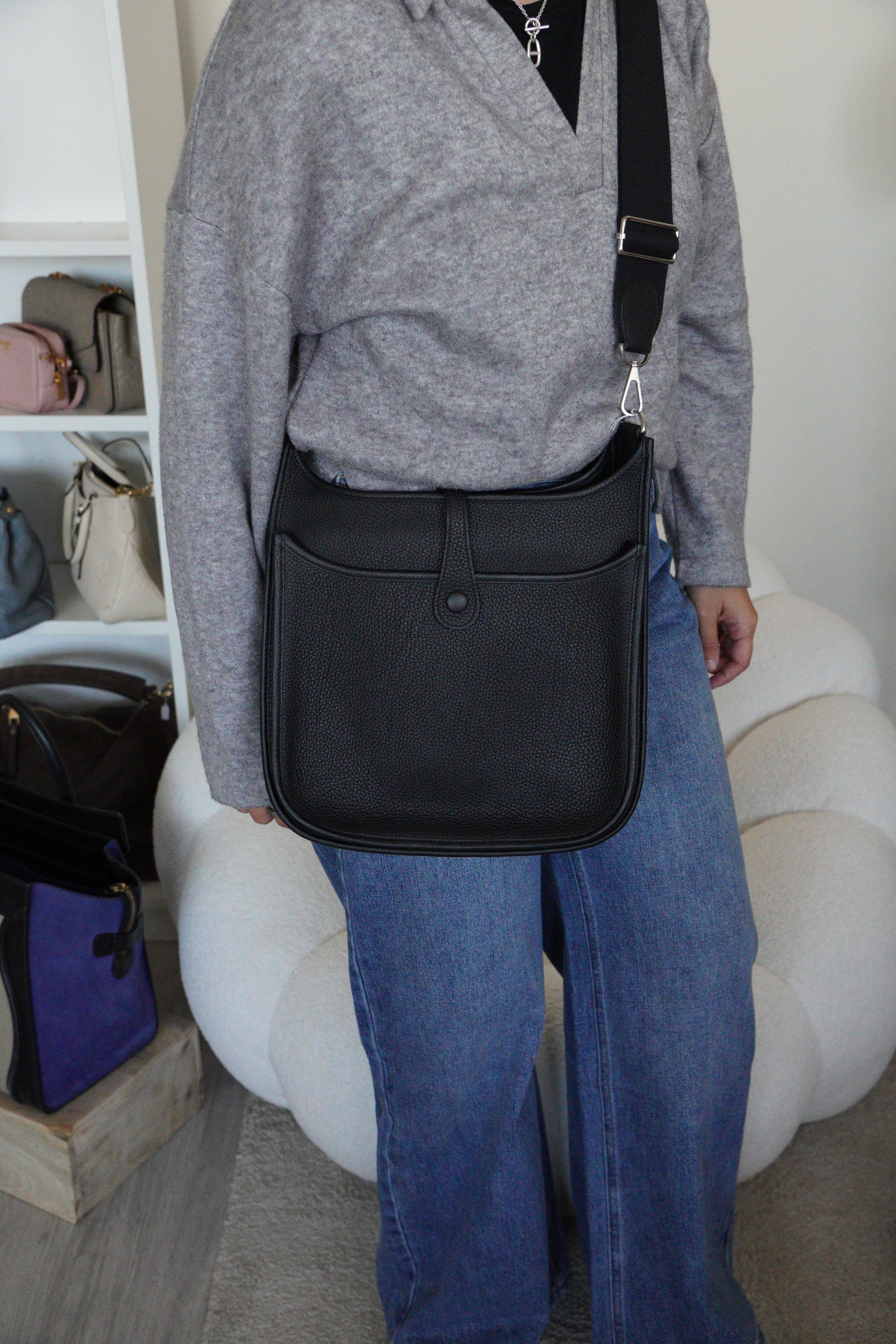 Ce sac Hermès Evelyn 29 est comme neuf. Le cuir et les coins sont en parfait état. L'intérieur est également en parfait état. La bandoulière est en très bon état. Il est livré avec un organiseur de sac, une boîte, un dustbag, une facture, notre certificat d'authenticité et notre certificat Entrupy. Un cuir d'une beauté exceptionnelle.