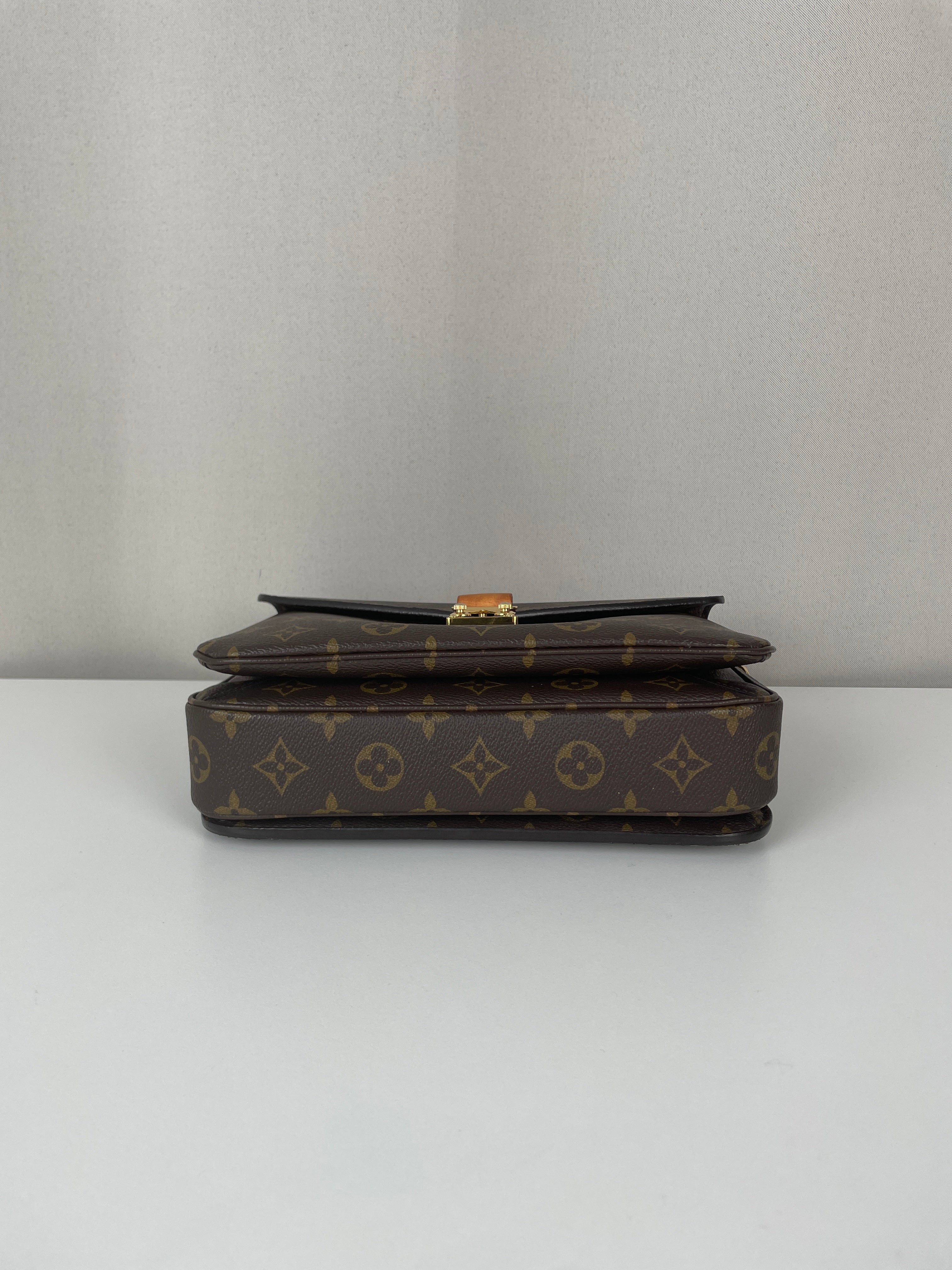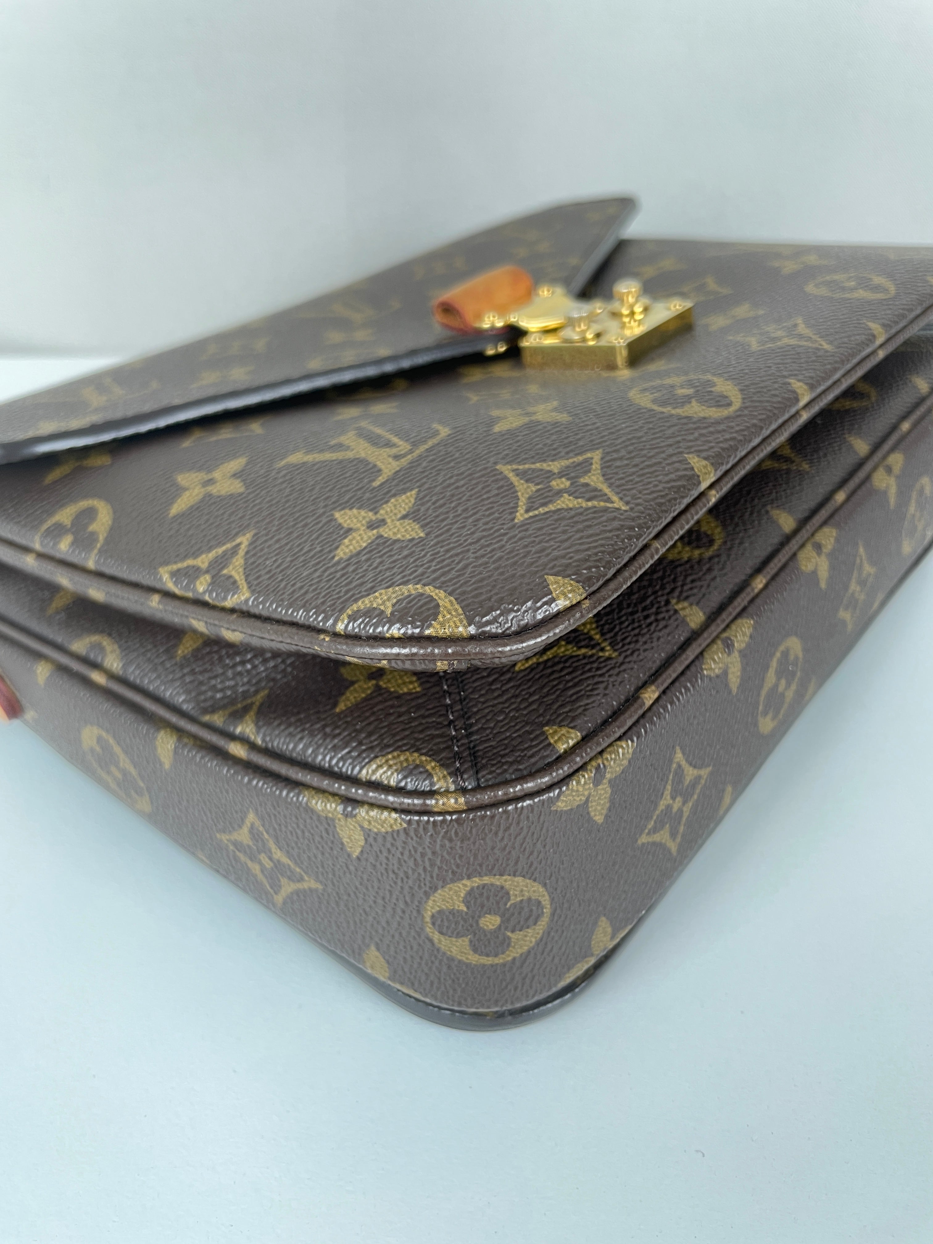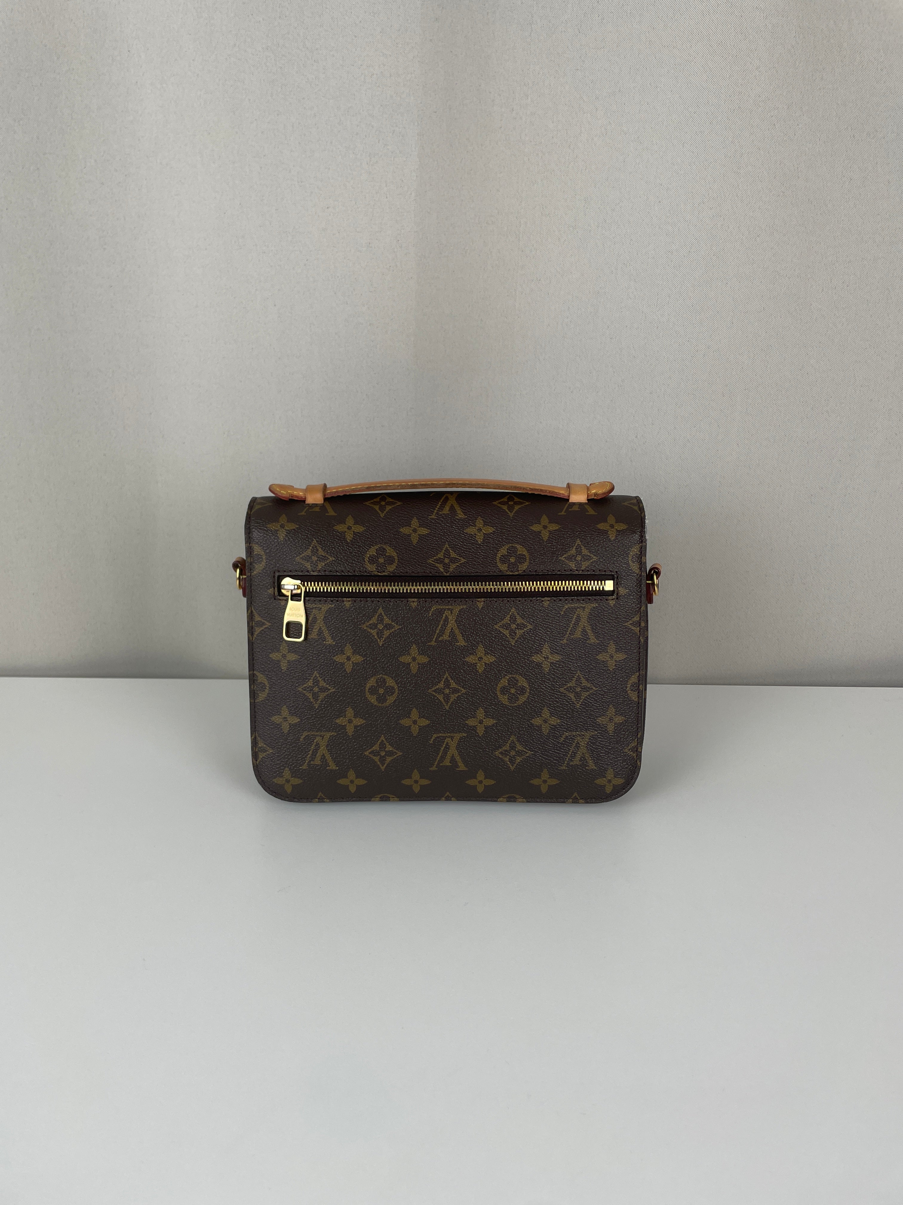 Classique de la maison Louis Vuitton, la pochette métis séduit par son format structuré et sa ligne intemporelle. Ce modèle de 2021 en toile monogram est resté en très bel état, avec une belle patine miel sur le cuir naturel. La toile est propre, les coins sont peu marqués, et la tenue générale est très bonne.