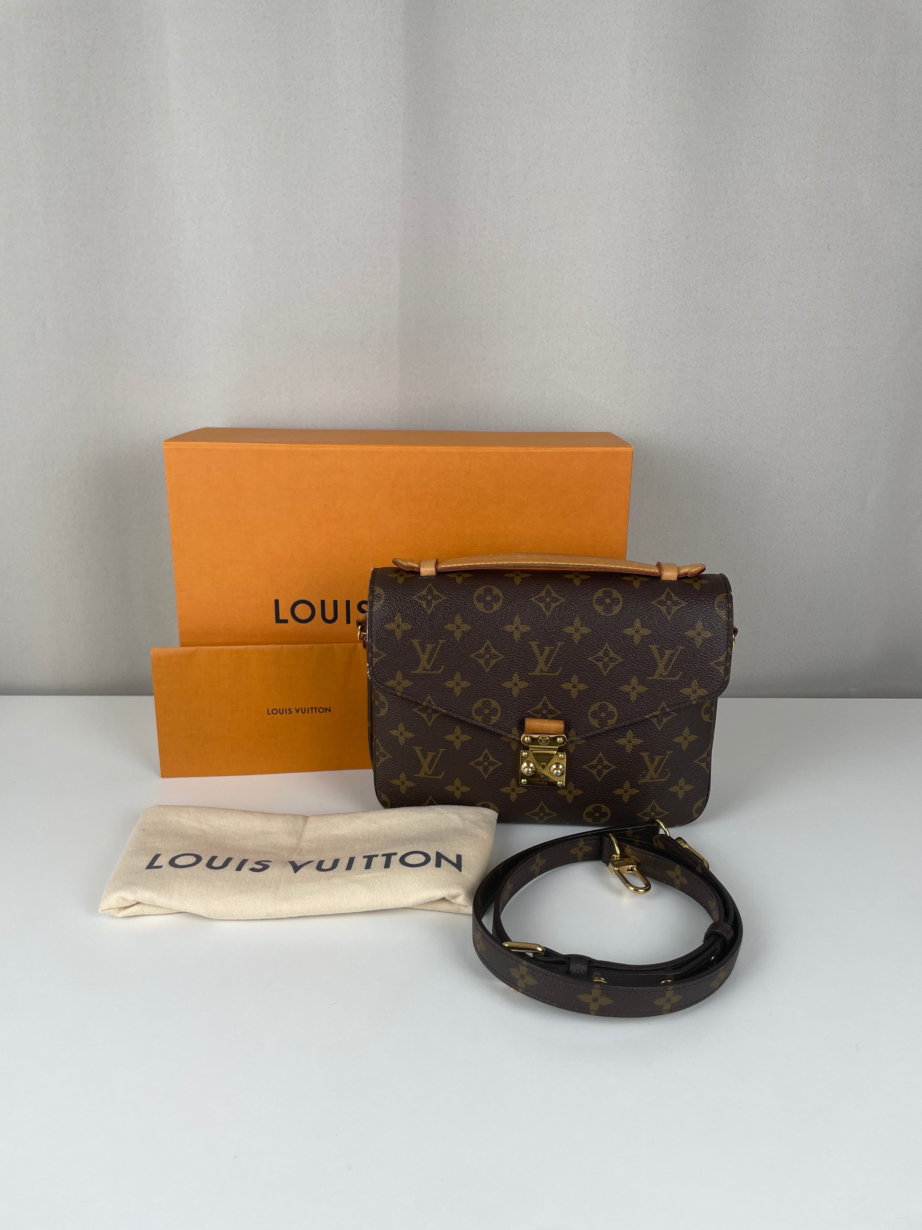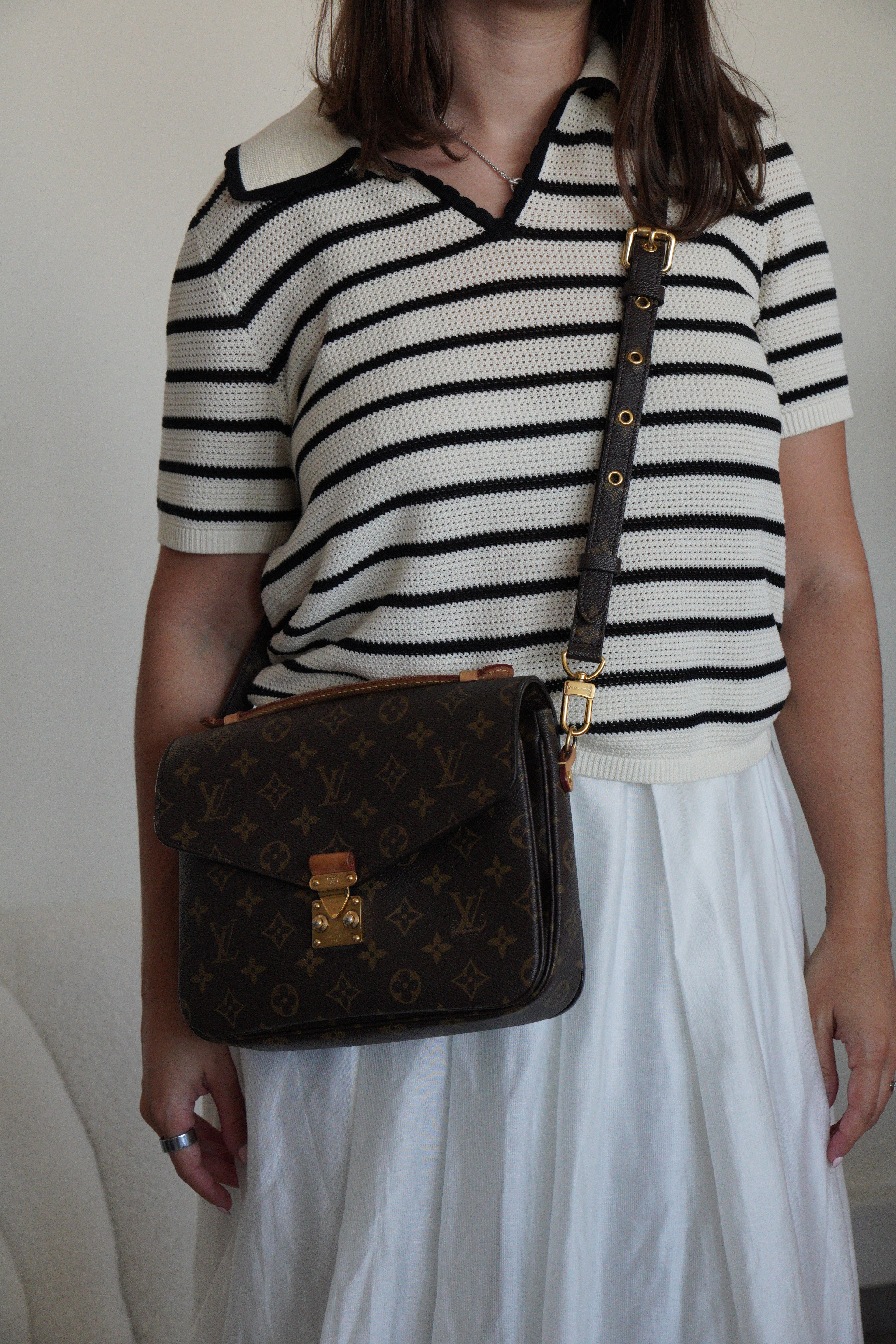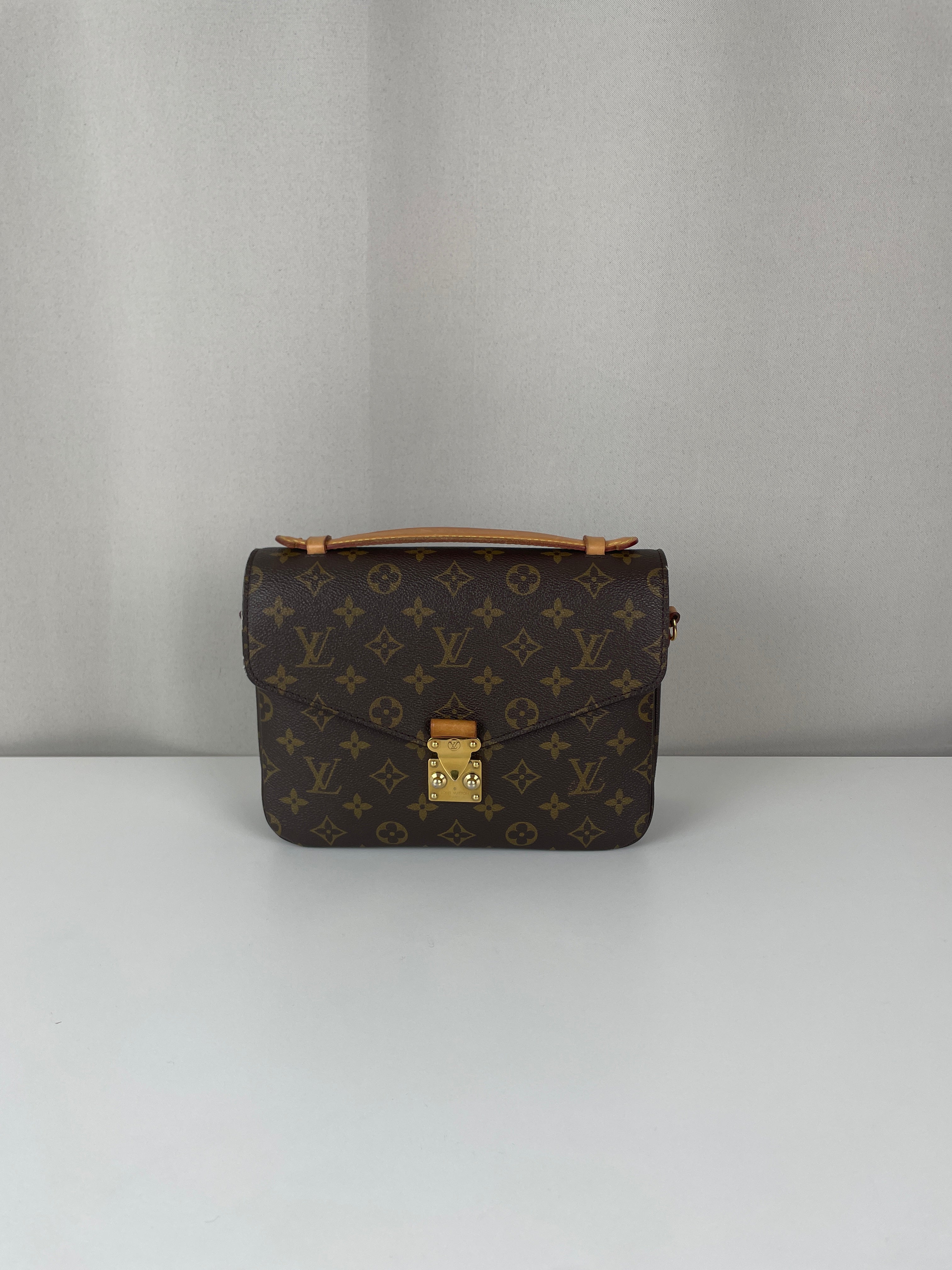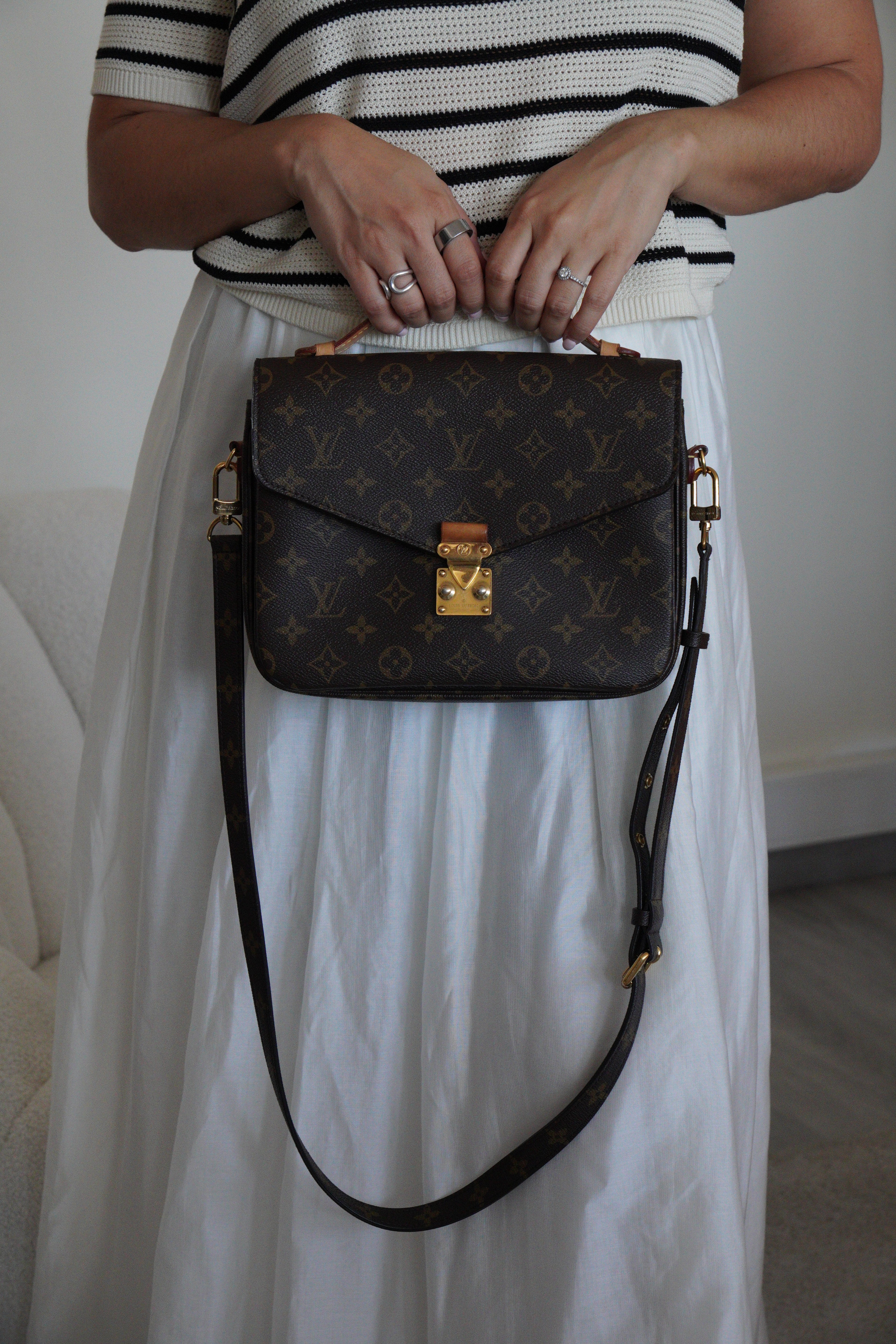 Classique de la maison Louis Vuitton, la pochette métis séduit par son format structuré et sa ligne intemporelle. Ce modèle de 2021 en toile monogram est resté en très bel état, avec une belle patine miel sur le cuir naturel. La toile est propre, les coins sont peu marqués, et la tenue générale est très bonne.