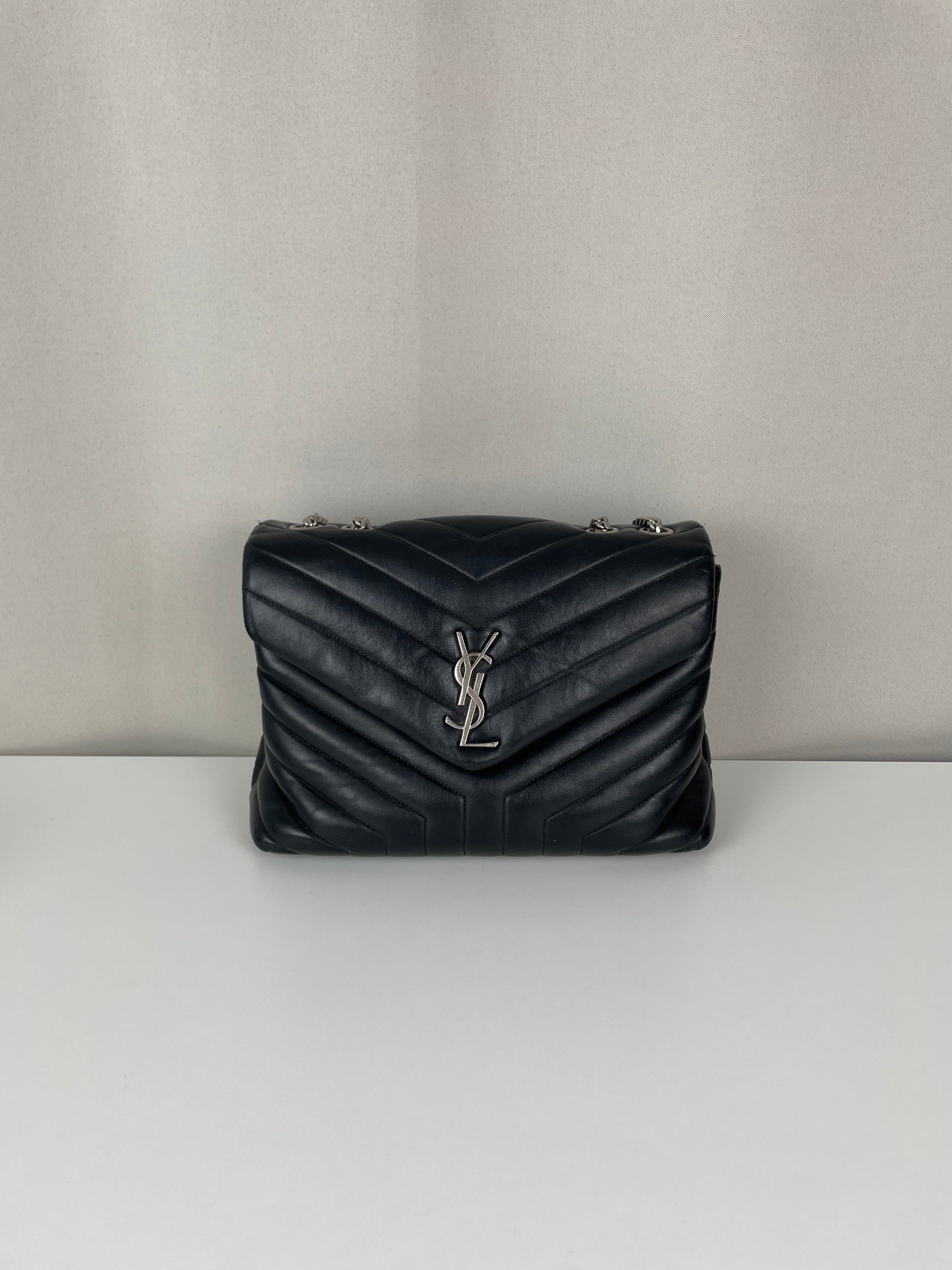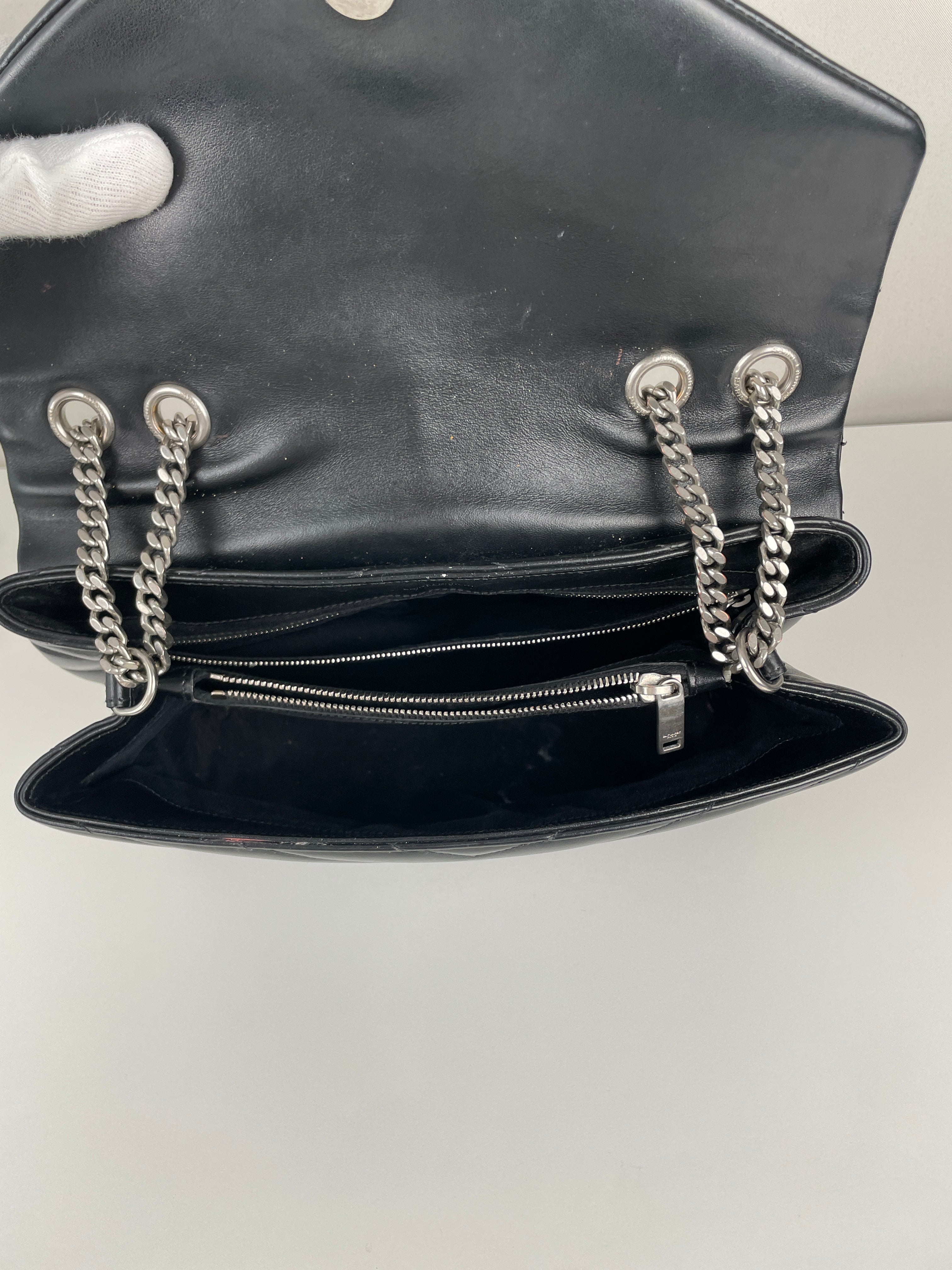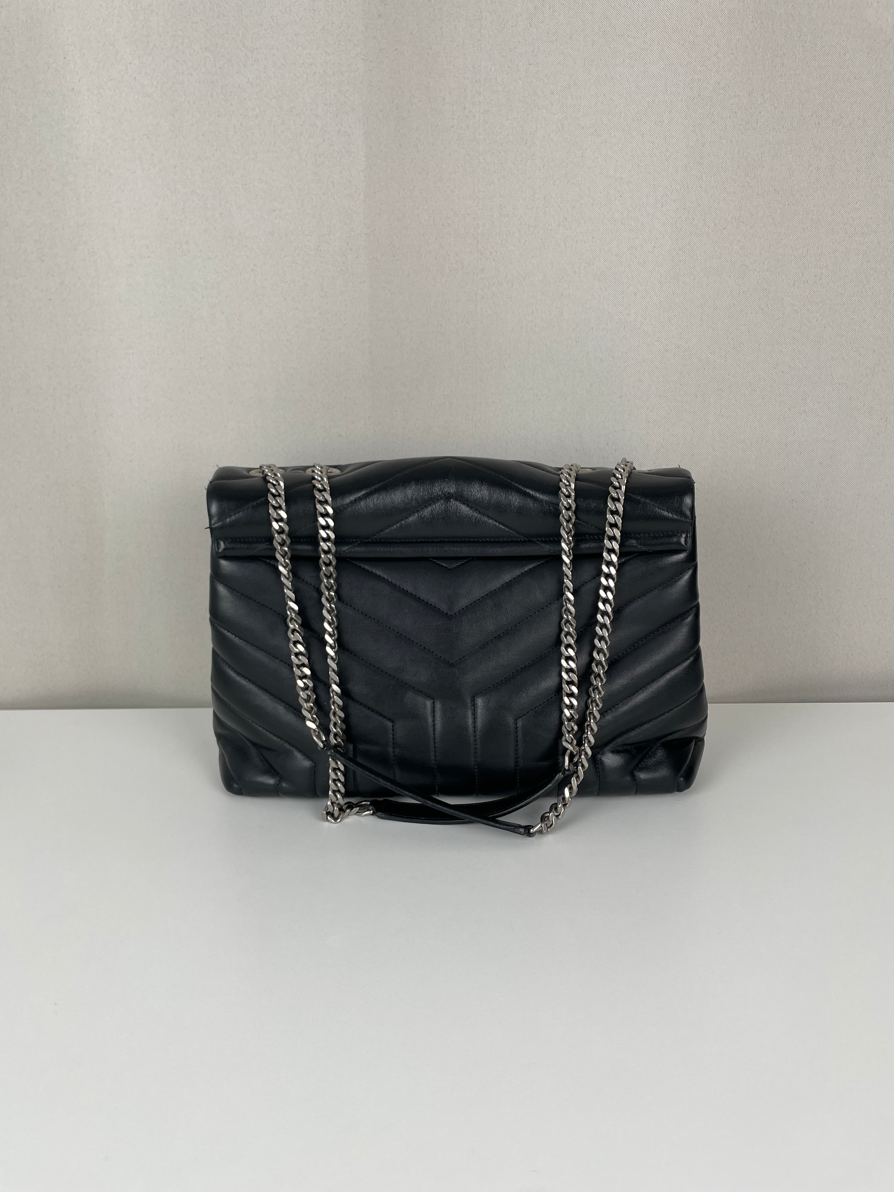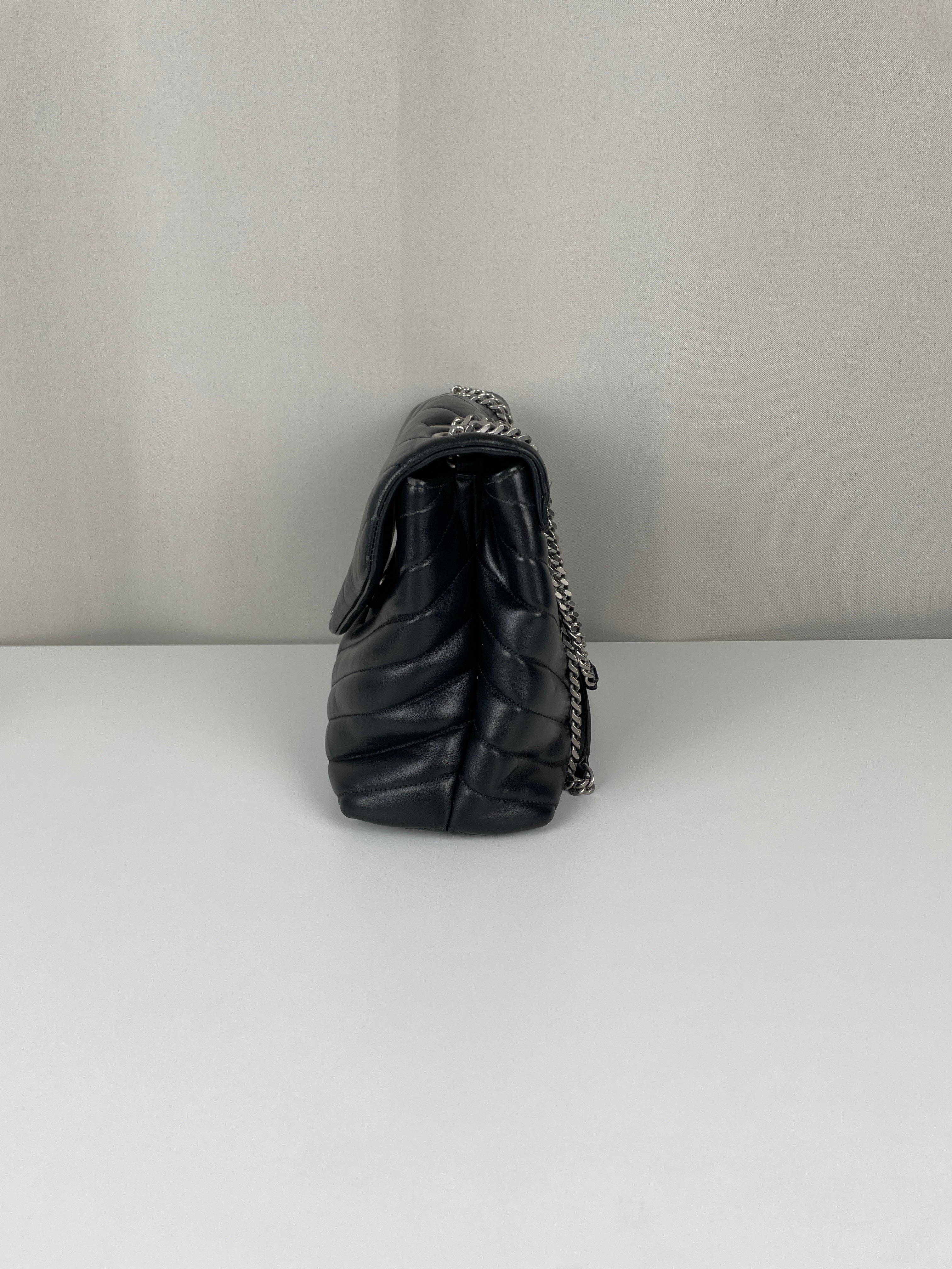 Le Loulou est l'un des modèles les plus contemporains et convoités de Saint Laurent. Cette édition en cuir noir illustre l'approche moderne du savoir-faire de luxe de la maison. Le cuir reste en bon état dans l'ensemble, avec quelques signes d'usage mineurs dans certaines zones qui témoignent de son caractère authentique. Les angles sont en bon état général, conservant la silhouette structurée du sac.