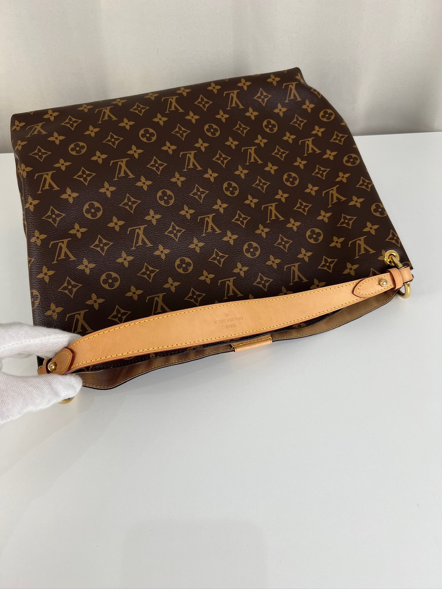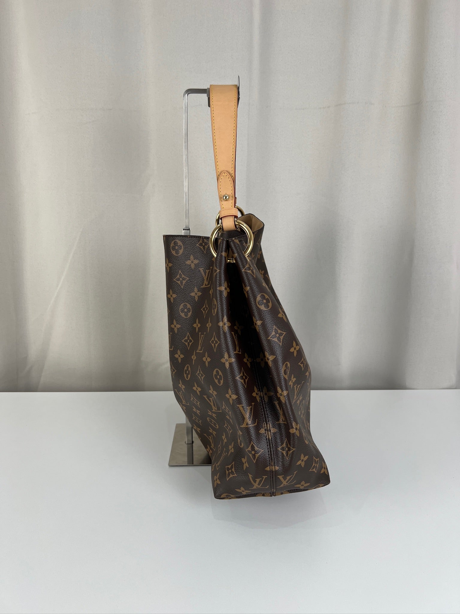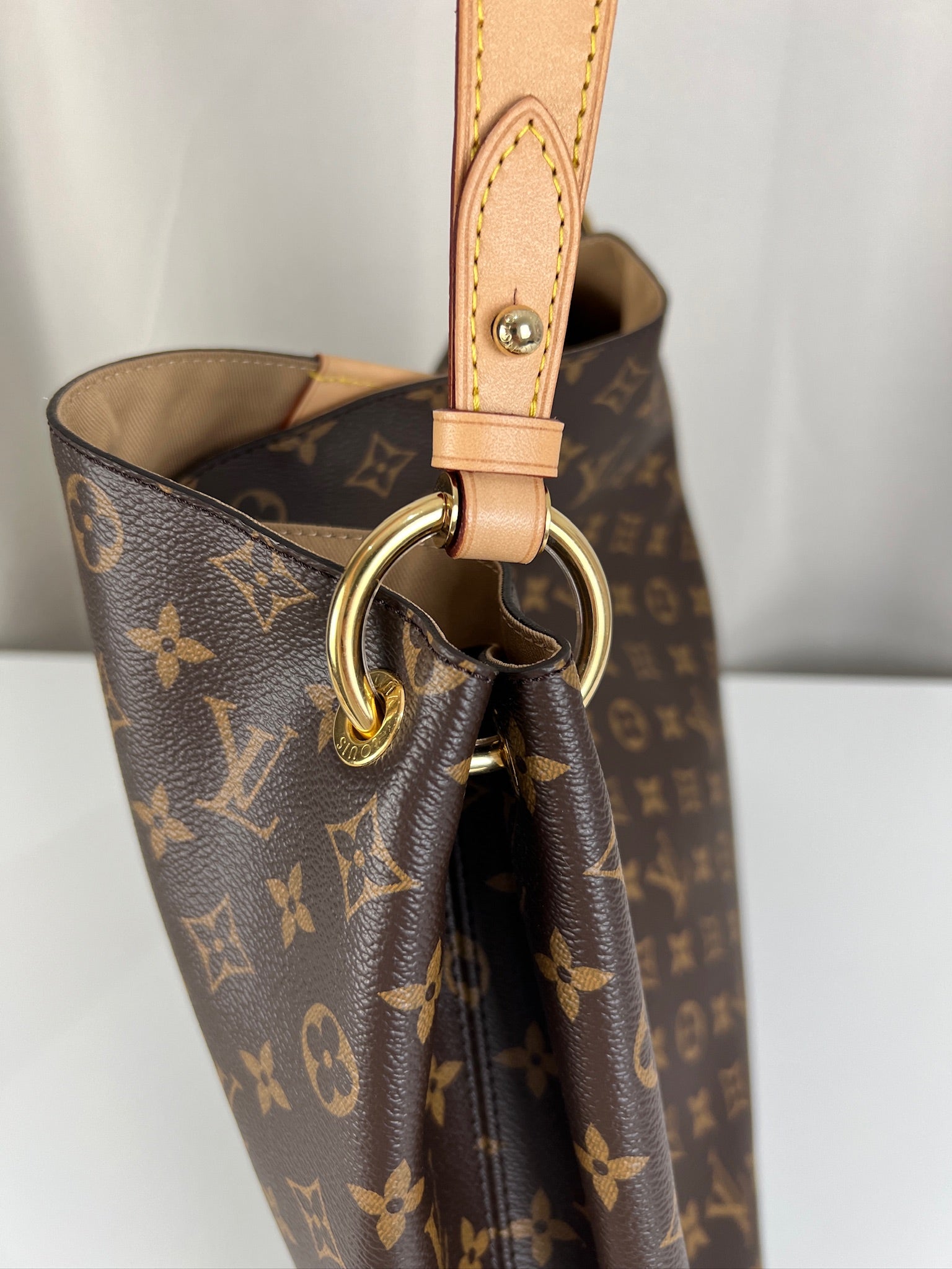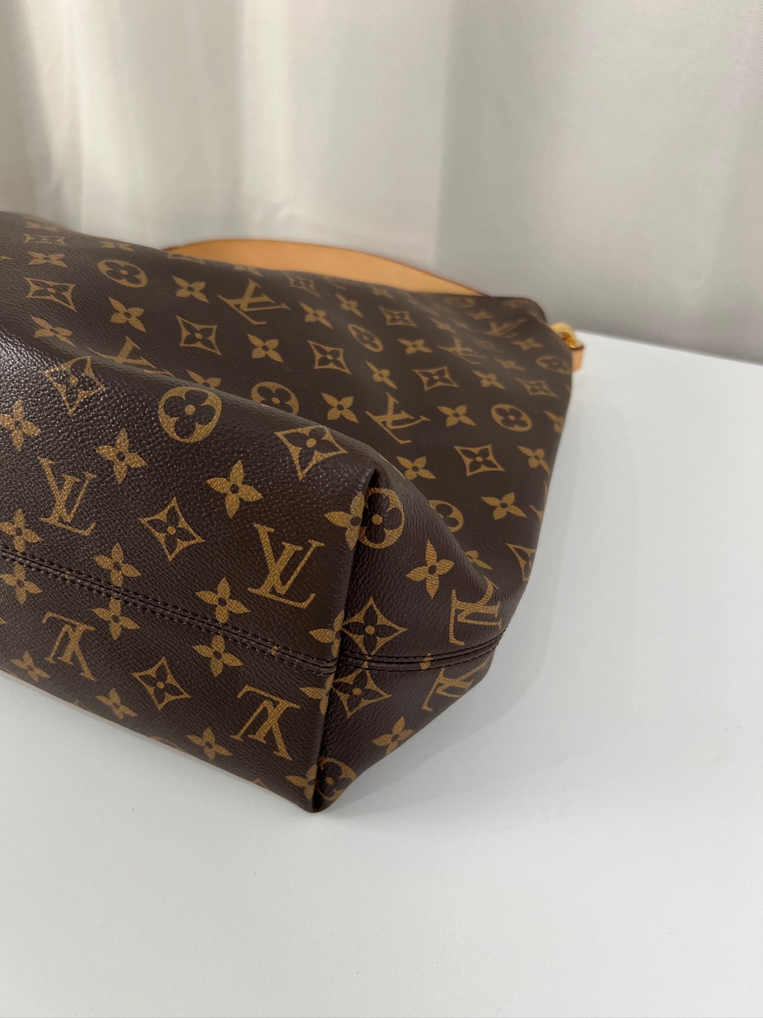 Ce sac Louis Vuitton Graceful MM est en parfait état, comme neuf. La toile et les coins sont en très bon état. La poignée est en parfait état. La bijouterie est un peu usé (temps d'utilisation normal). L'intérieur est en très bon état comme neuf. Il est livré avec le dustbag.