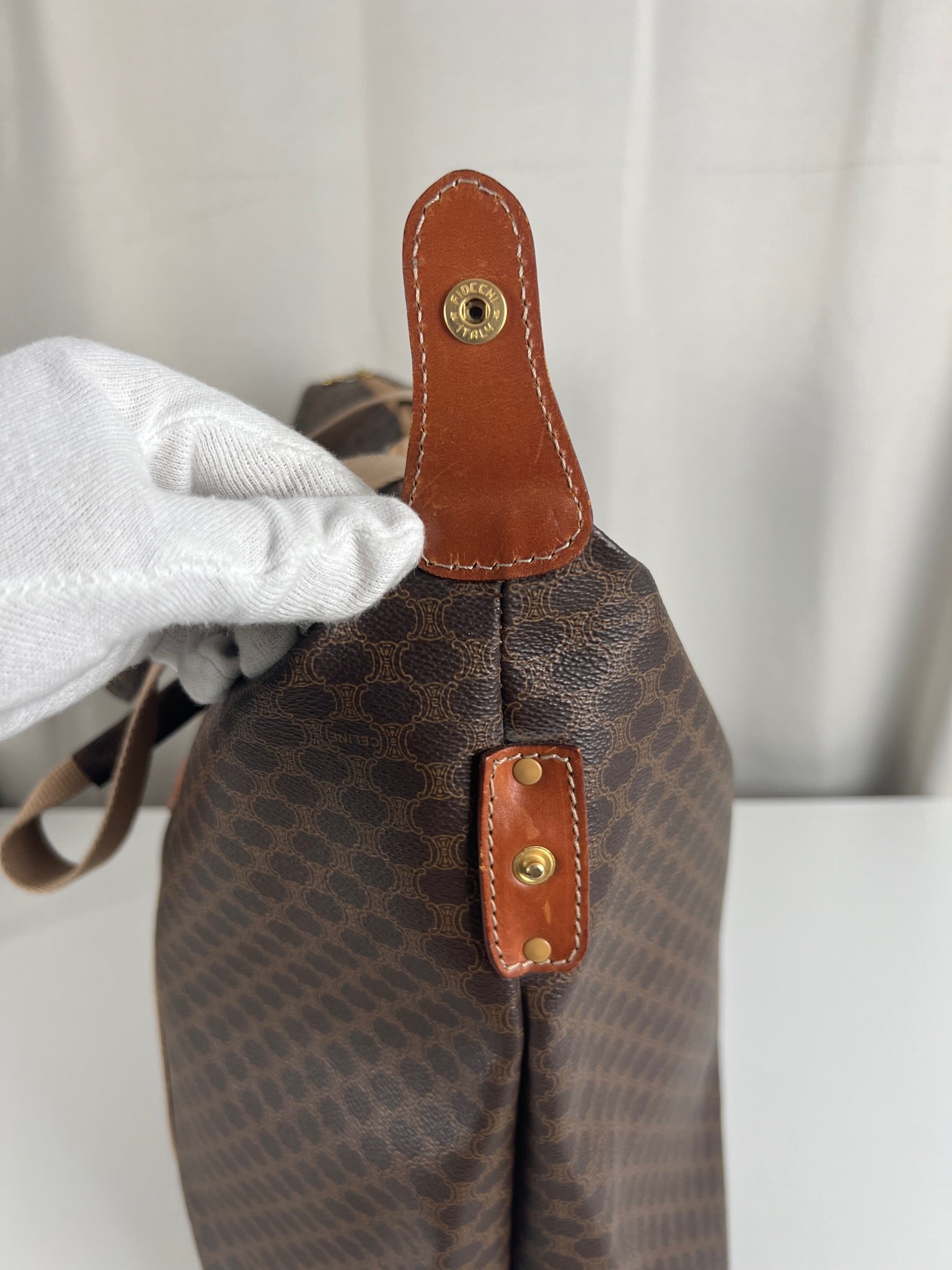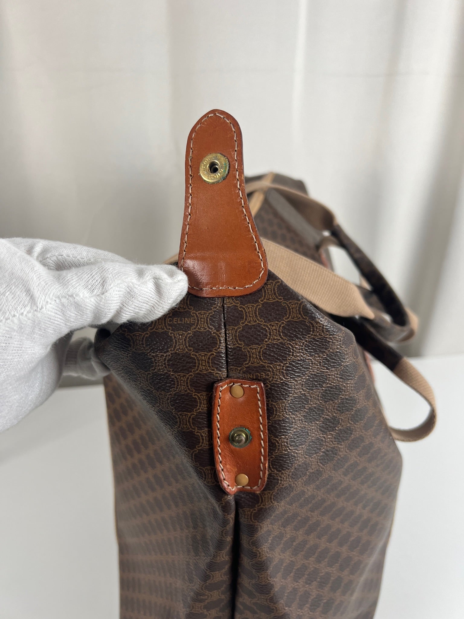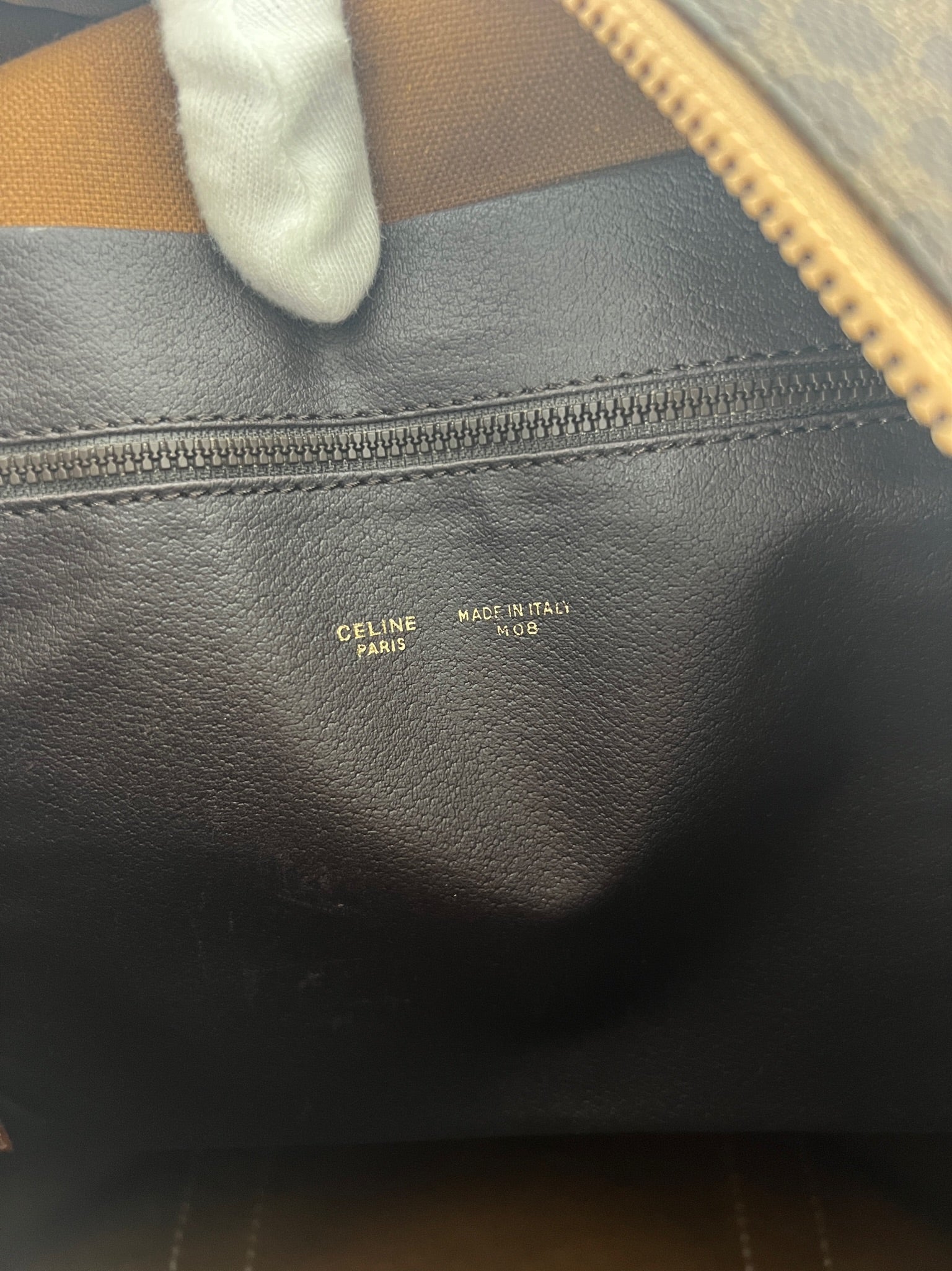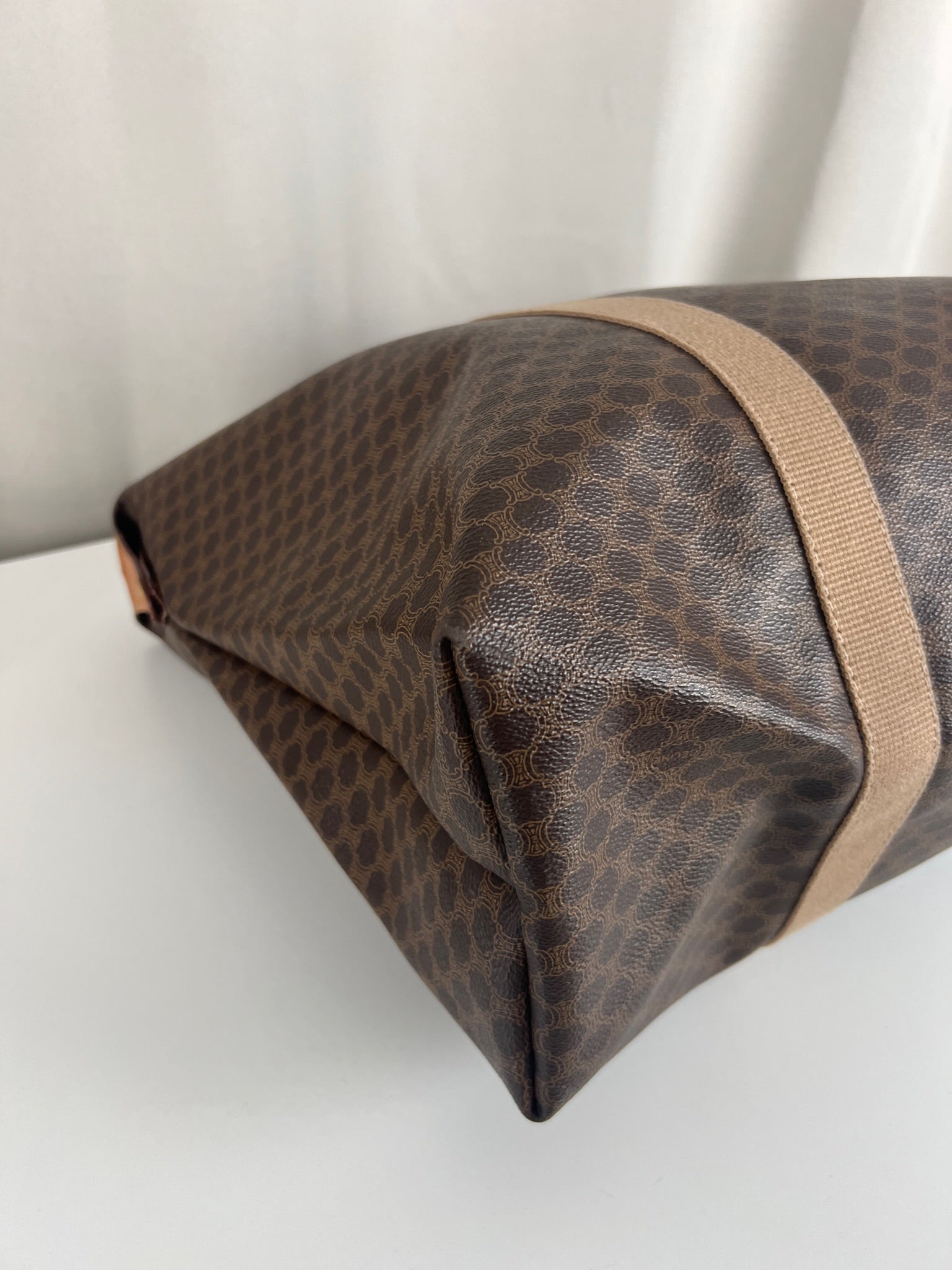 Le cabas de voyage Céline Triomphe est en très bon état. Le cuir est en très bon état. Les poignées sont superbes et les coins présentent également des signes d'usure et sont un peu frottés. L'intérieur est en très bon état. Vous avez une poche zippée à l'intérieur. Le matériel est légèrement utilisé.