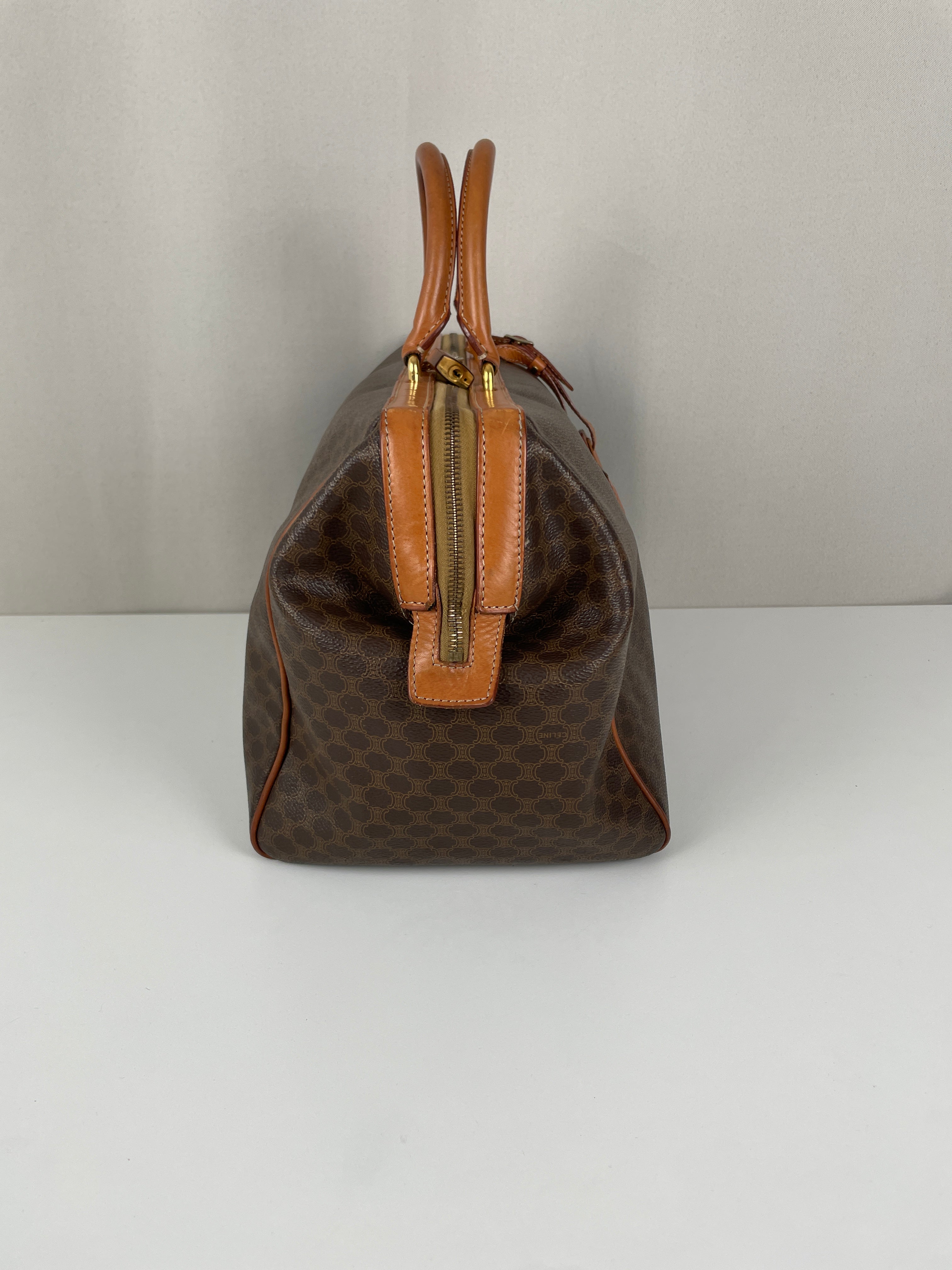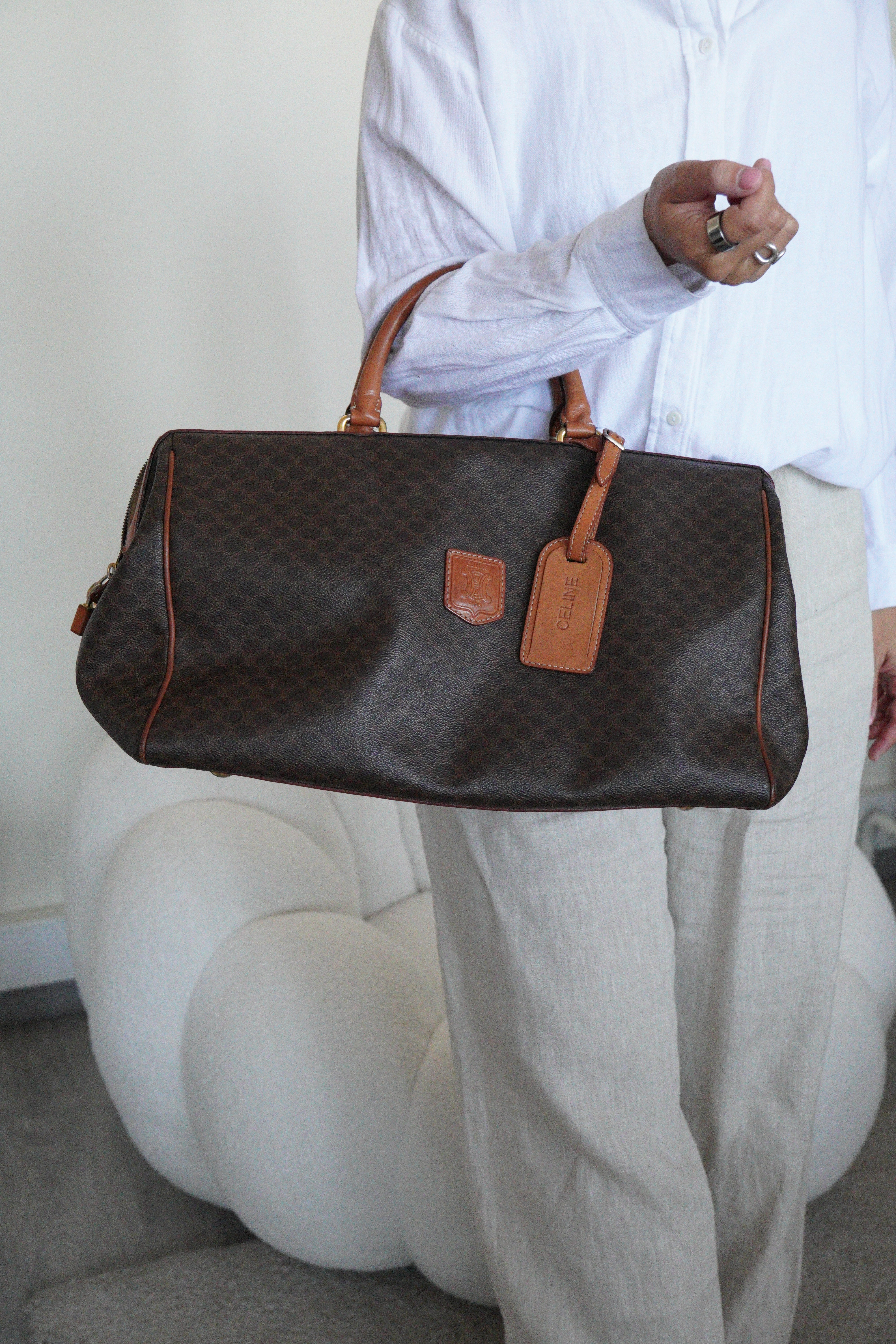 Le Sac de Voyage Celine illustre l'engagement de la Maison envers l'artisanat exceptionnel et l'élégance intemporelle. Cette pièce sophistiquée combine la durabilité de la toile avec des accents de cuir luxueux, créant le compagnon parfait pour le voyageur averti. La riche teinte marron reflète la maîtrise de Celine des tons neutres, tandis que l'intérieur spacieux et la construction robuste démontrent la compréhension de la marque de la forme et de la fonction dans le design de bagages de luxe.