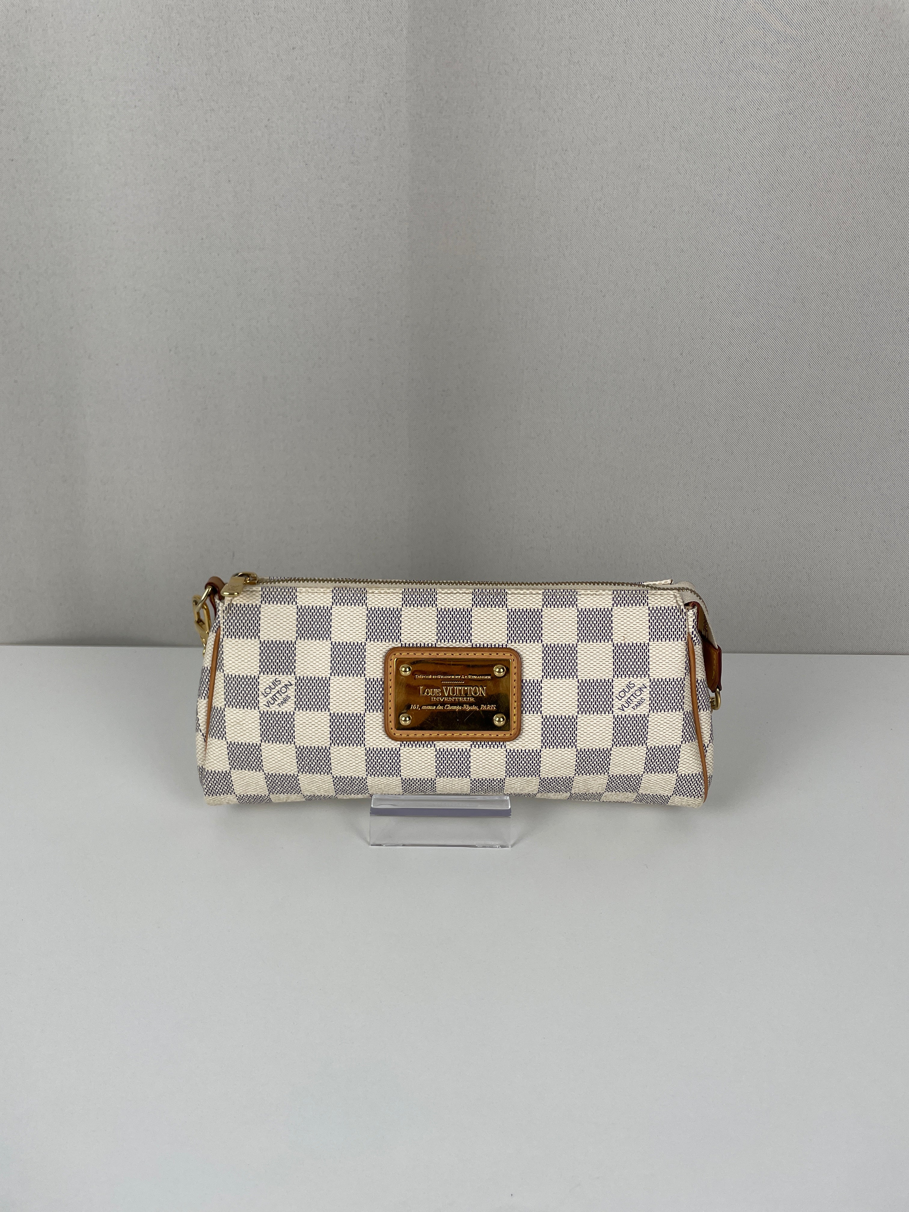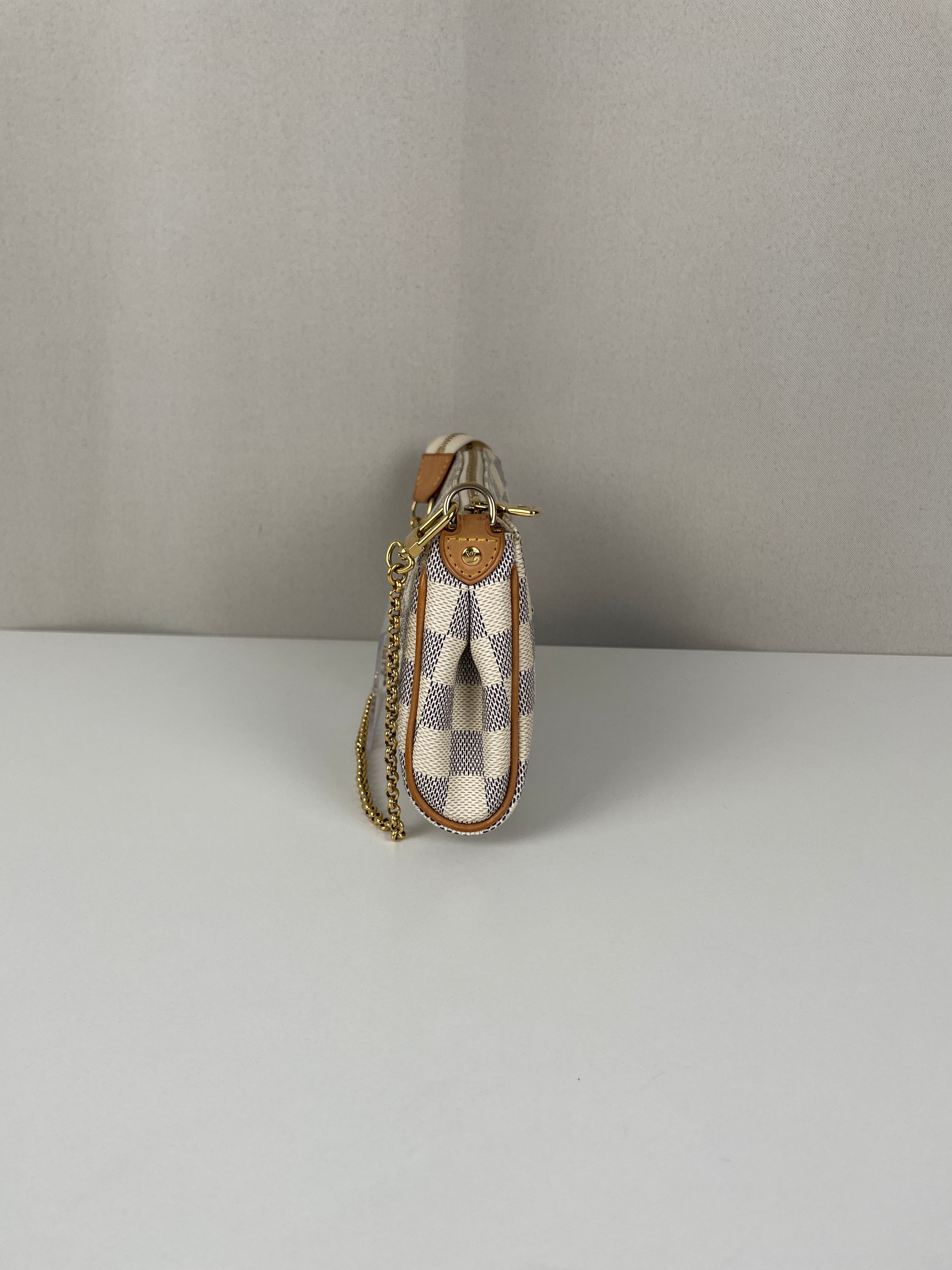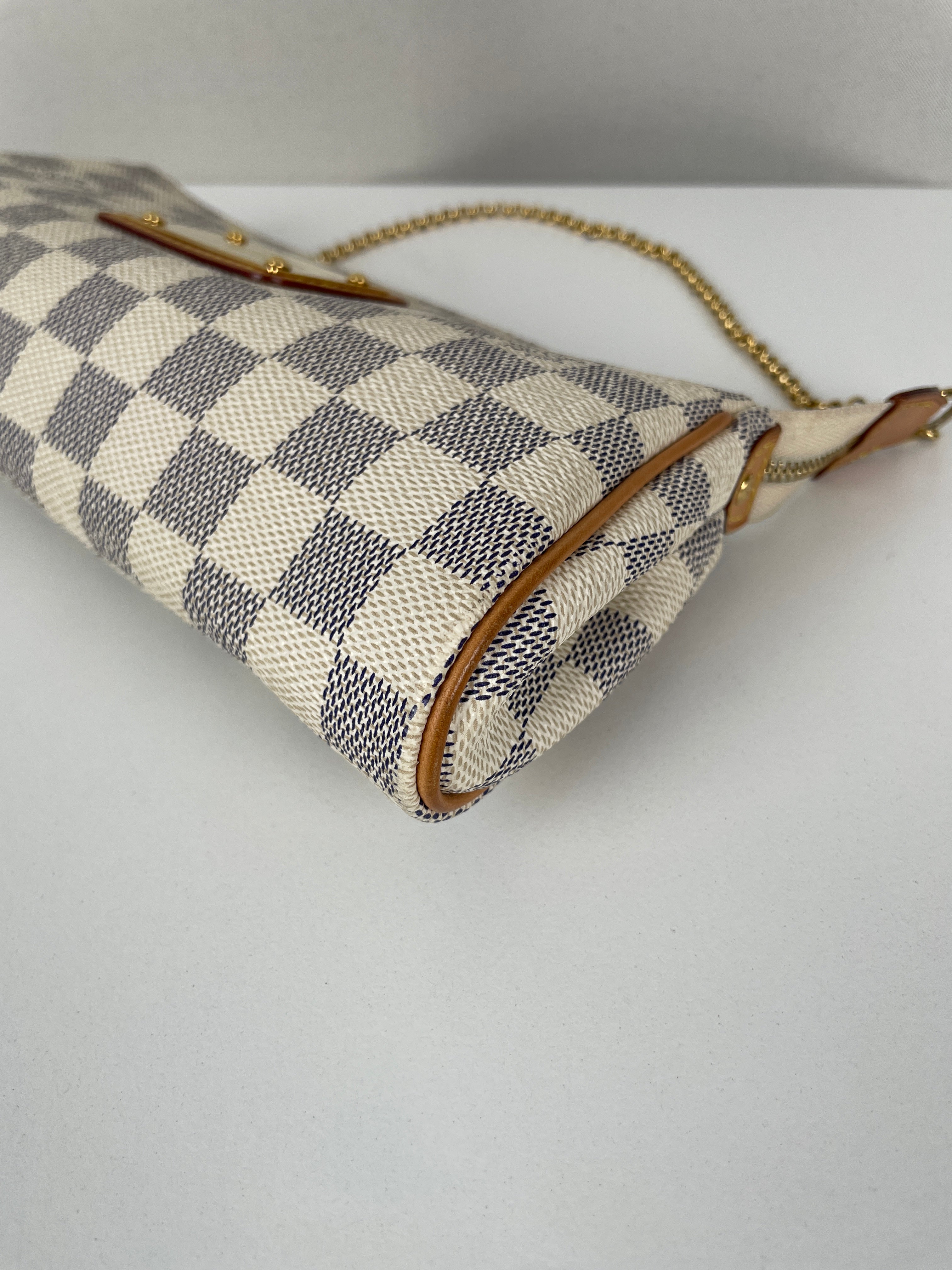 Le Louis Vuitton Eva en Damier Azur représente la fusion parfaite entre fonctionnalité et élégance estivale, introduite dans le cadre de l'interprétation fraîche de la Maison du motif damier classique. Cette pochette polyvalente incarne la légèreté et la sophistication de la toile Damier Azur, originellement inspirée par le style de vie de la Côte d'Azur. Le coloris blanc immaculé avec finitions en cuir naturel crée une esthétique d'un chic sans effort, tandis que la bandoulière amovible offre de multiples options de port du jour au soir.
