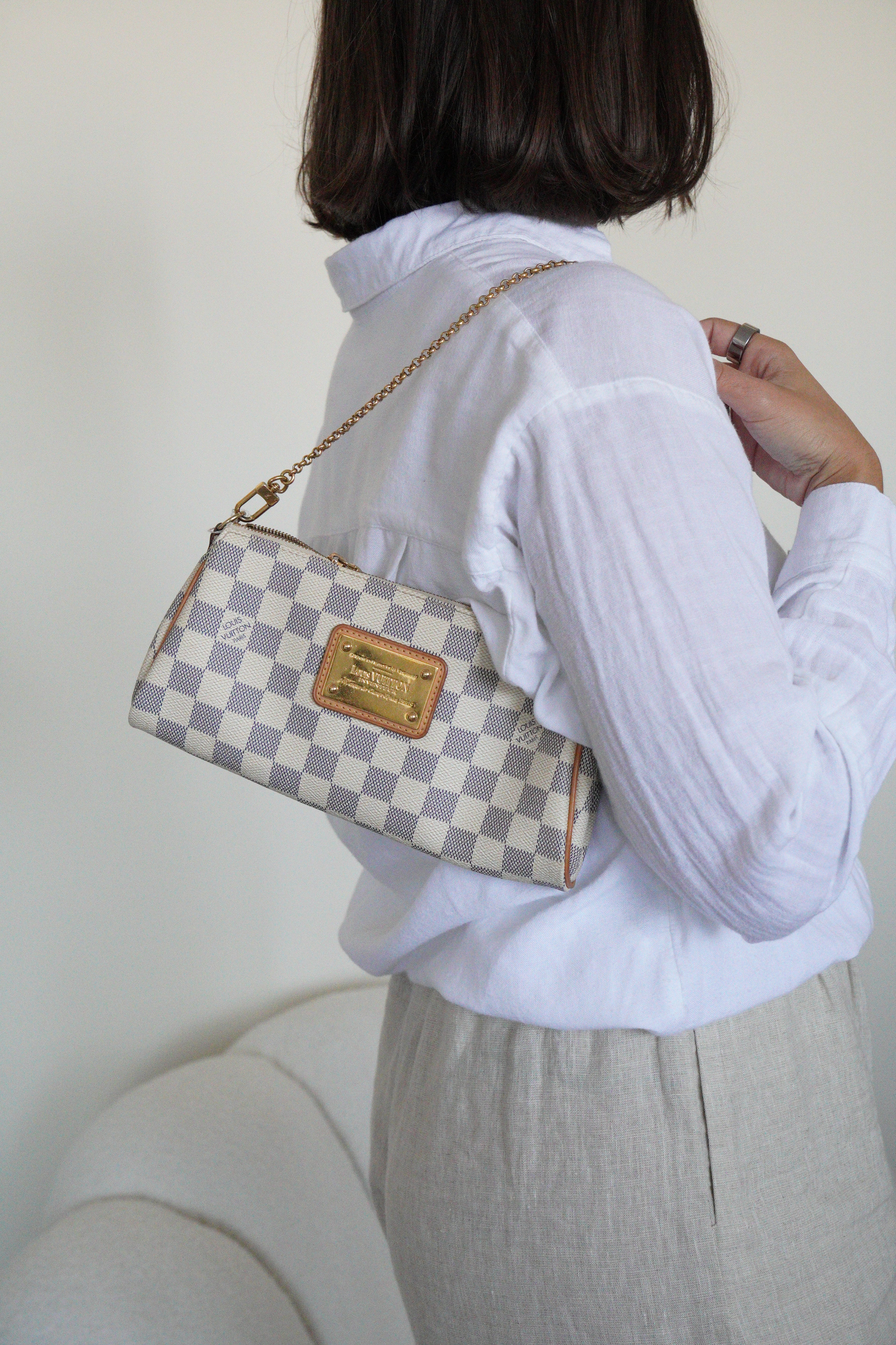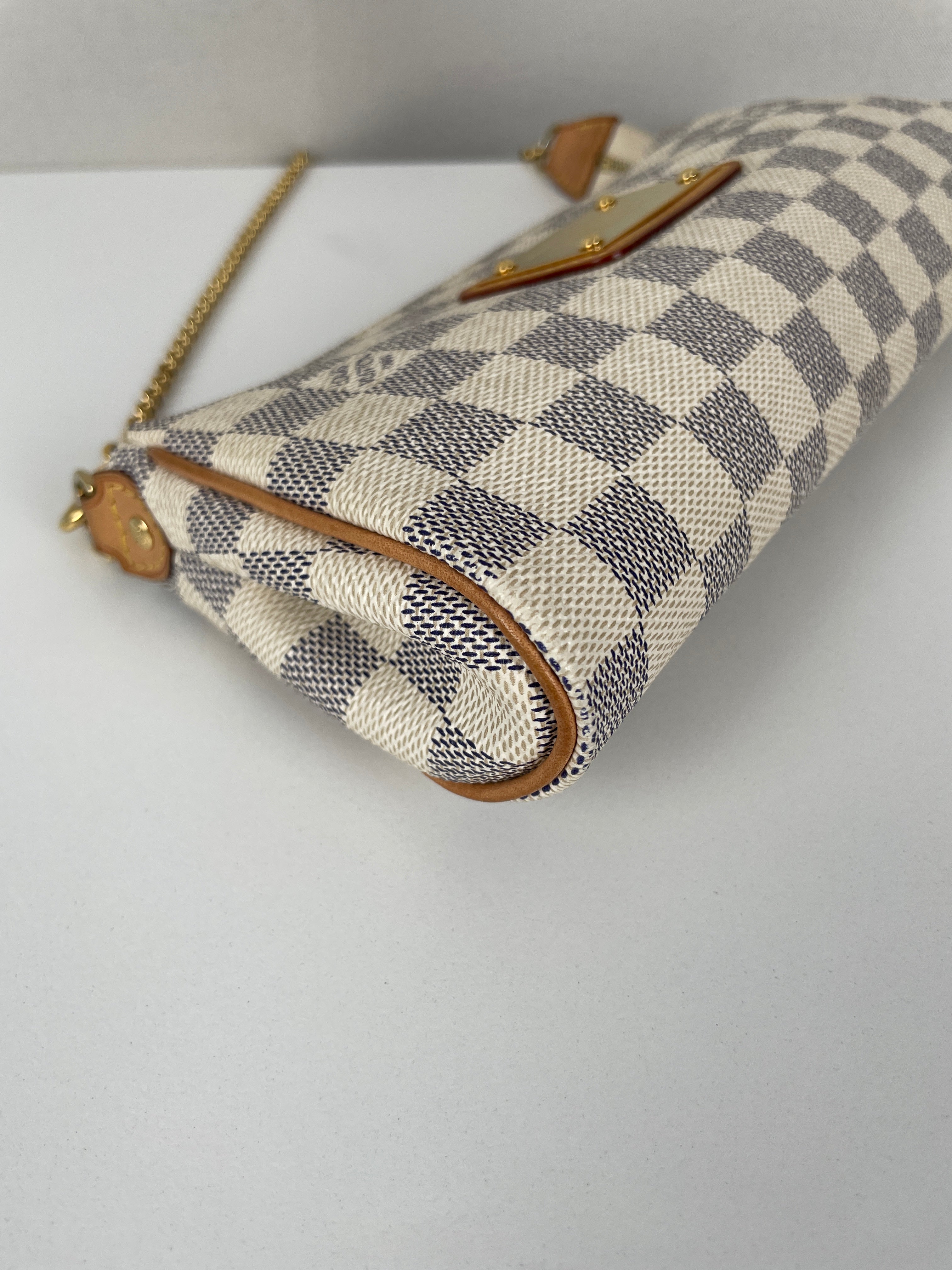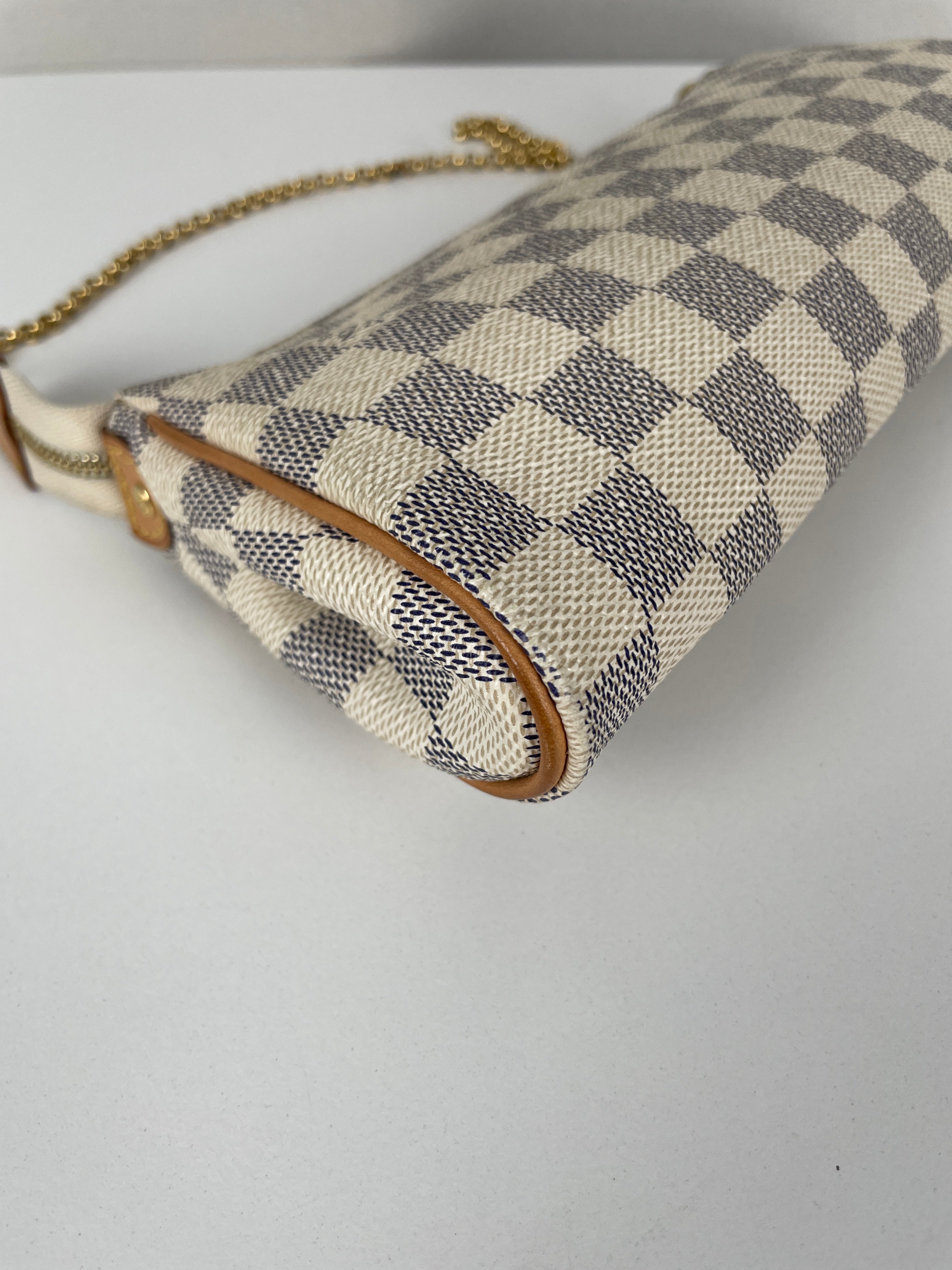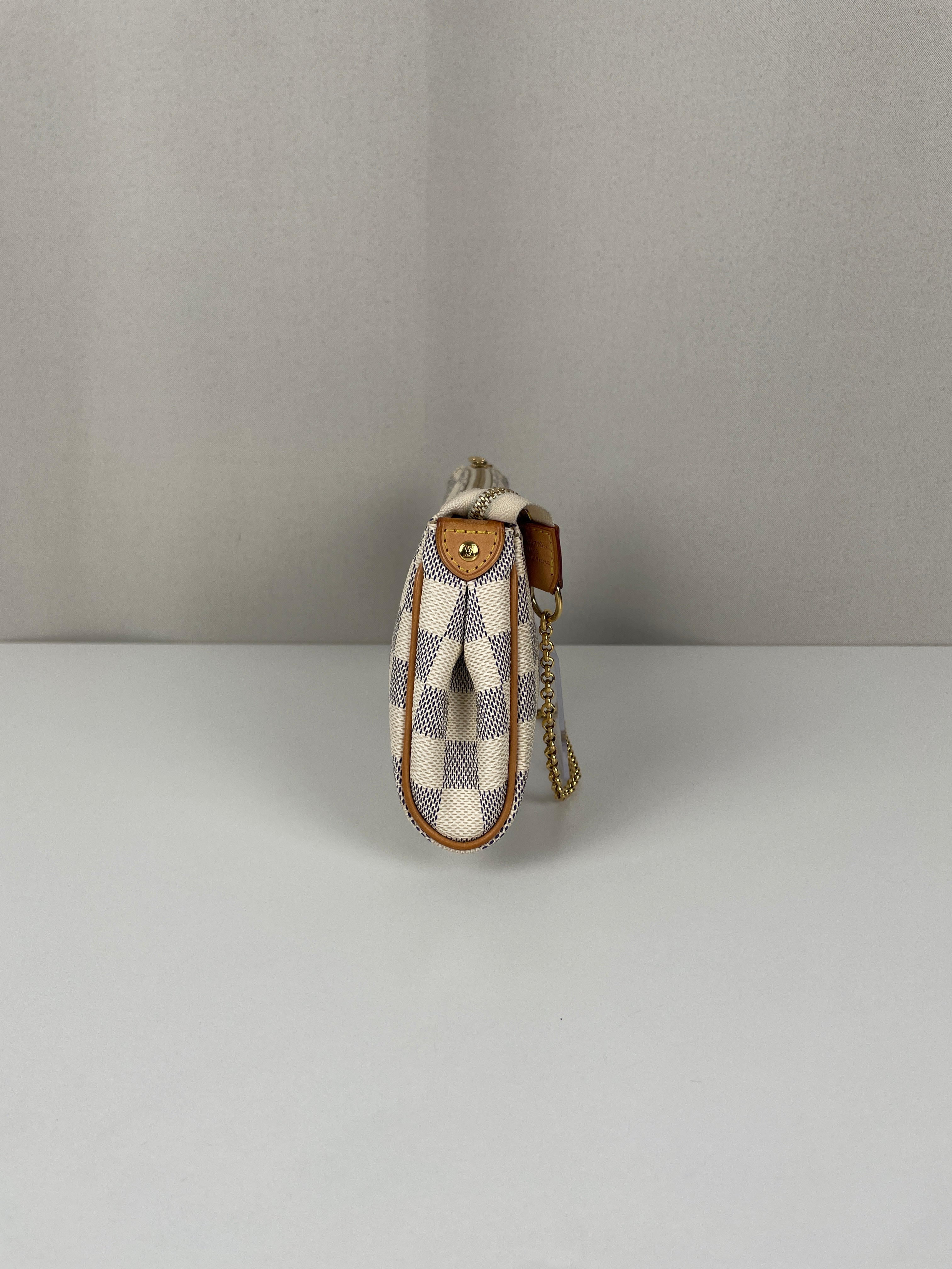 Le Louis Vuitton Eva en Damier Azur représente la fusion parfaite entre fonctionnalité et élégance estivale, introduite dans le cadre de l'interprétation fraîche de la Maison du motif damier classique. Cette pochette polyvalente incarne la légèreté et la sophistication de la toile Damier Azur, originellement inspirée par le style de vie de la Côte d'Azur. Le coloris blanc immaculé avec finitions en cuir naturel crée une esthétique d'un chic sans effort, tandis que la bandoulière amovible offre de multiples options de port du jour au soir.