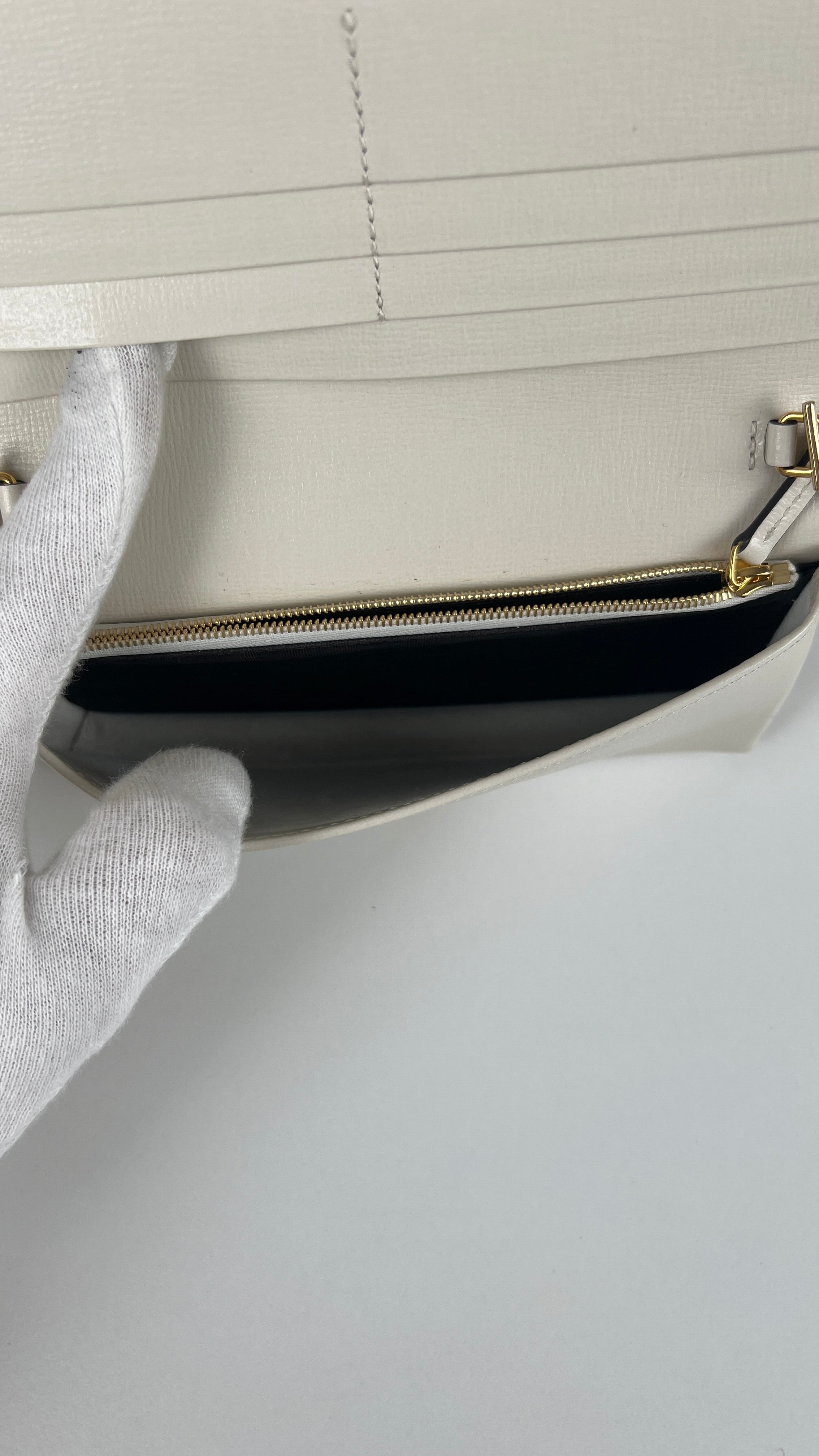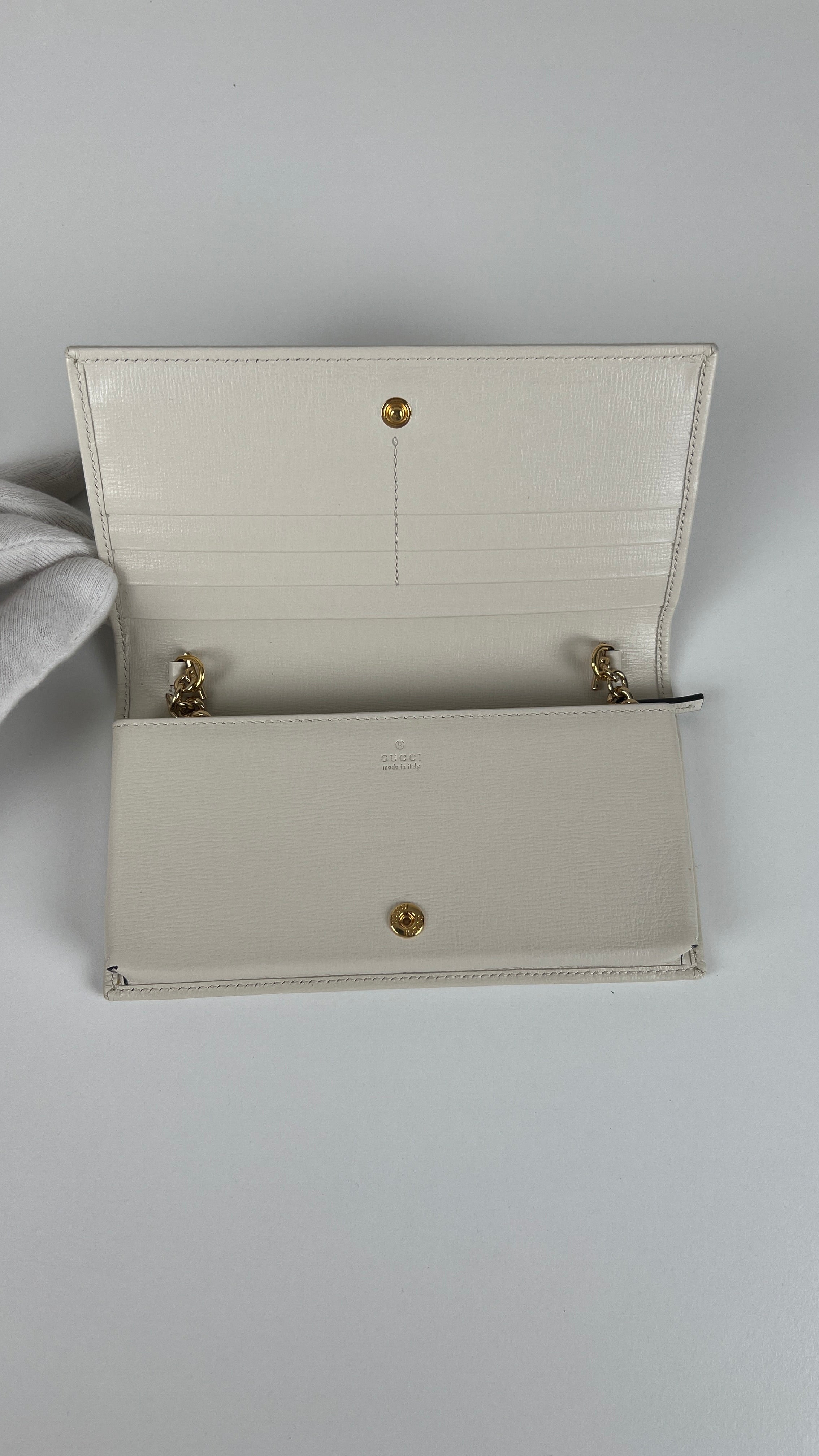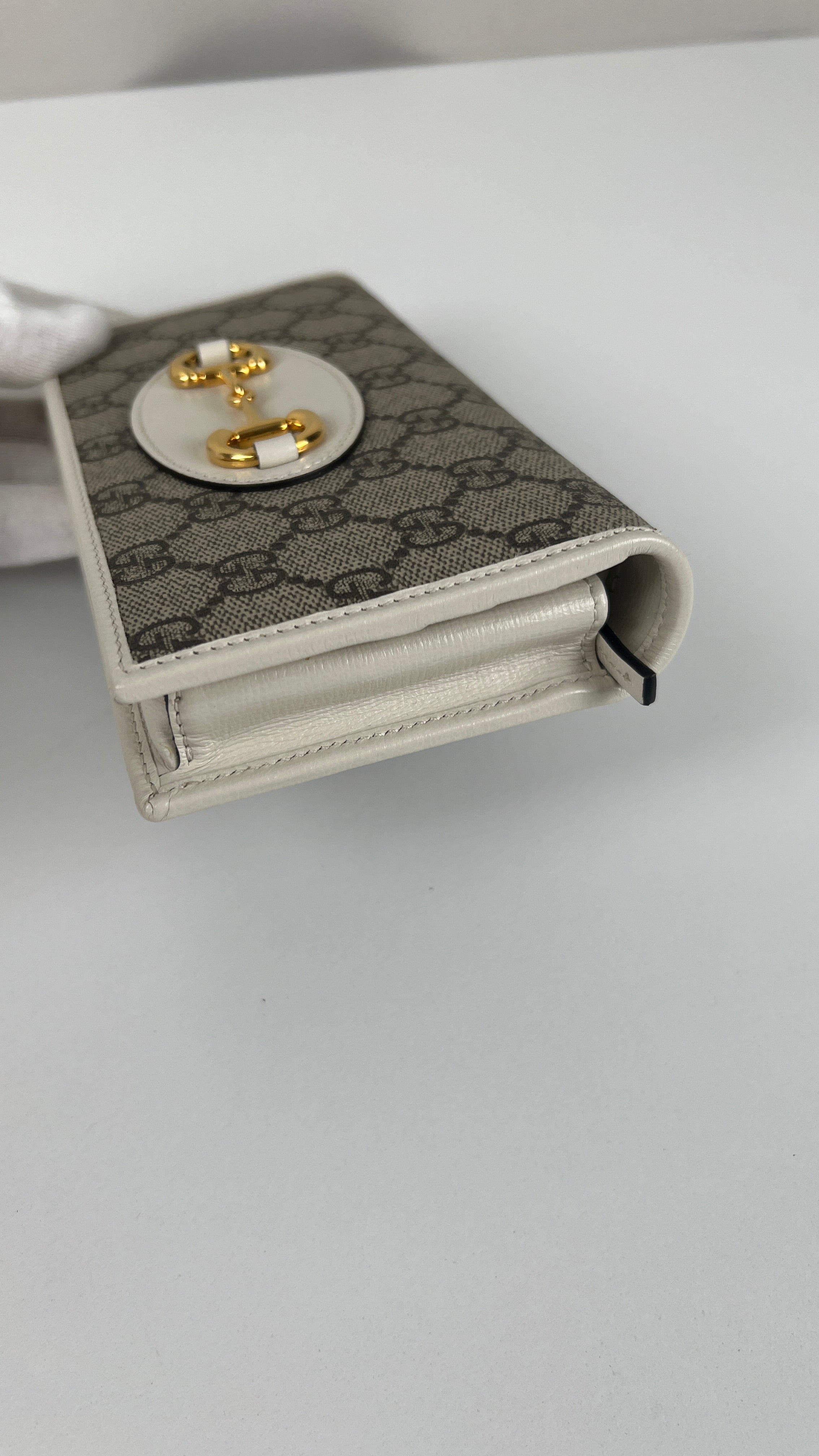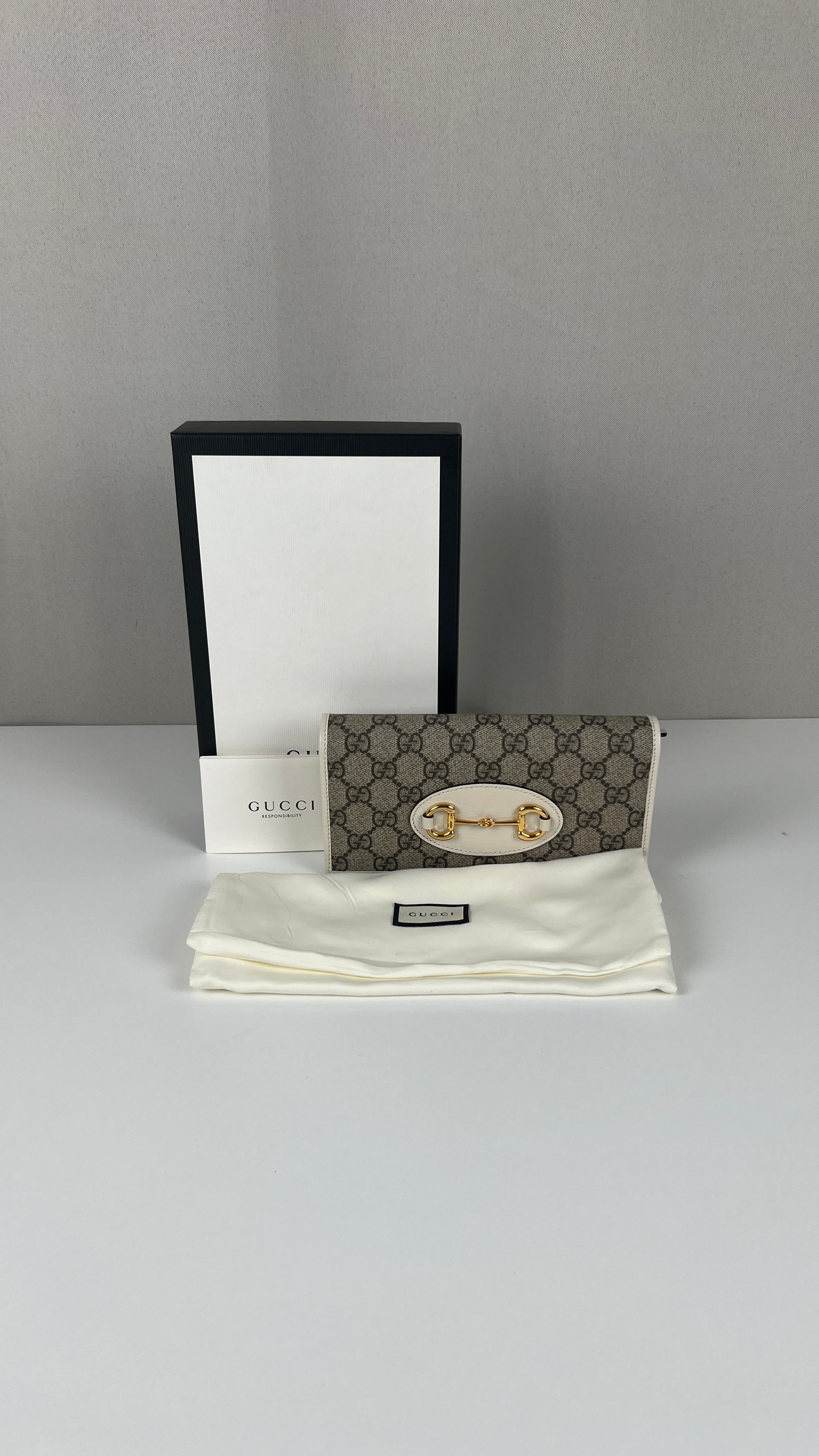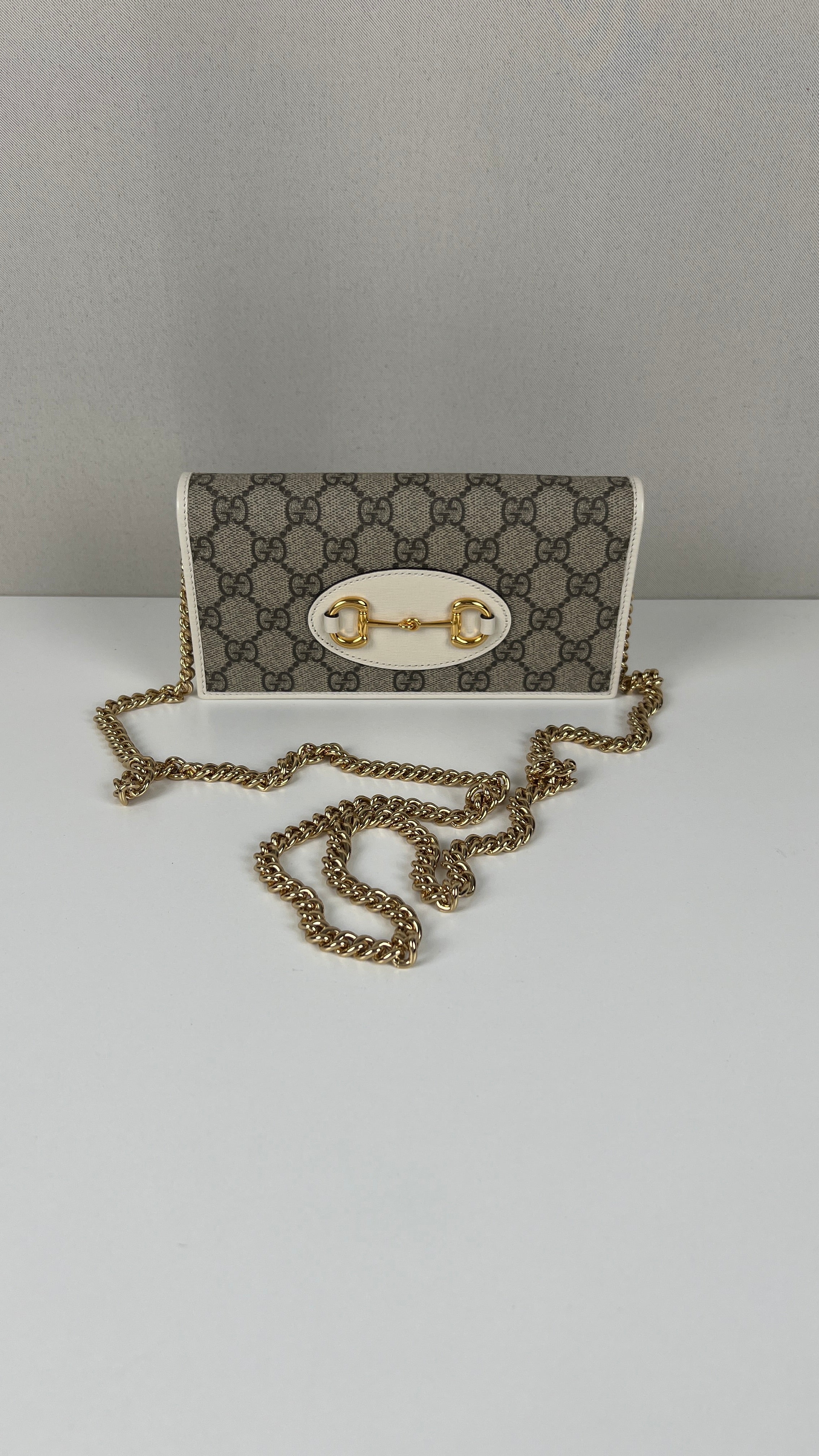 Ce sac Gucci Horsebit WOC est en parfait état comme neuf. La toile, le cuir et les coins sont parfaits. L'intérieur est également comme neuf. La bijouterie est en très bon état.