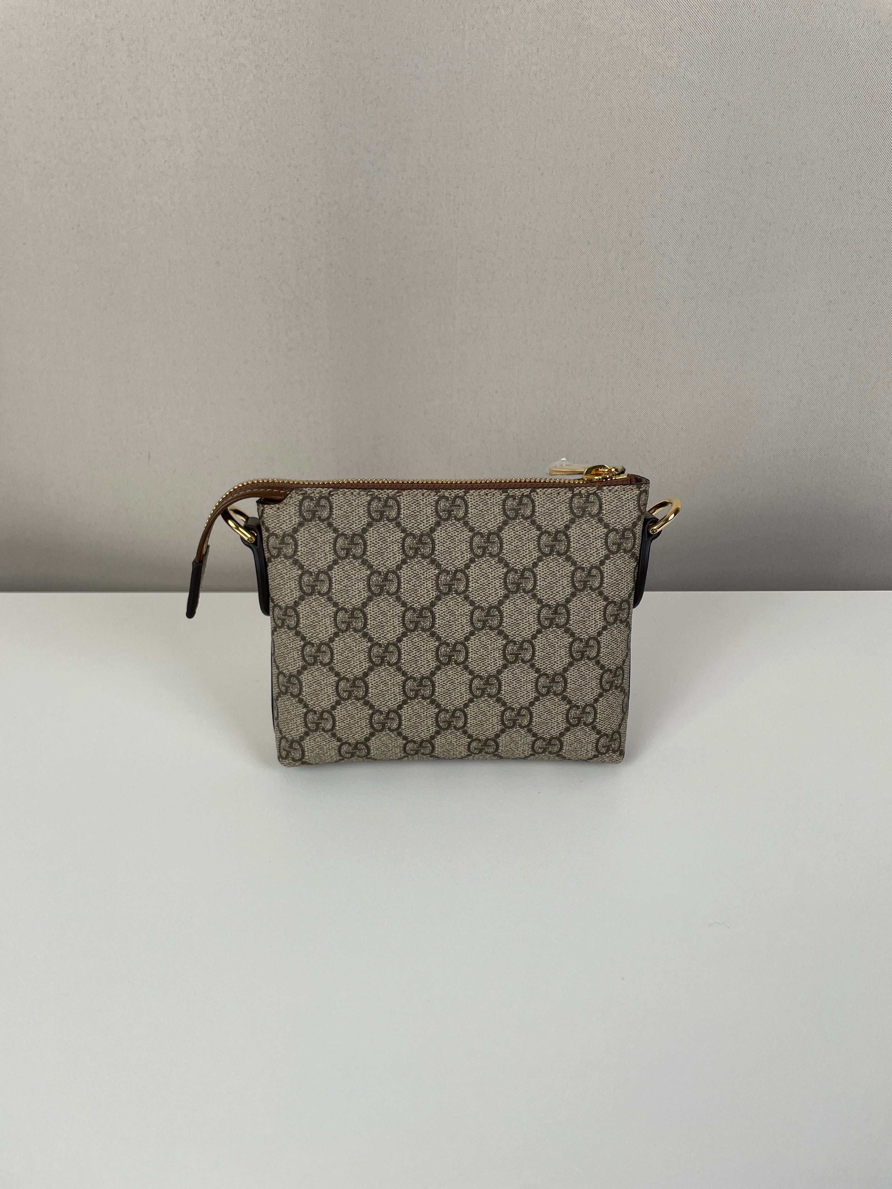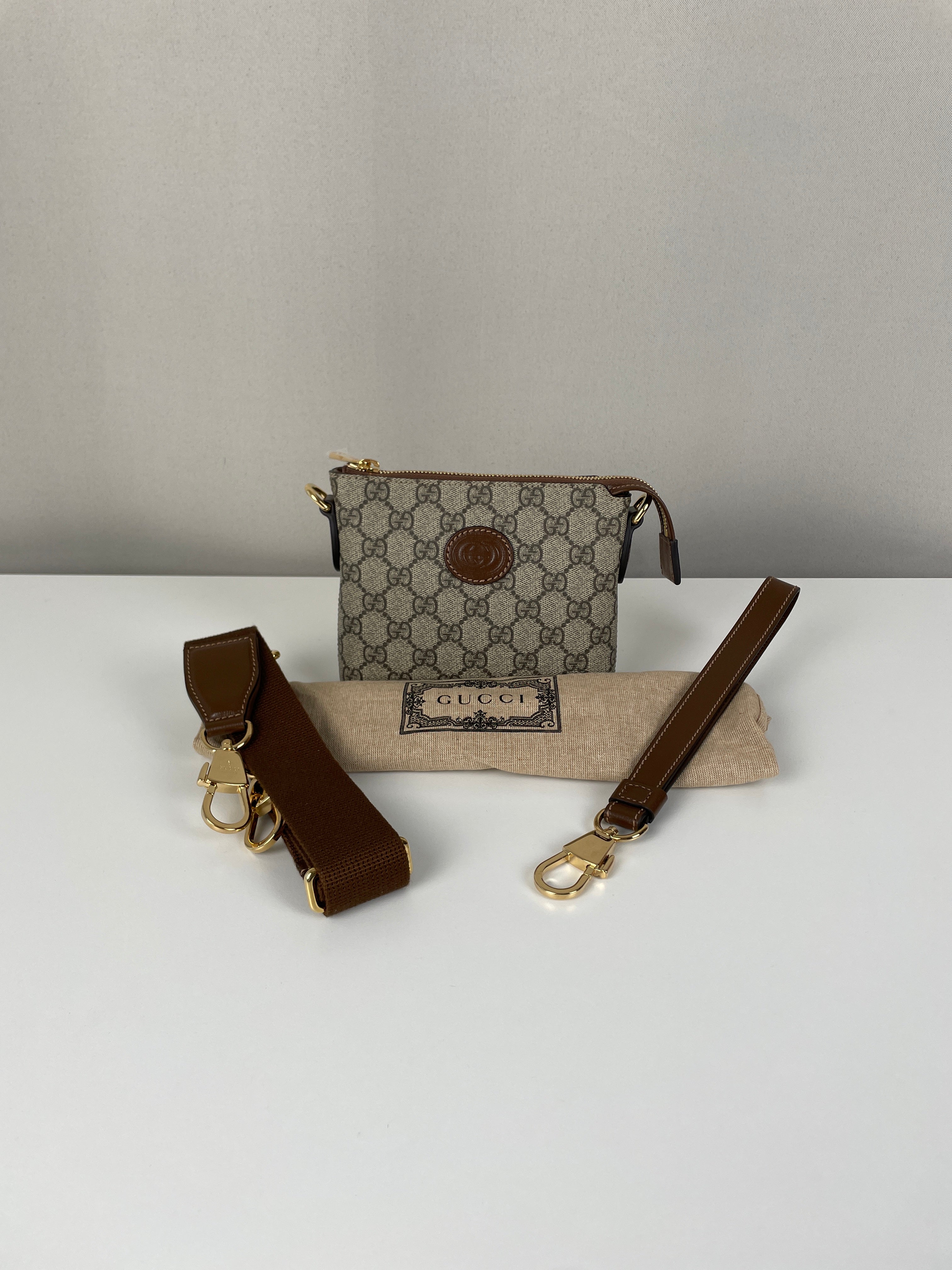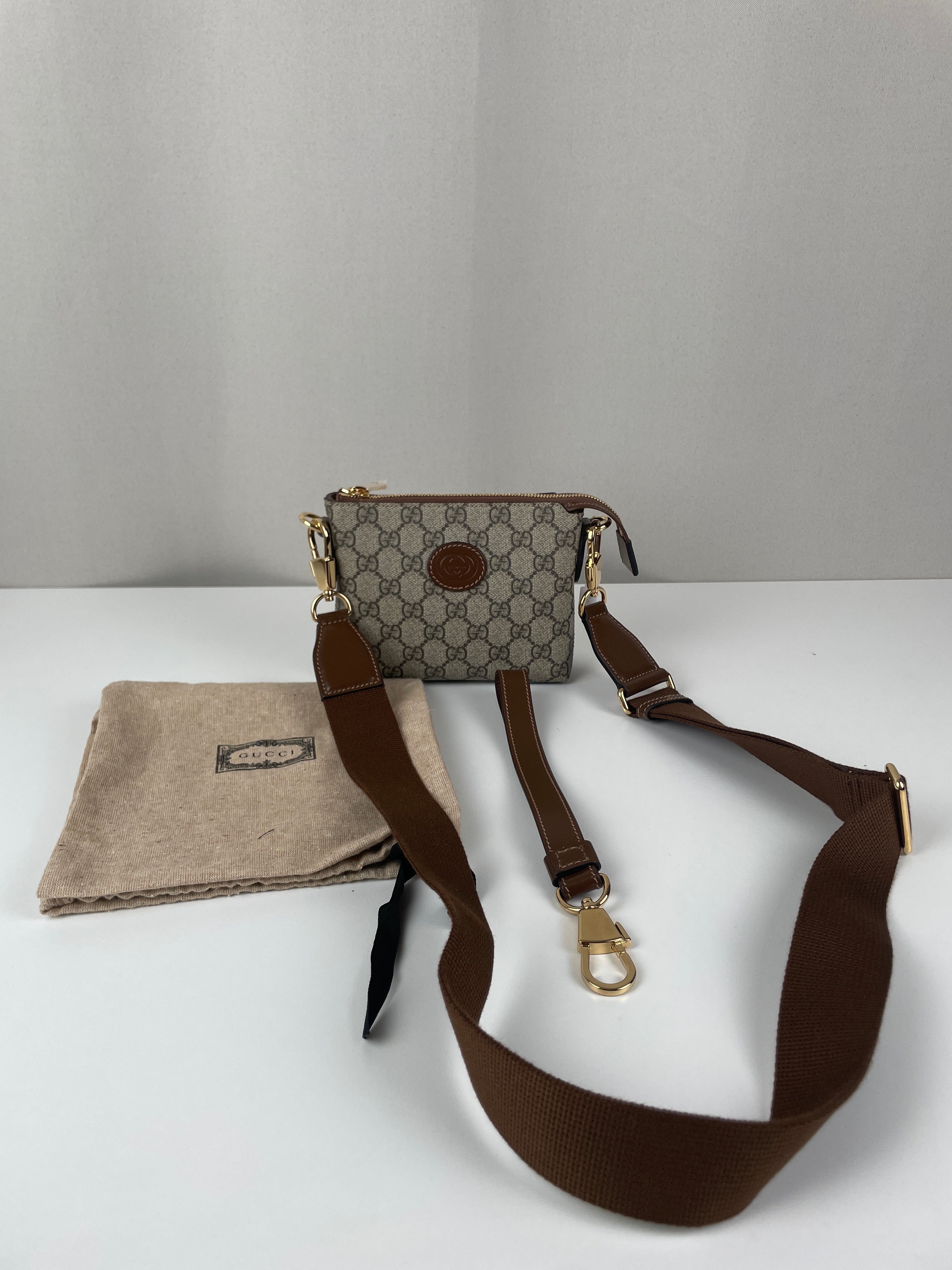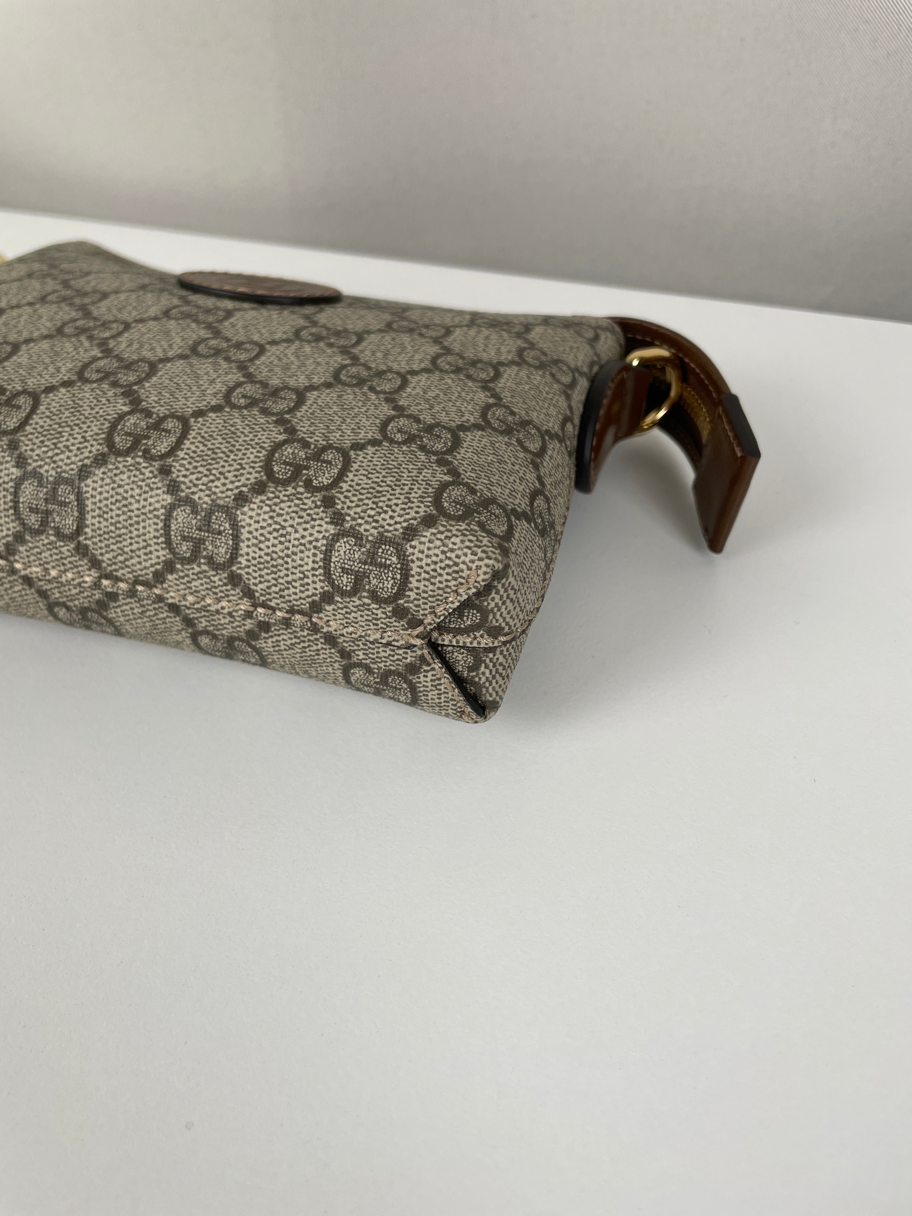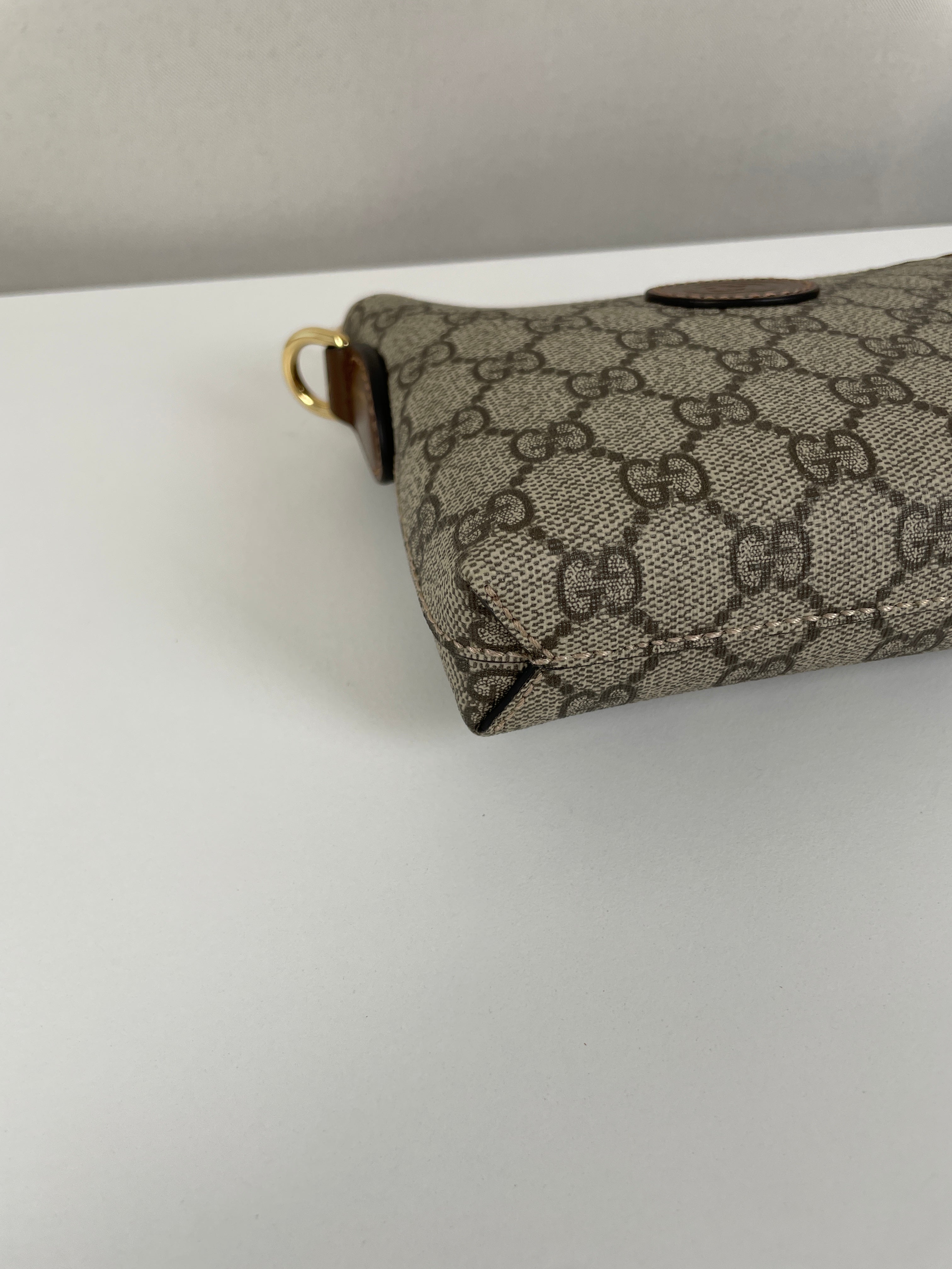 Ce sac Gucci Ophidia est en très bon état. L'intérieur ainsi que les coins sont en très bon état. La toile est également en très bon état. Le sac est comme neuf avec autocollant de protection encore en place. Il peut se transformer en pochette. Le sac bandoulière est réglable.