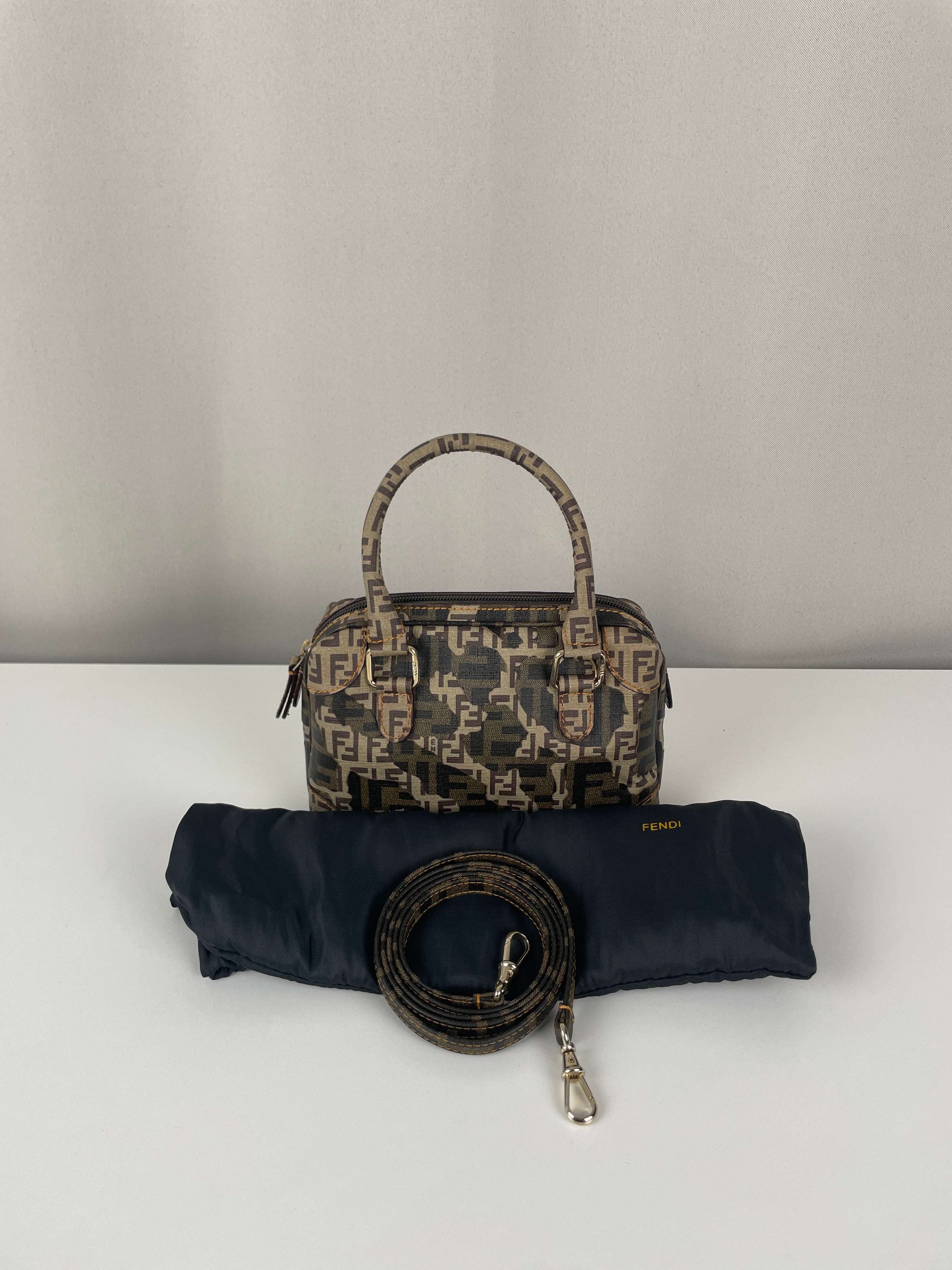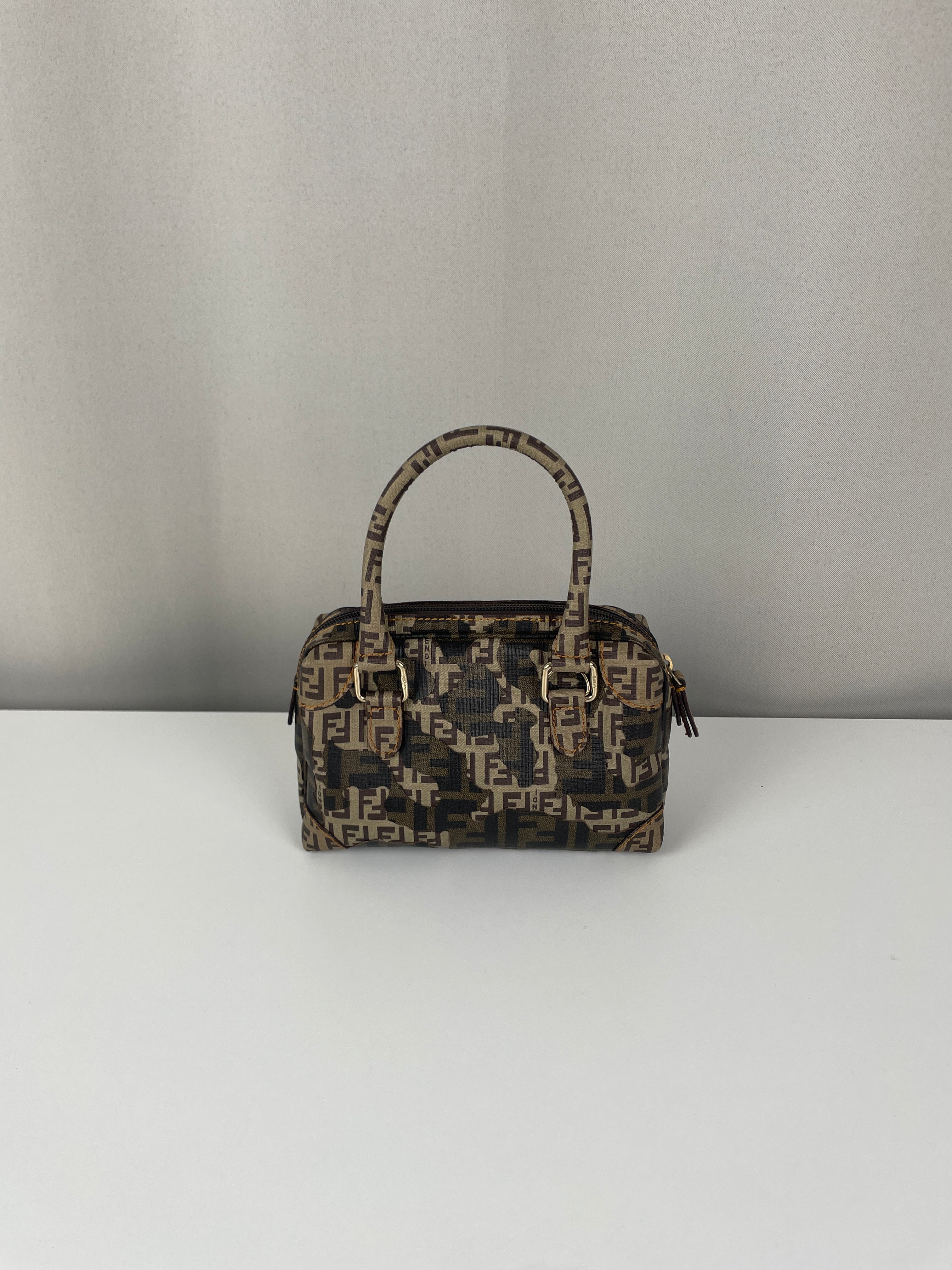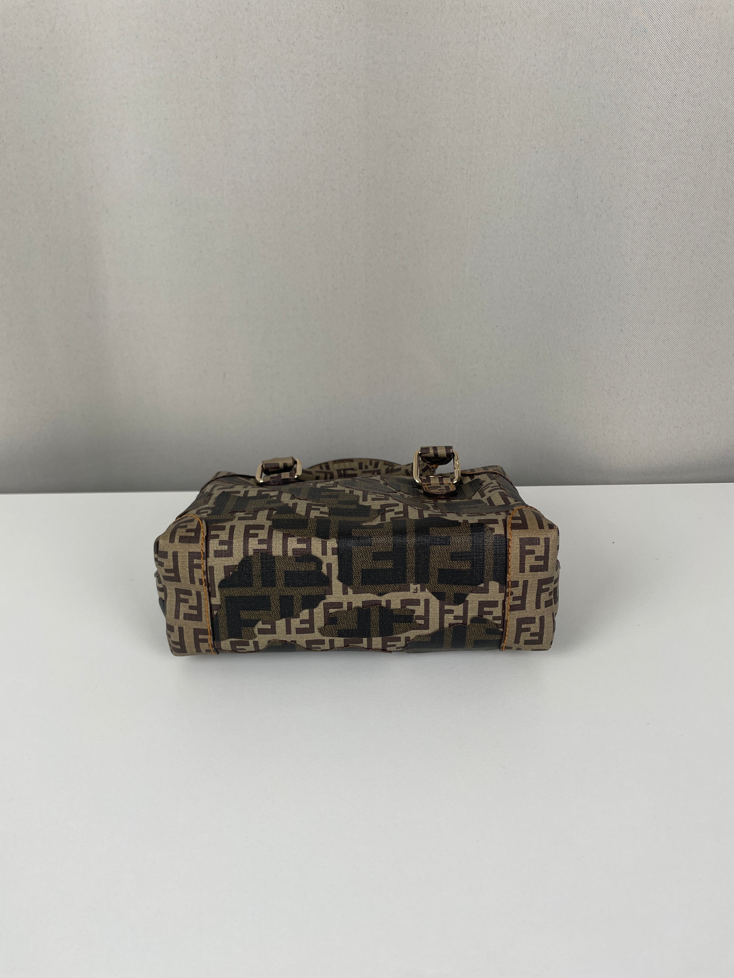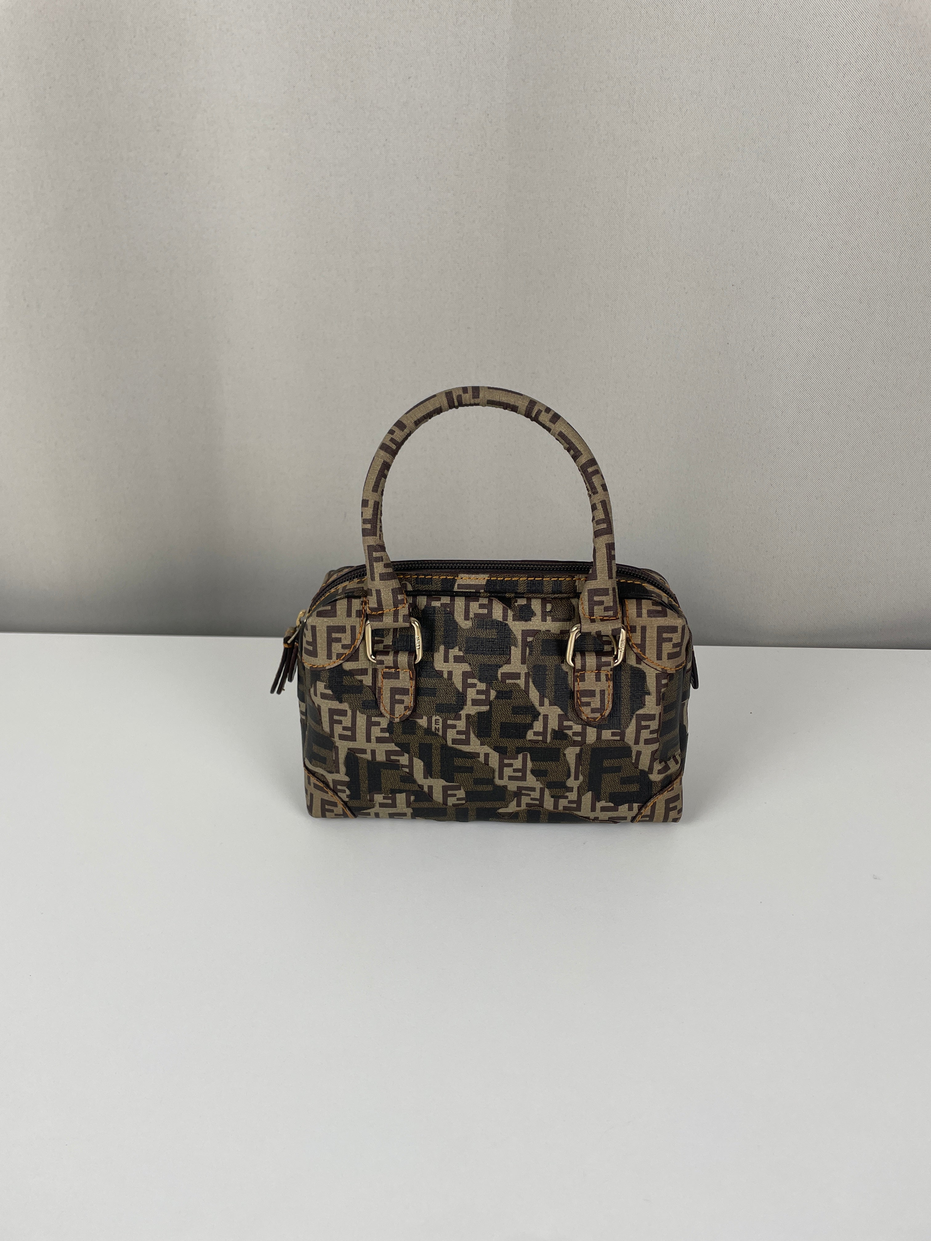 Petit bijou signé Fendi, le Mini Zucchino Militaire met en avant le célèbre motif à double F dans une teinte kaki subtilement inspirée du style militaire. Réalisé en toile résistante et rehaussé d’une bijouterie argentée, il allie élégance et praticité. Parfait pour le jour comme pour le soir, il reflète toute la sophistication italienne et intemporelle de la Maison Fendi.
