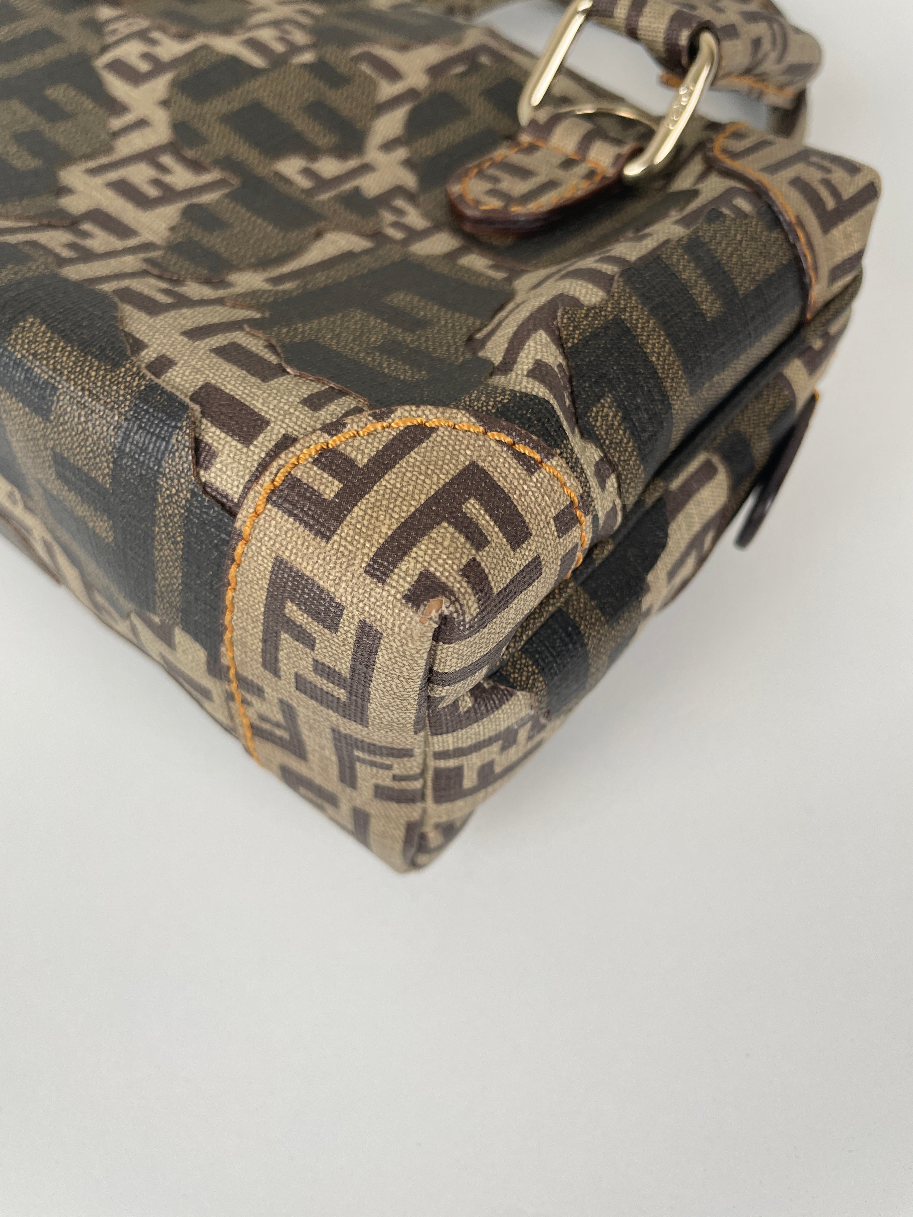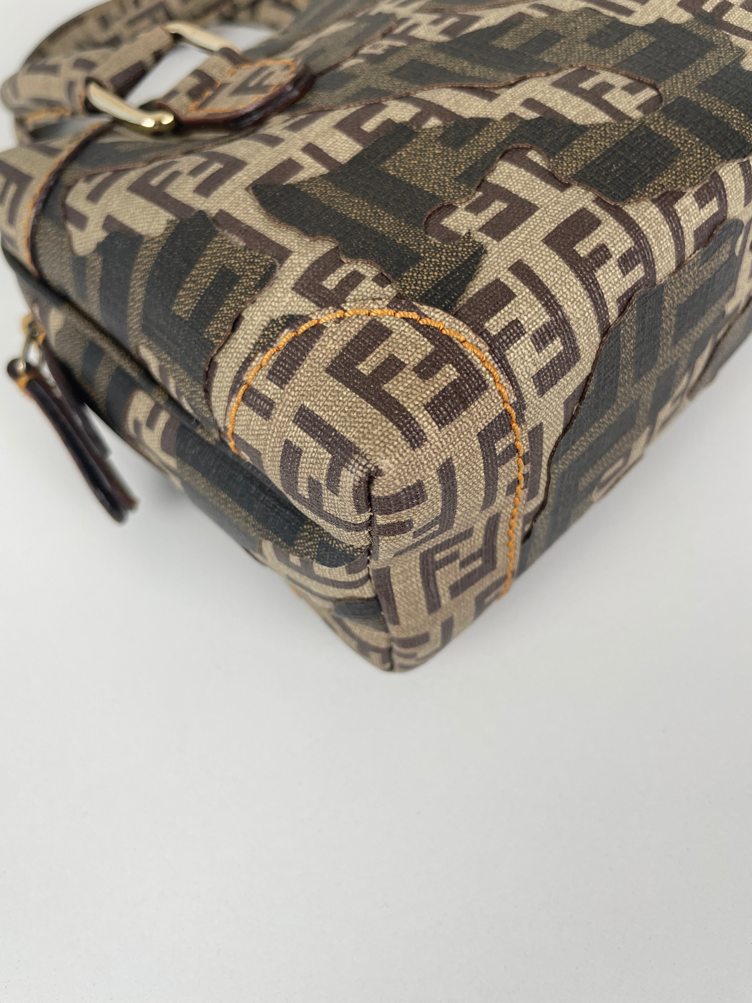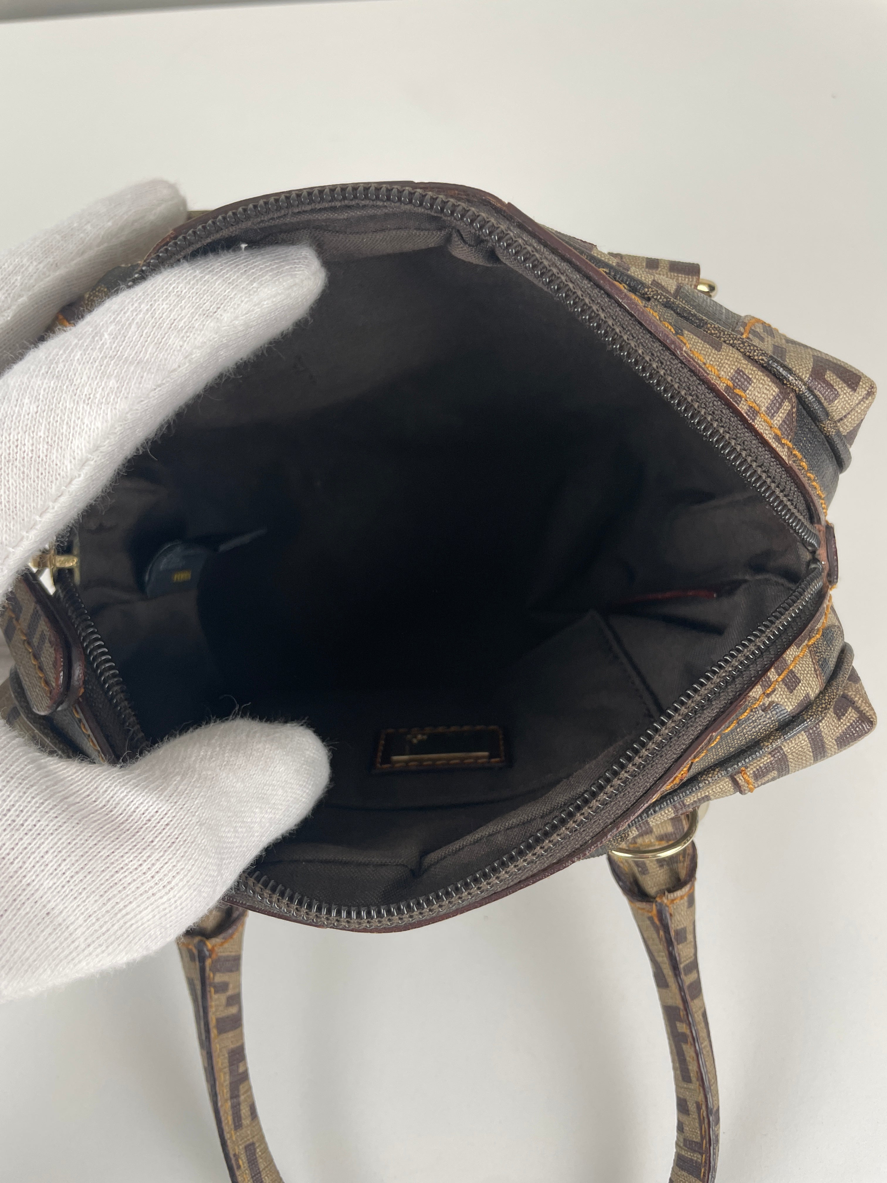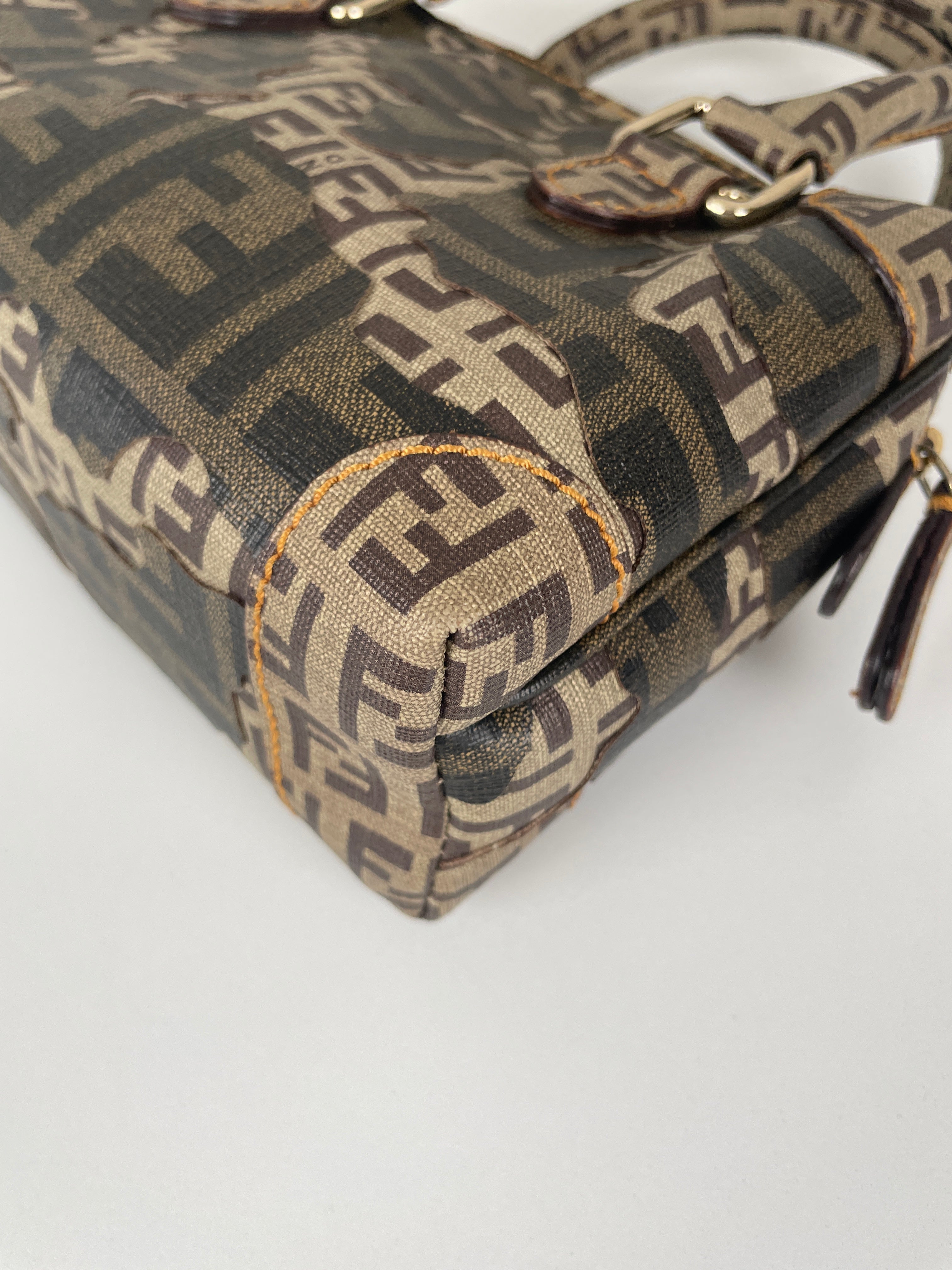 Petit bijou signé Fendi, le Mini Zucchino Militaire met en avant le célèbre motif à double F dans une teinte kaki subtilement inspirée du style militaire. Réalisé en toile résistante et rehaussé d’une bijouterie argentée, il allie élégance et praticité. Parfait pour le jour comme pour le soir, il reflète toute la sophistication italienne et intemporelle de la Maison Fendi.