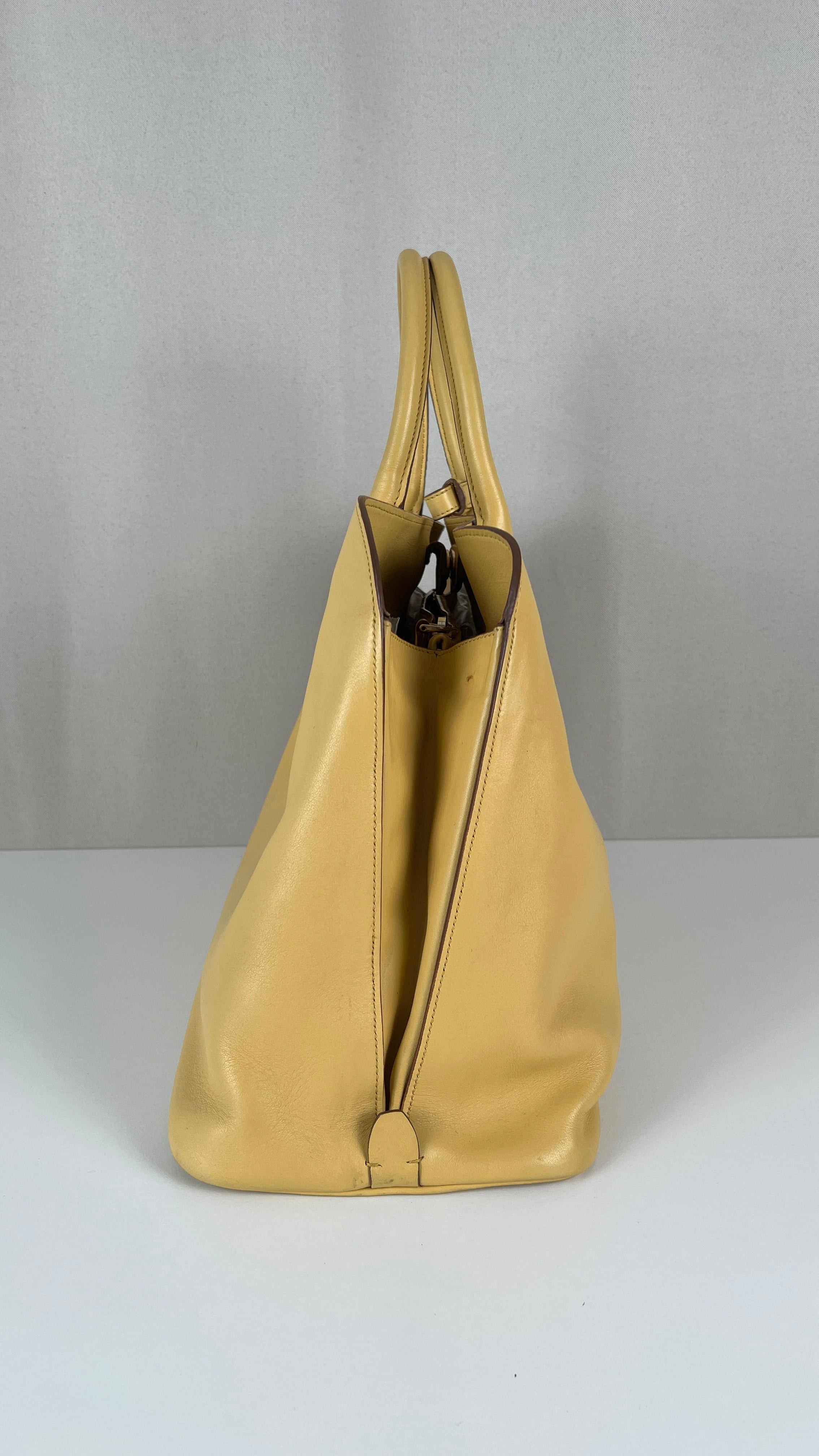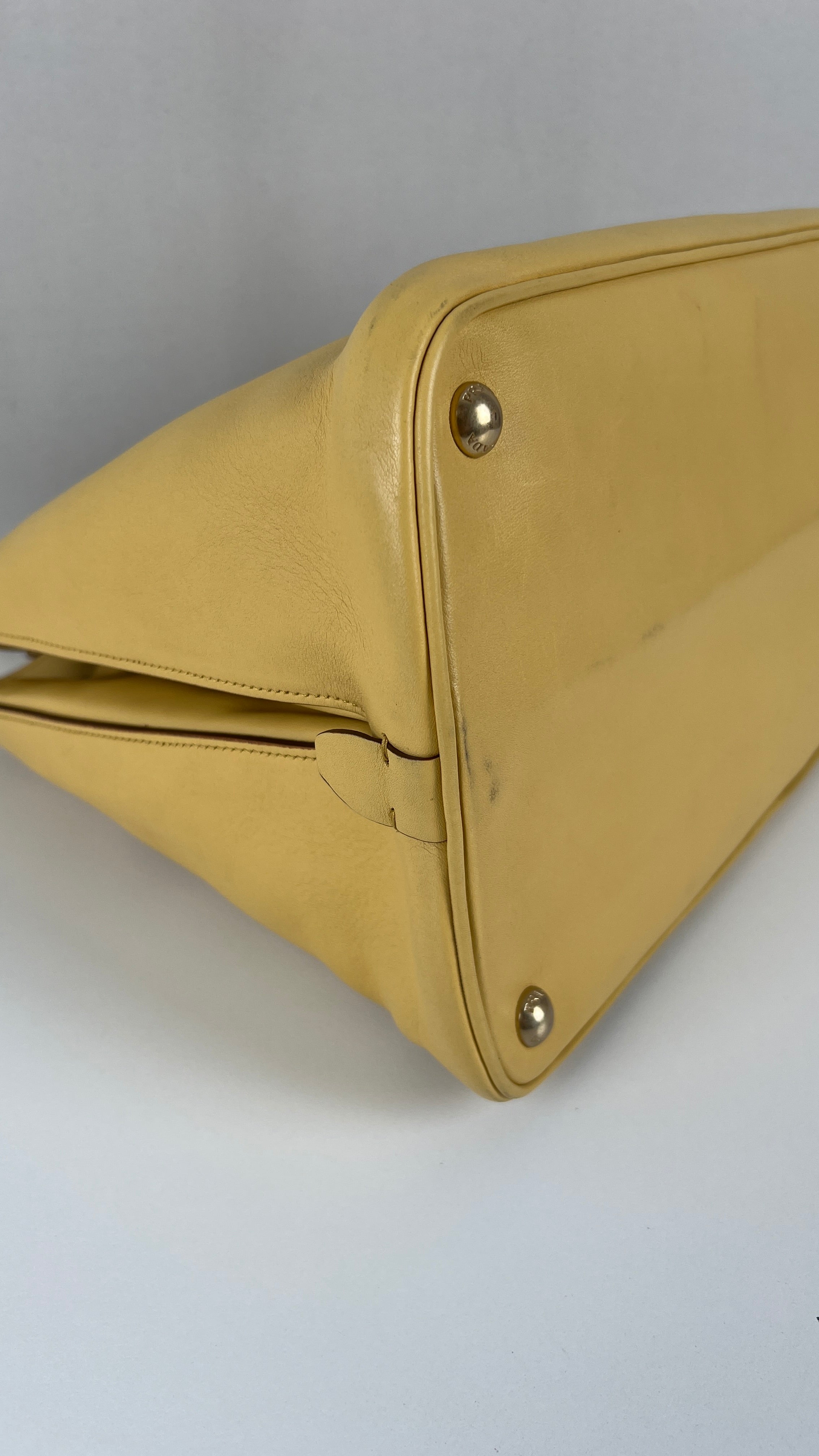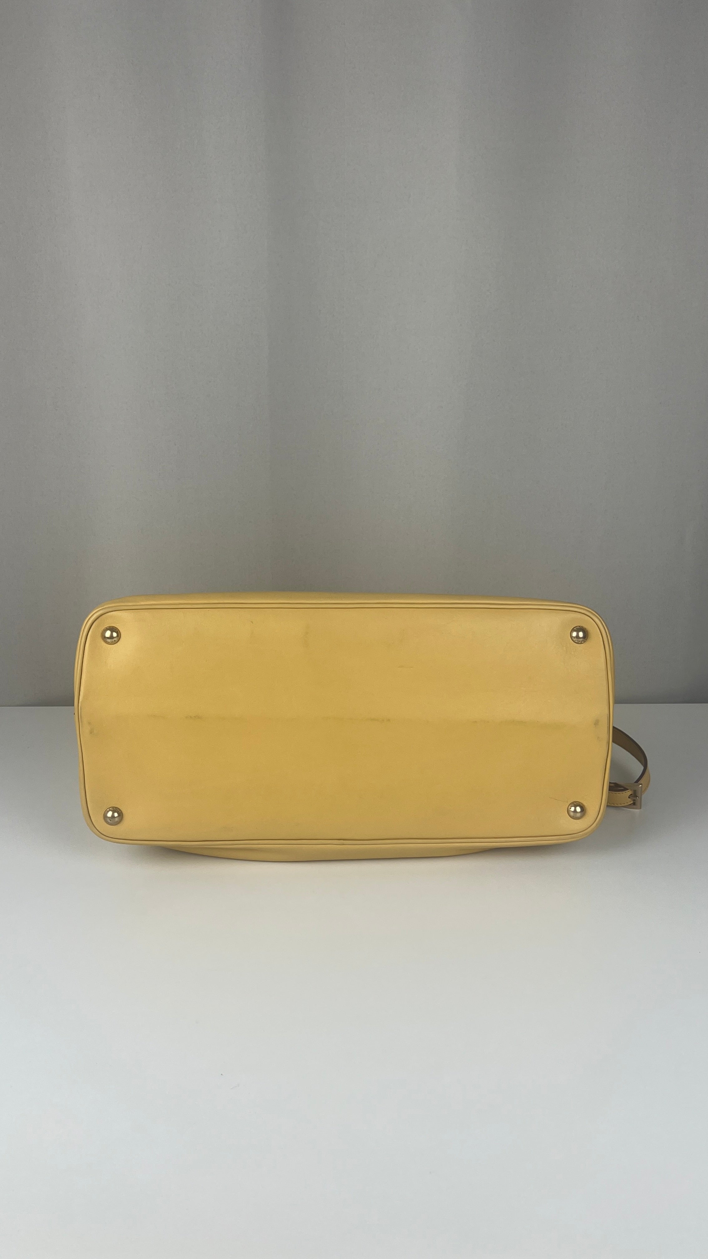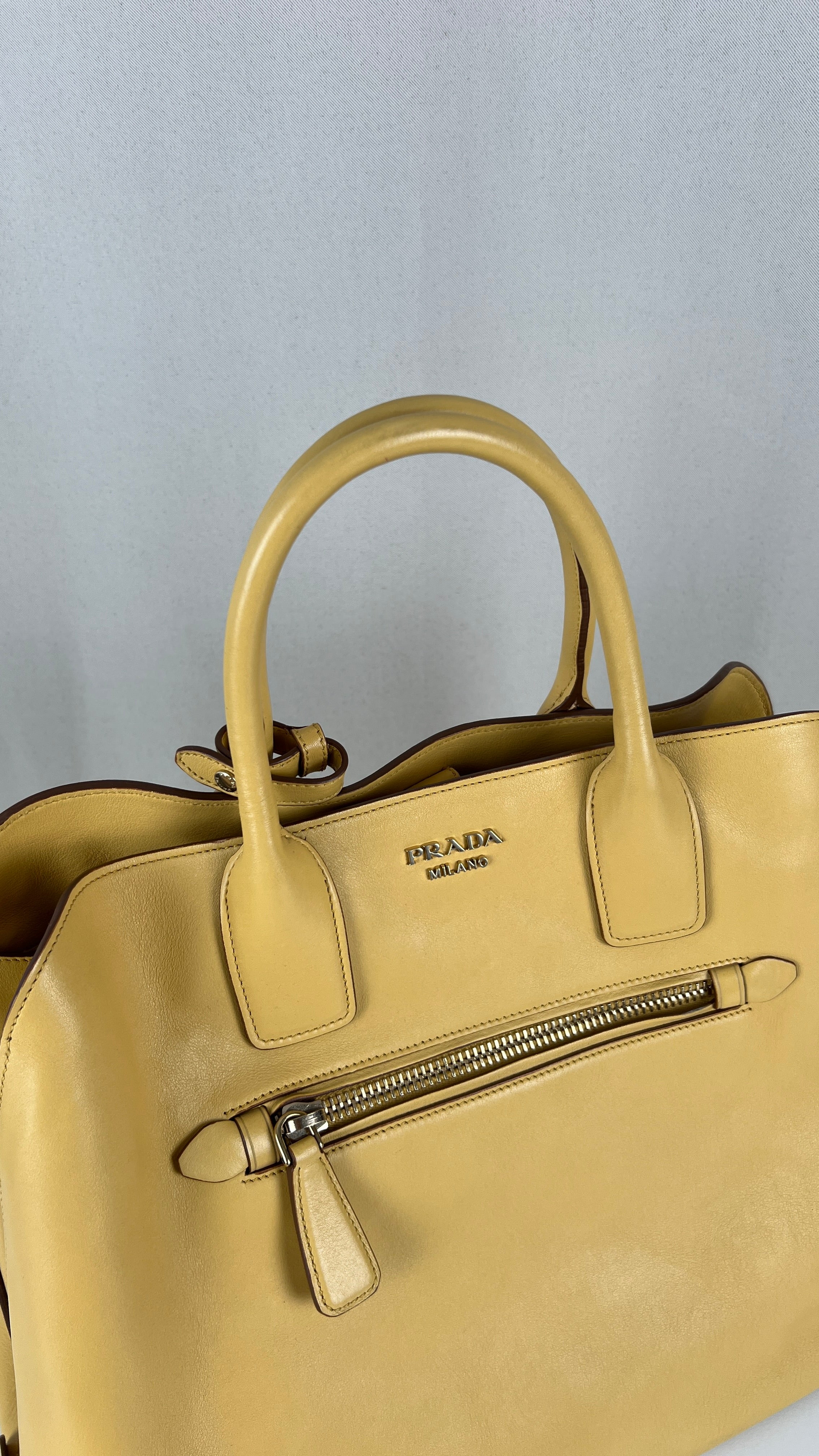 Avec son design minimaliste et son excellent état, ce cabas Prada est une trouvaille d'occasion raffinée, alliant élégance, fonctionnalité et valeur durable. Sa couleur jaune pâle est parfaite pour la saison printemps-été. Ce sac Prada est donc idéal pour le printemps-été.