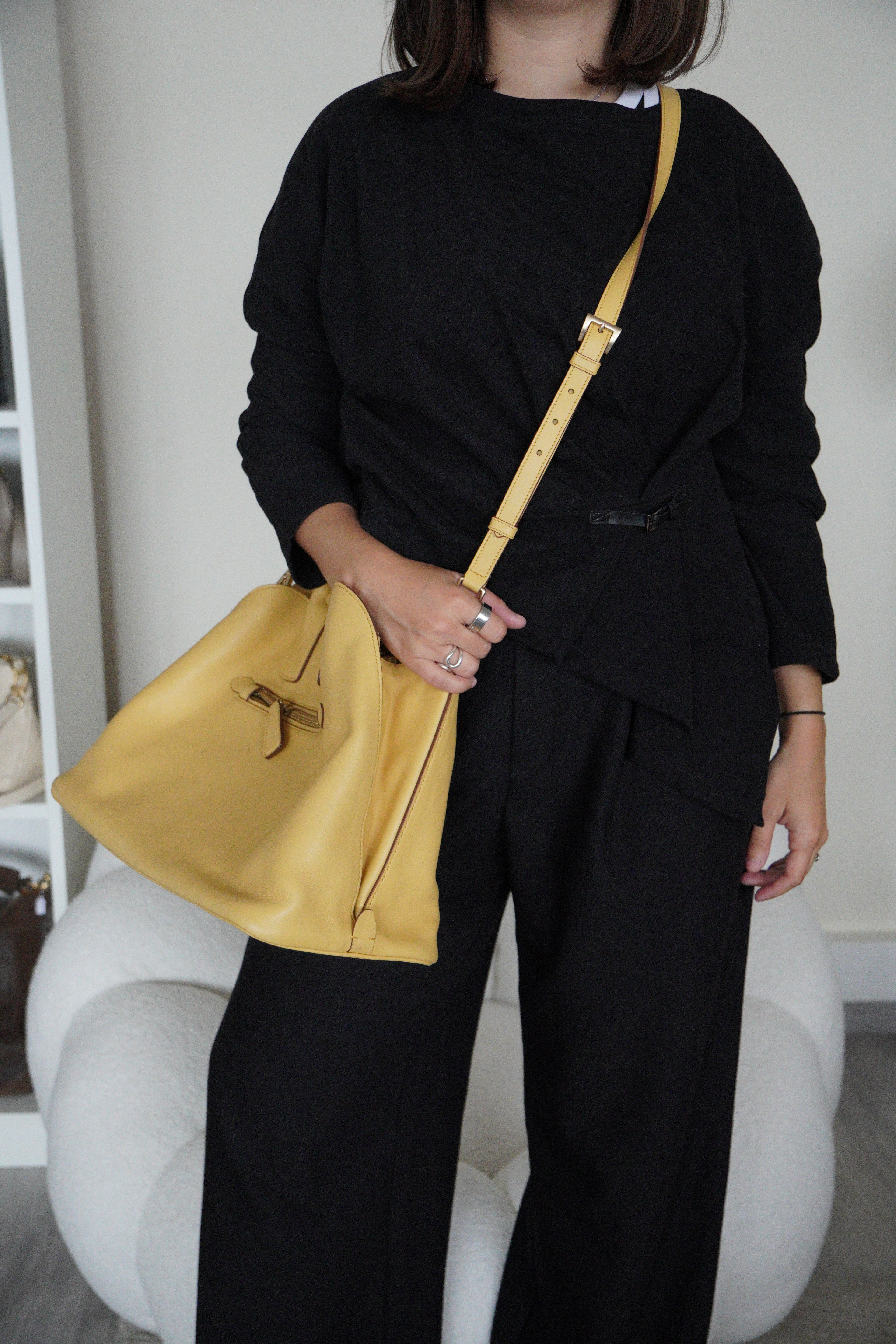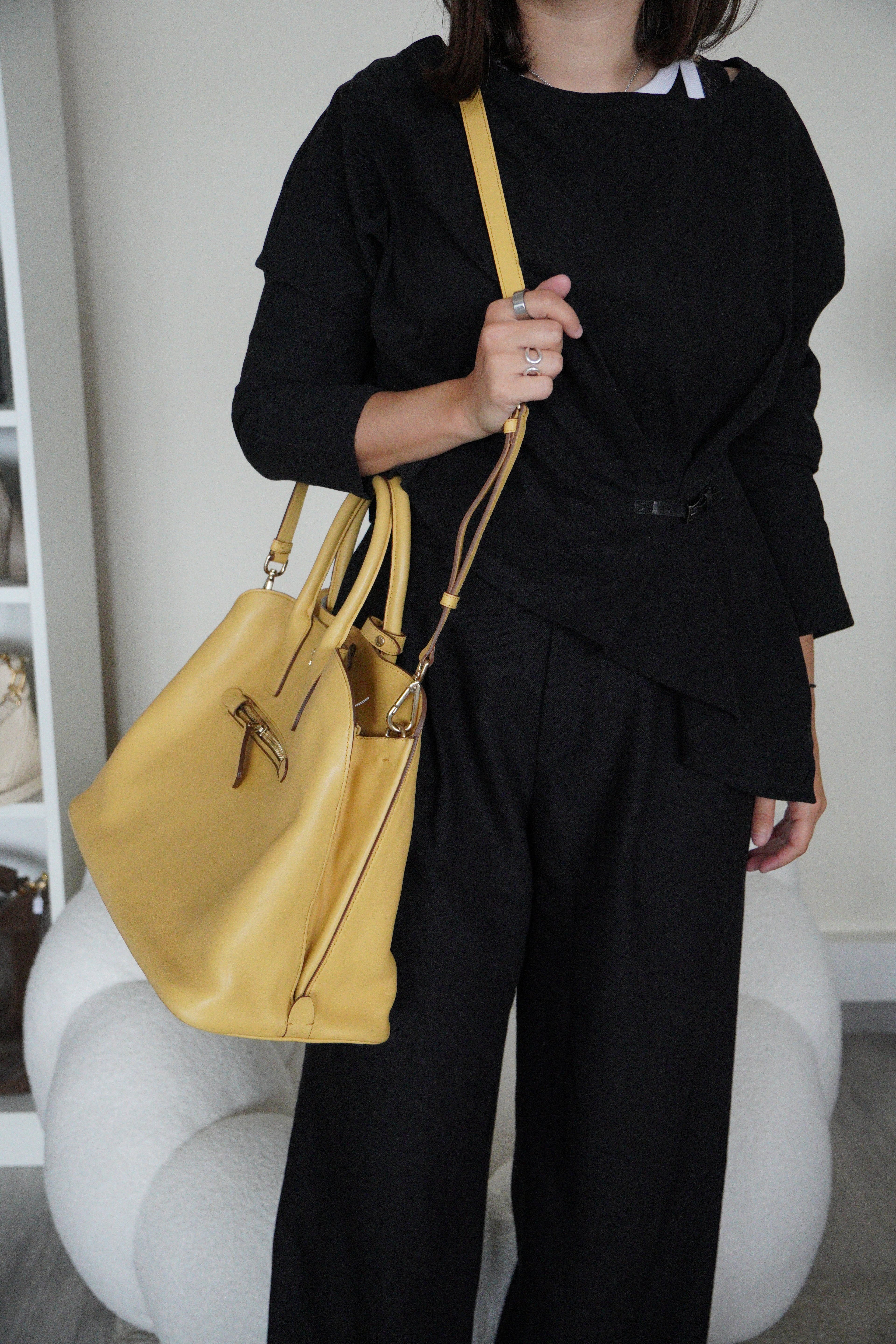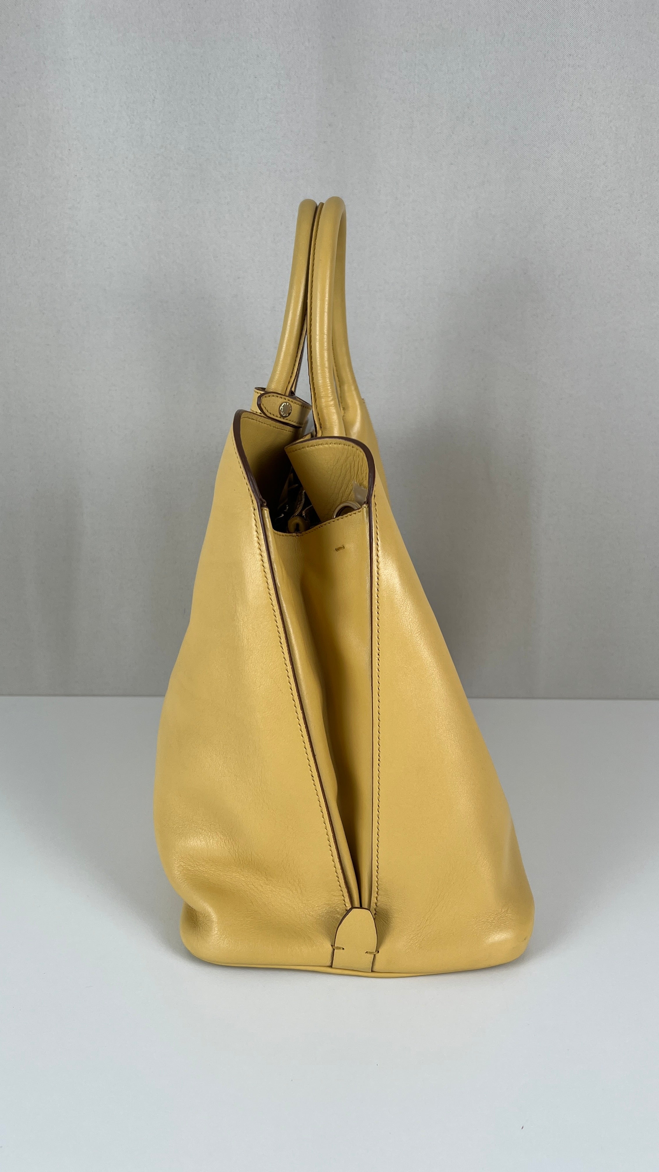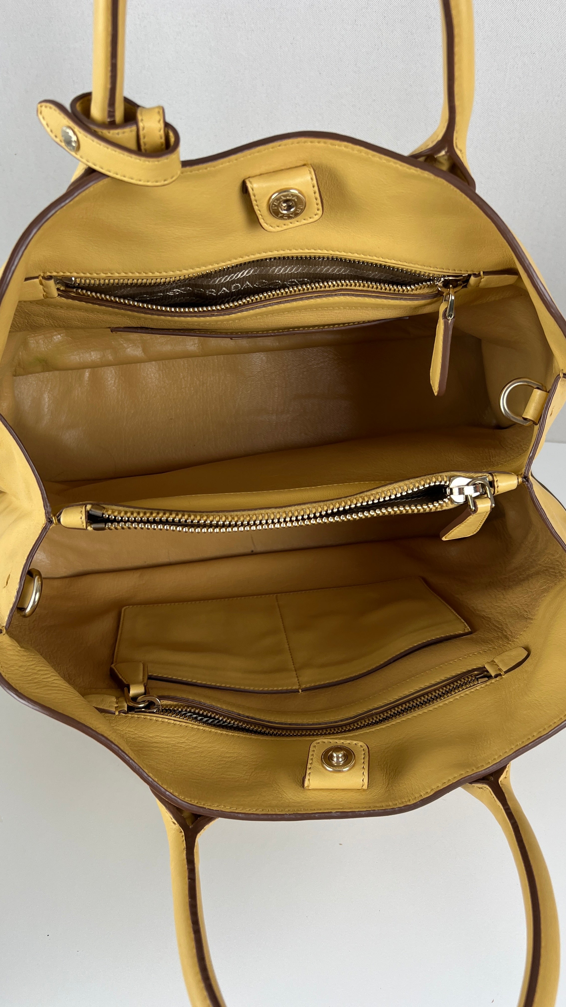 Avec son design minimaliste et son excellent état, ce cabas Prada est une trouvaille d'occasion raffinée, alliant élégance, fonctionnalité et valeur durable. Sa couleur jaune pâle est parfaite pour la saison printemps-été. Ce sac Prada est donc idéal pour le printemps-été.