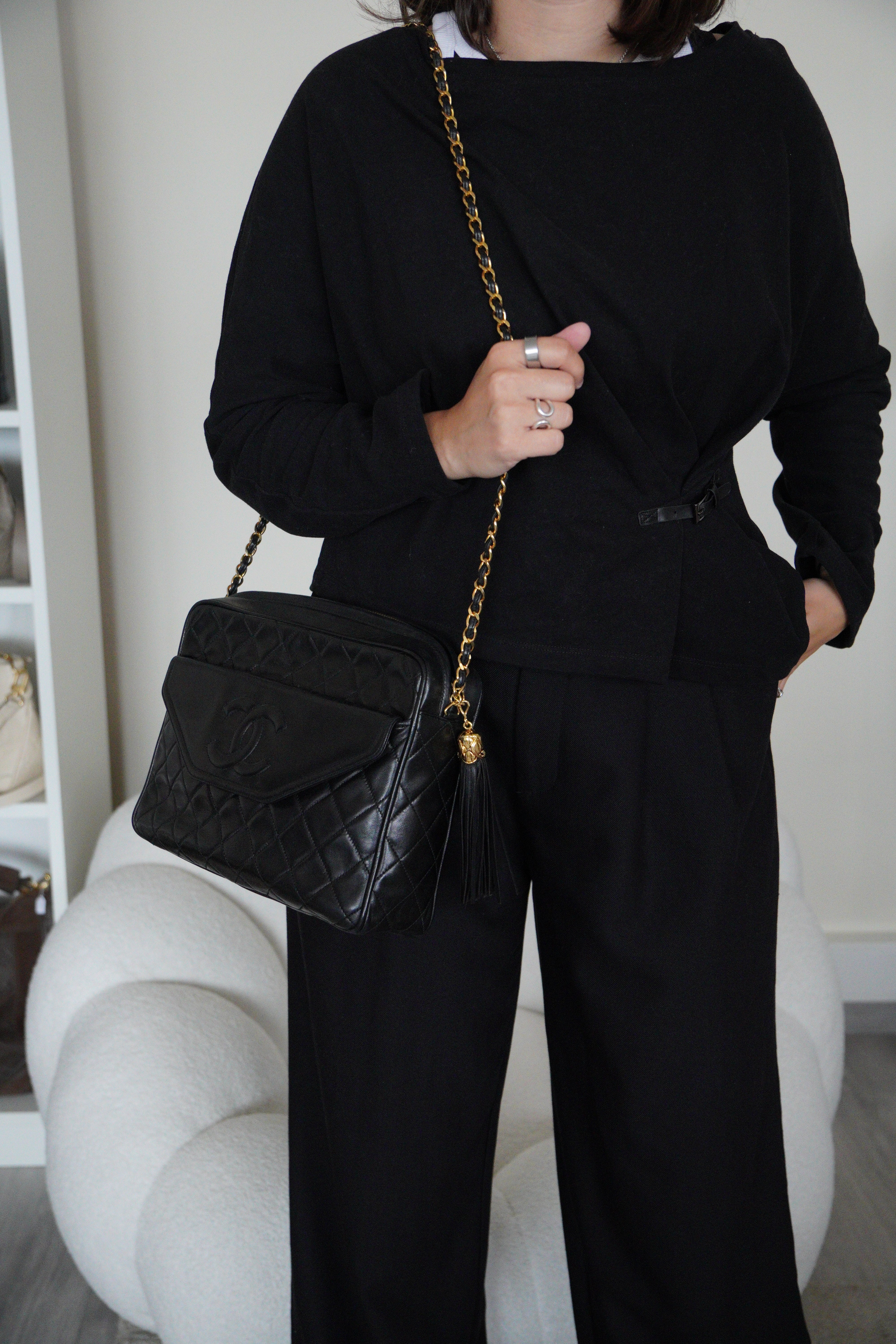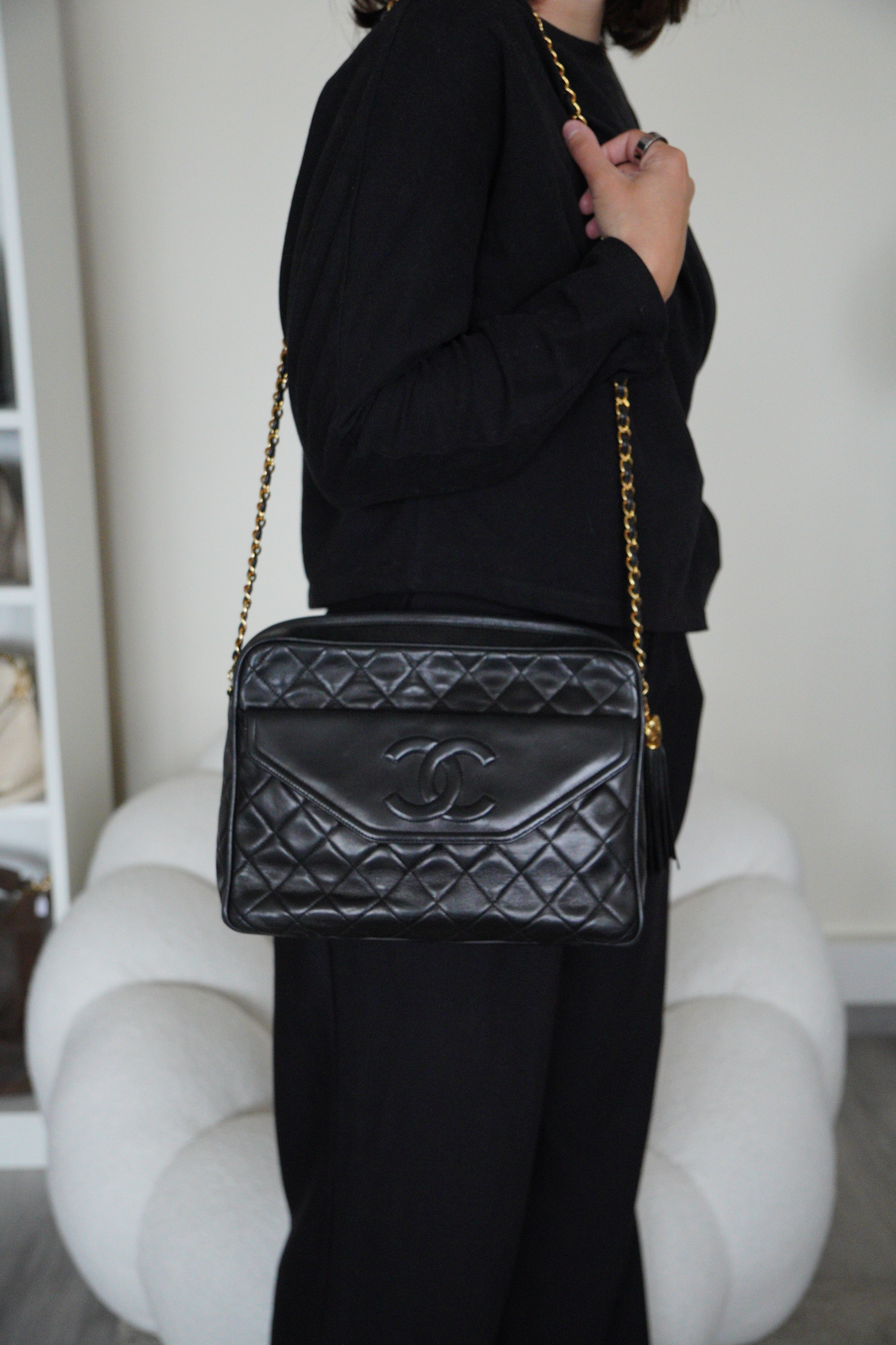 Ce sac Chanel Camera Bag est un classique de la maison Chanel, apprécié pour sa forme compacte et son élégance intemporelle. Confectionné en cuir matelassé avec une fermeture zippée intégrale, il allie style et praticité.
