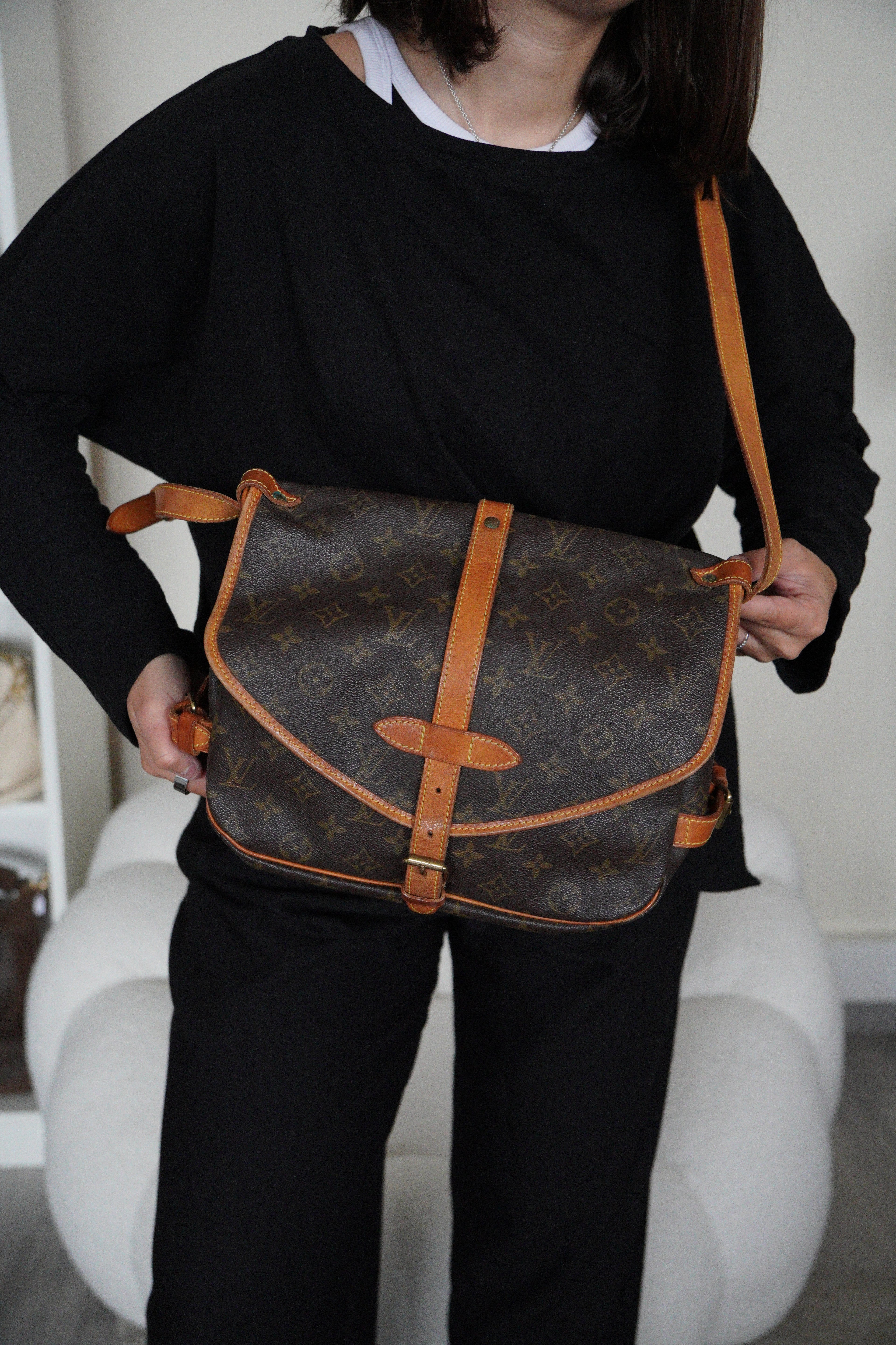 Le Louis Vuitton Saumur 30 en toile Monogram est un sac emblématique de la maison, inspiré des sacs de selle traditionnels. Avec sa double poche, sa bandoulière ajustable et son style intemporel, c’est un modèle aussi pratique que stylé.