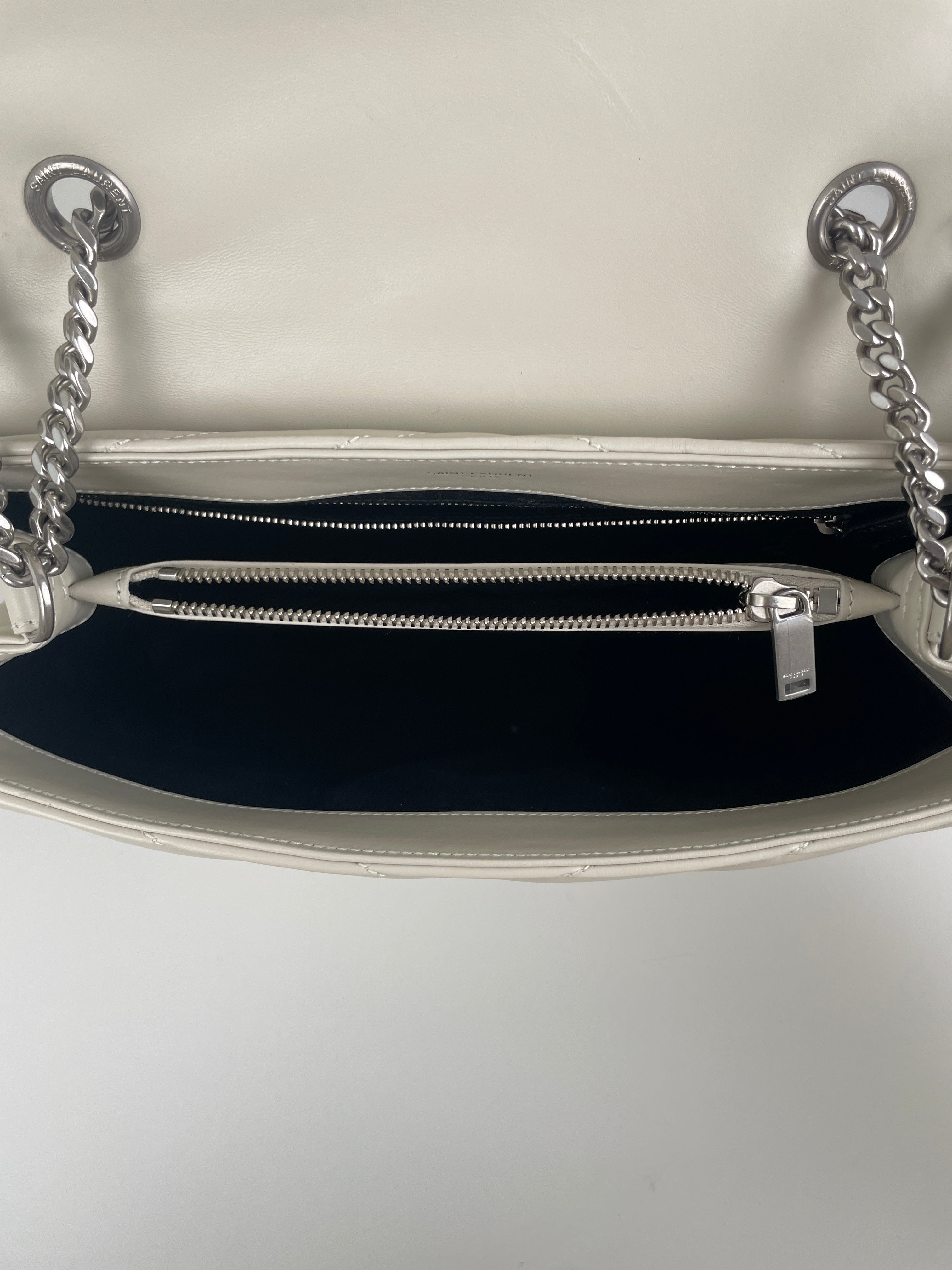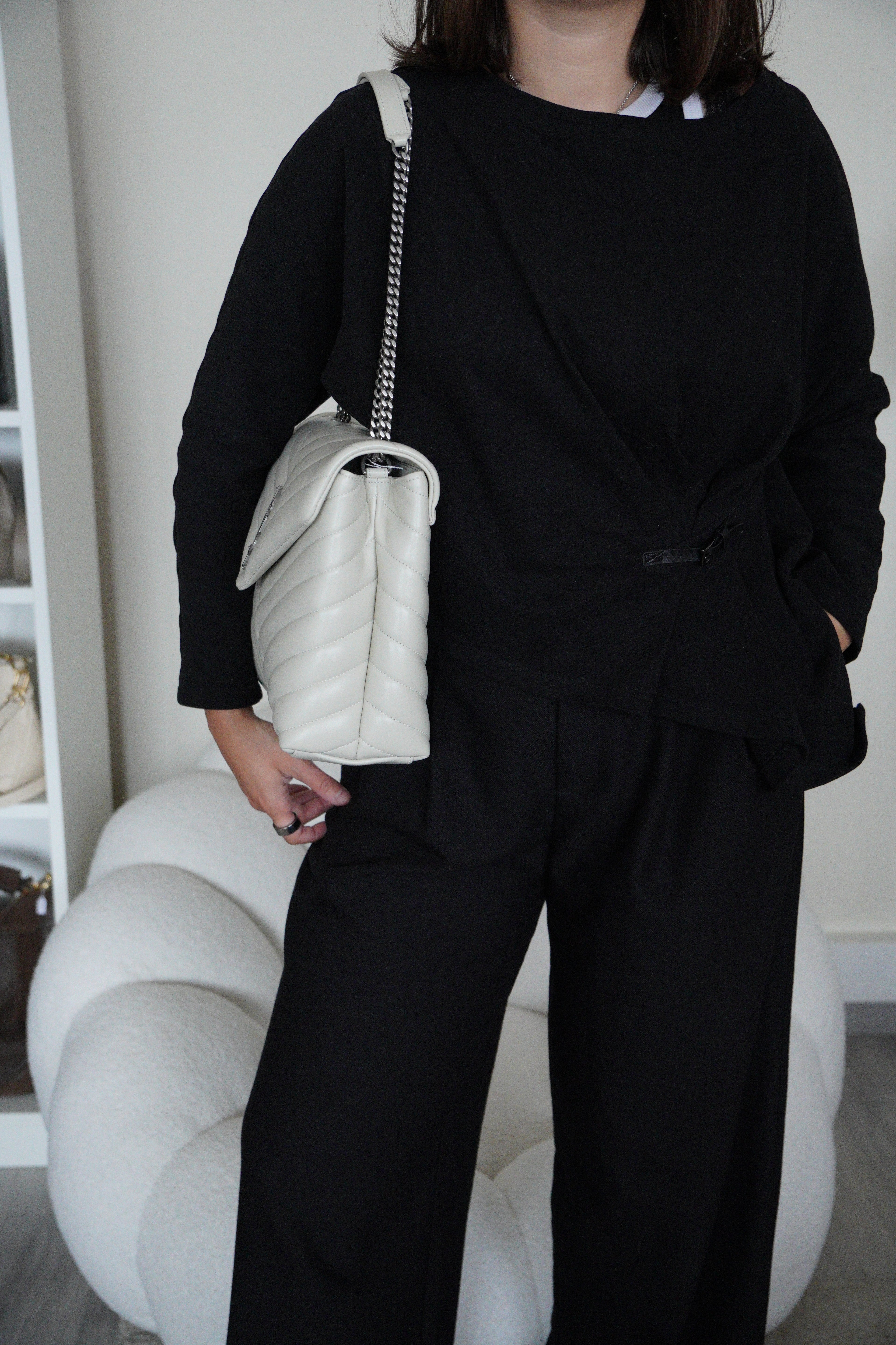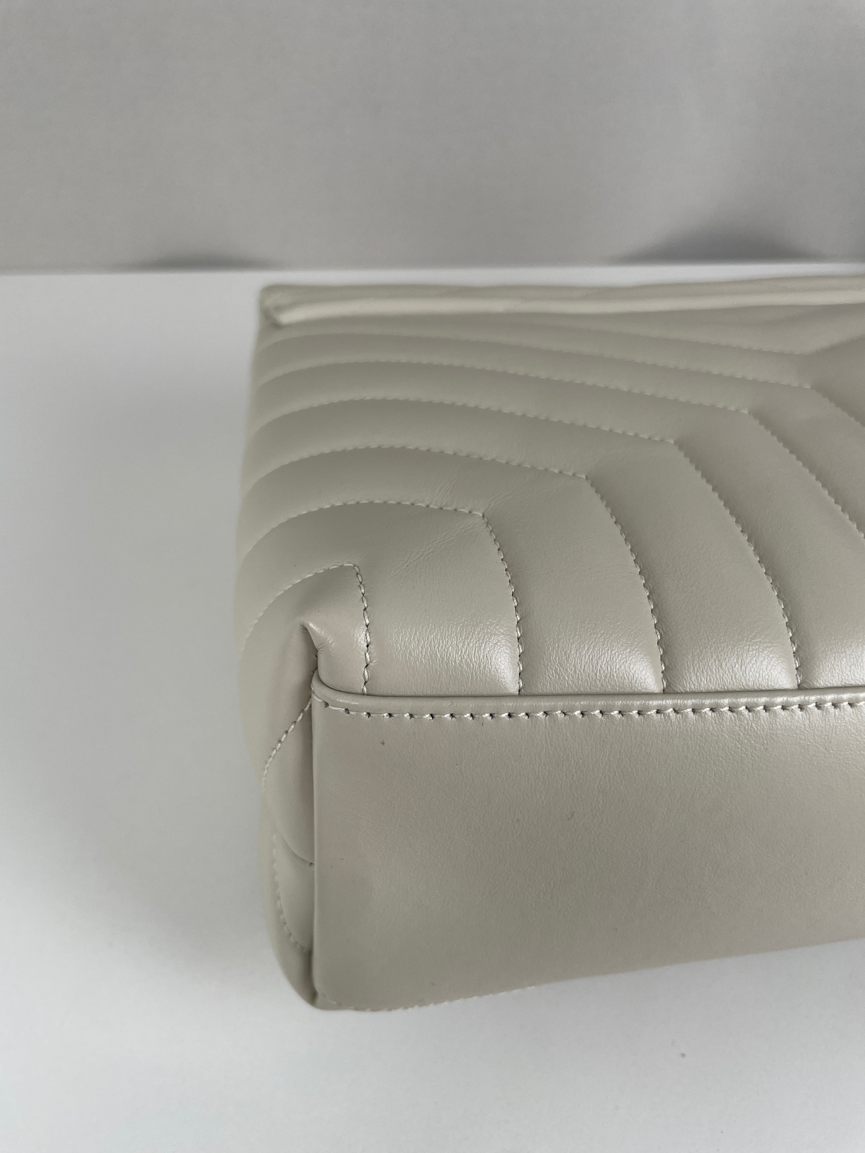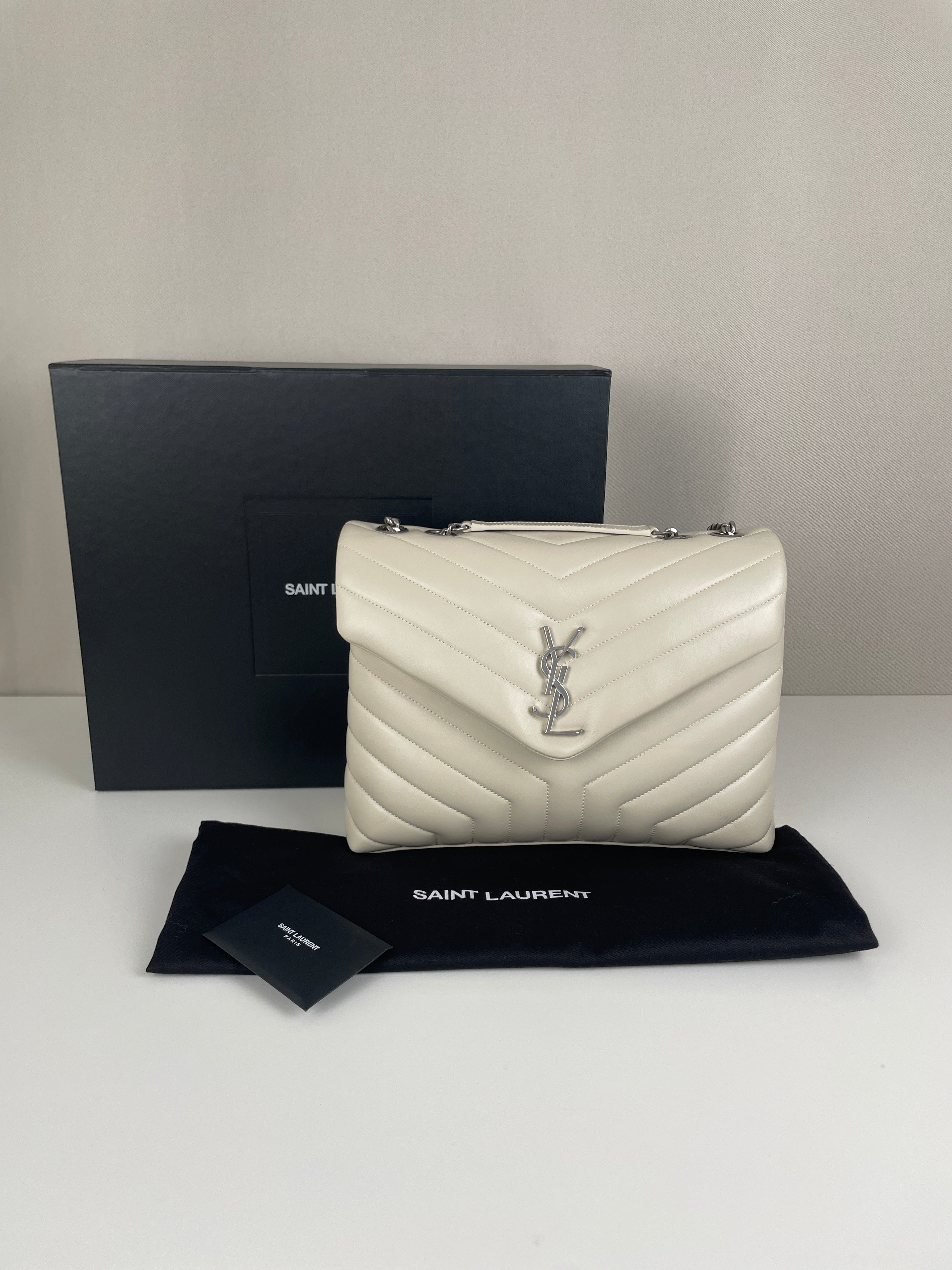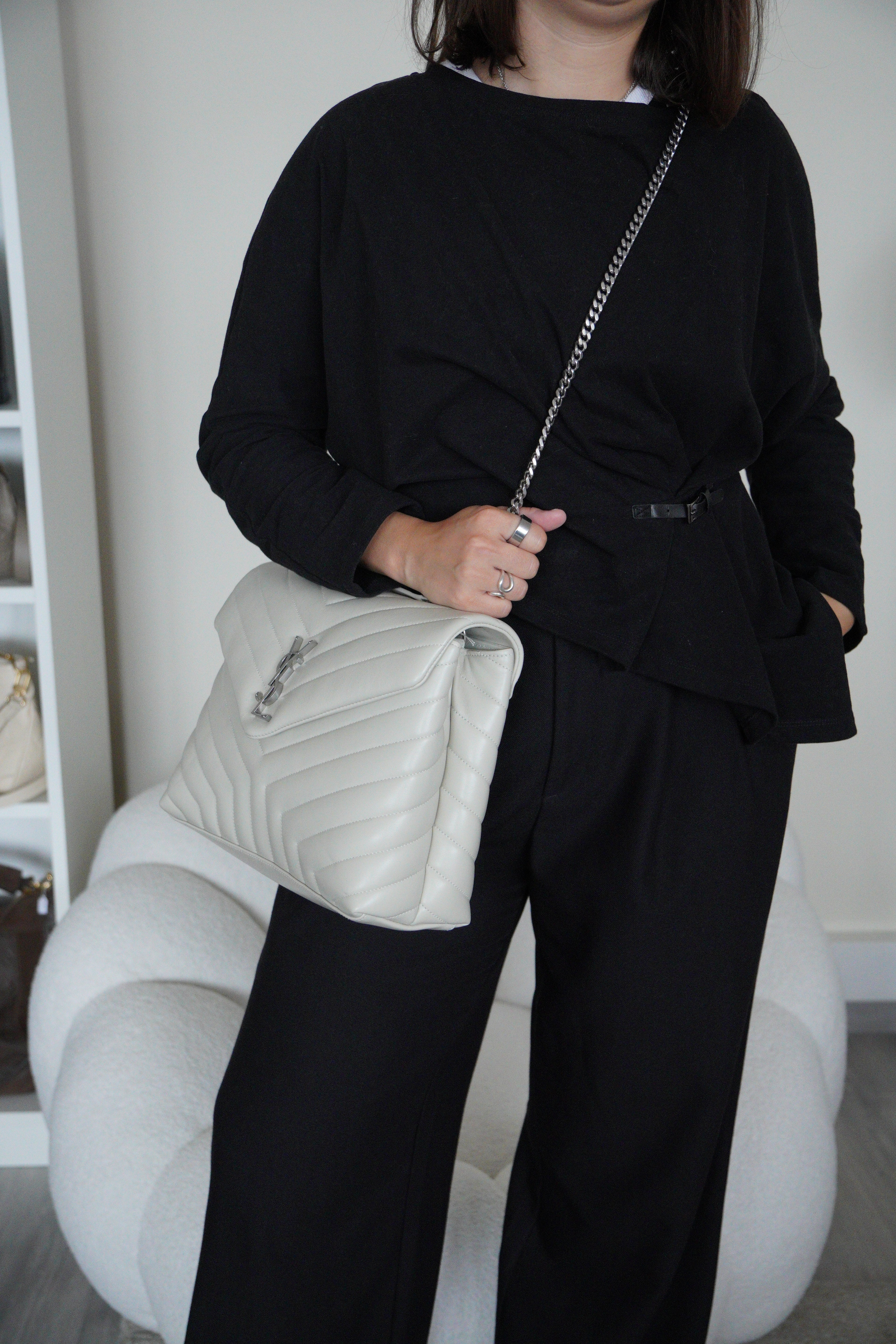 Le sac Loulou taille large de Saint Laurent est une icône de la maison, reconnaissable à son cuir matelassé, sa silhouette moelleuse et son logo YSL ton sur ton. Spacieux et raffiné, il offre un équilibre parfait entre confort et sophistication.