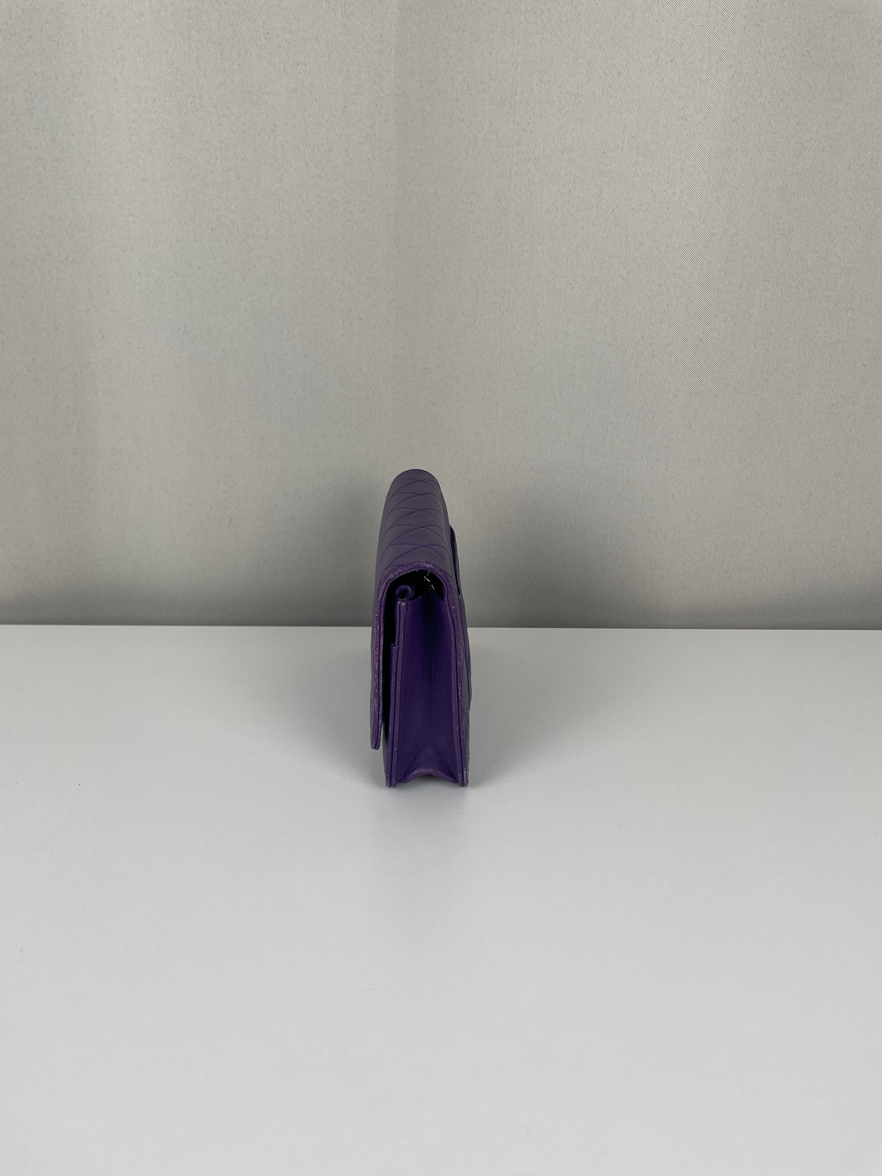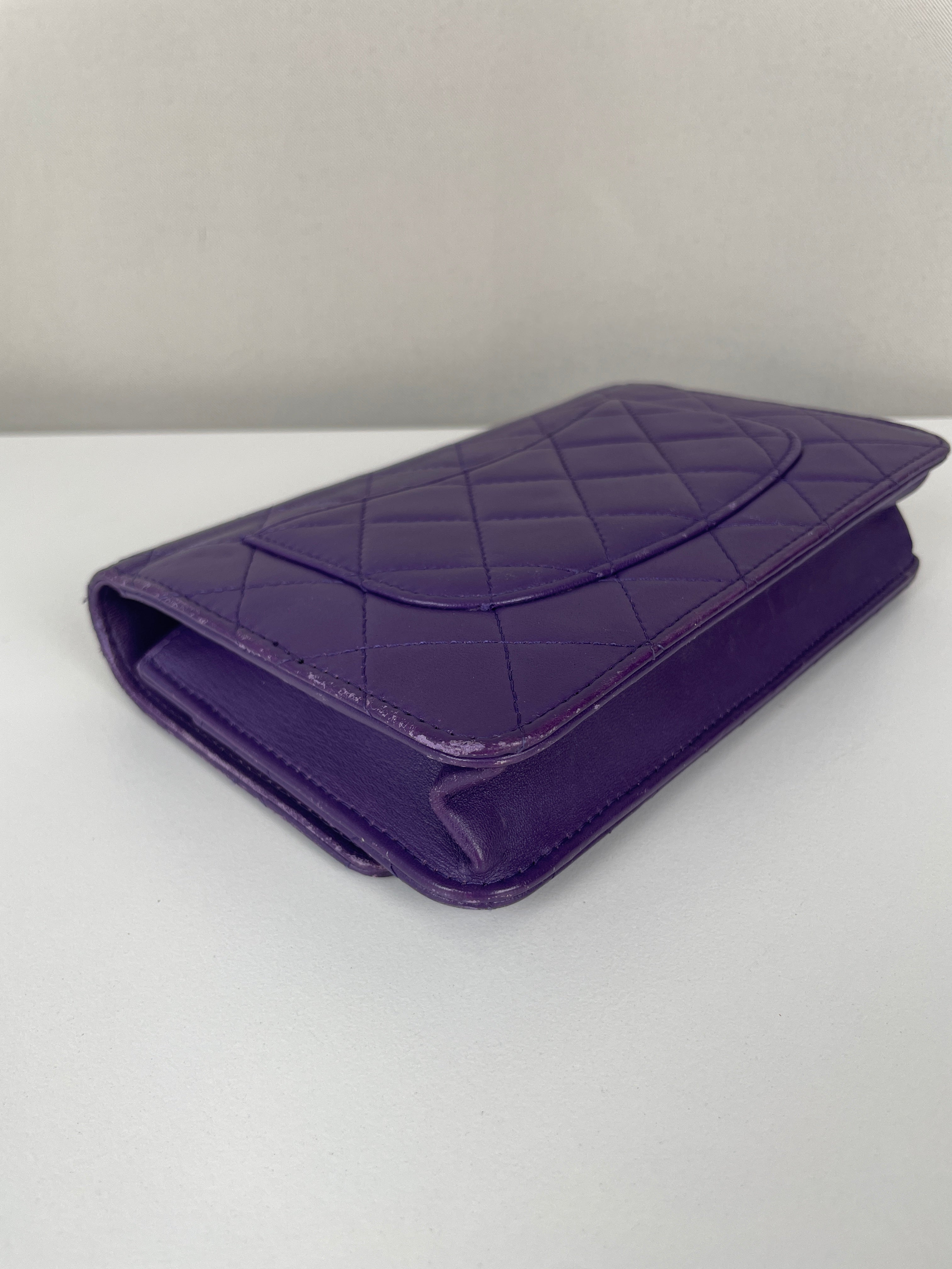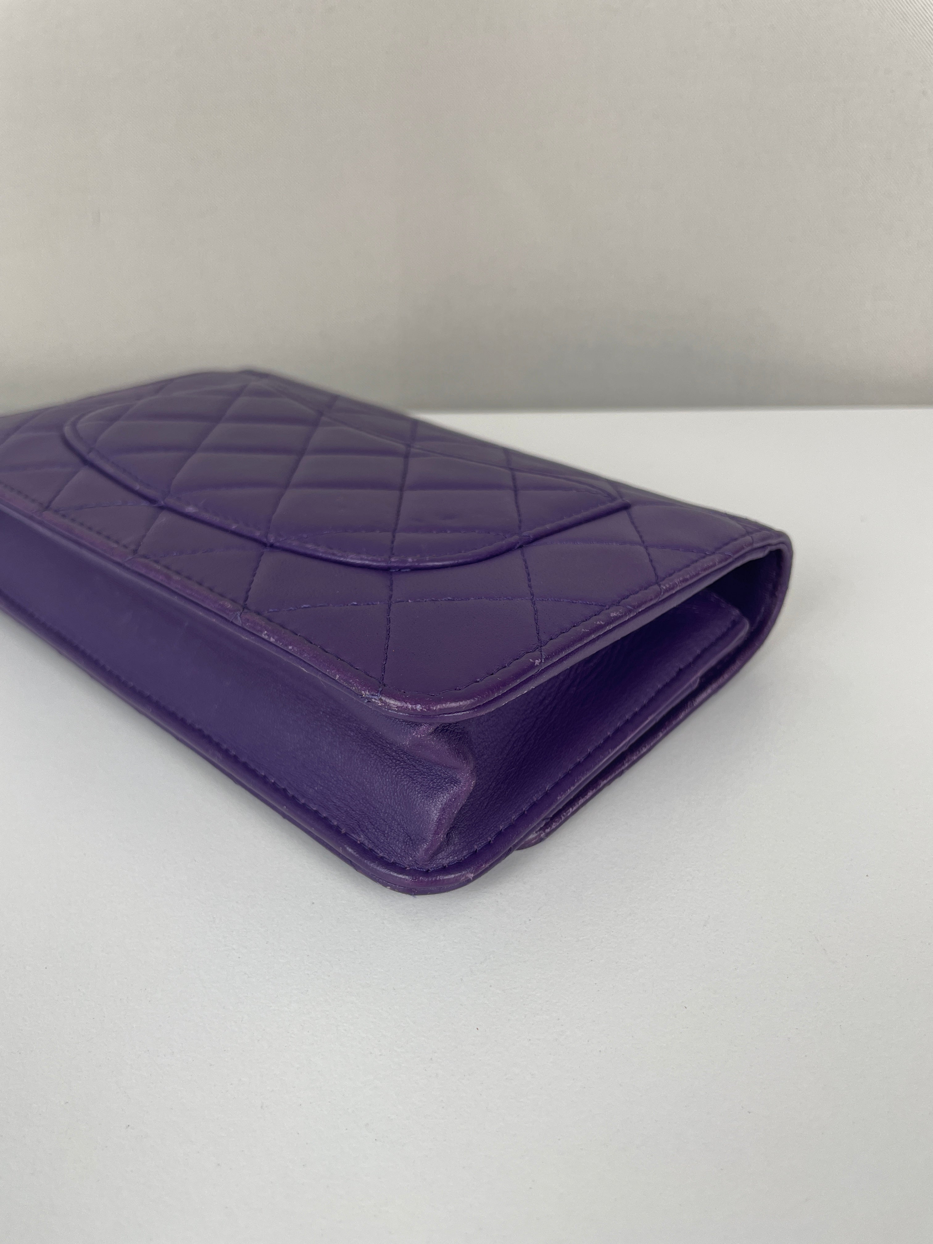 Le WOC est l'un des modèles les plus polyvalents et adorés de Chanel. Cette édition en cuir violet de 2015-2016 illustre l'approche audacieuse de la maison en matière de couleur et la sophistication intemporelle. Une pièce distinctive qui incarne la fonctionnalité élégante de Chanel avec un caractère authentique acquis par un usage délicat au fil des années.