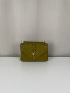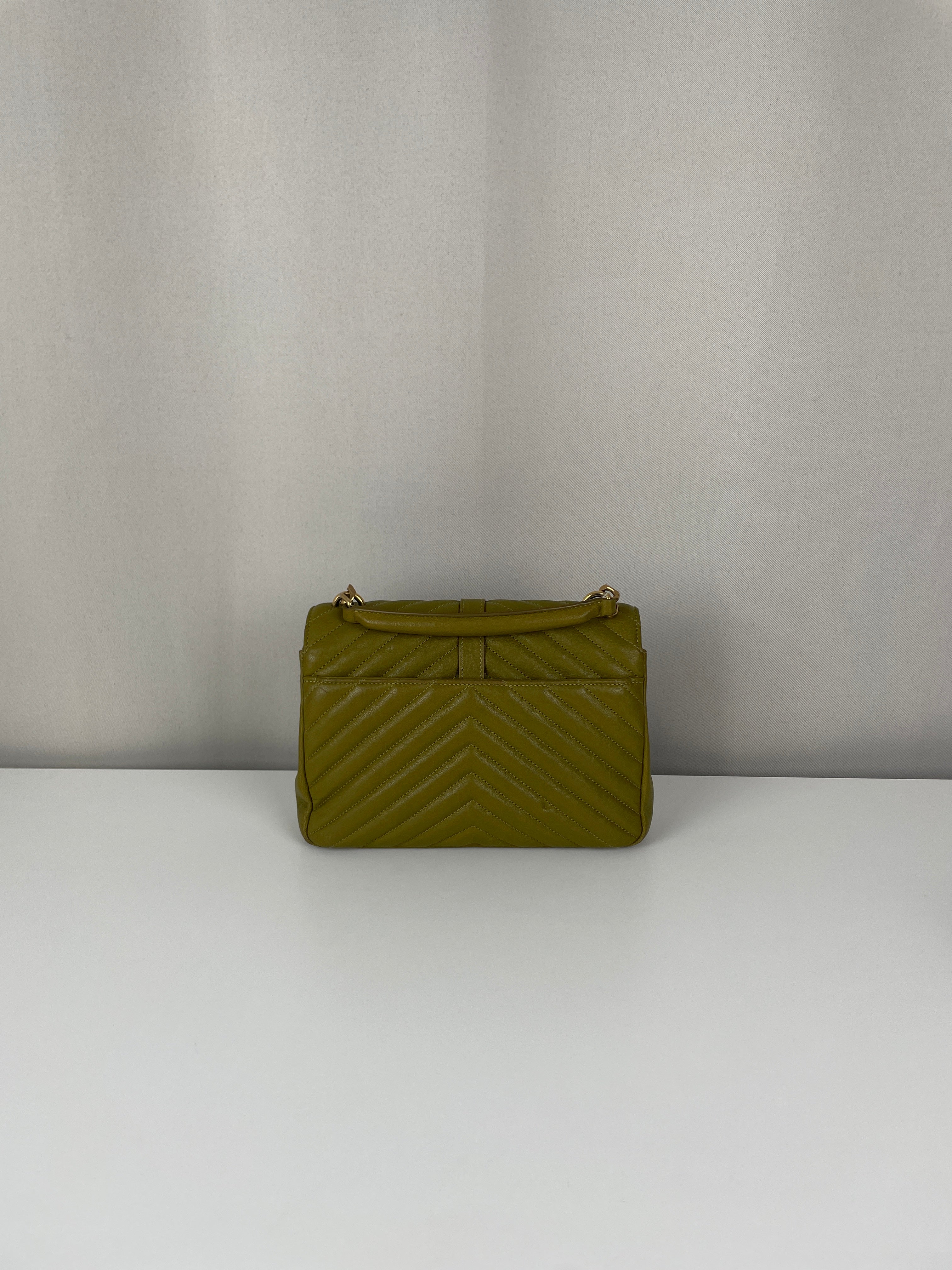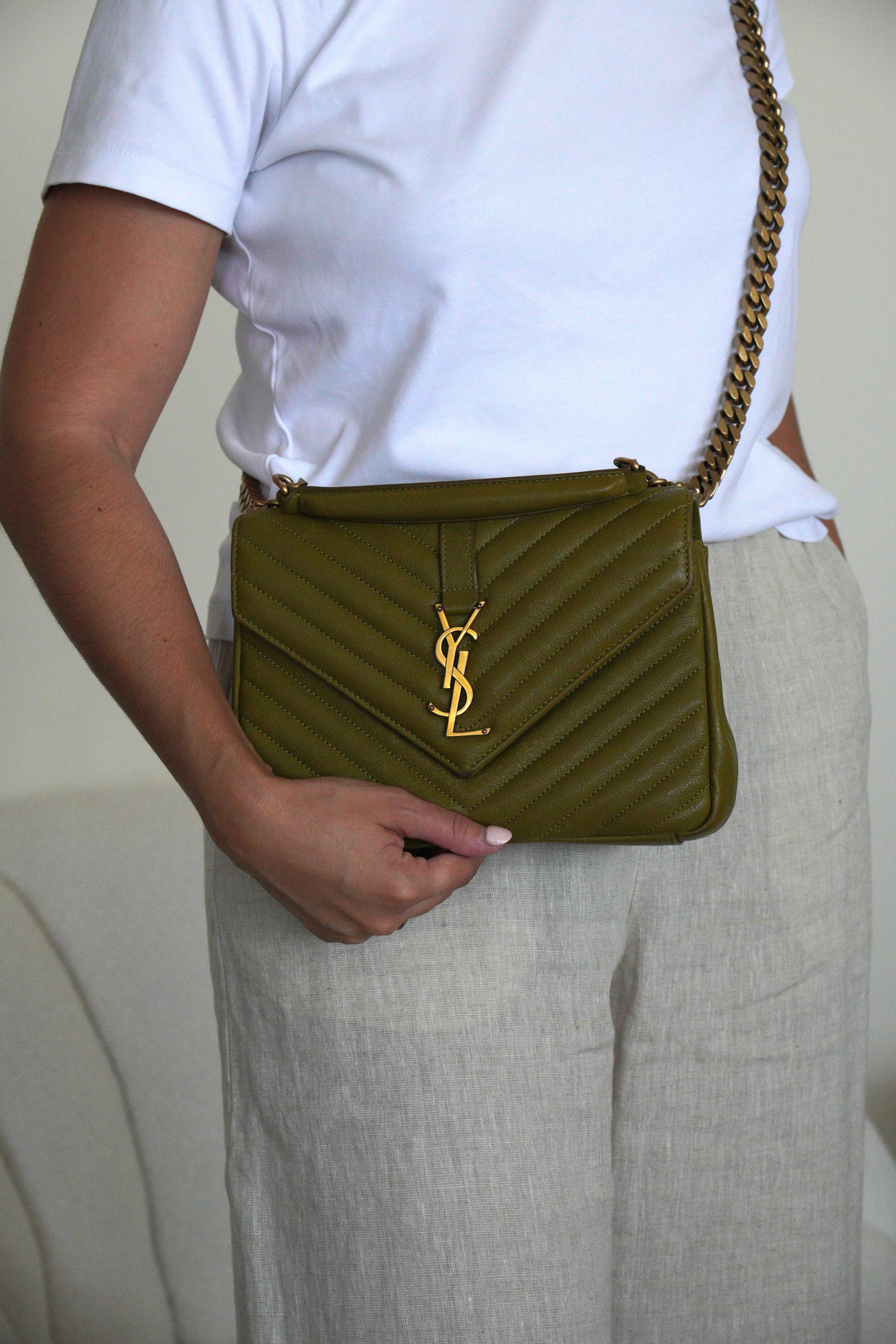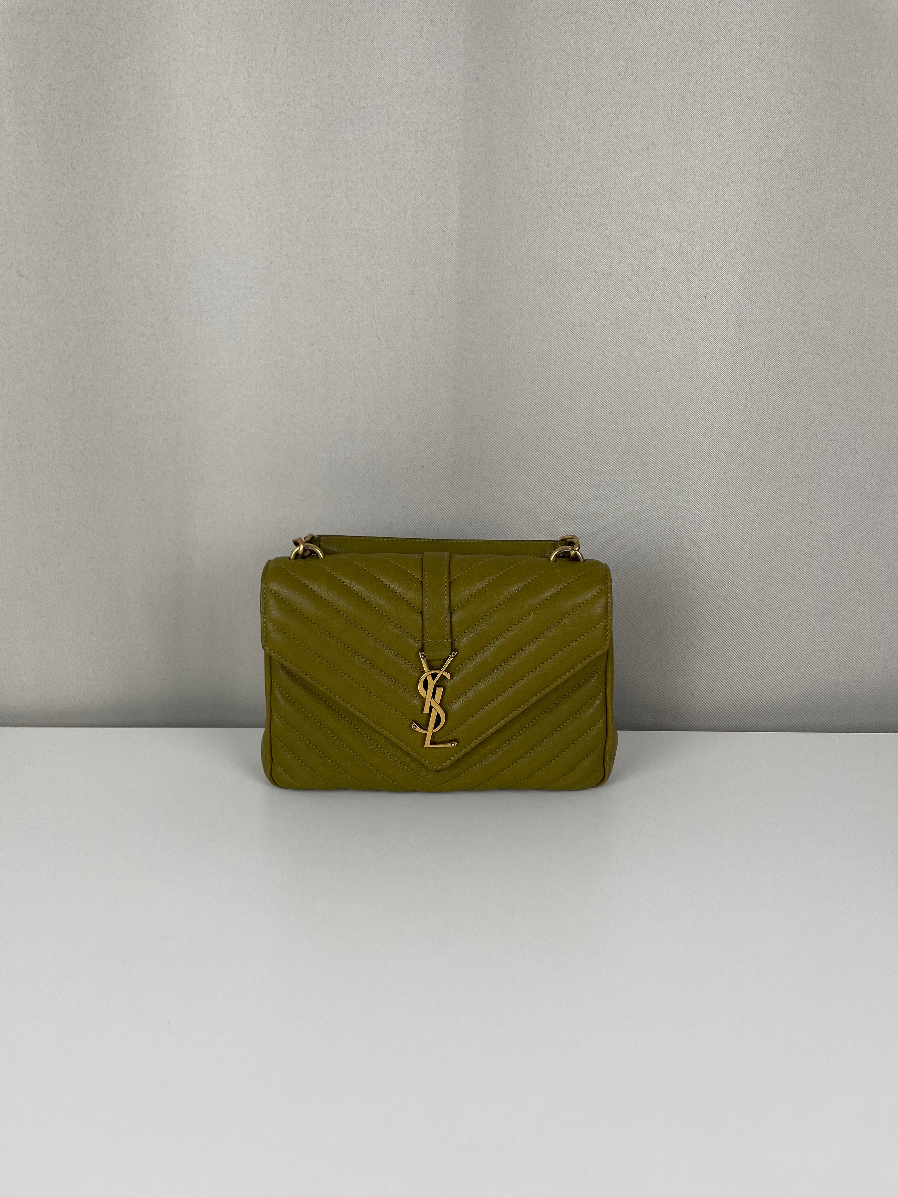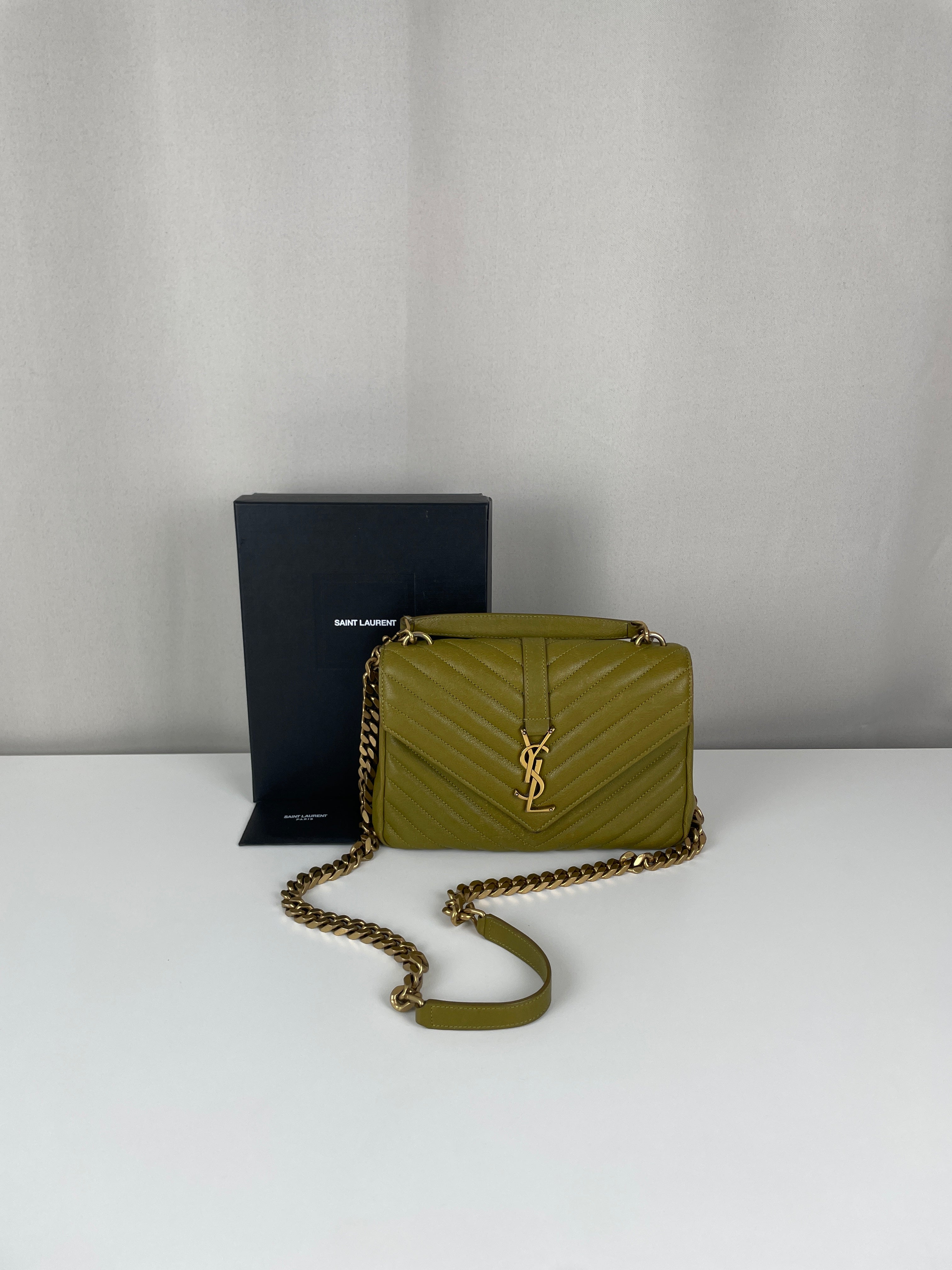 Le College est l'un des modèles les plus iconiques et structurés de Saint Laurent. Cette édition en cuir vert illustre l'approche audacieuse de la maison en matière de couleur et de savoir-faire de luxe contemporain. Une pièce remarquable qui incarne l'esthétique rock-chic et la sophistication parisienne de Saint Laurent dans un ton émeraude saisissant.