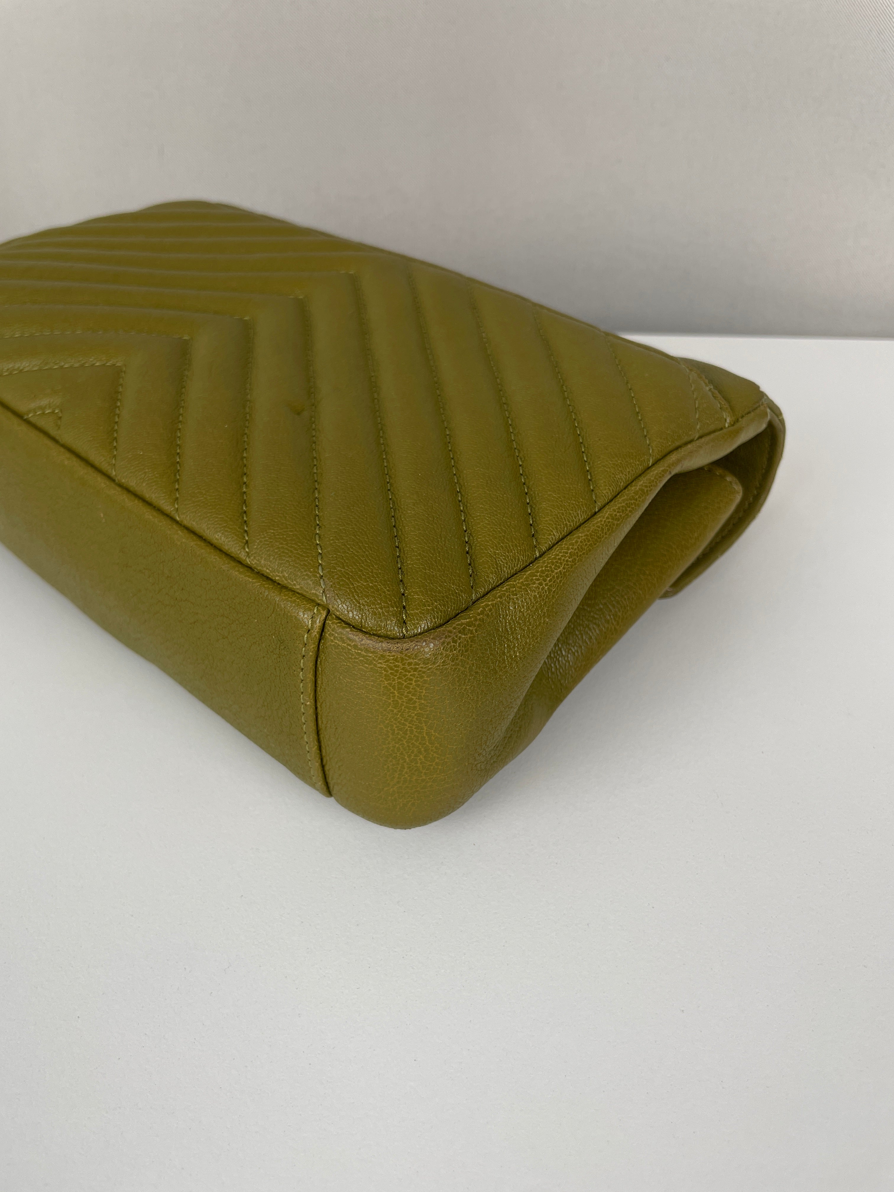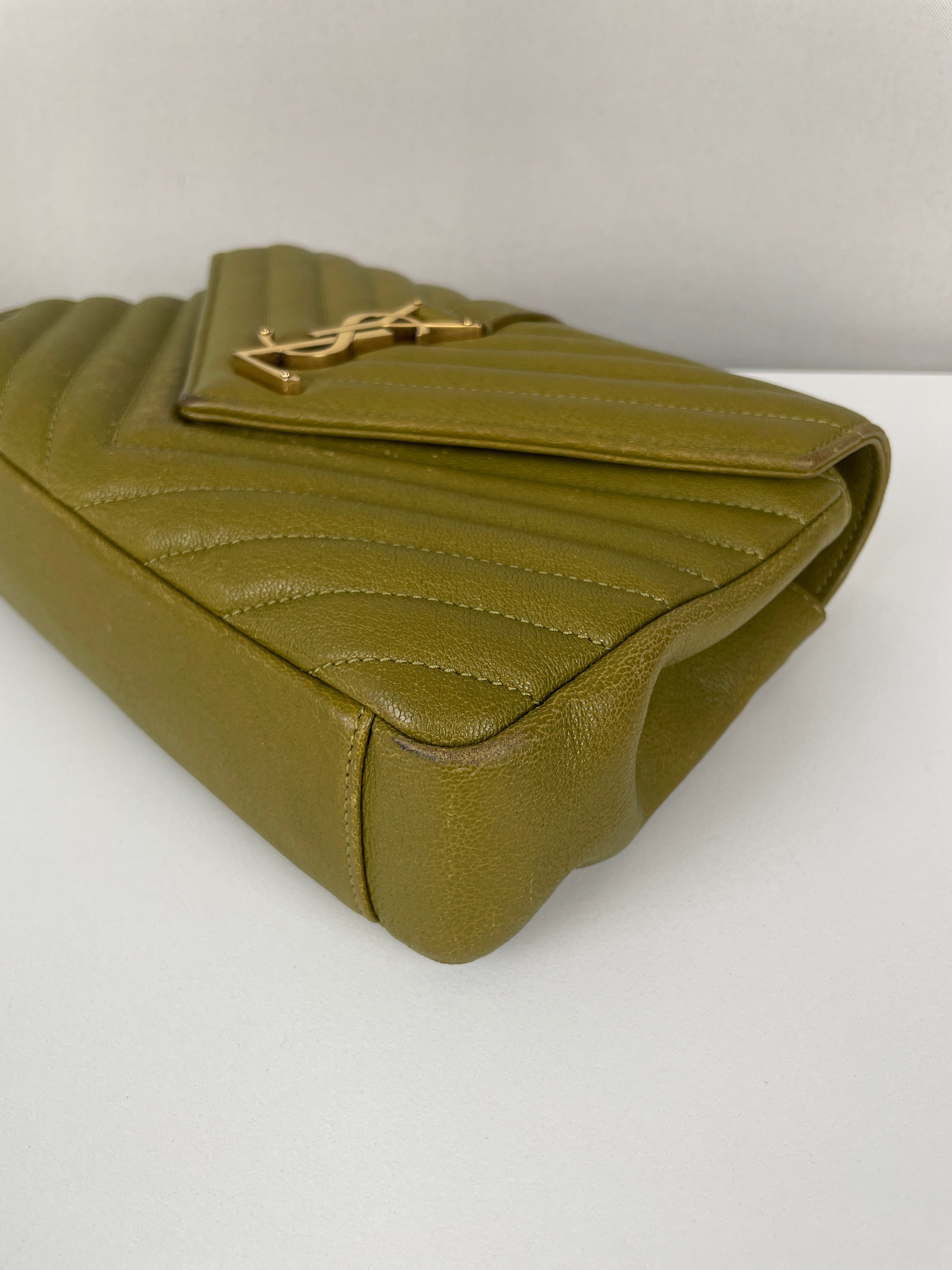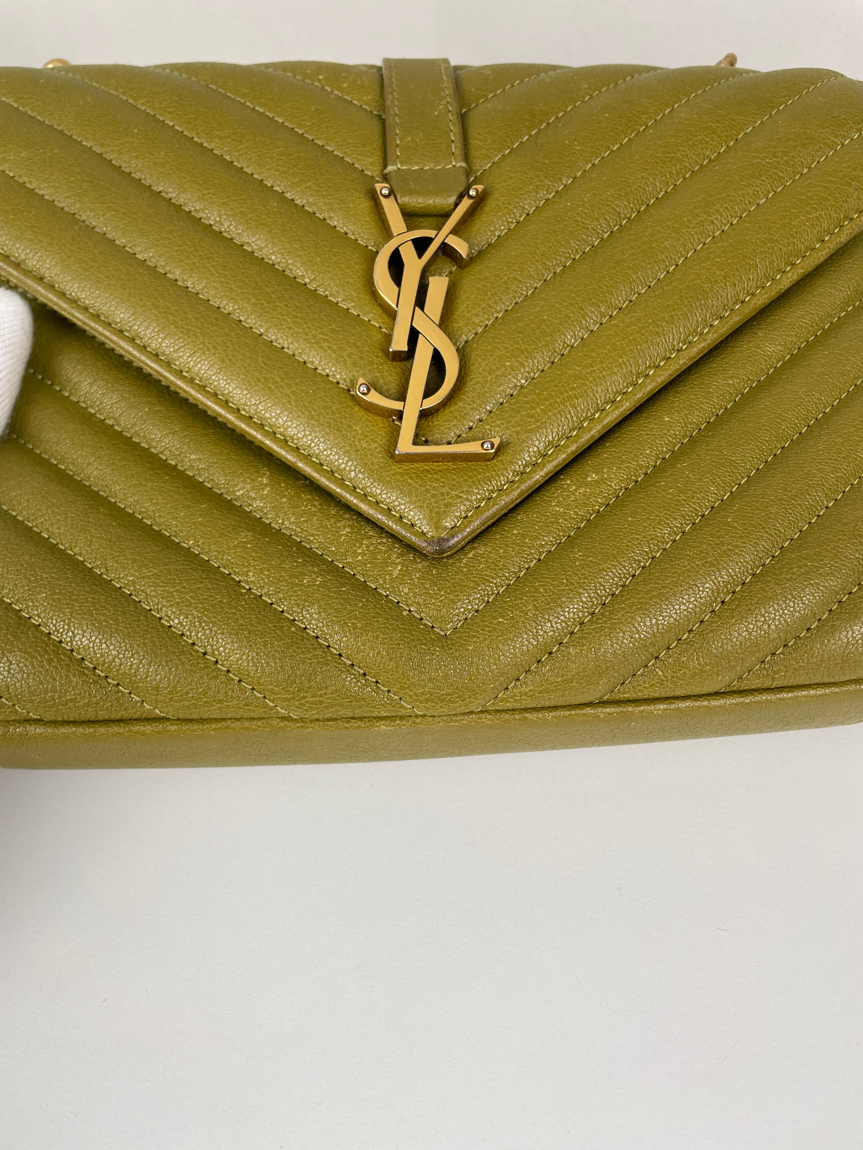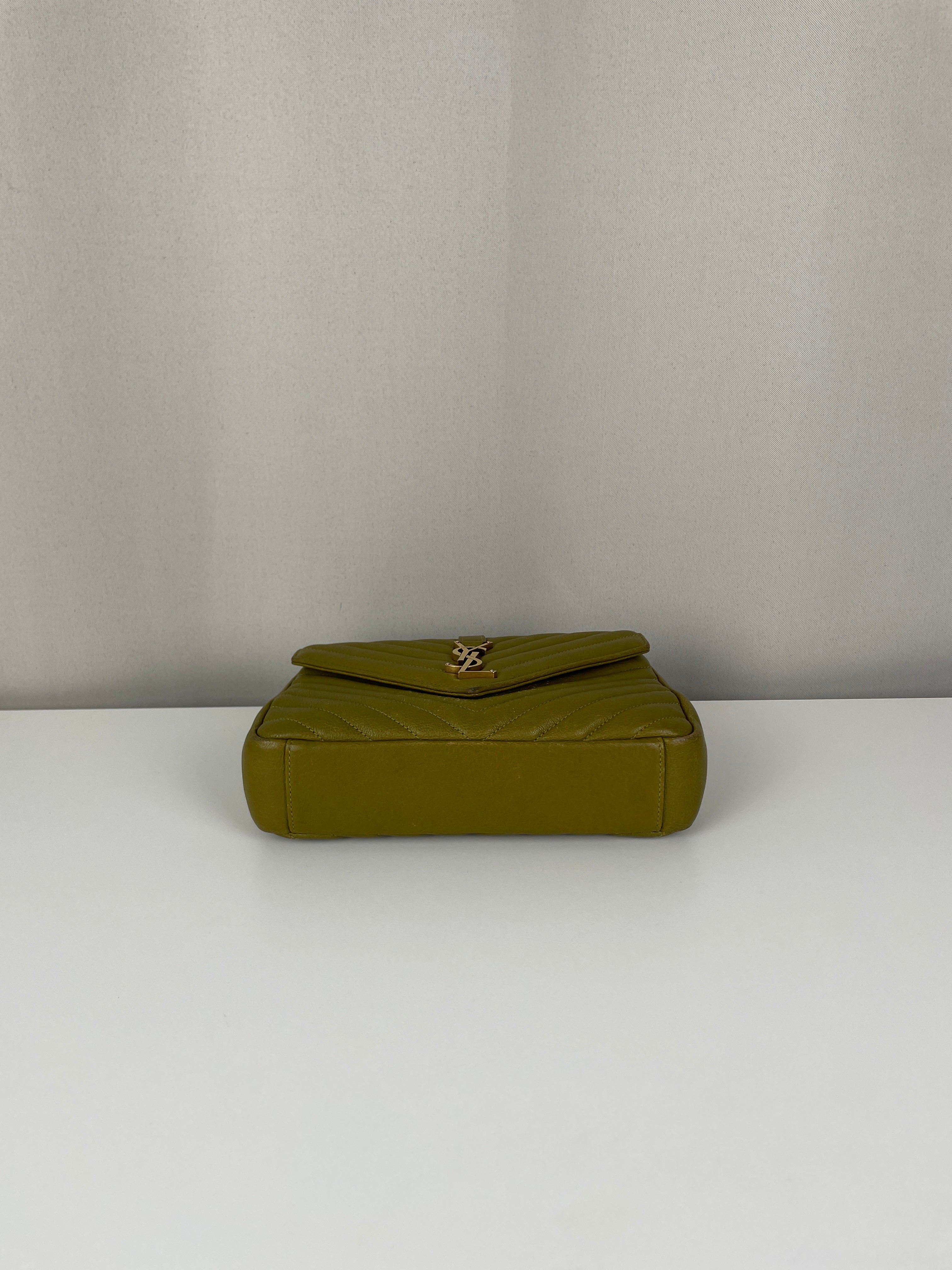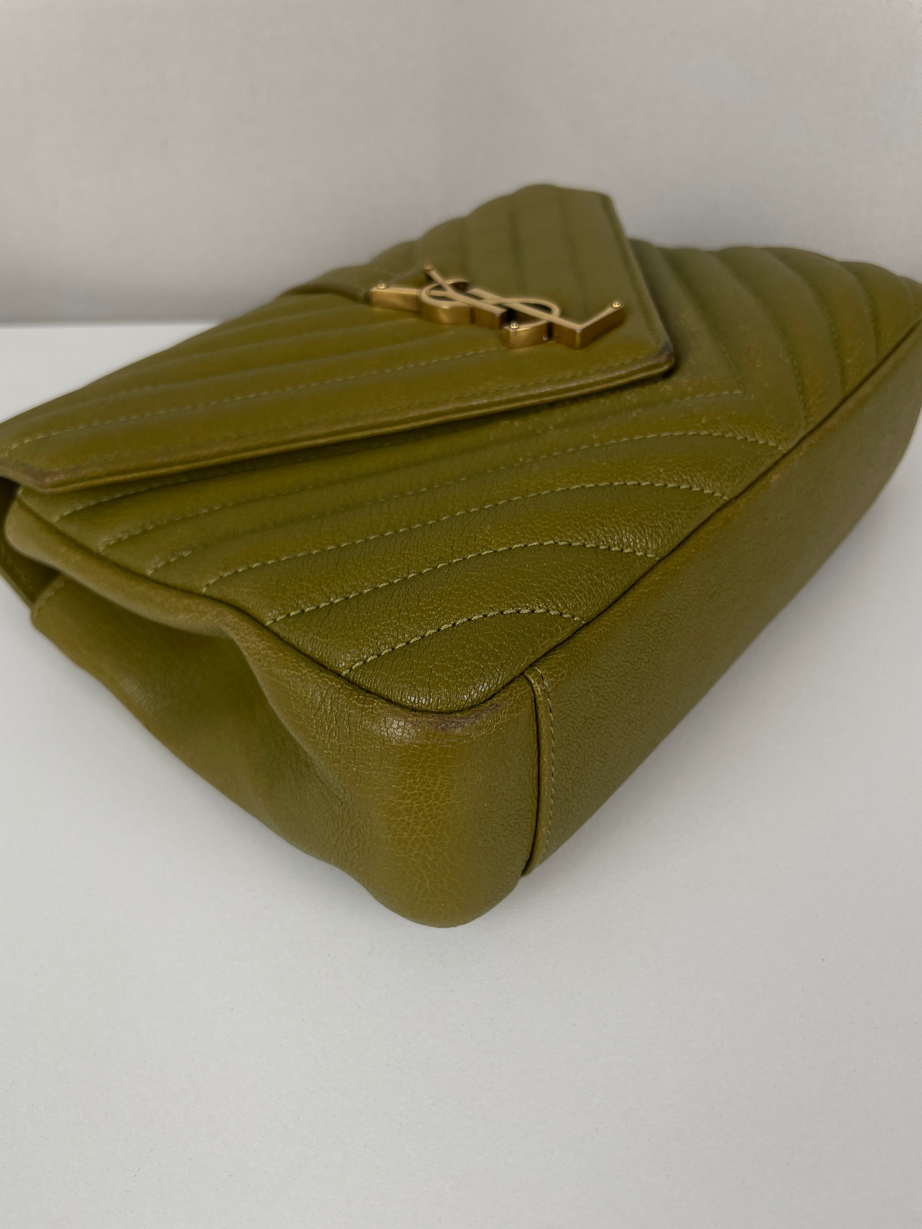 Le College est l'un des modèles les plus iconiques et structurés de Saint Laurent. Cette édition en cuir vert illustre l'approche audacieuse de la maison en matière de couleur et de savoir-faire de luxe contemporain. Une pièce remarquable qui incarne l'esthétique rock-chic et la sophistication parisienne de Saint Laurent dans un ton émeraude saisissant.