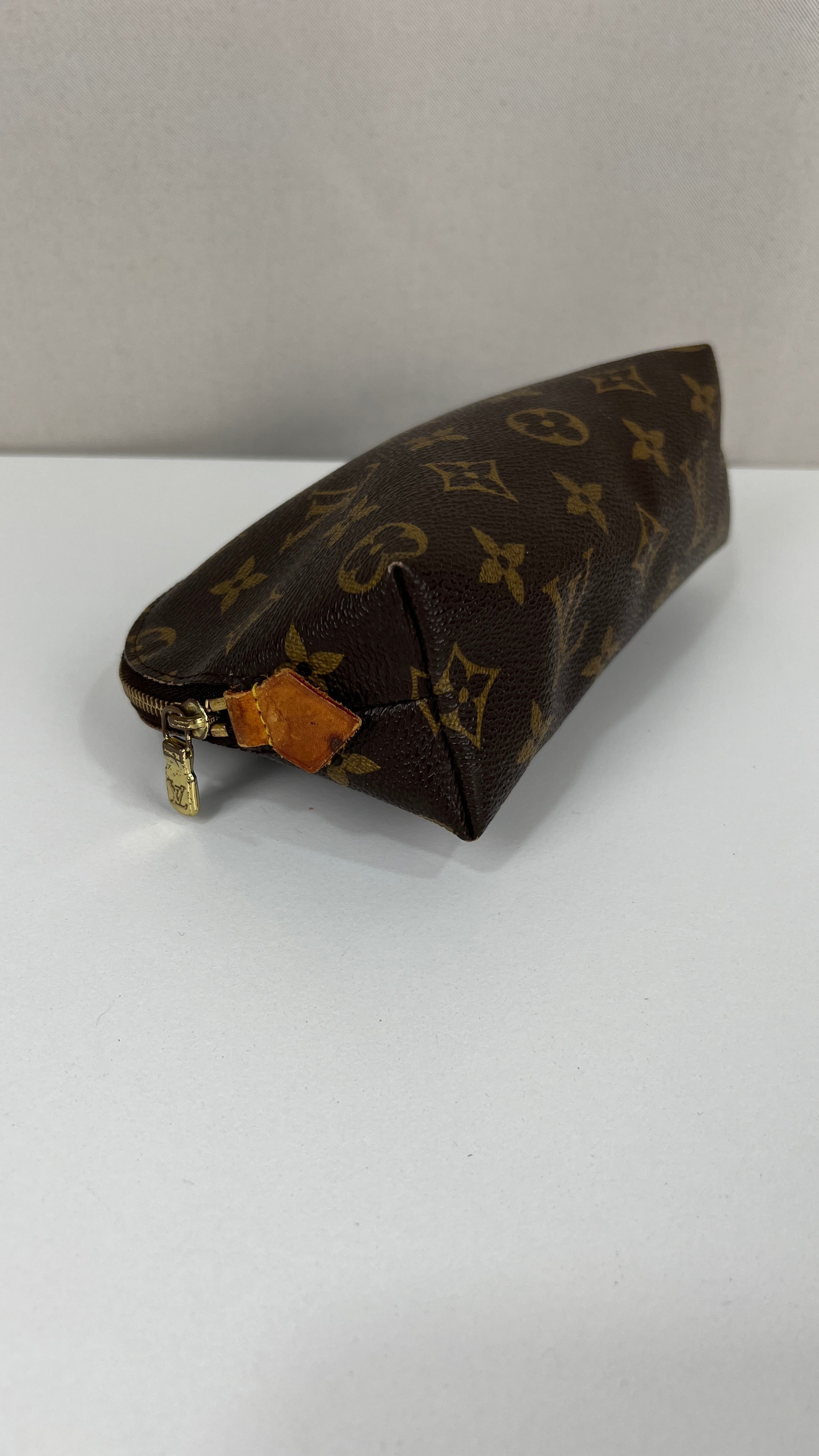 Cette pochette cosmétique Louis Vuitton Monogram est un peu utilisée. La toile est en bon état. Les coins sont un peu frottés. L'intérieur est légèrement usé sur les rebord intérieur c'est souvent sur ces pochettes. La bijouterie est un peu usée.