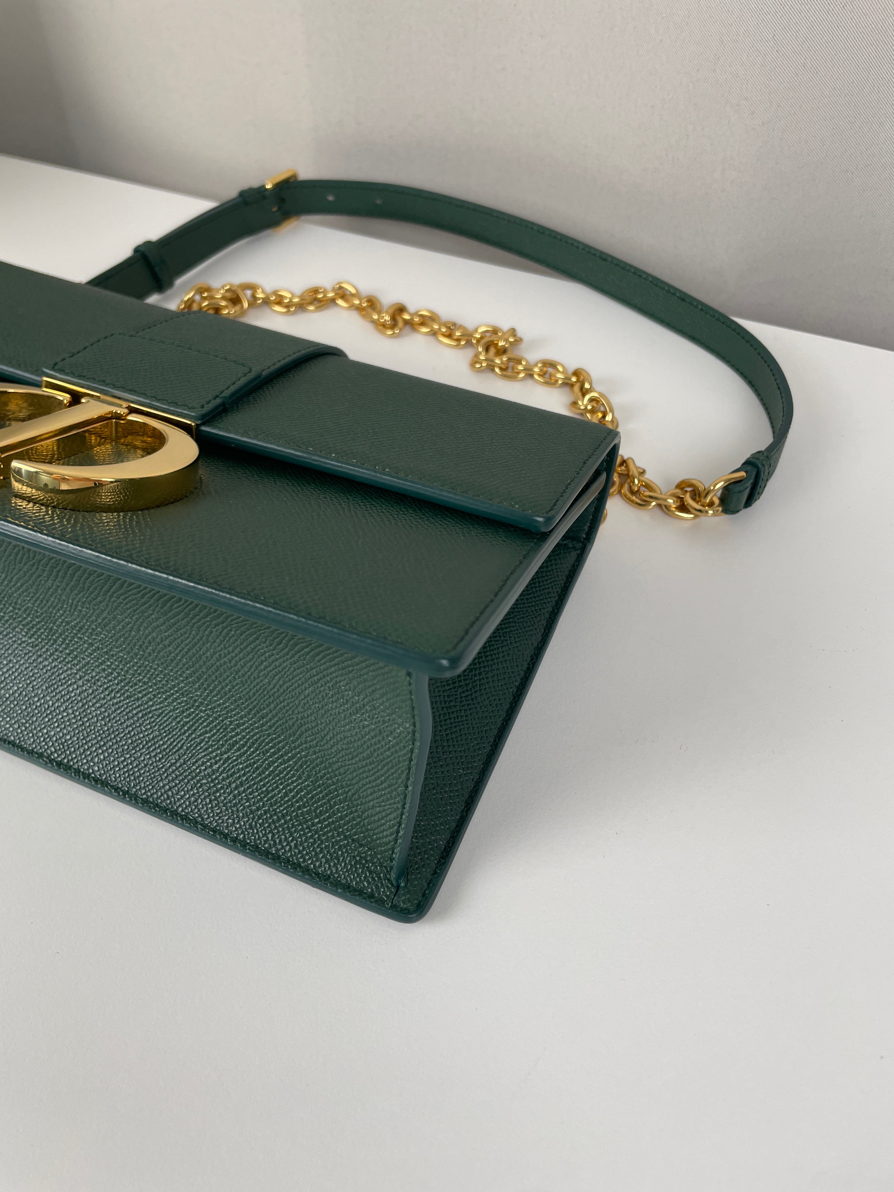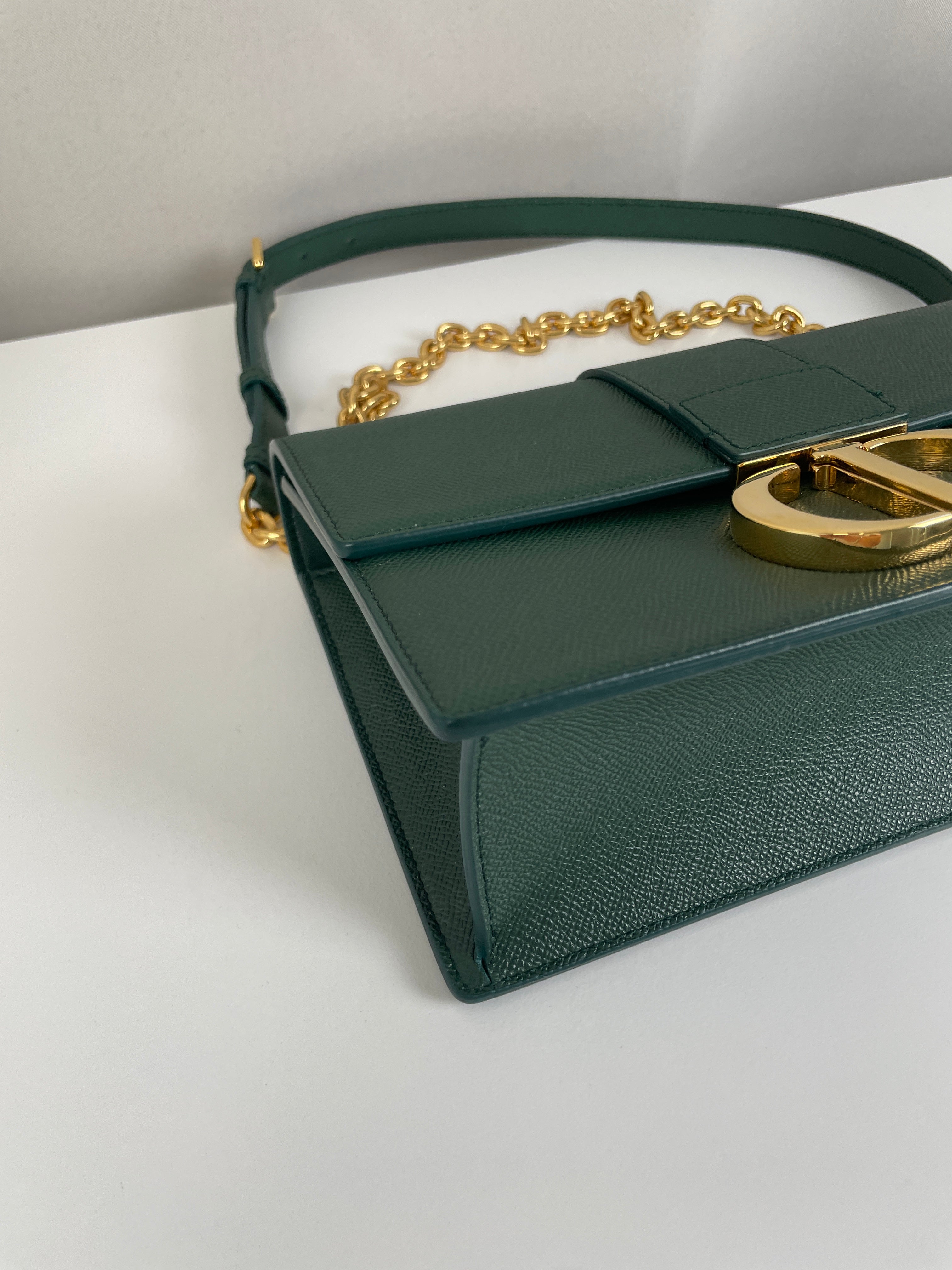 Ajoutez une touche d’élégance intemporelle à votre style avec le Dior Montaigne 30, un sac emblématique qui associe sophistication moderne et praticité au quotidien. Confectionné en cuir grainé vert foncé, ce modèle offre une couleur raffinée et subtile, idéale pour toutes vos occasions.