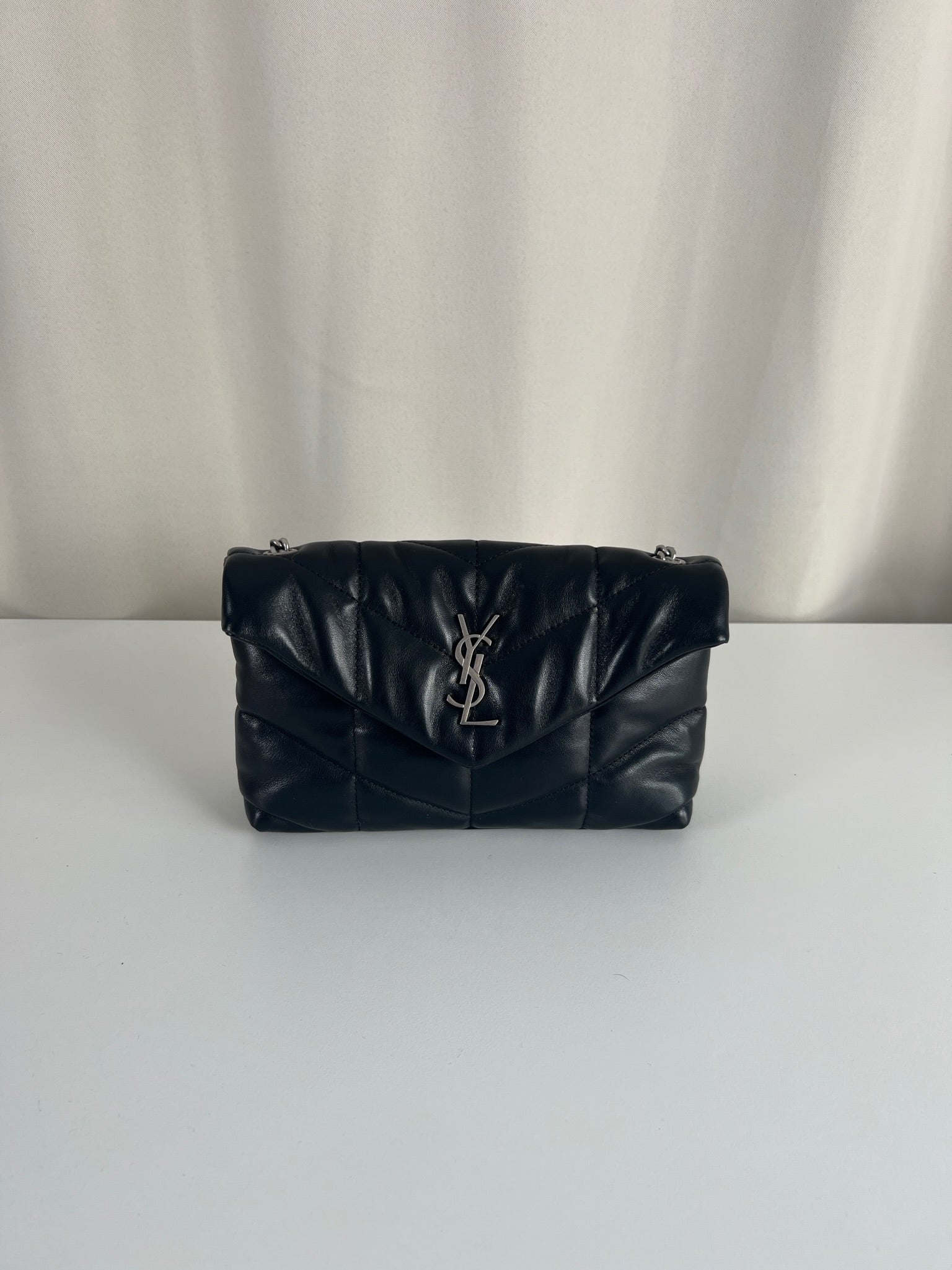 Sac Saint Laurent Puffer mini cuir noir bijouterie argenté