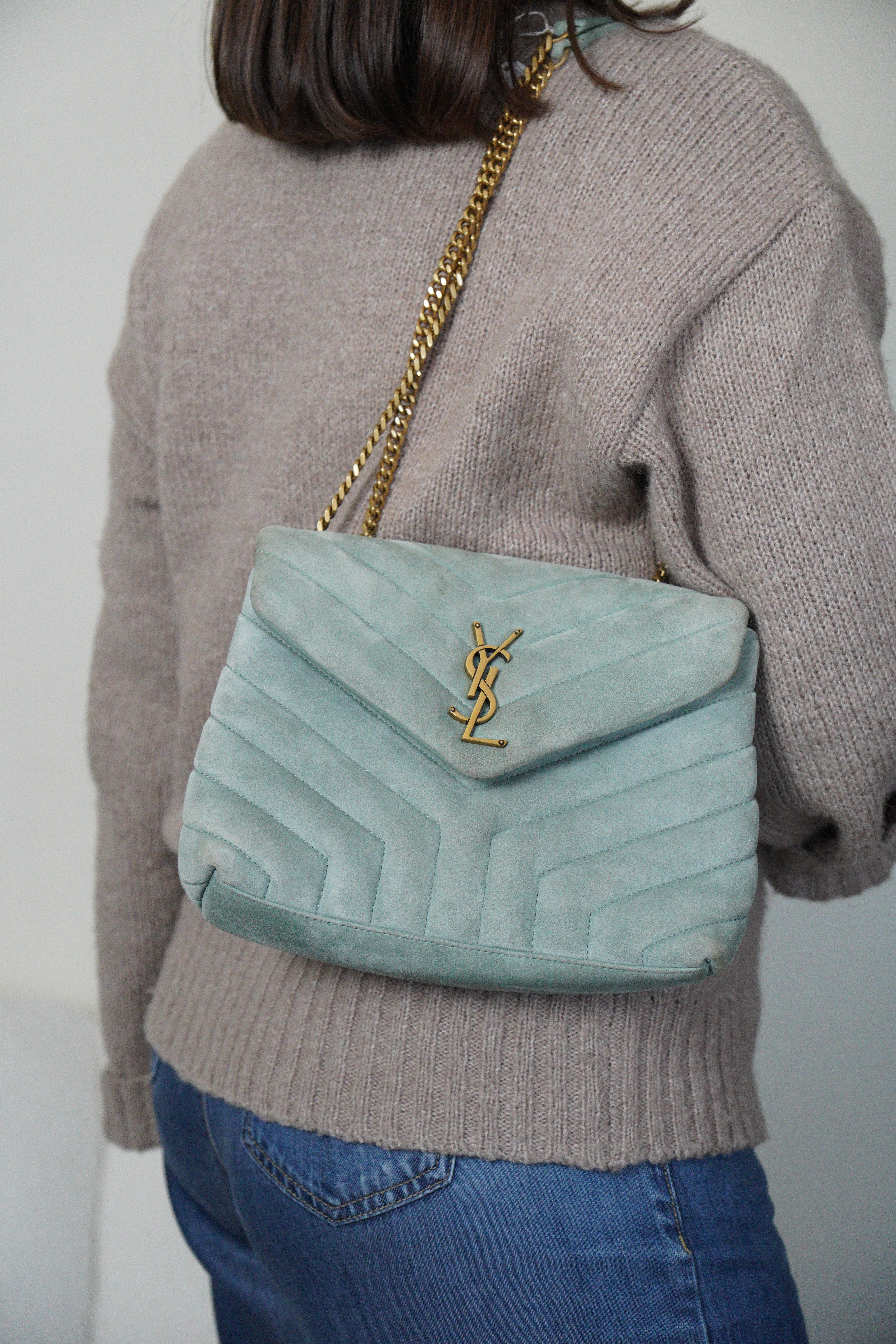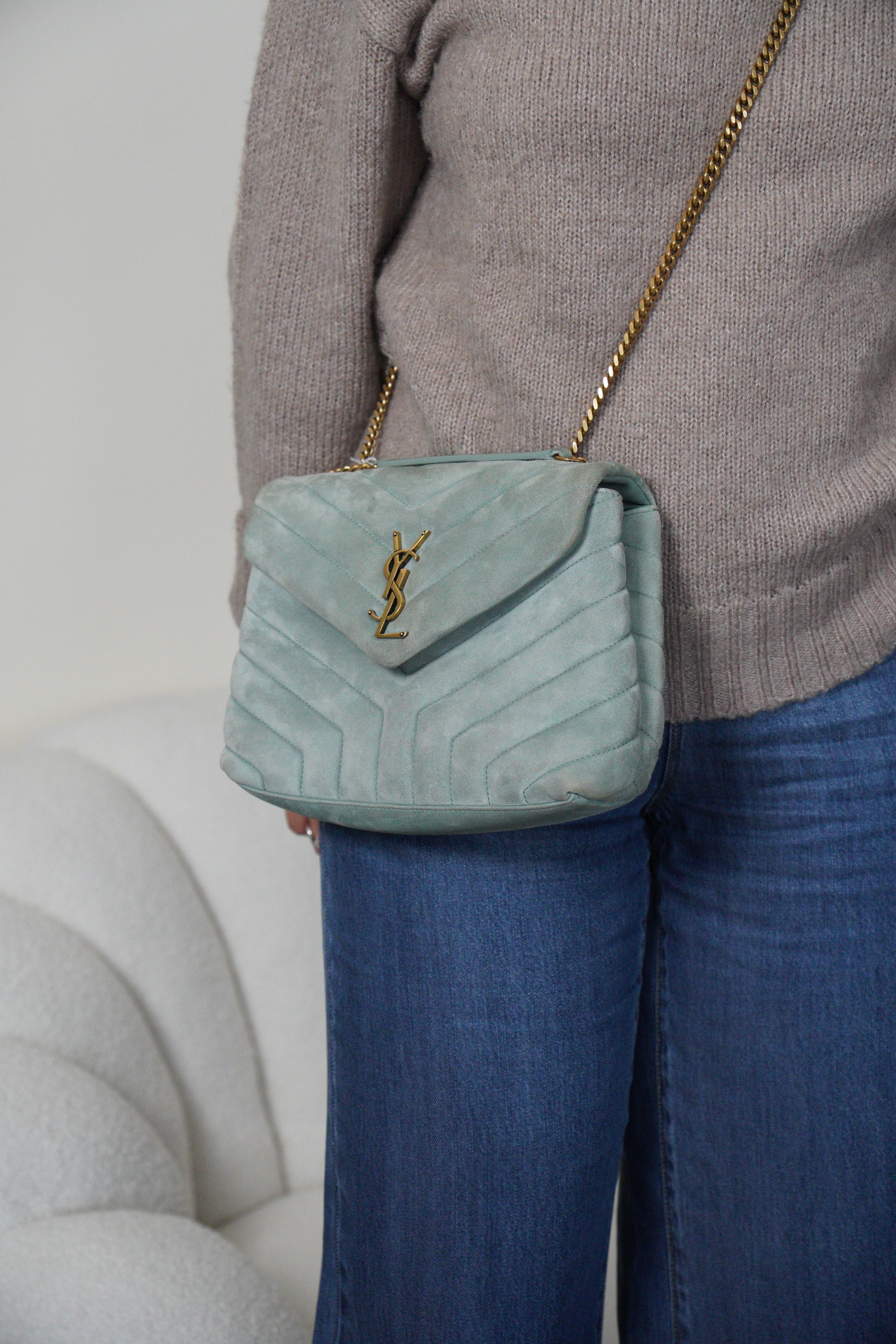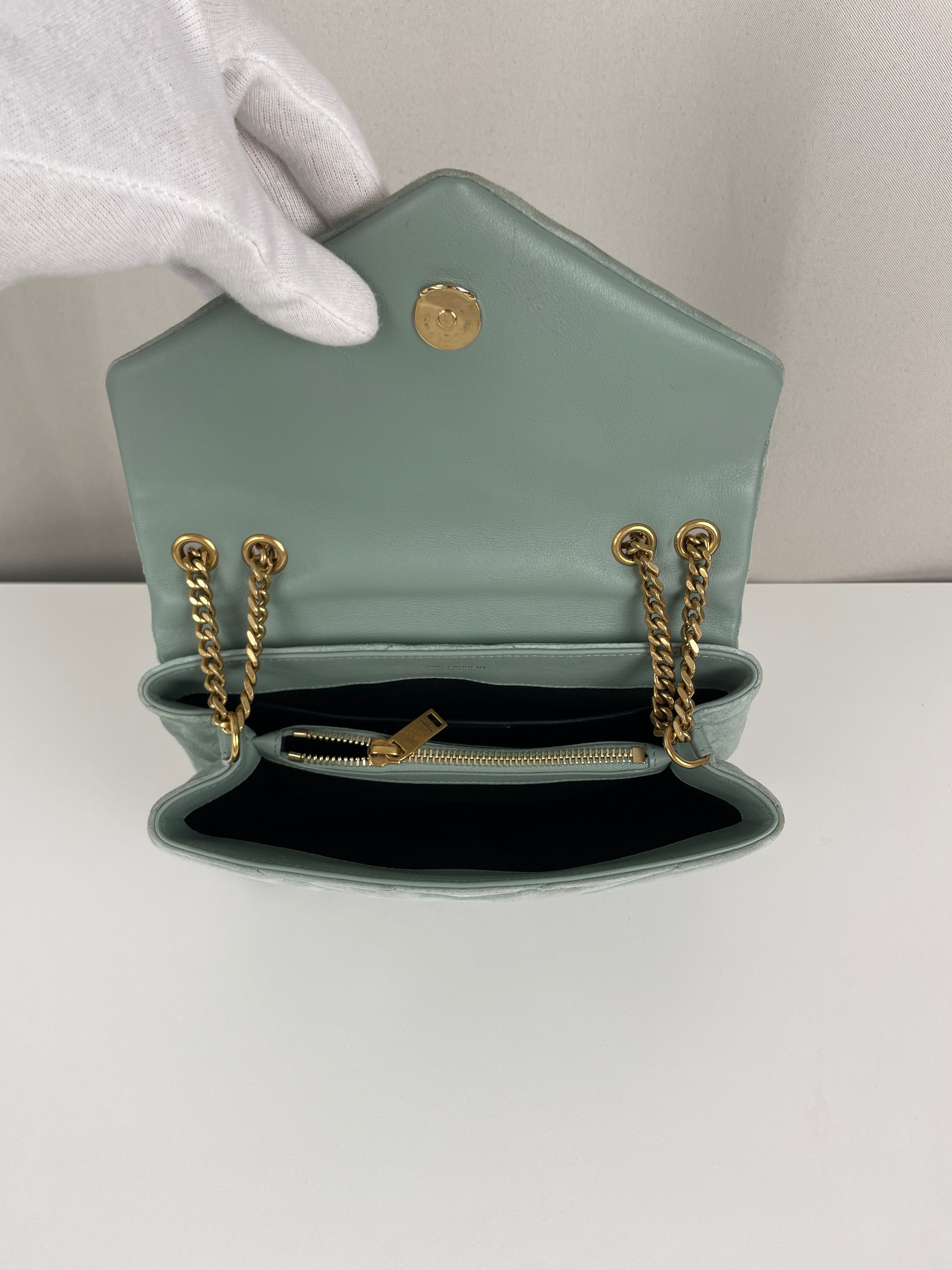 Saint Laurent Loulou small Velours Turquoise